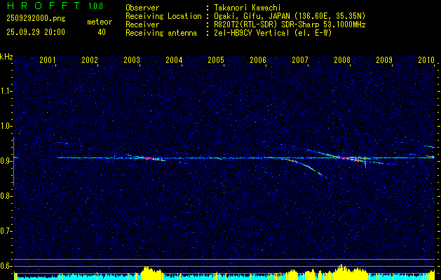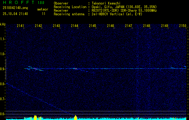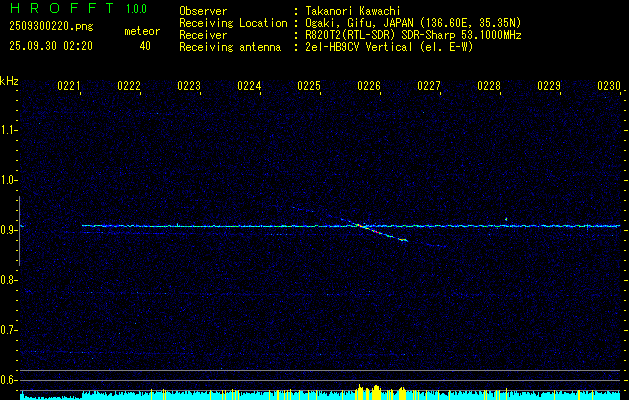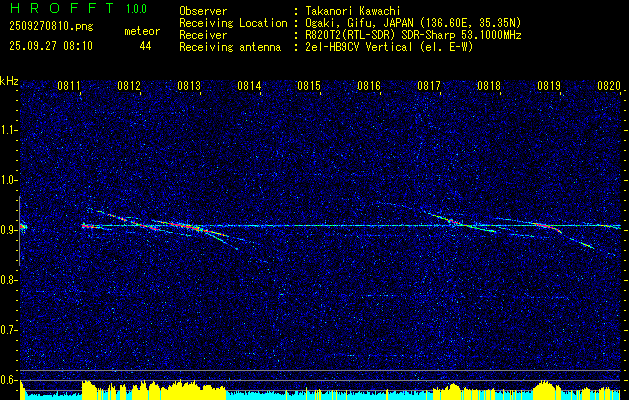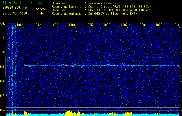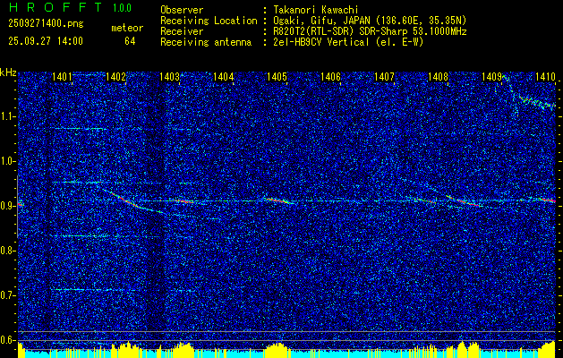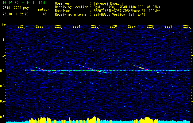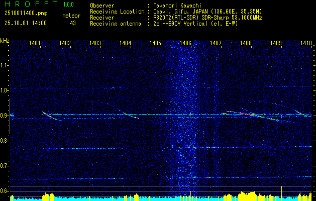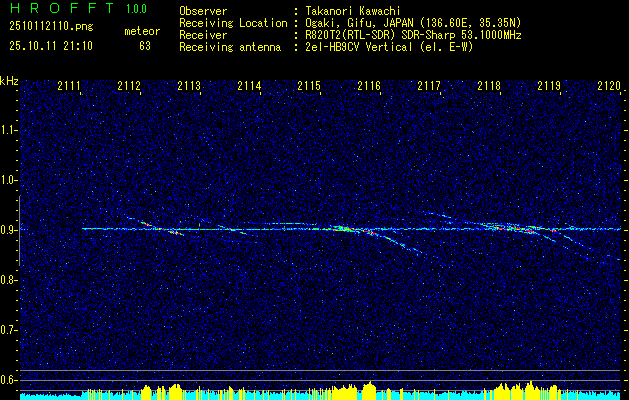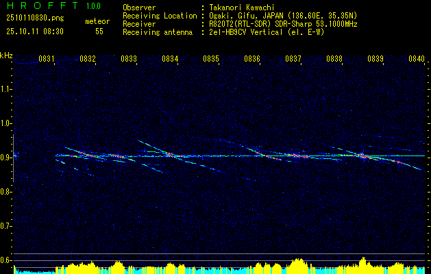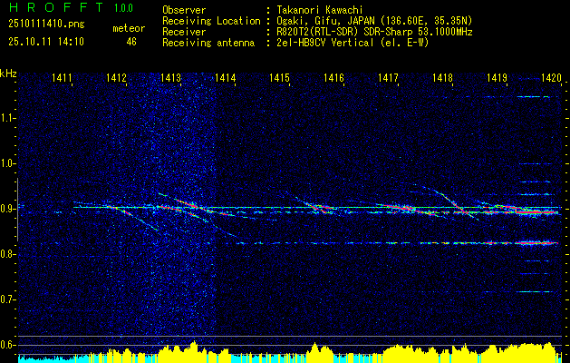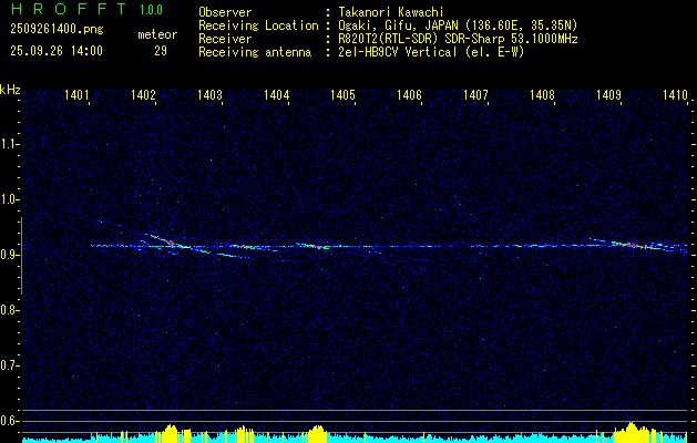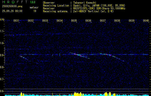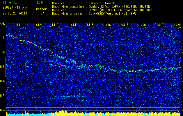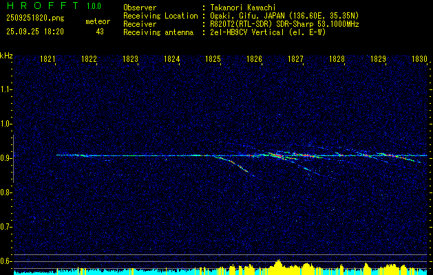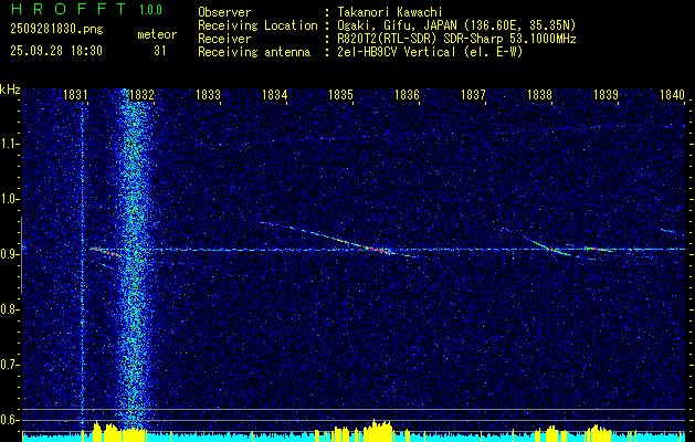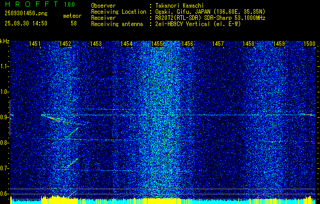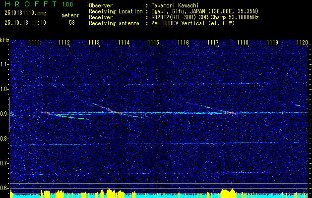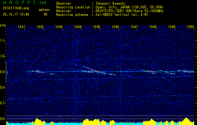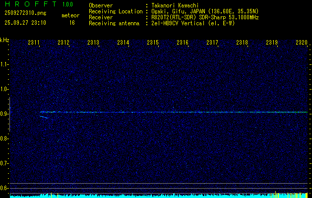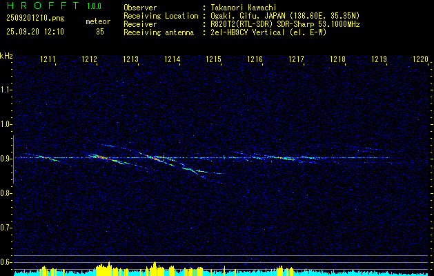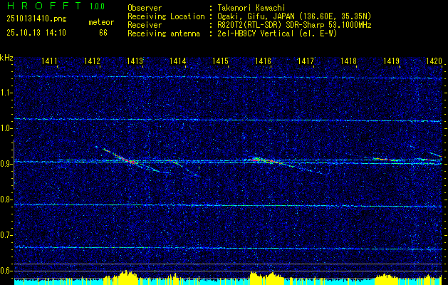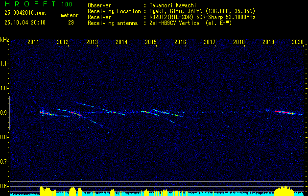 0.9kHz附近に発生している『点』または『塊』が流星によるエコーです.