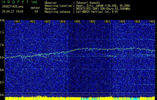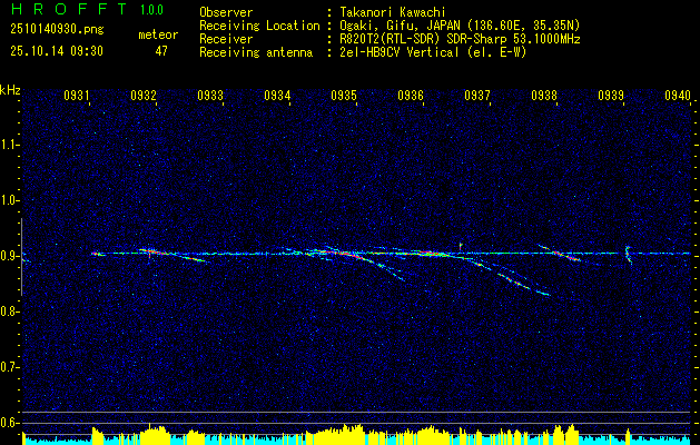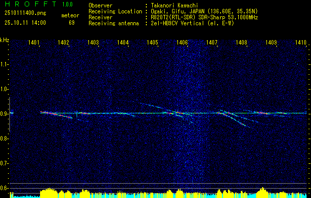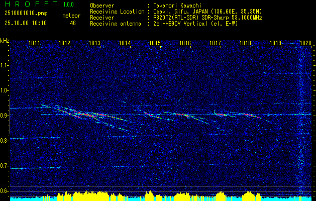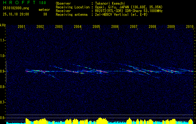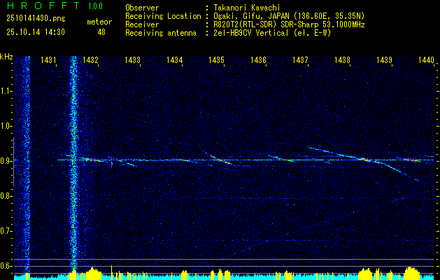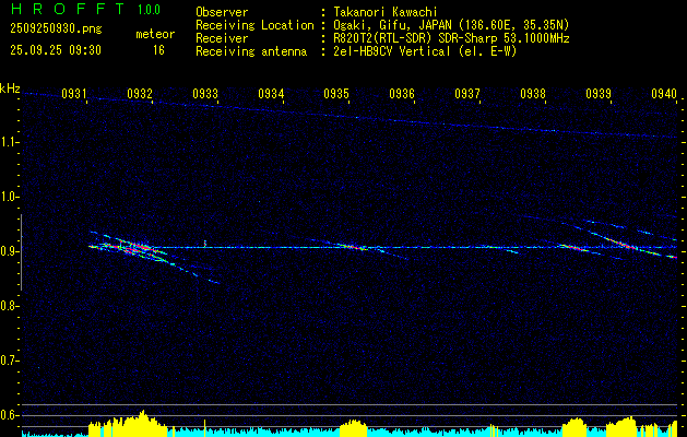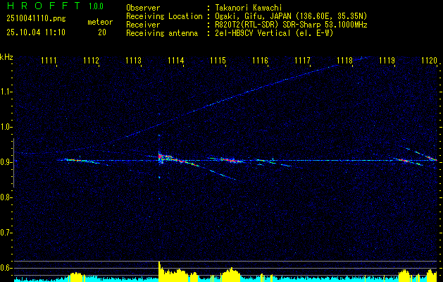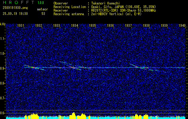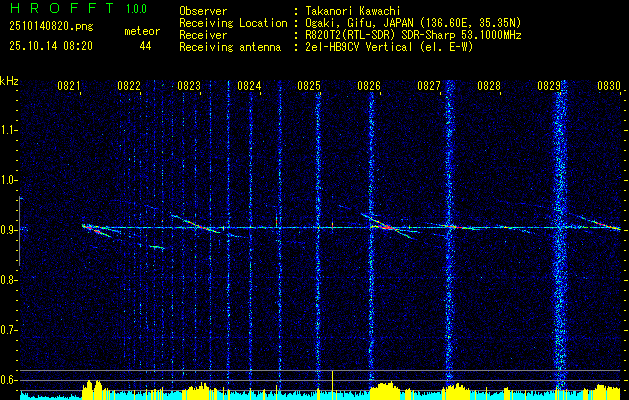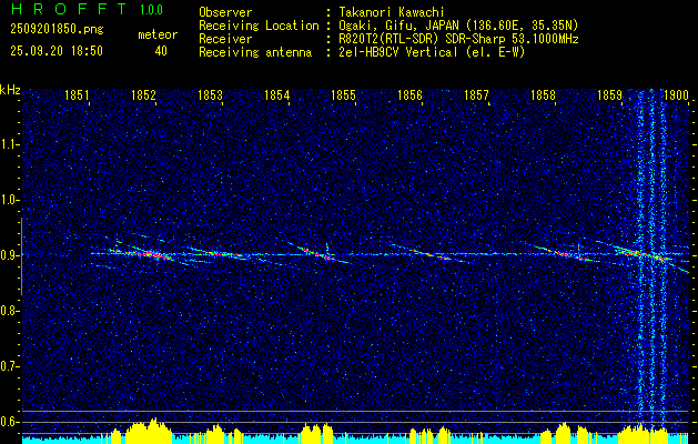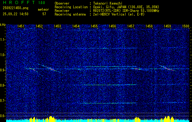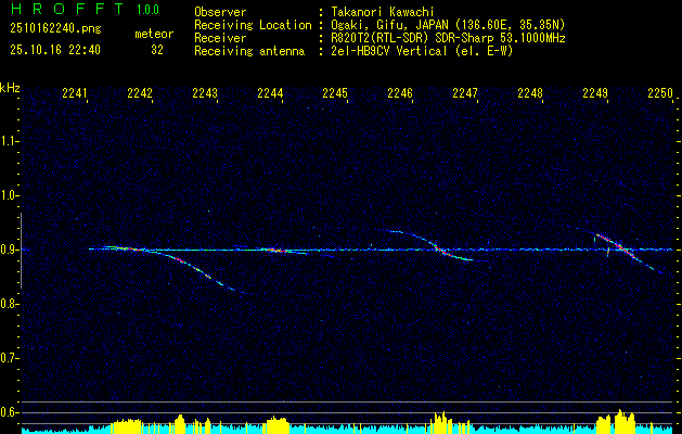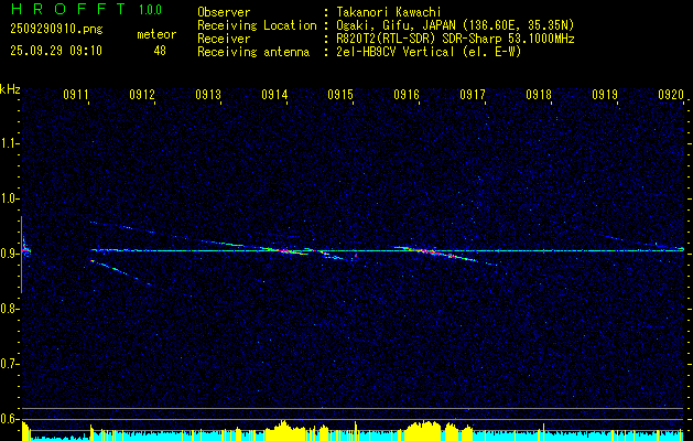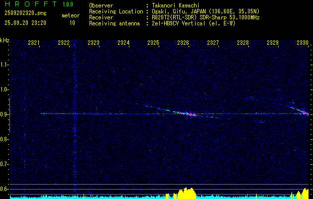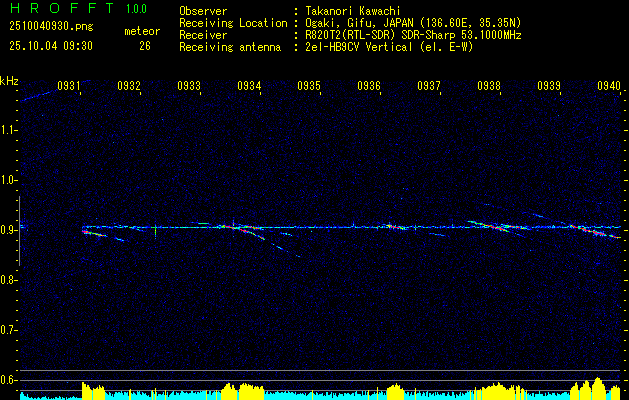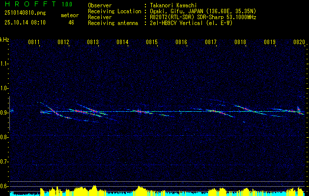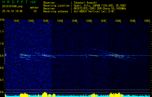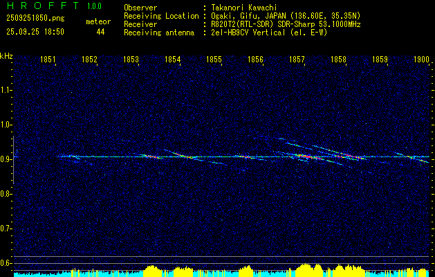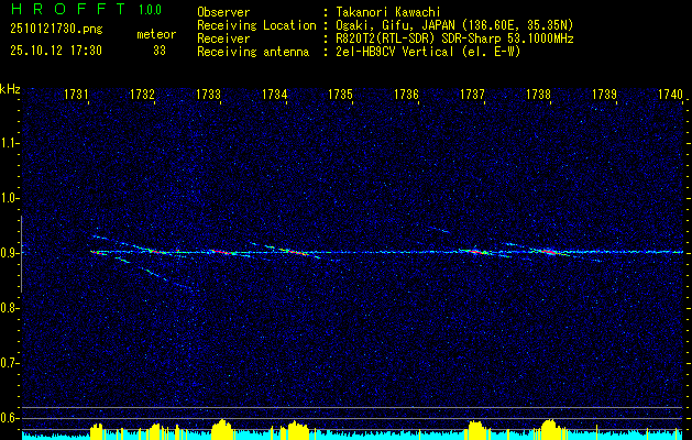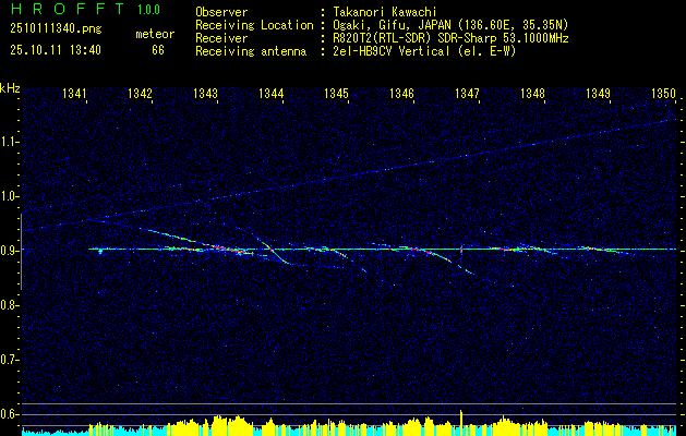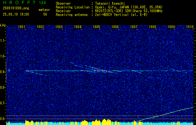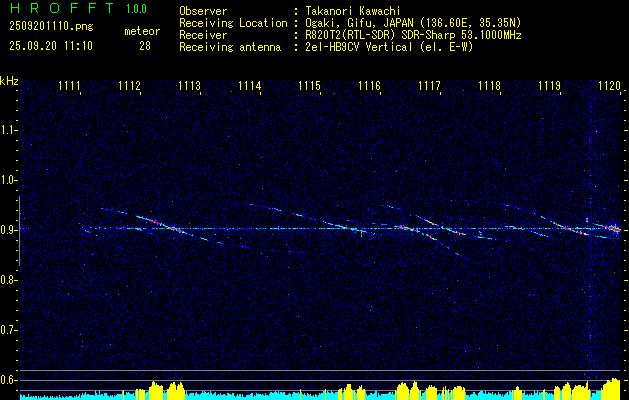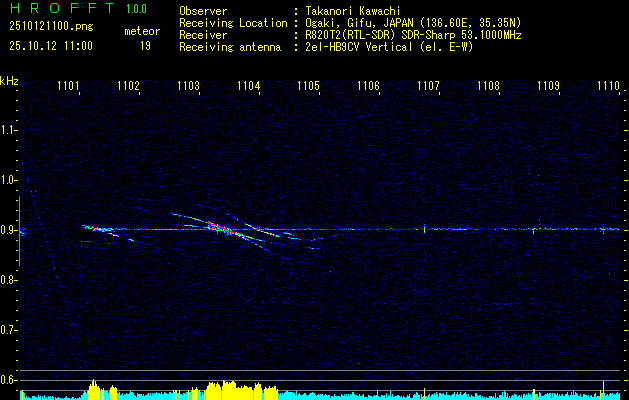 0.9kHz附近に発生している『点』または『塊』が流星によるエコーです.