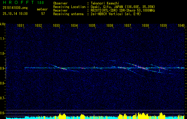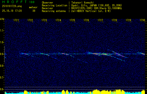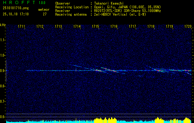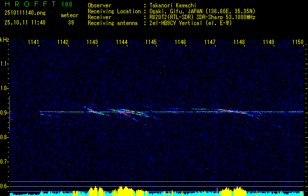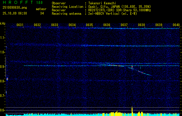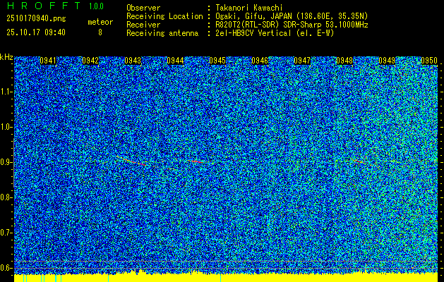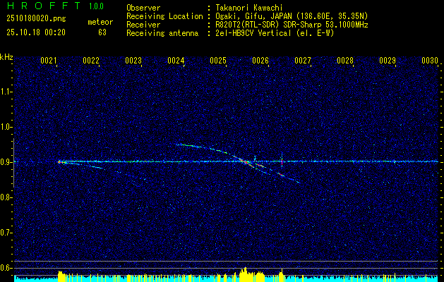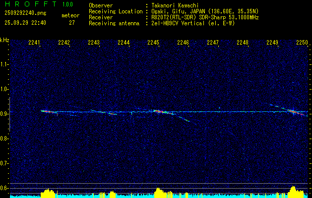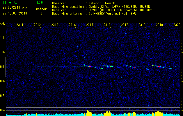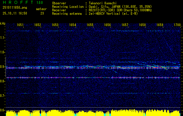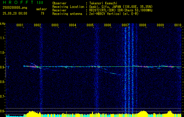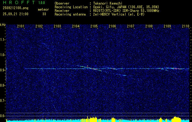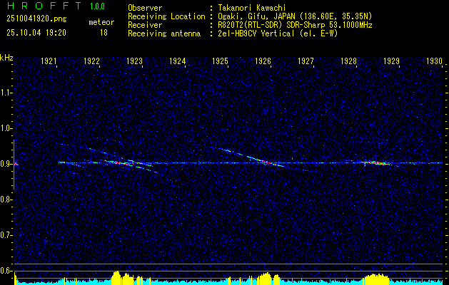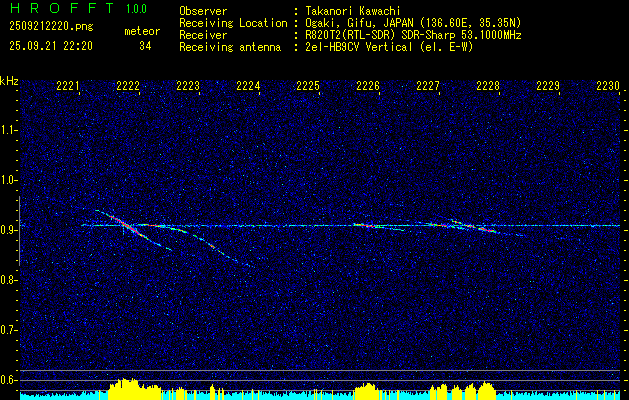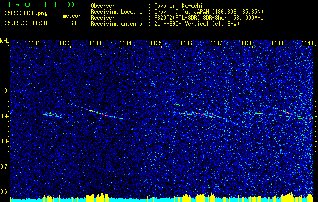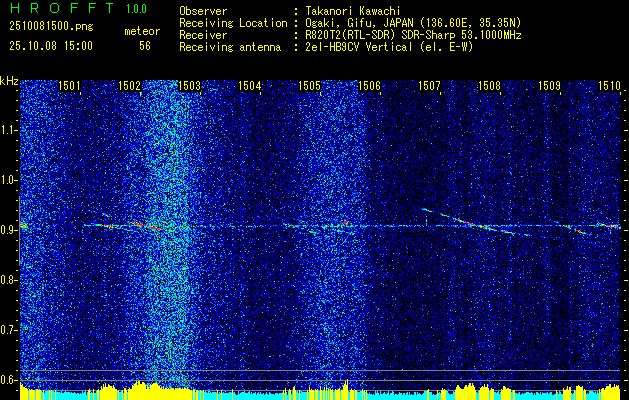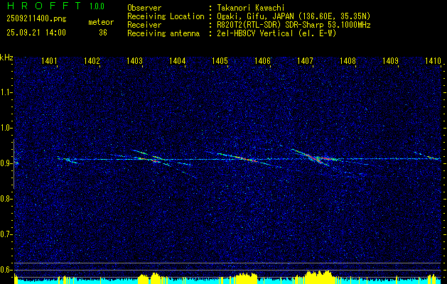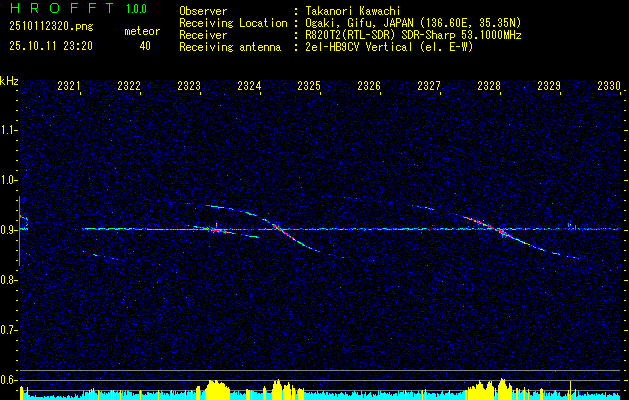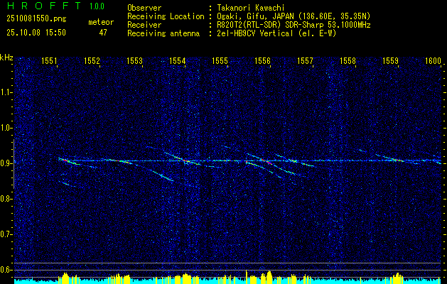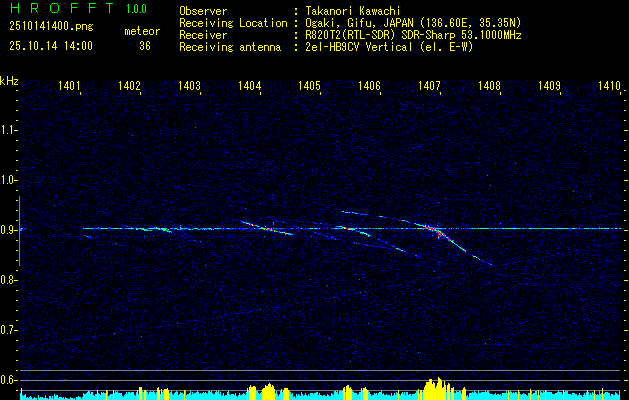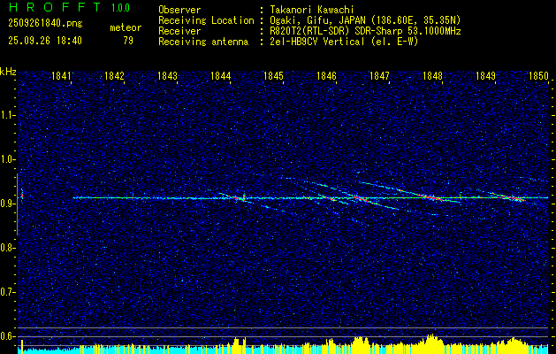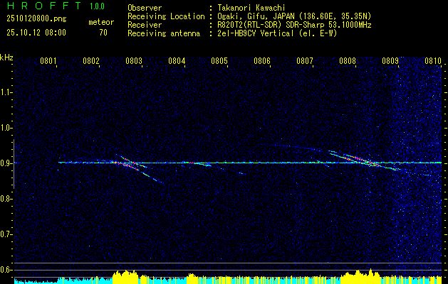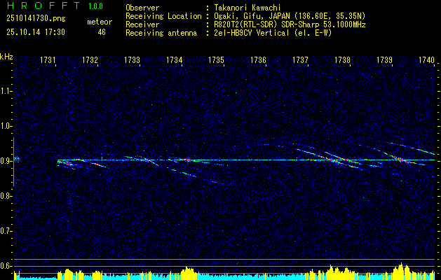 0.9kHz附近に発生している『点』または『塊』が流星によるエコーです.