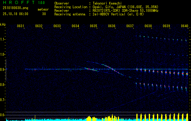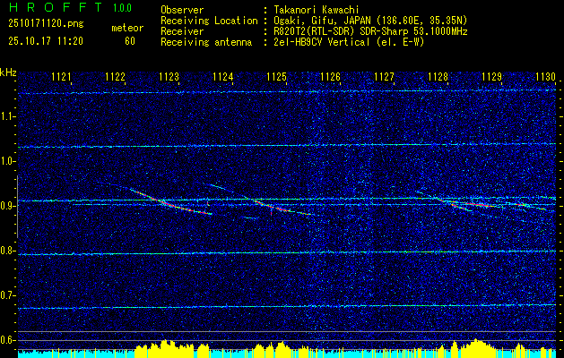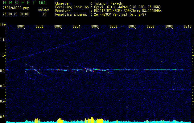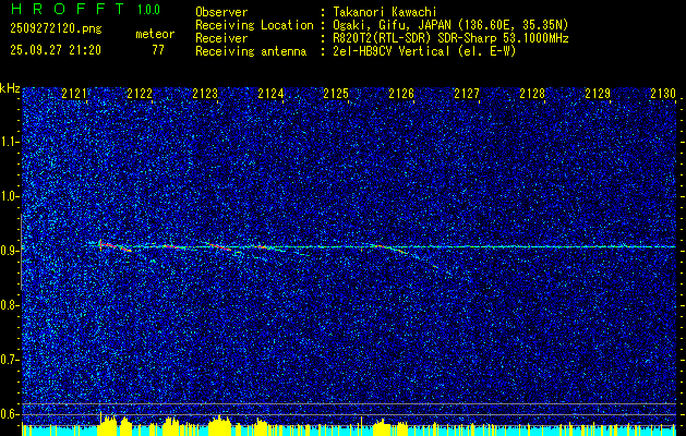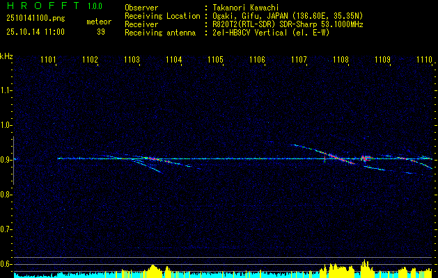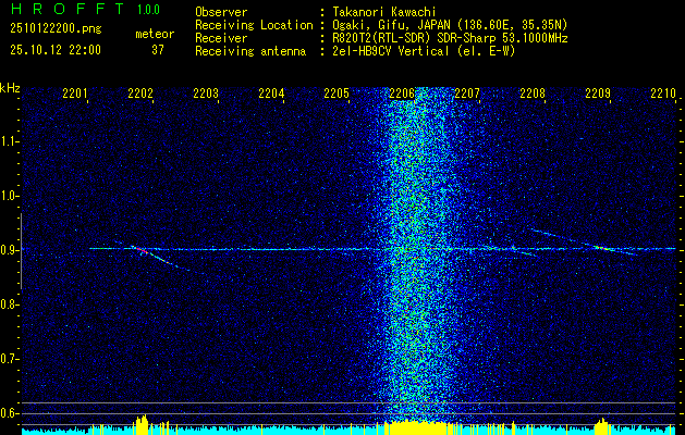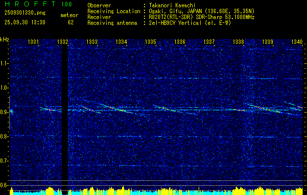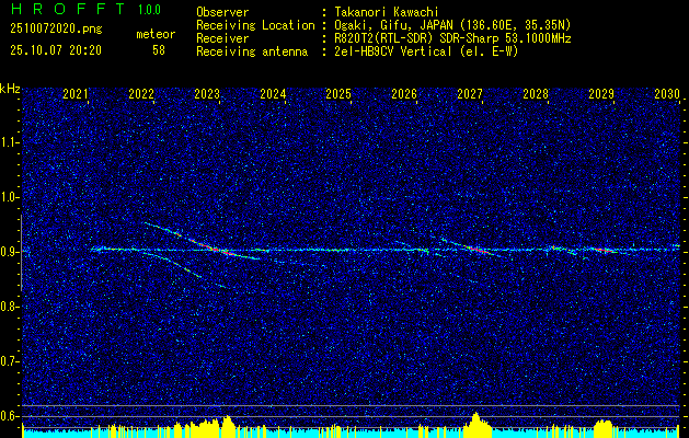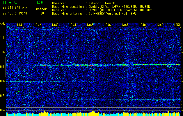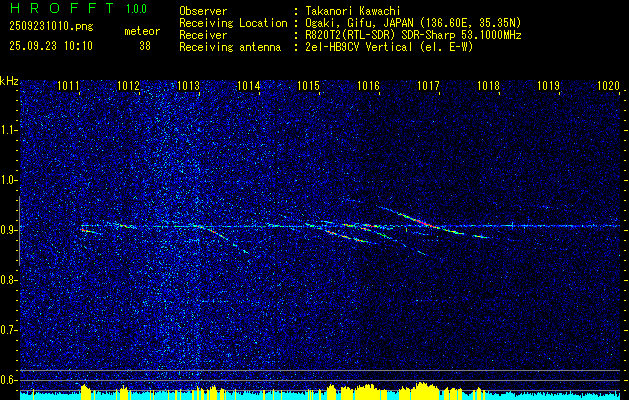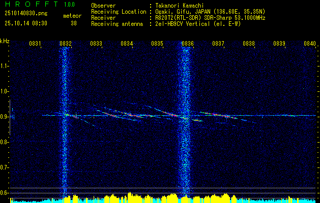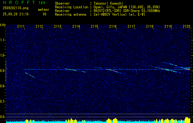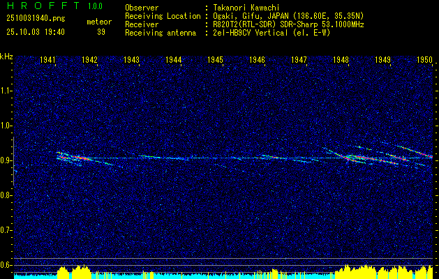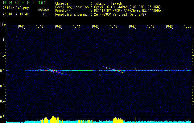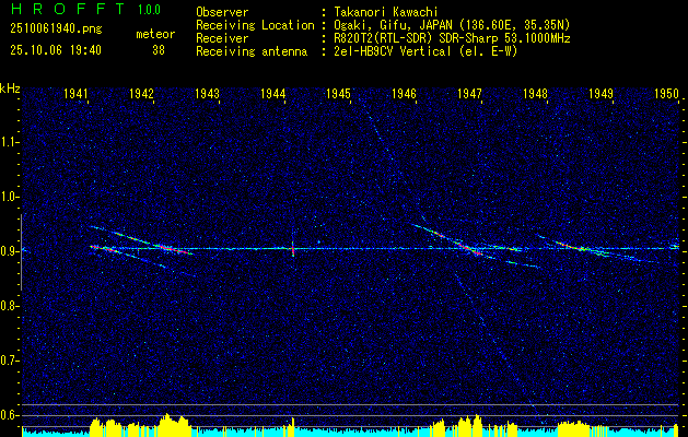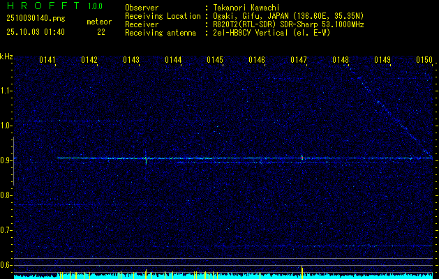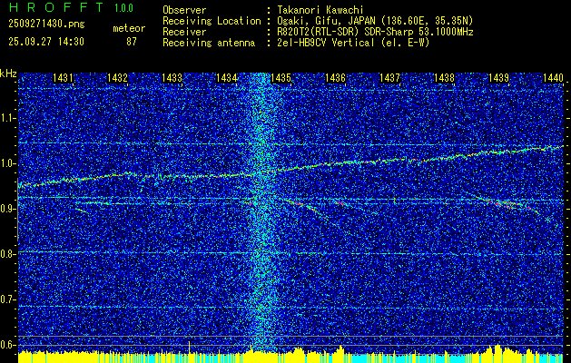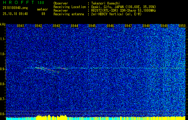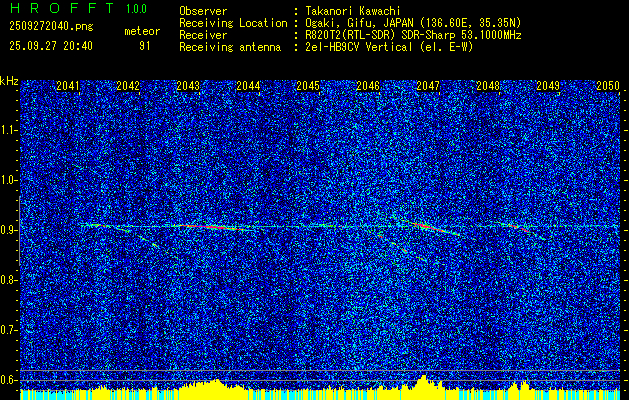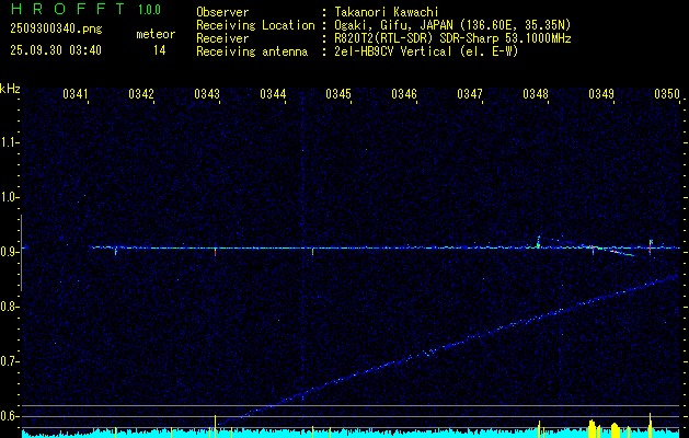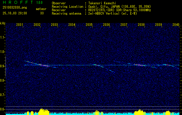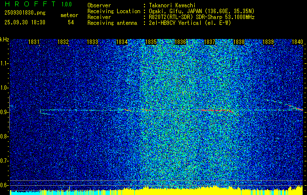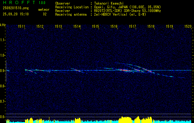 0.9kHz附近に発生している『点』または『塊』が流星によるエコーです.