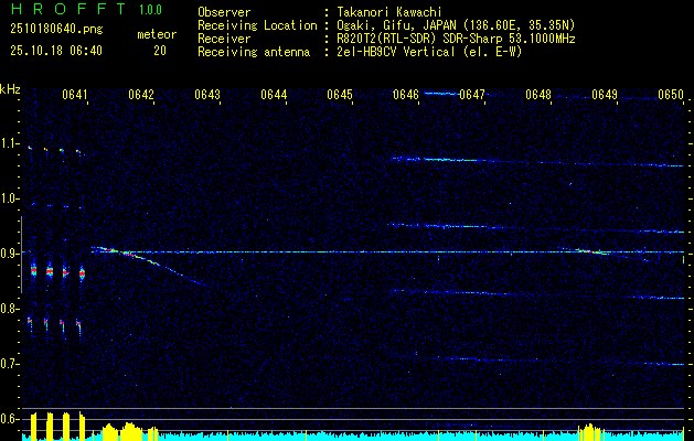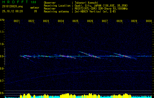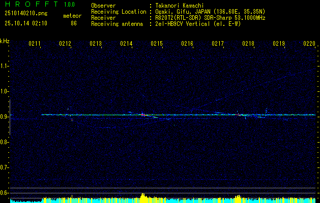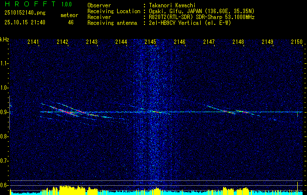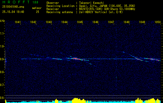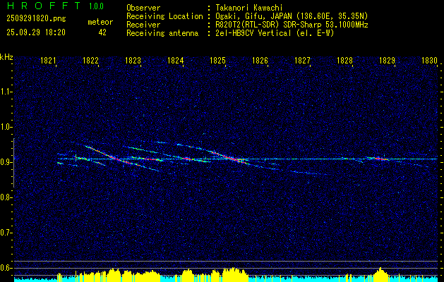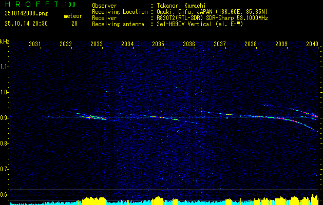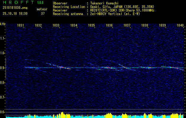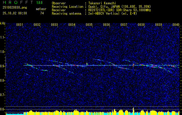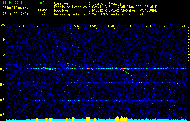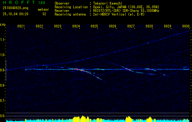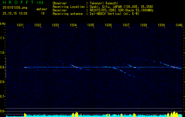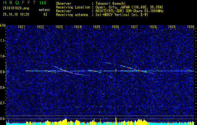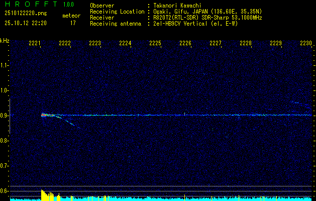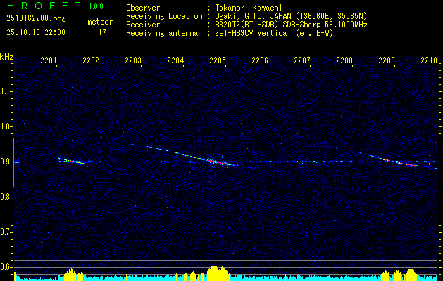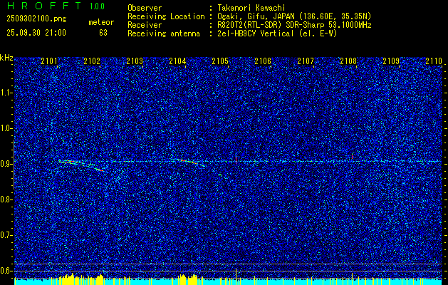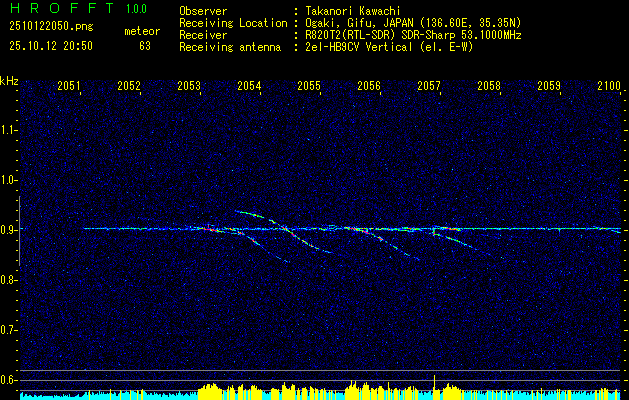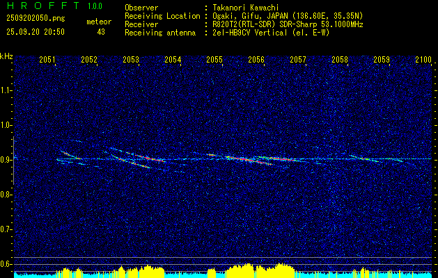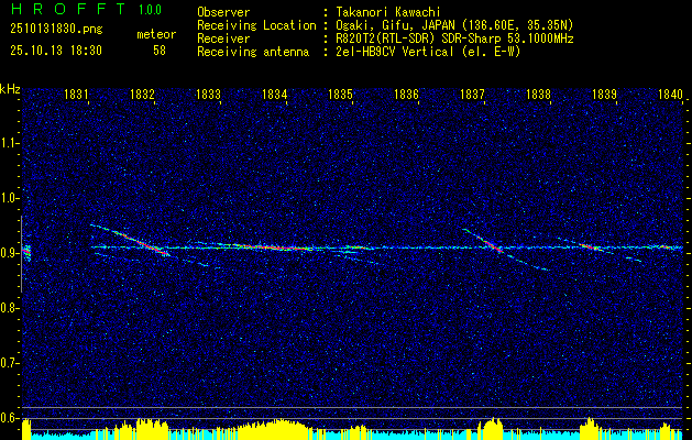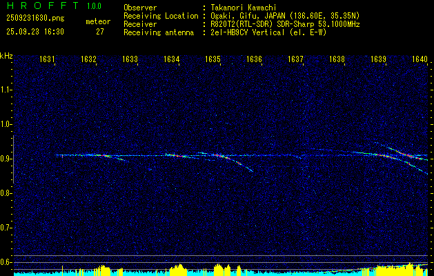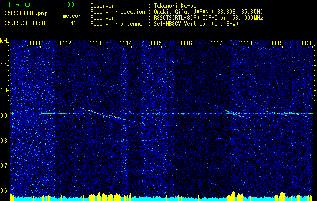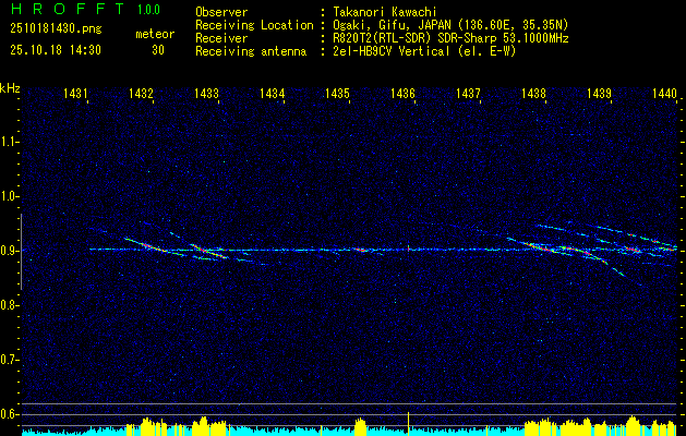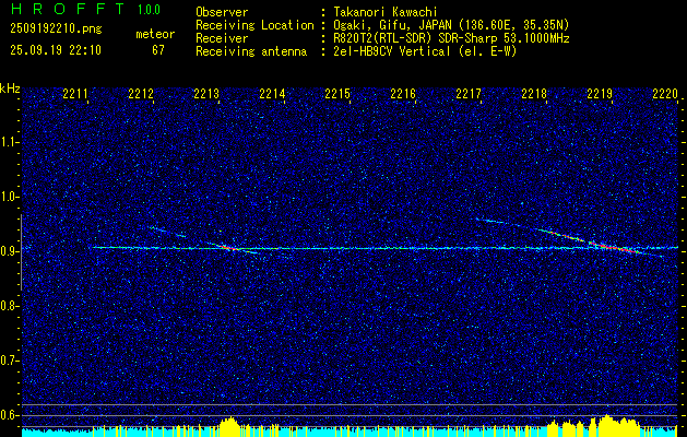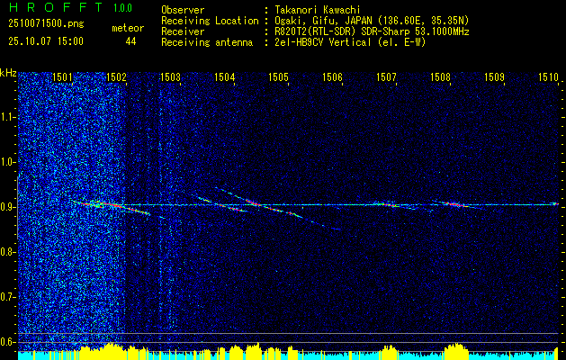 0.9kHz附近に発生している『点』または『塊』が流星によるエコーです.