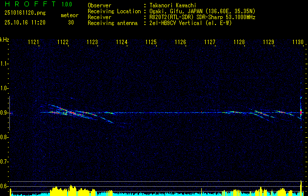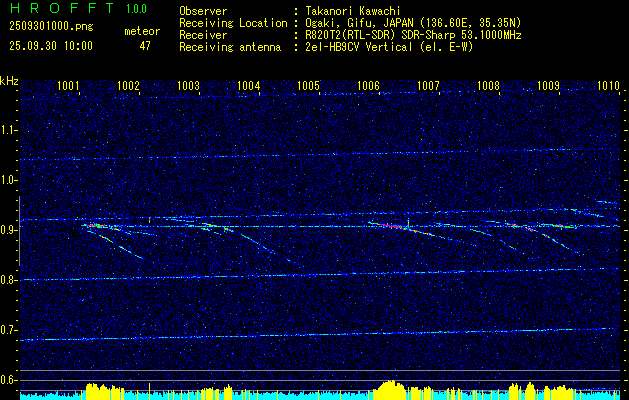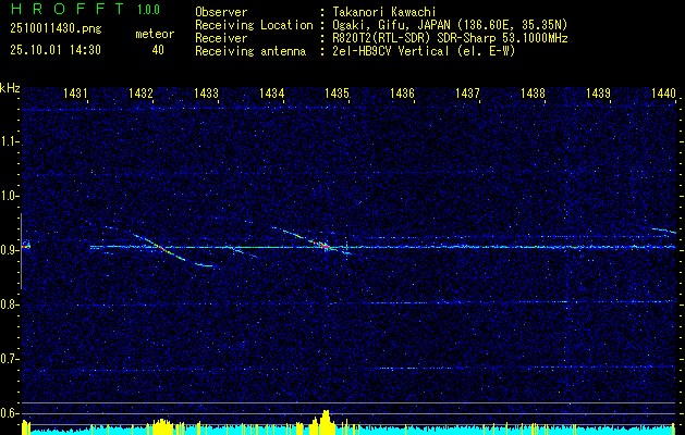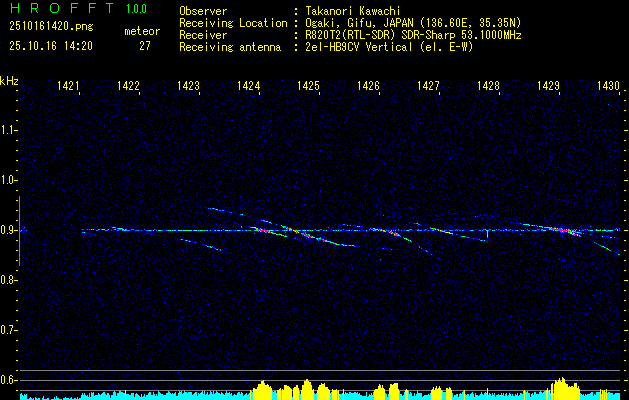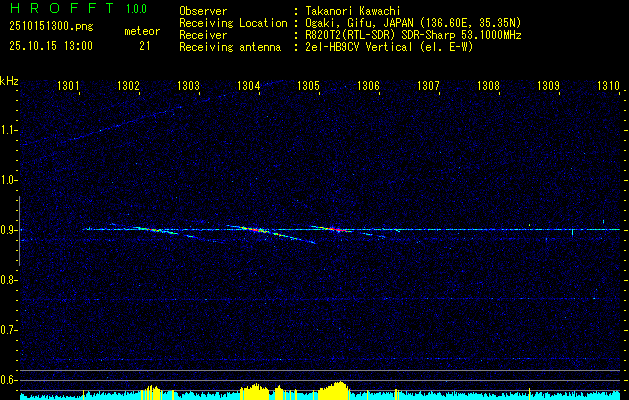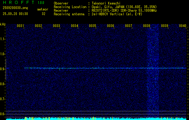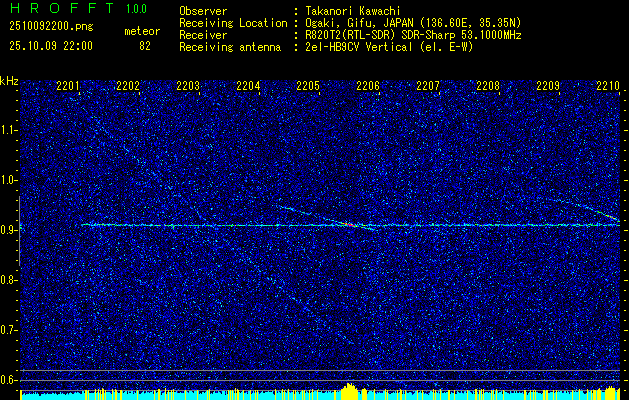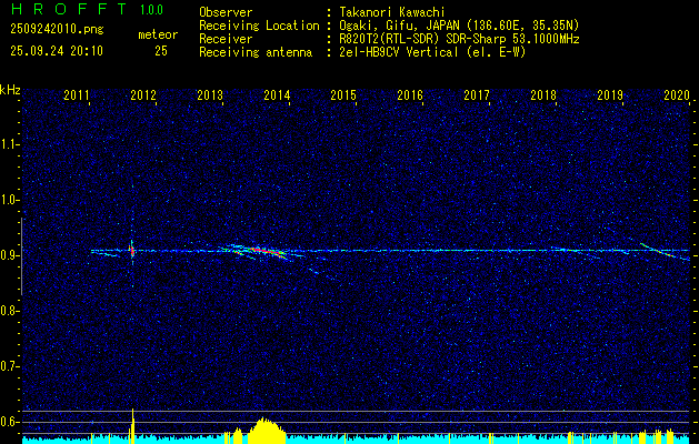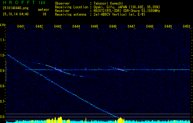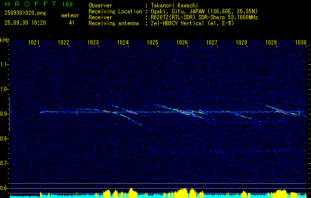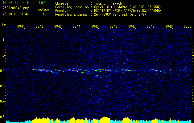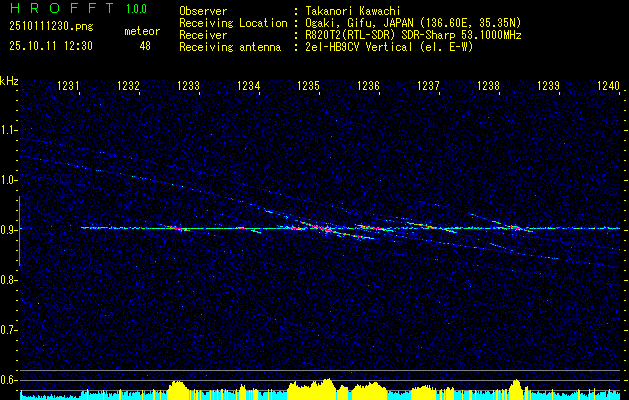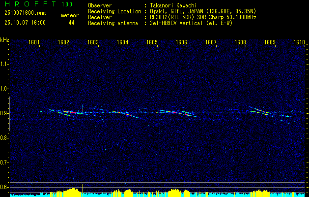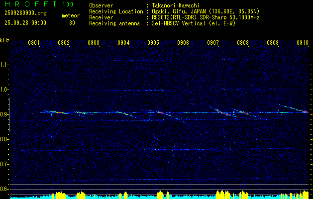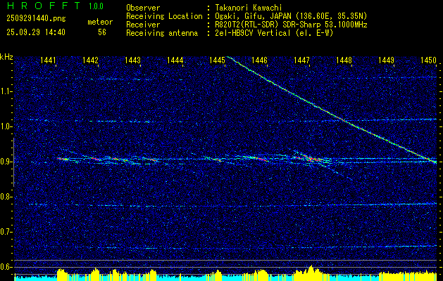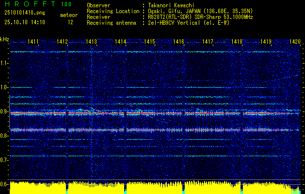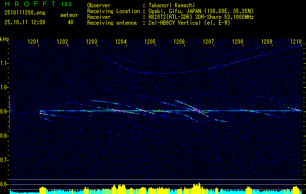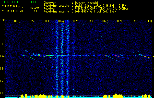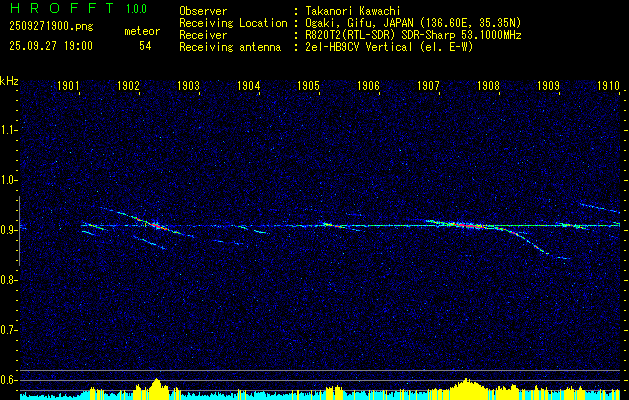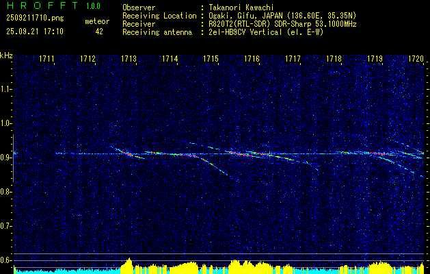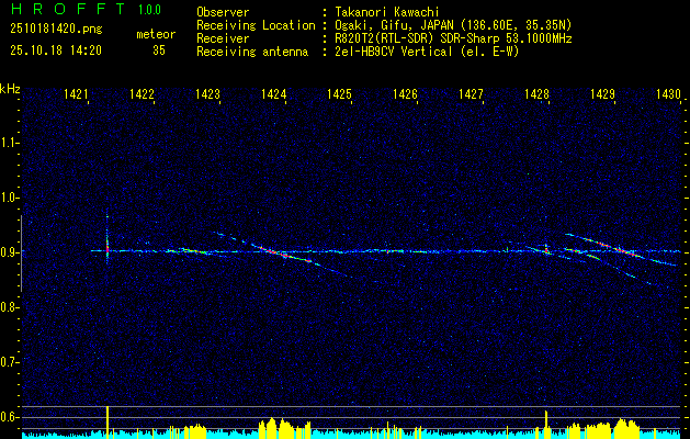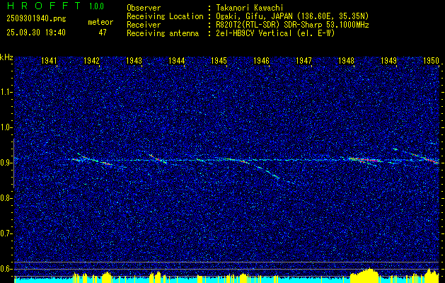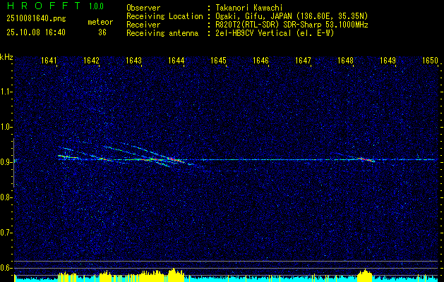 0.9kHz附近に発生している『点』または『塊』が流星によるエコーです.