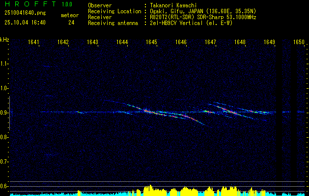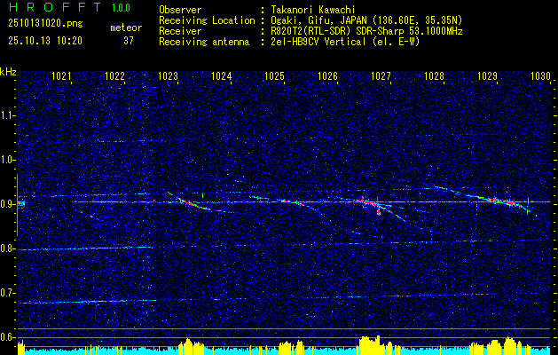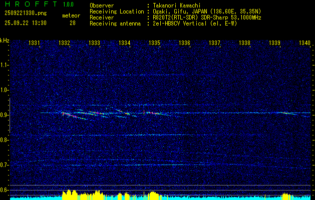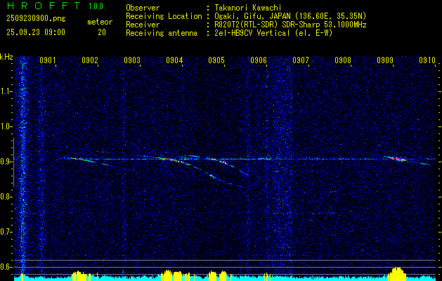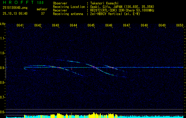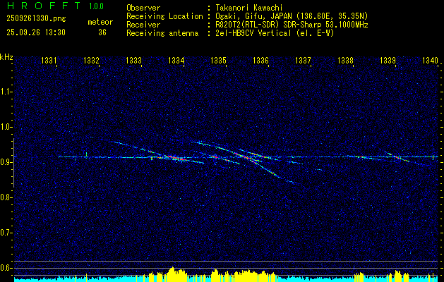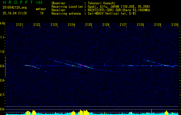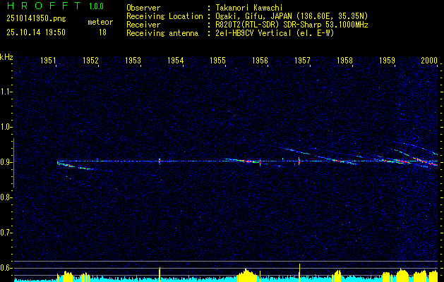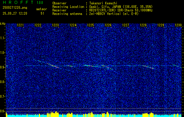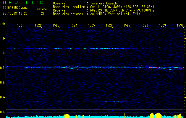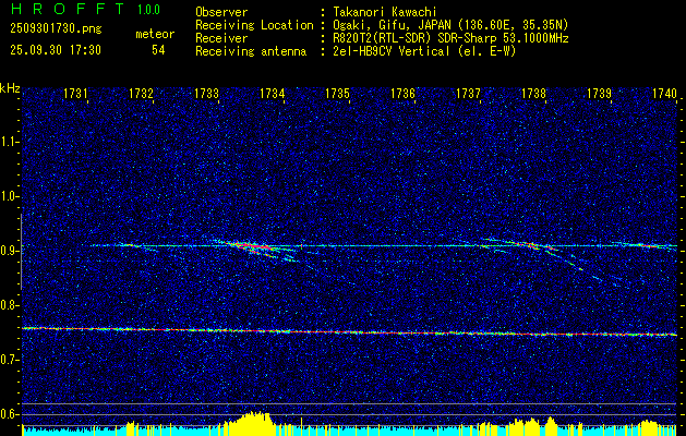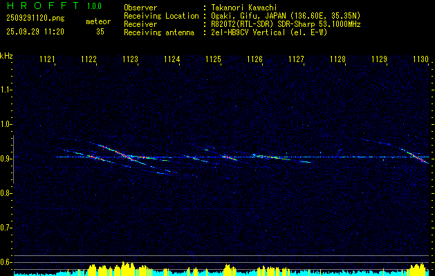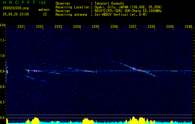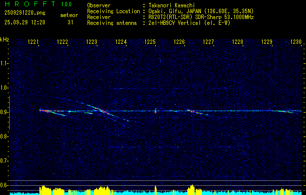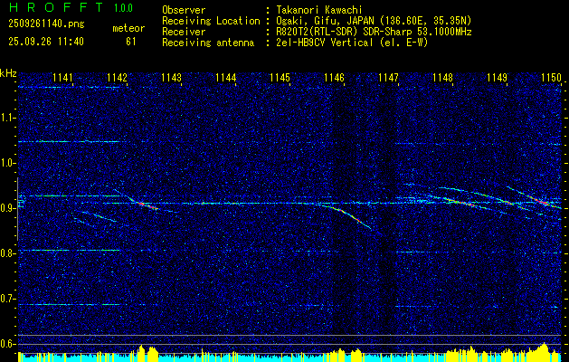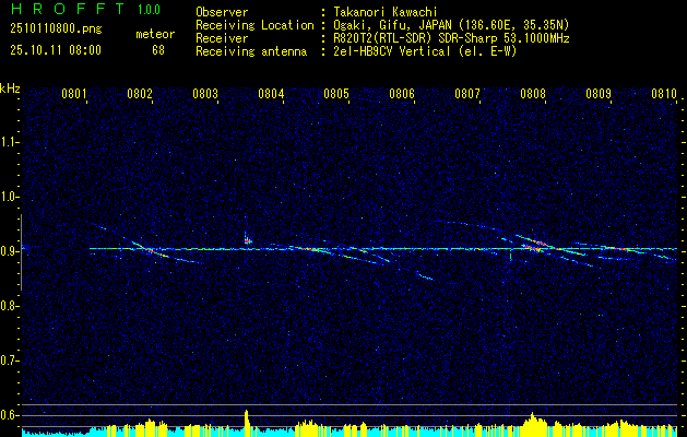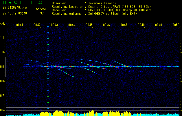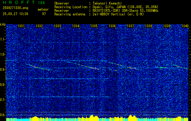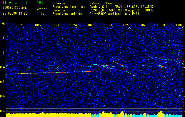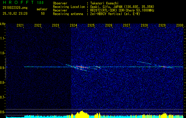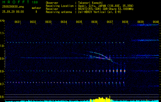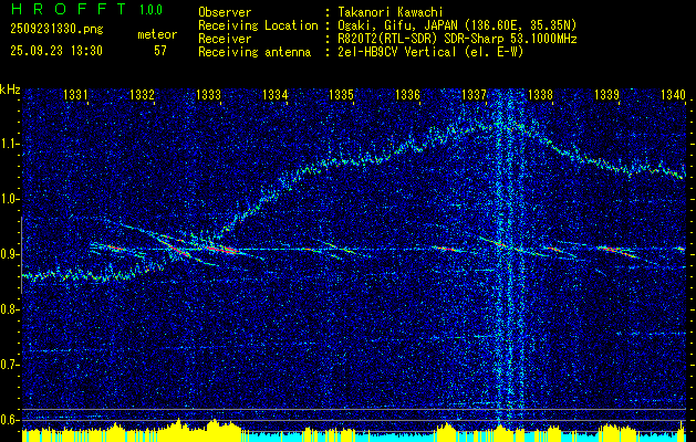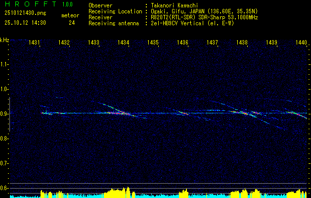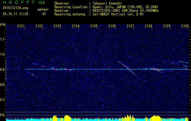 0.9kHz附近に発生している『点』または『塊』が流星によるエコーです.