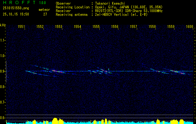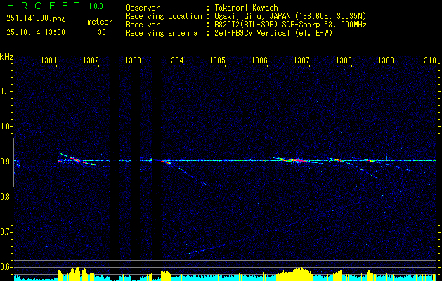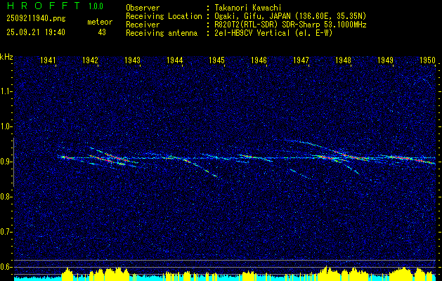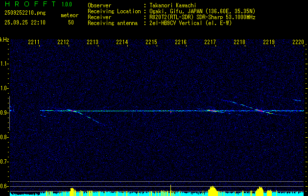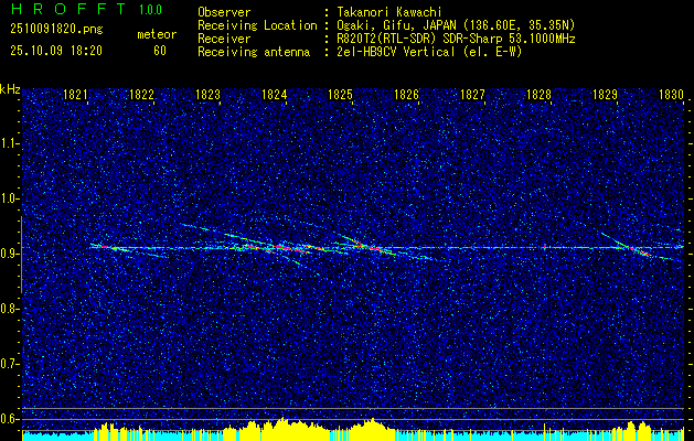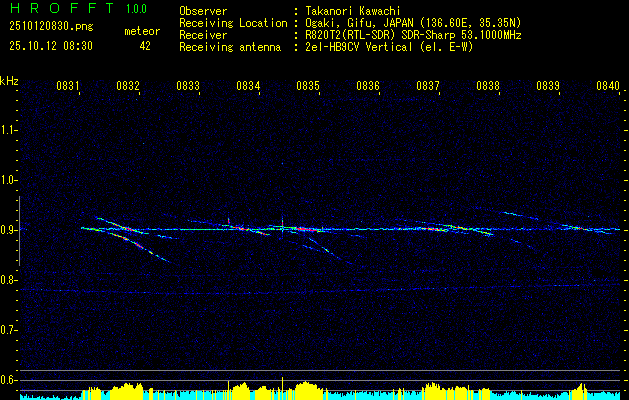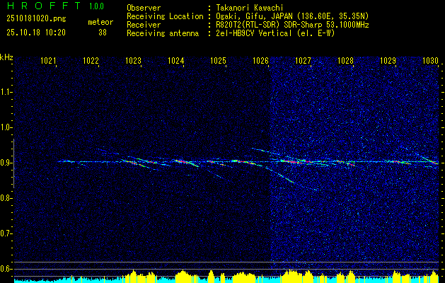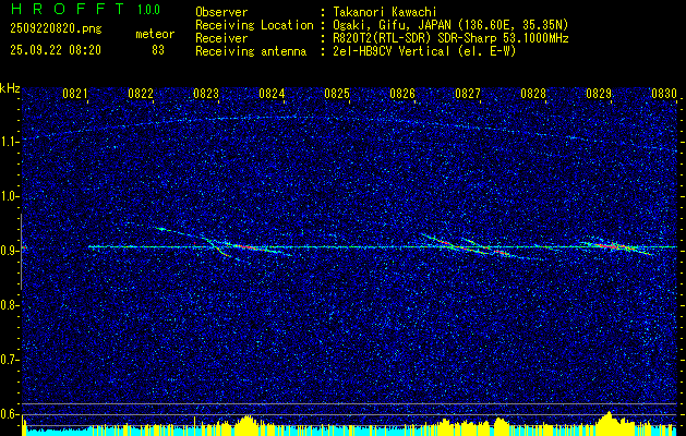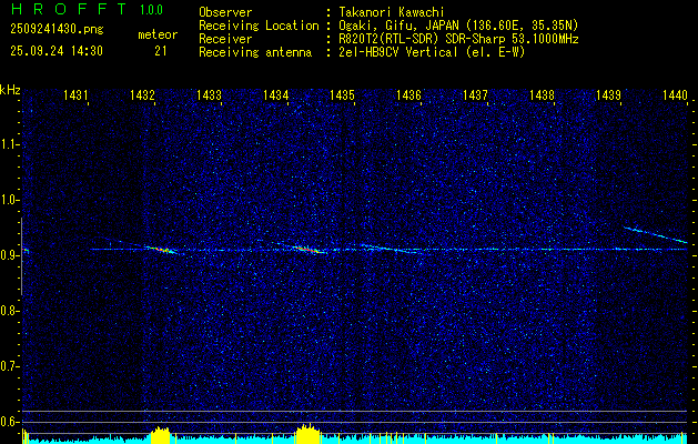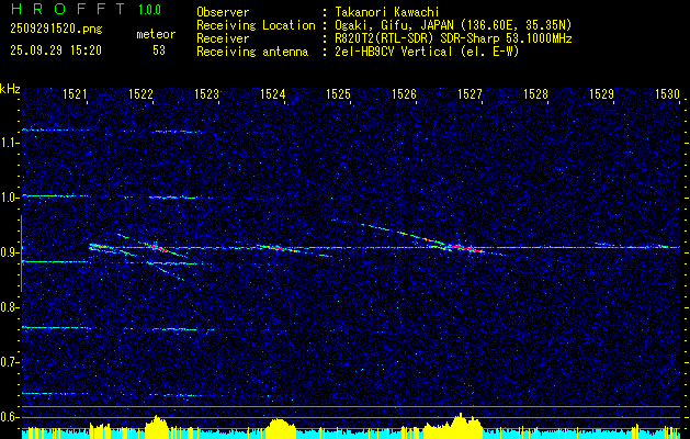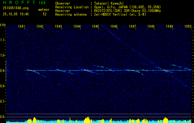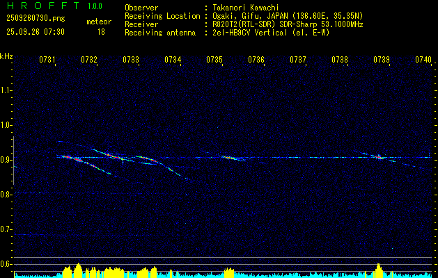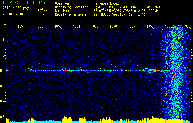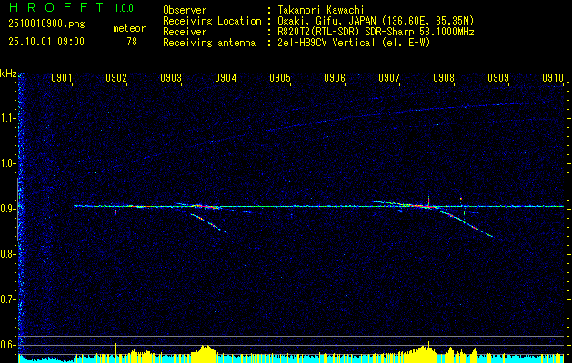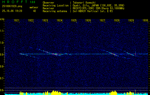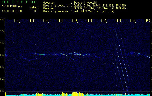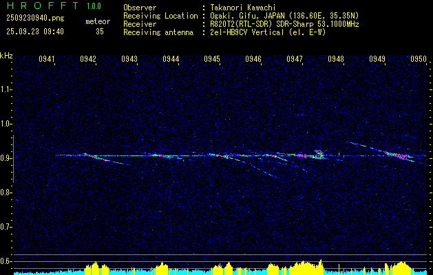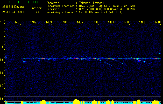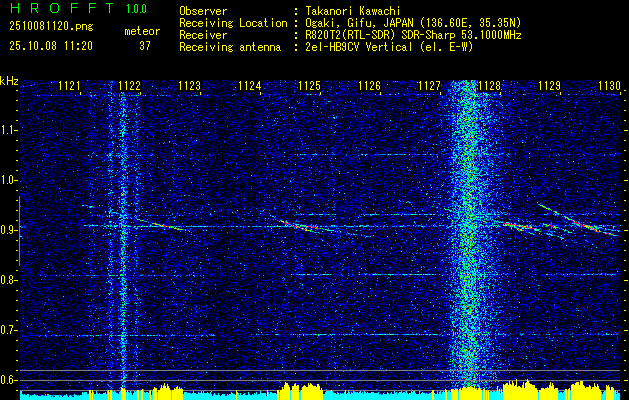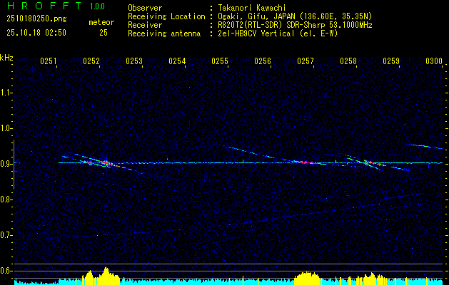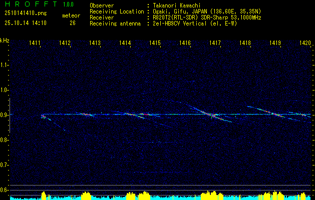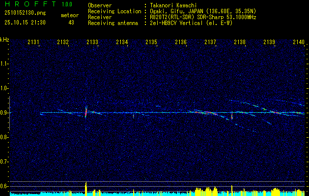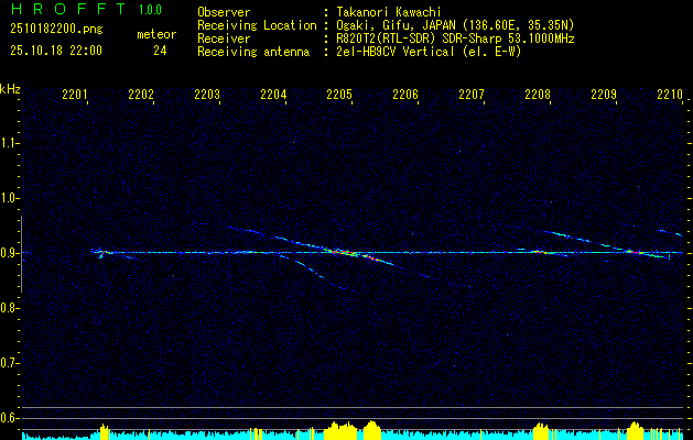 0.9kHz附近に発生している『点』または『塊』が流星によるエコーです.
