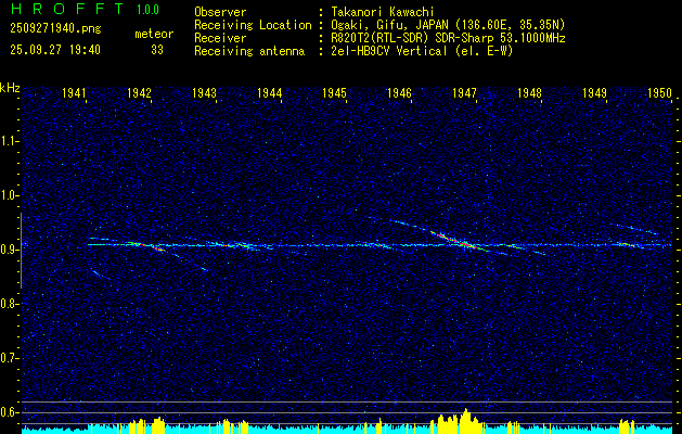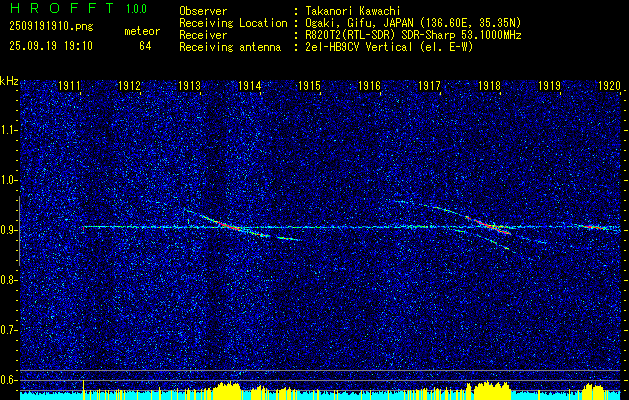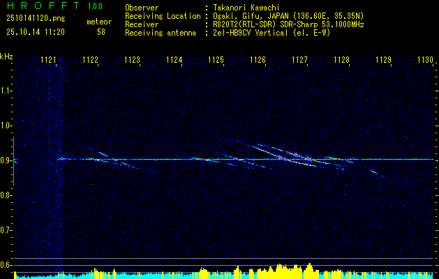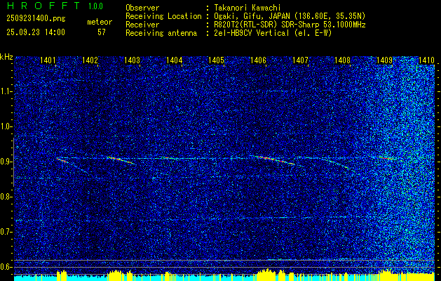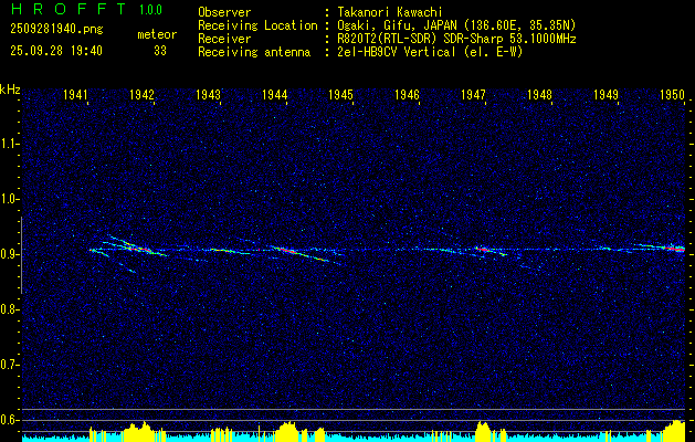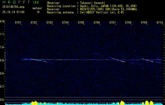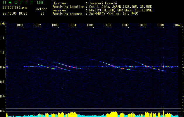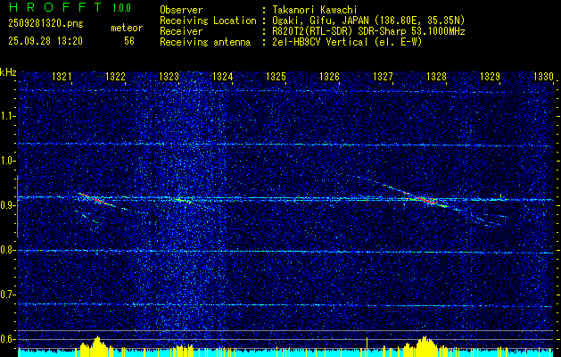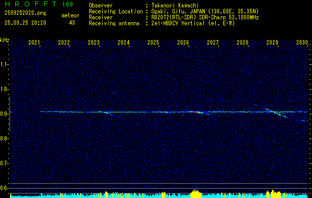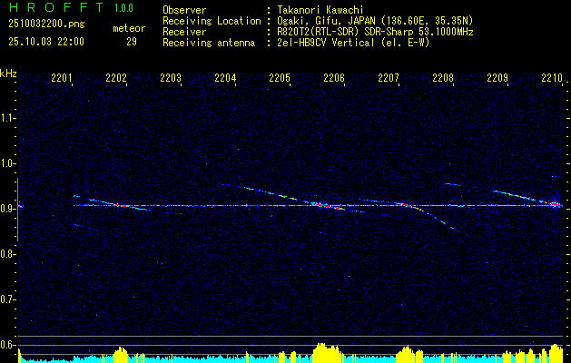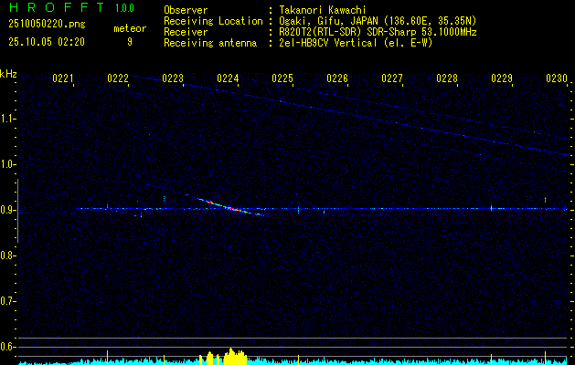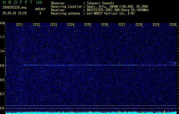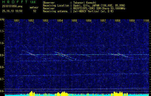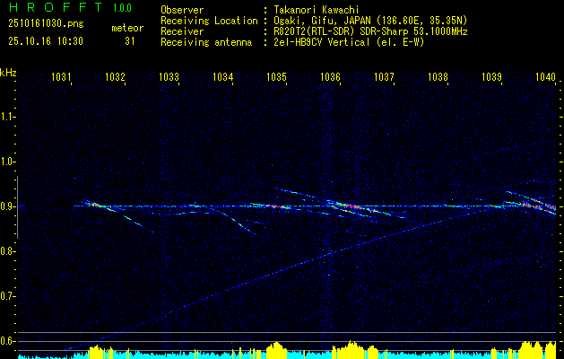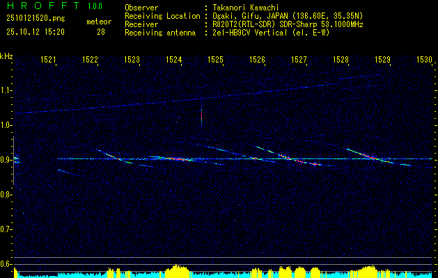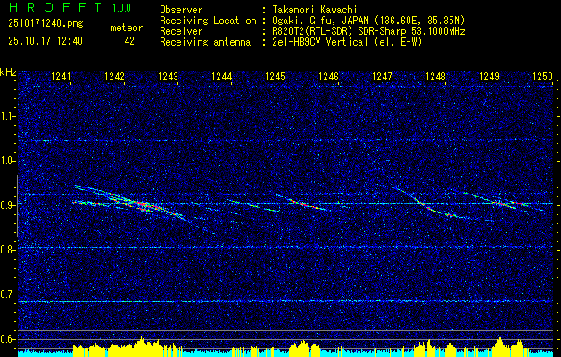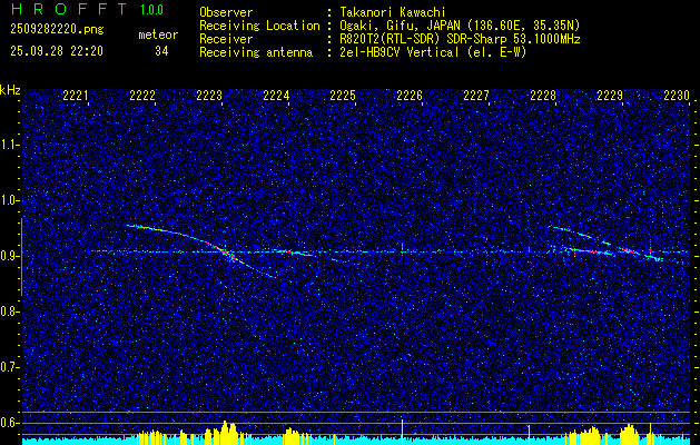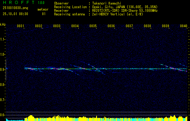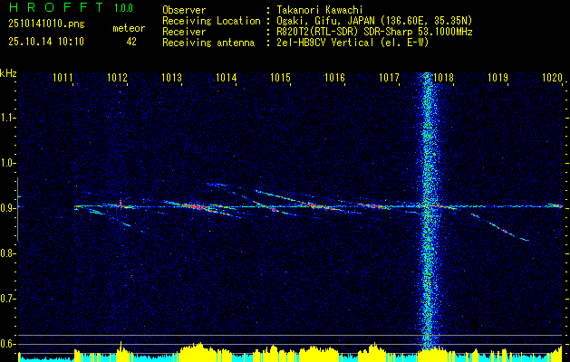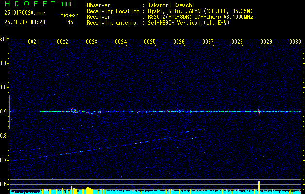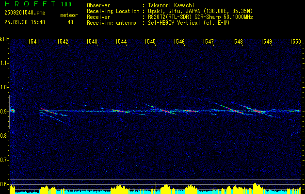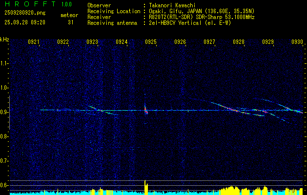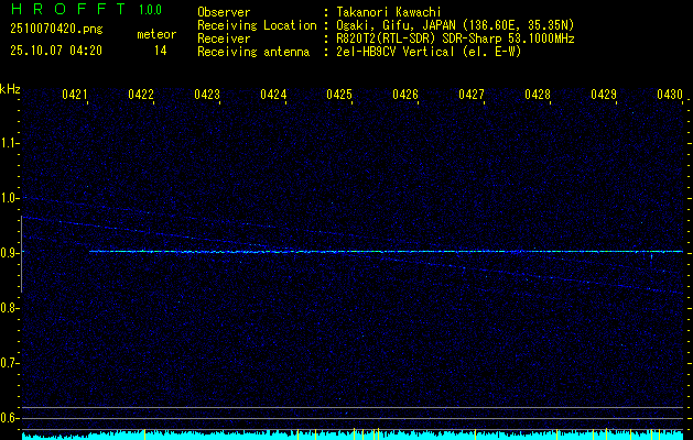 0.9kHz附近に発生している『点』または『塊』が流星によるエコーです.