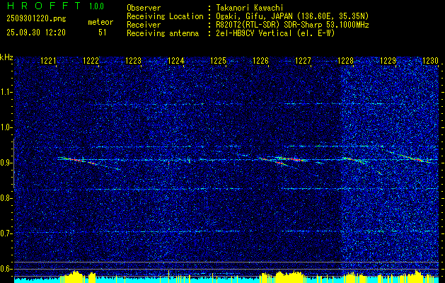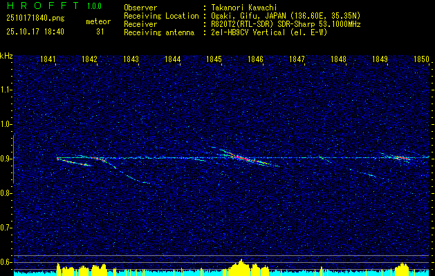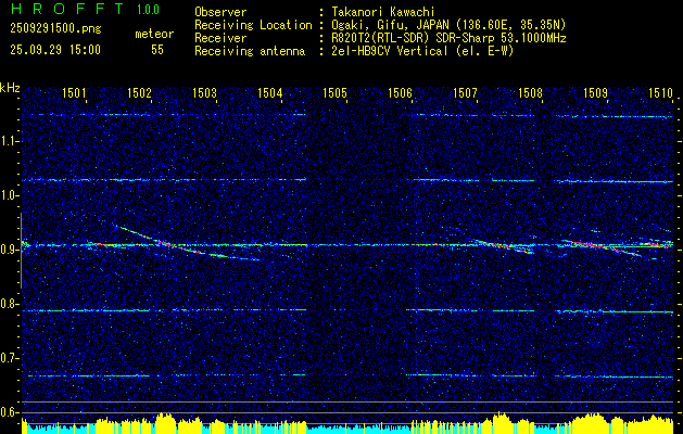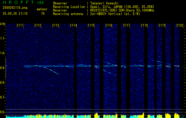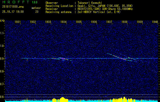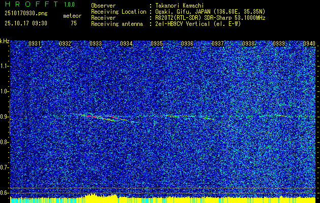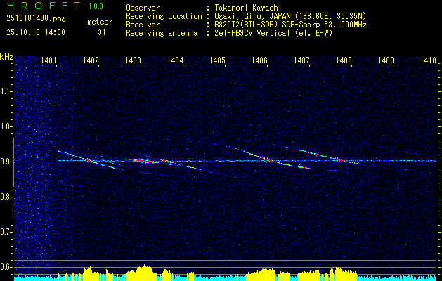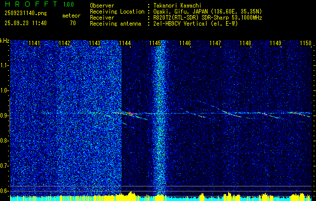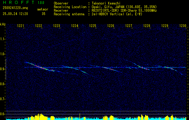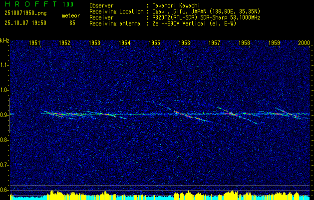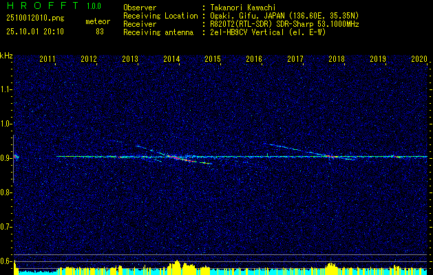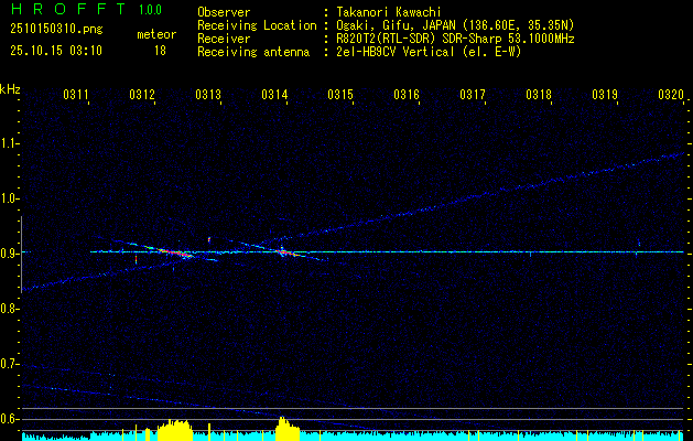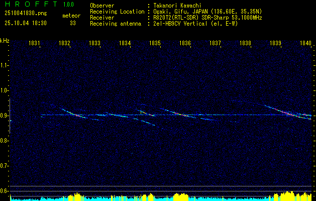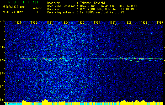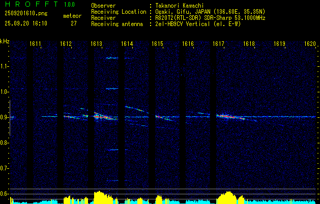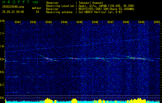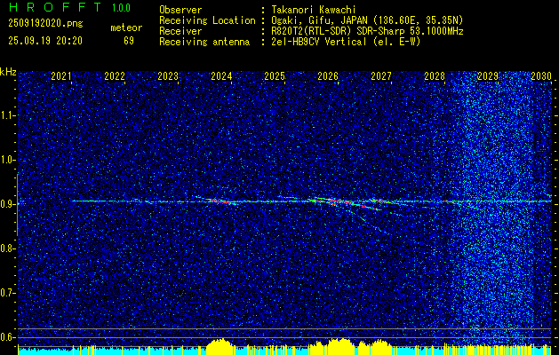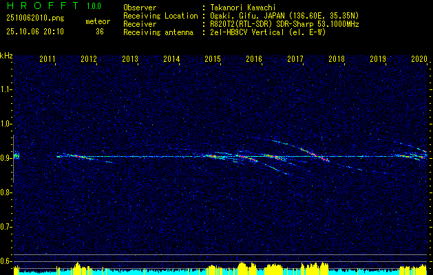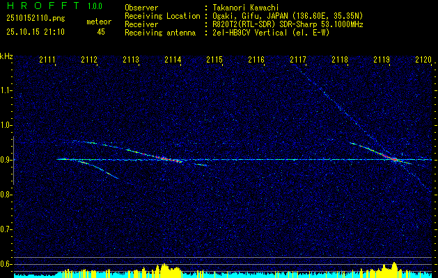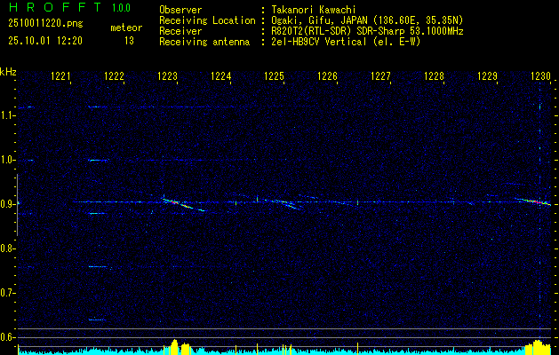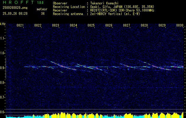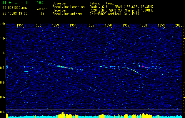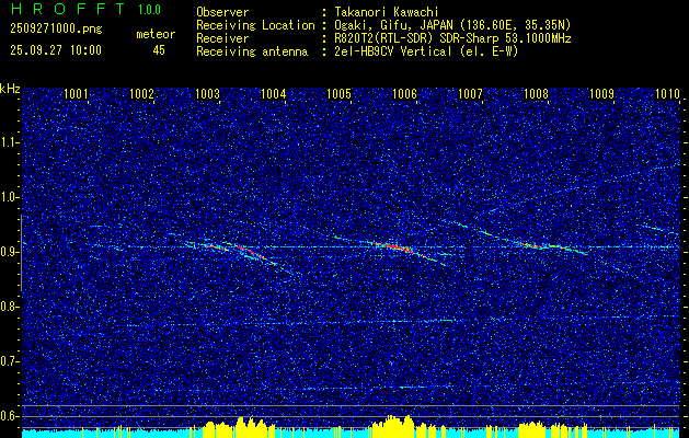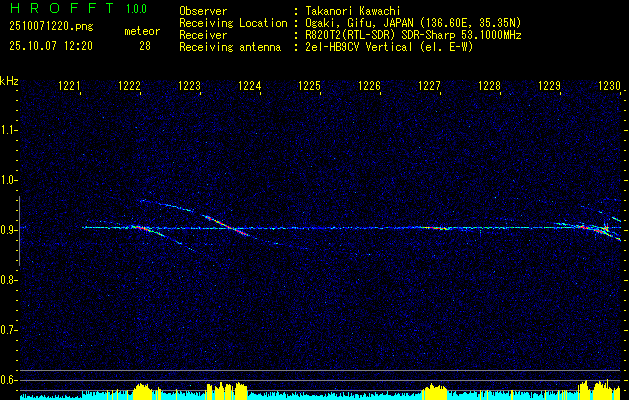 0.9kHz附近に発生している『点』または『塊』が流星によるエコーです.