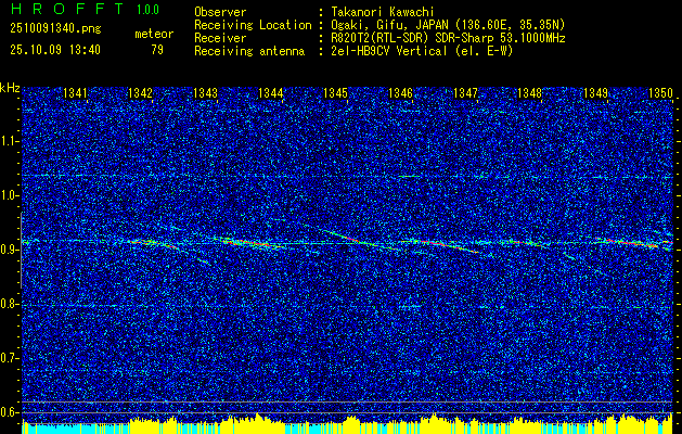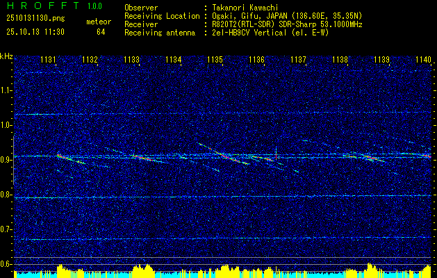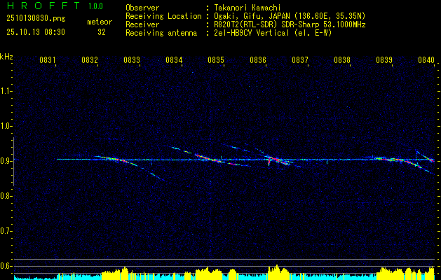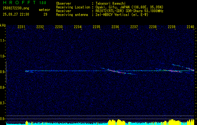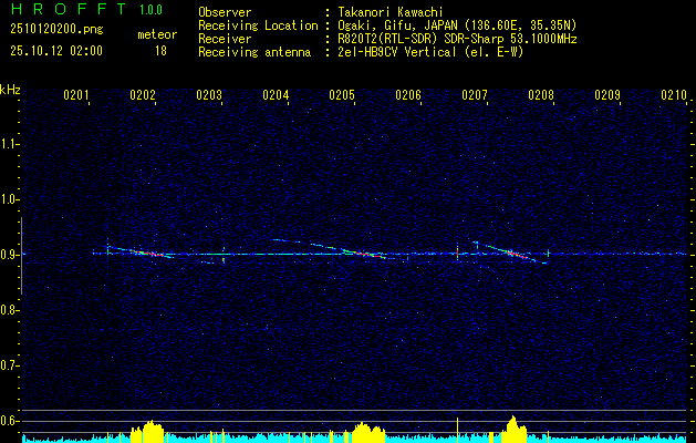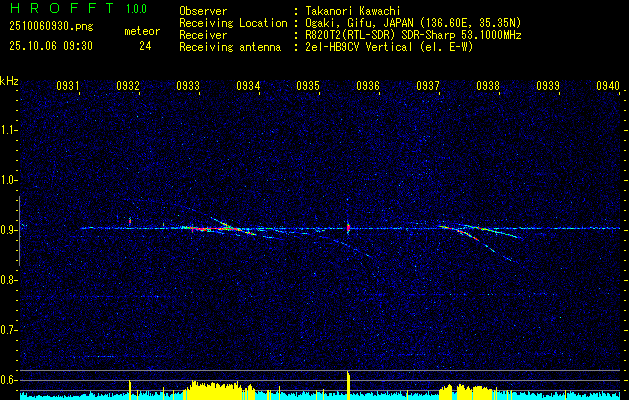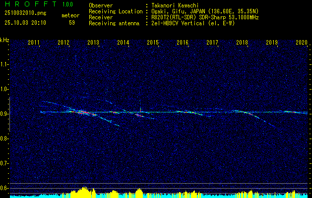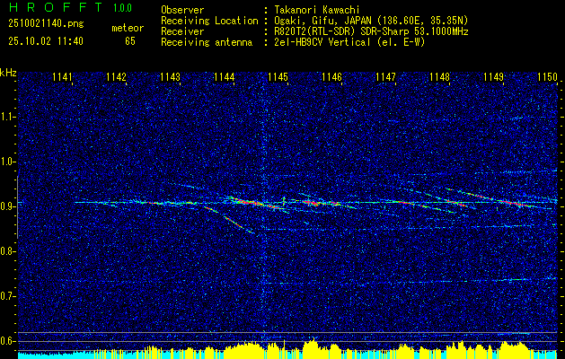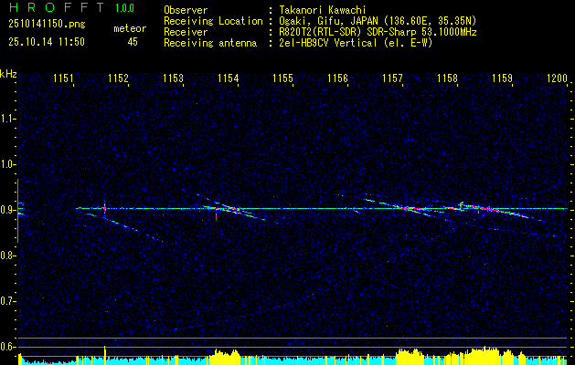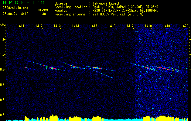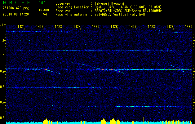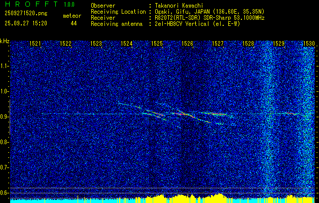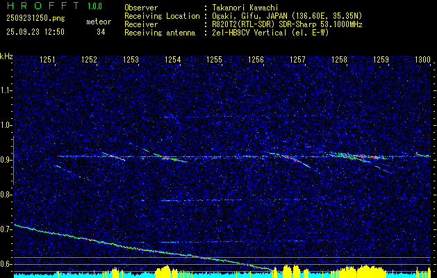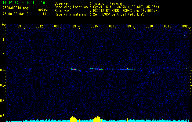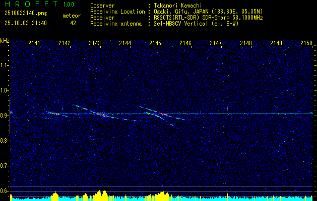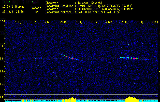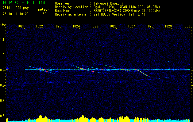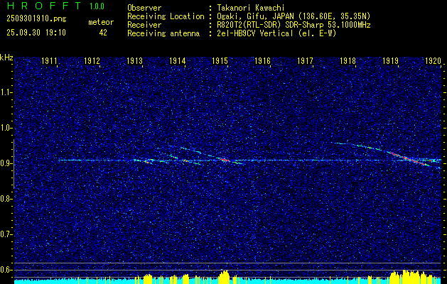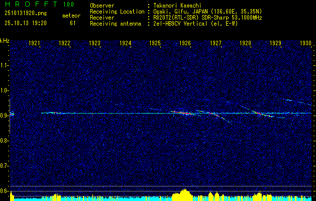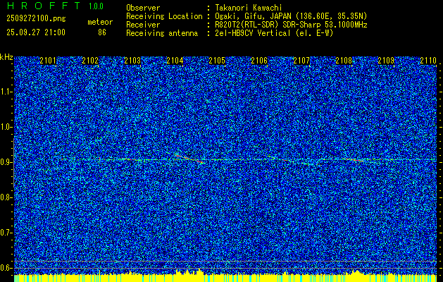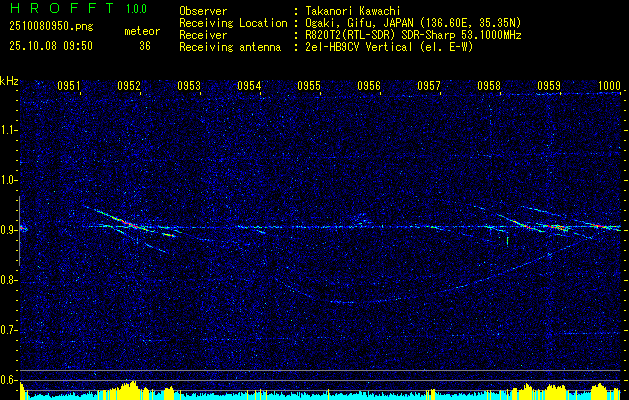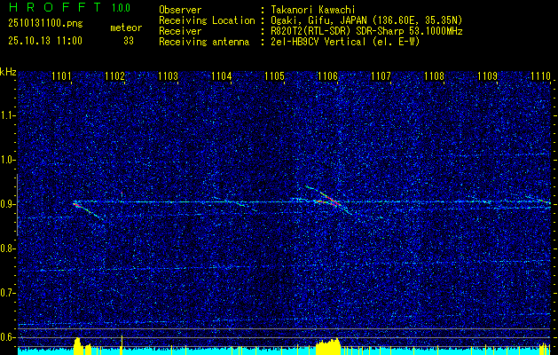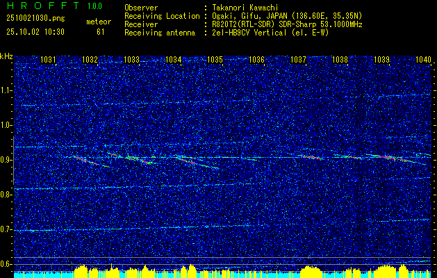 0.9kHz附近に発生している『点』または『塊』が流星によるエコーです.