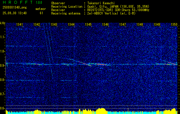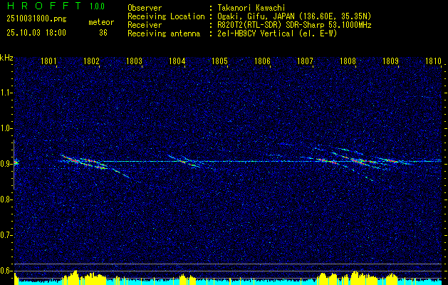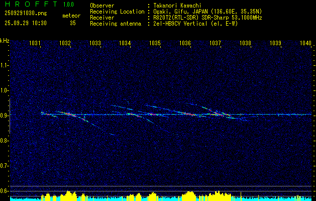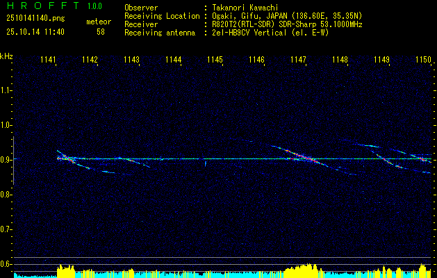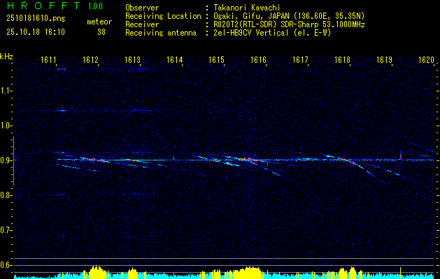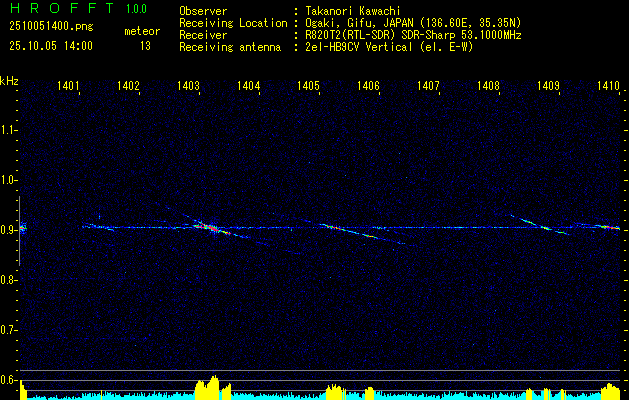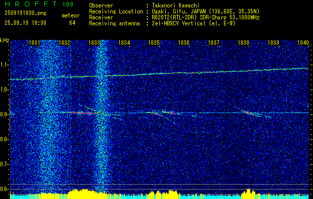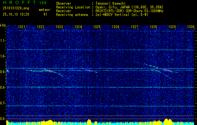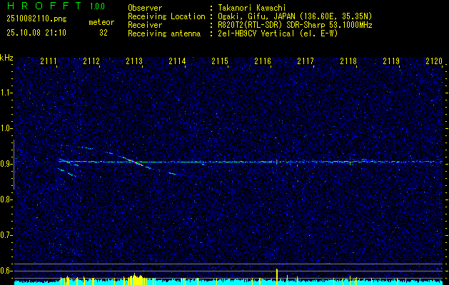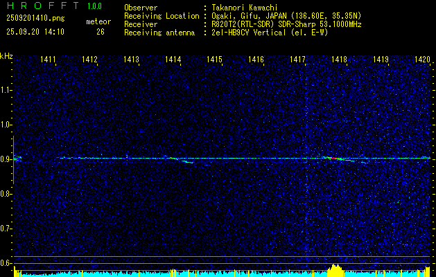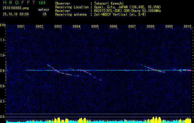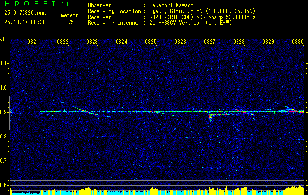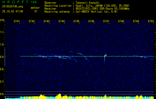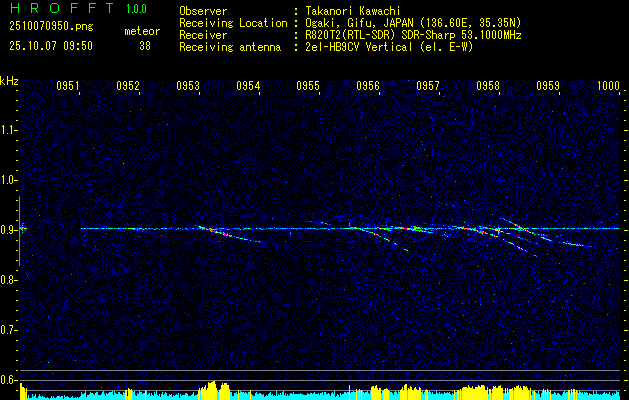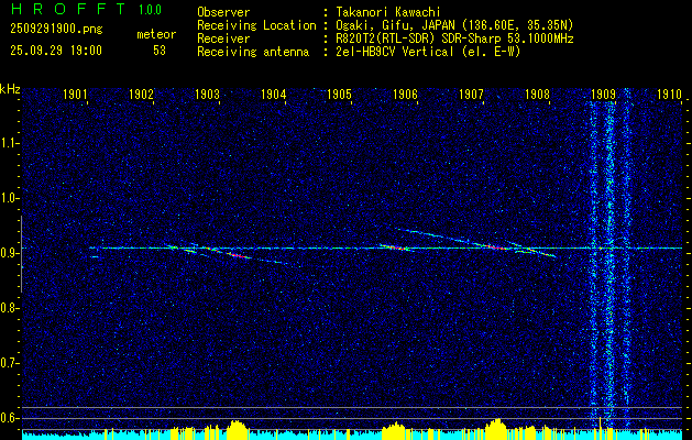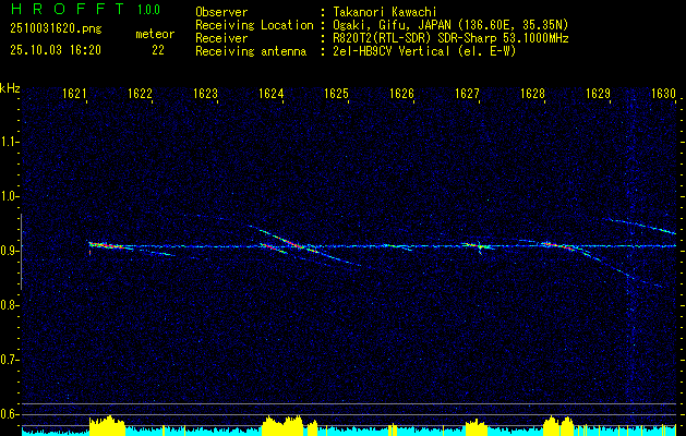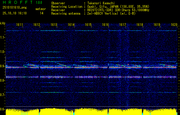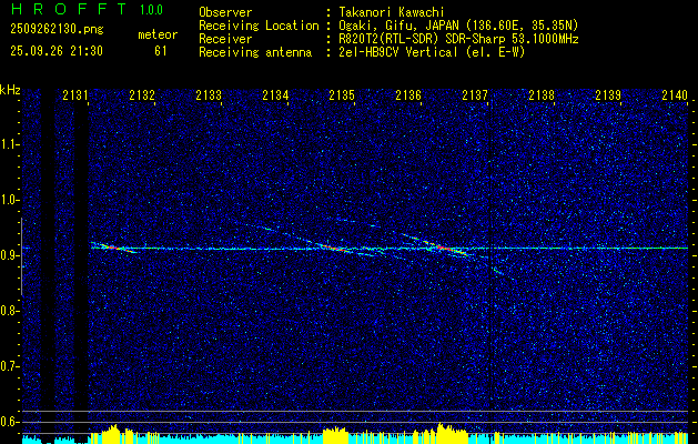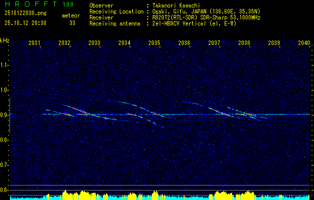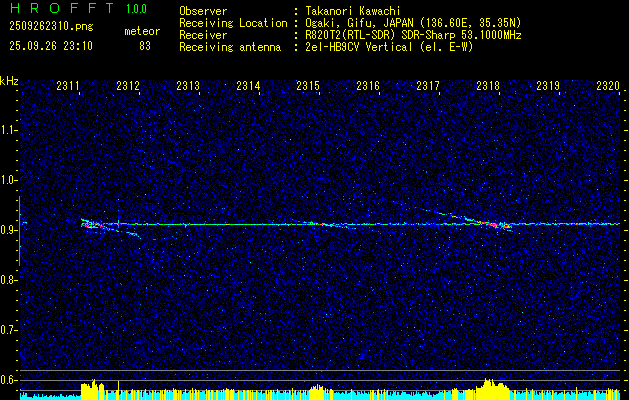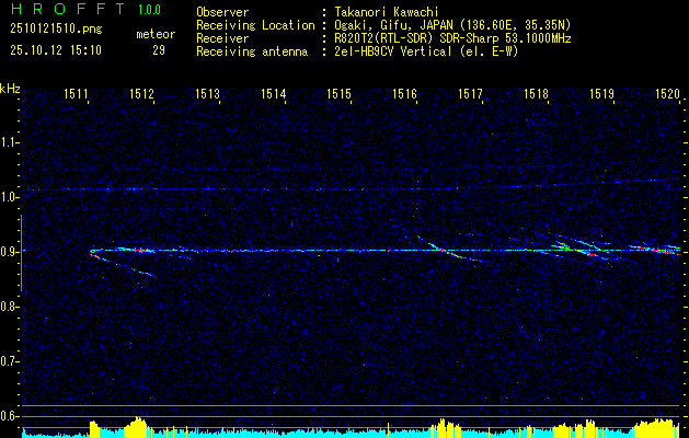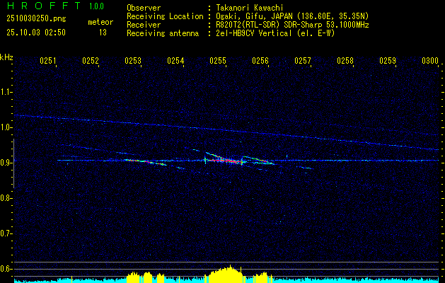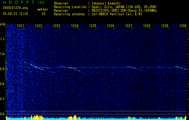 0.9kHz附近に発生している『点』または『塊』が流星によるエコーです.