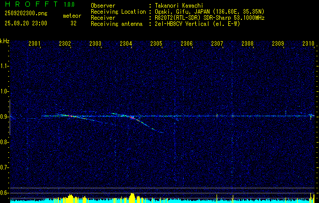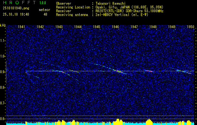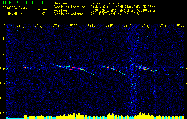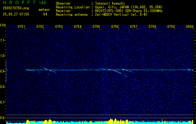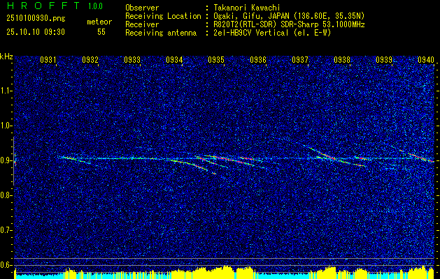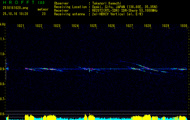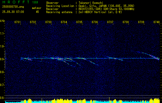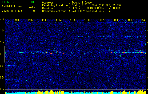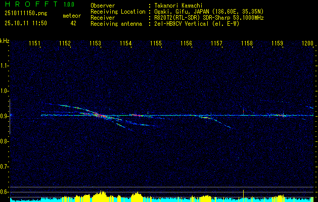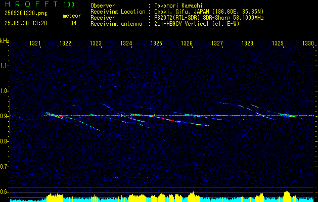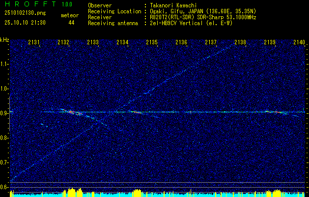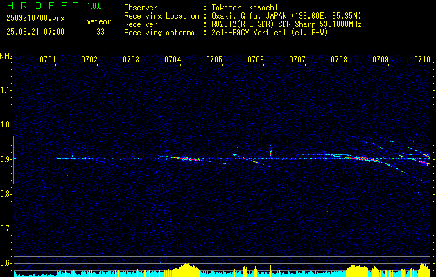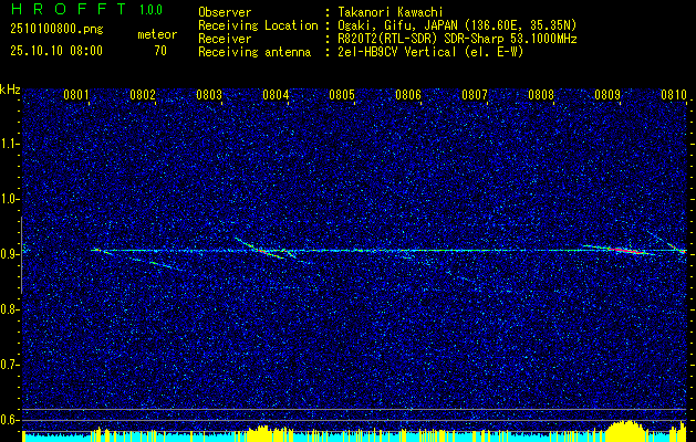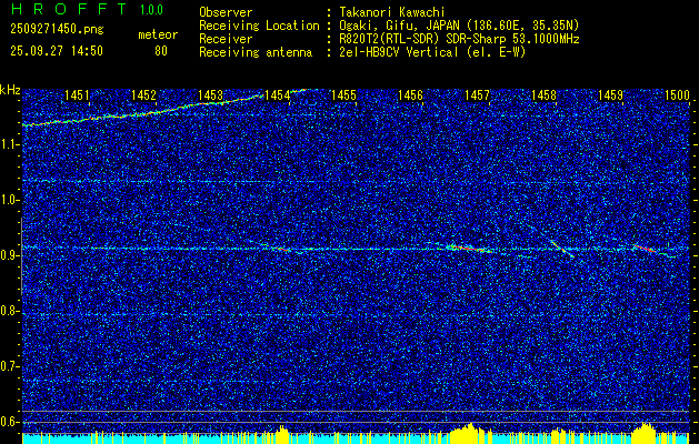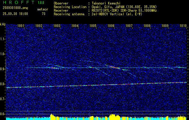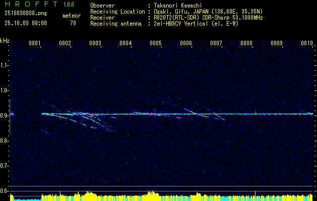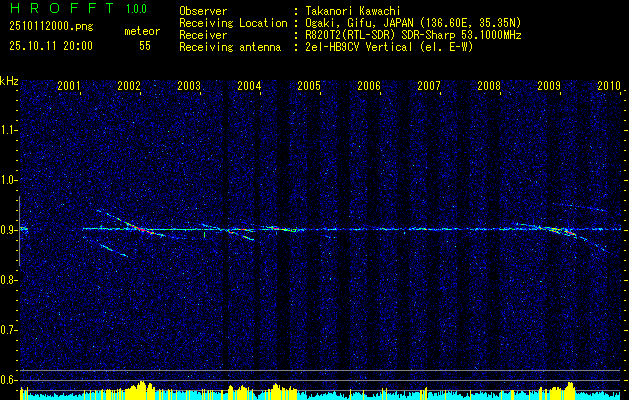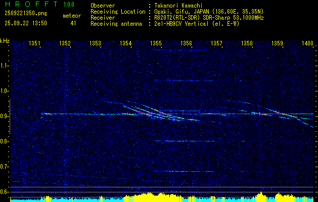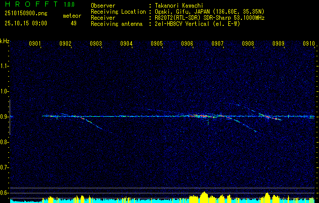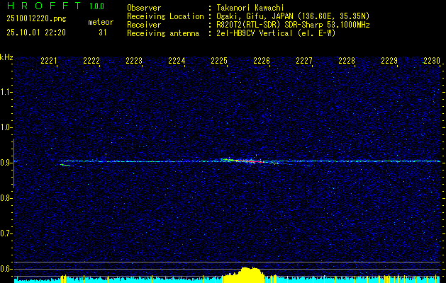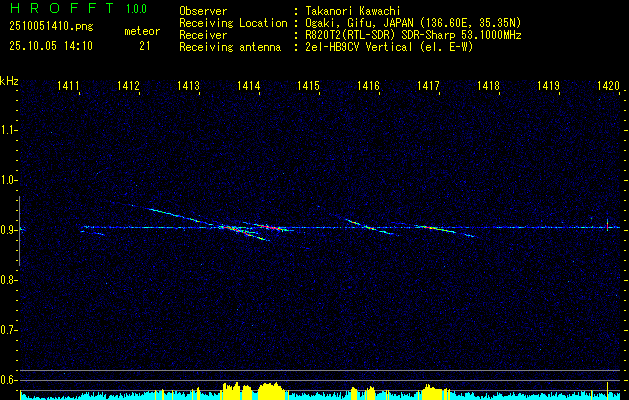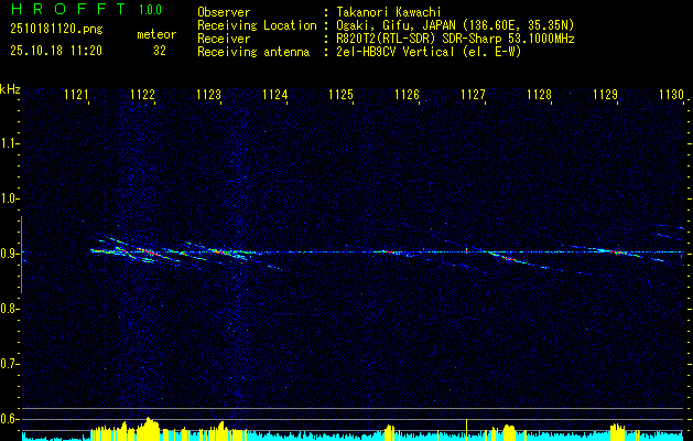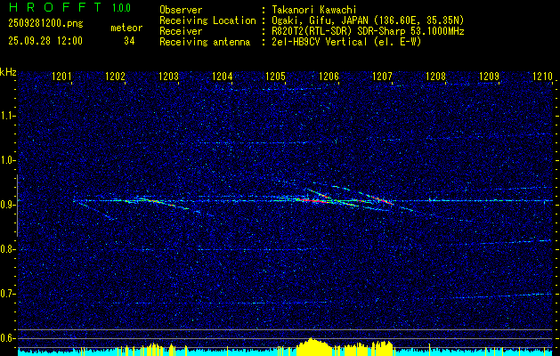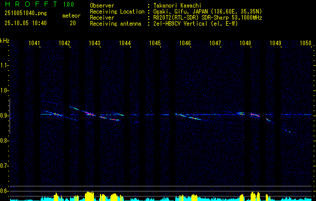 0.9kHz附近に発生している『点』または『塊』が流星によるエコーです.