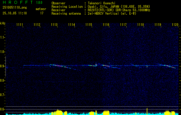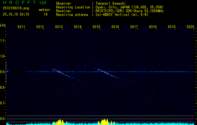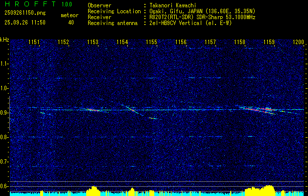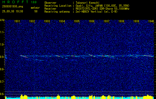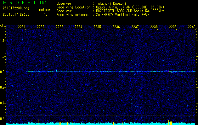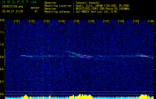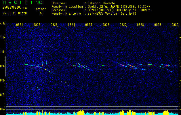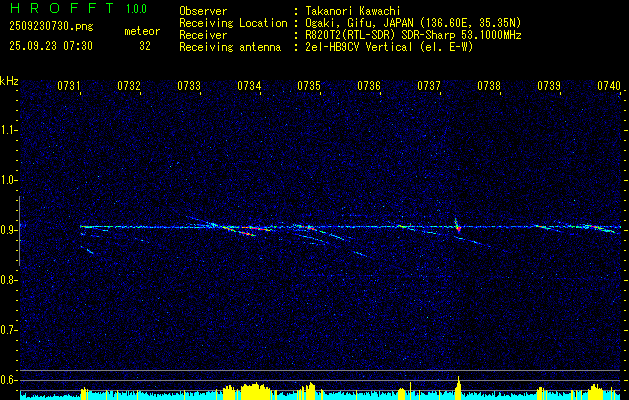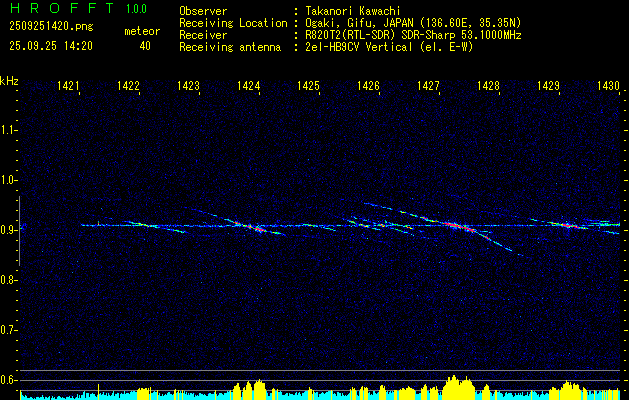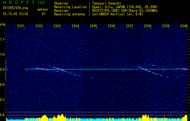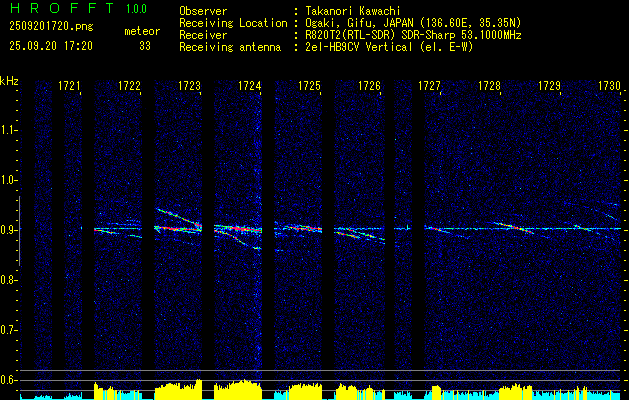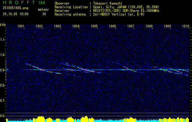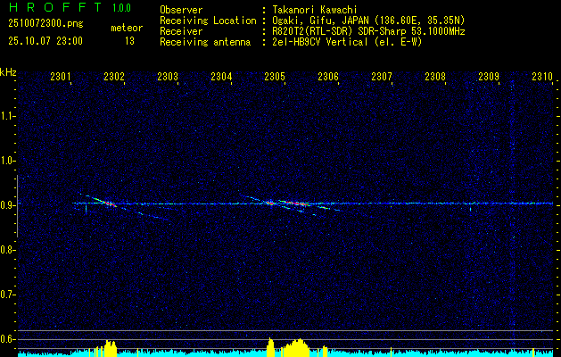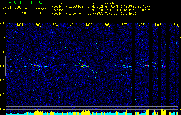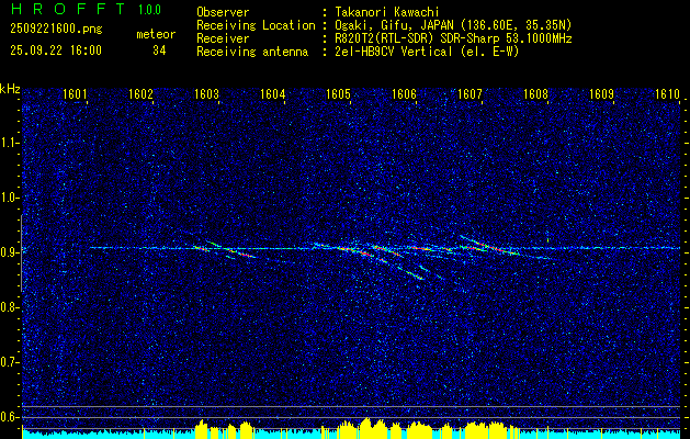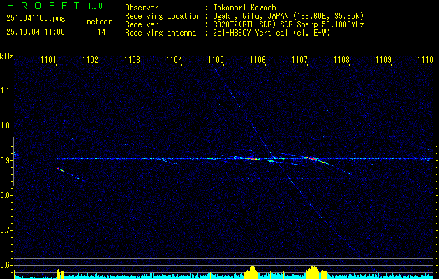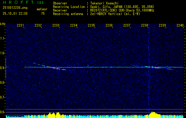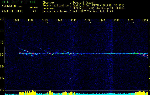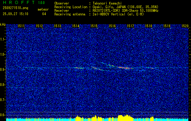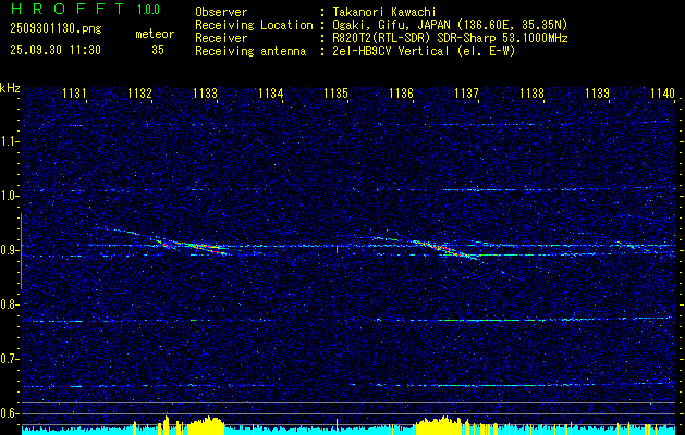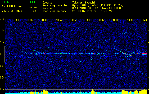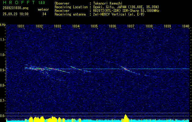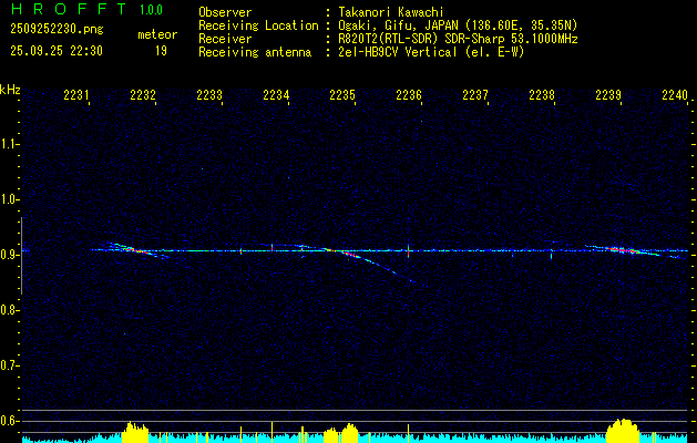 0.9kHz附近に発生している『点』または『塊』が流星によるエコーです.