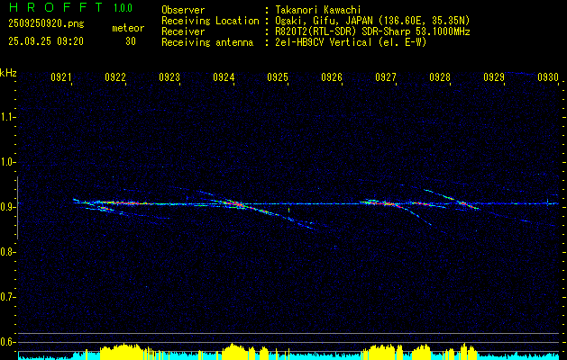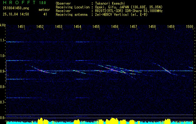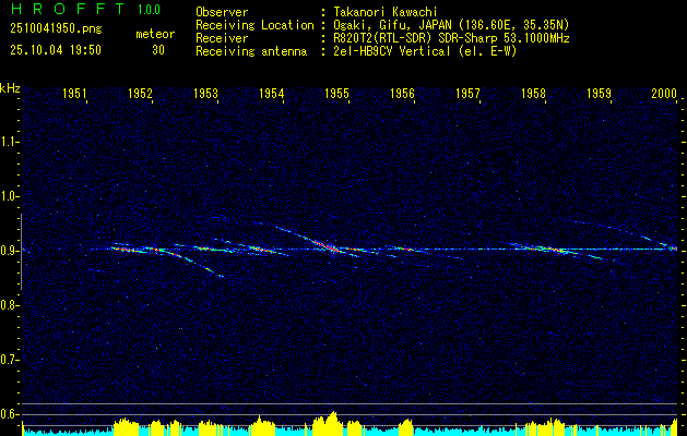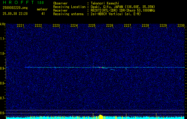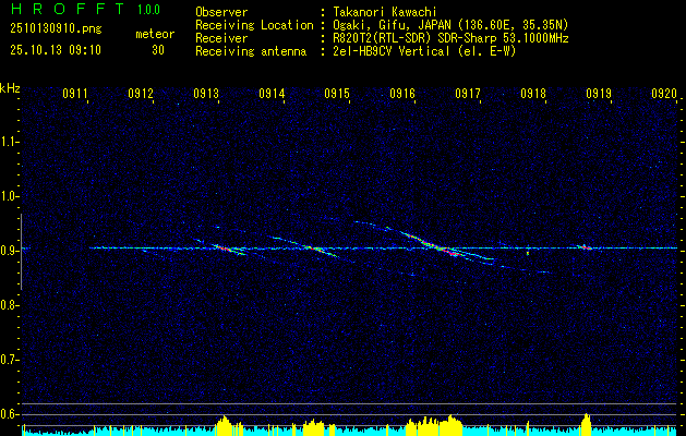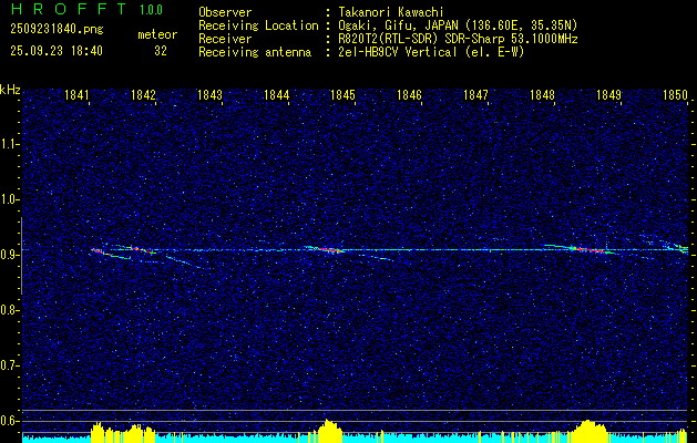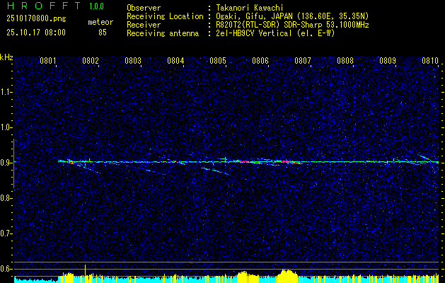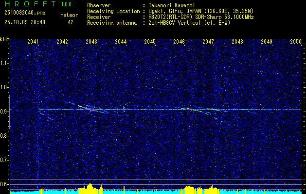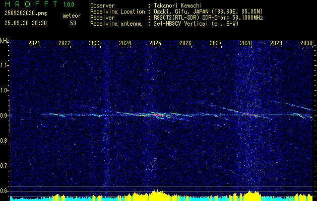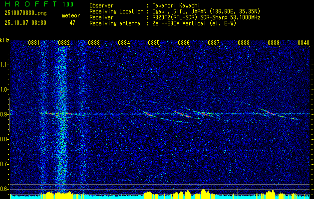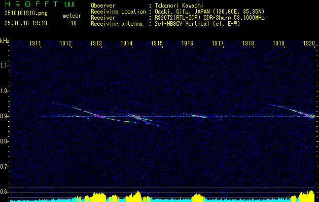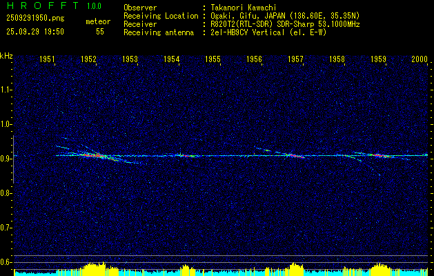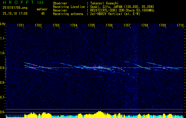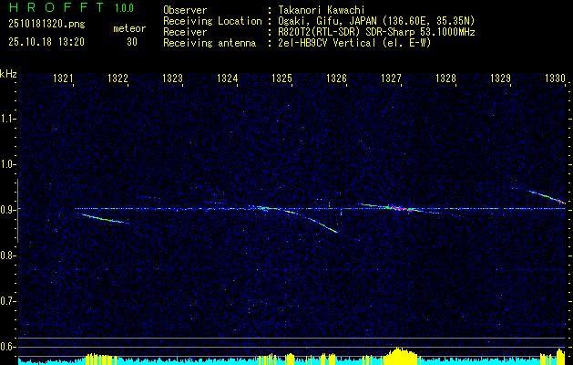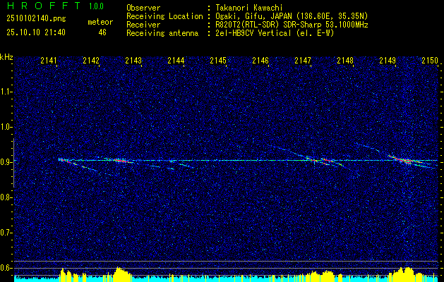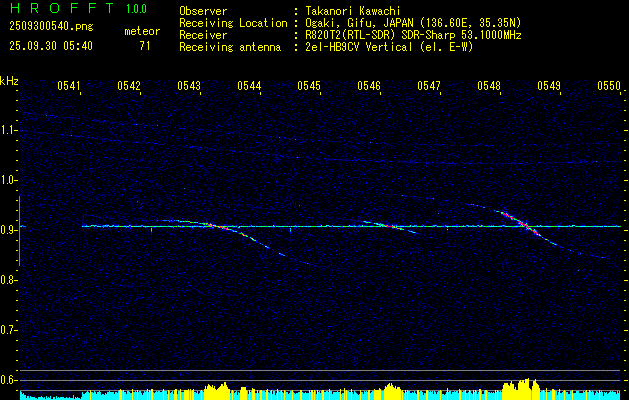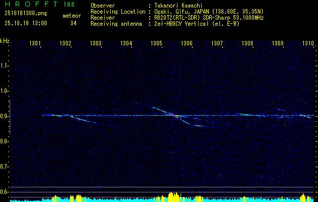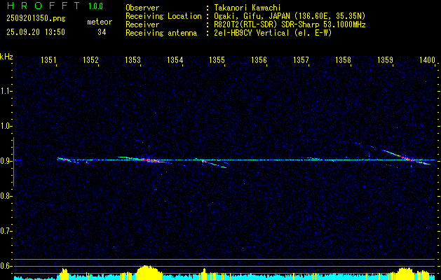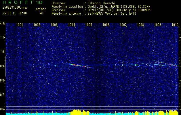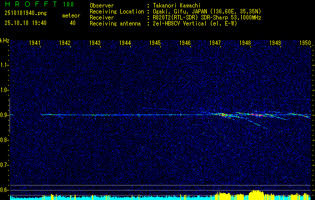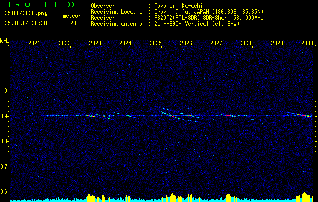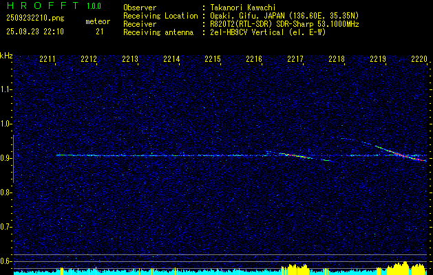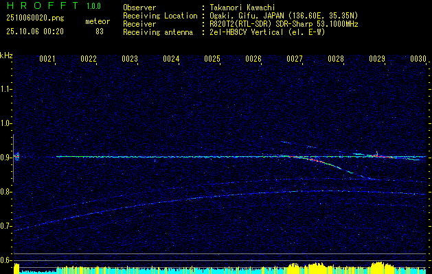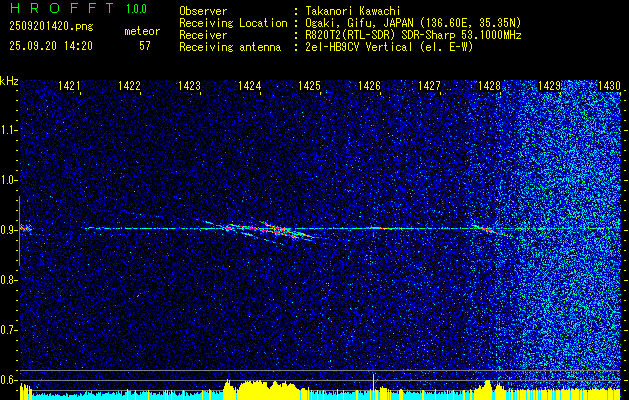 0.9kHz附近に発生している『点』または『塊』が流星によるエコーです.