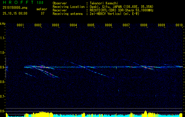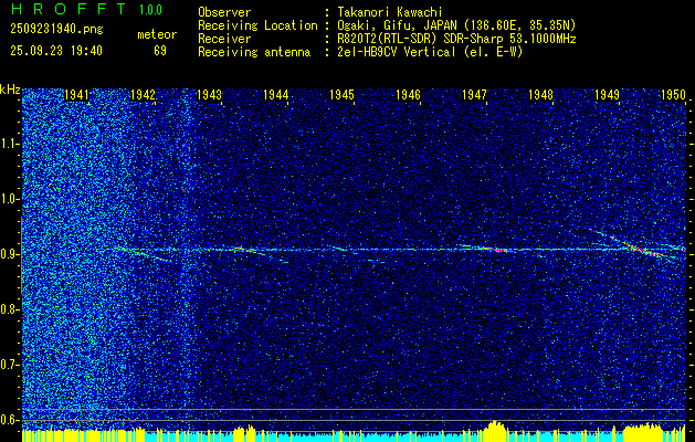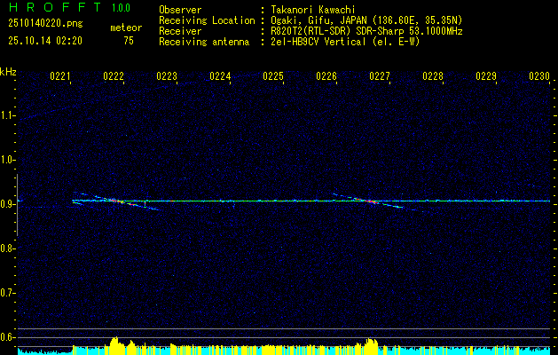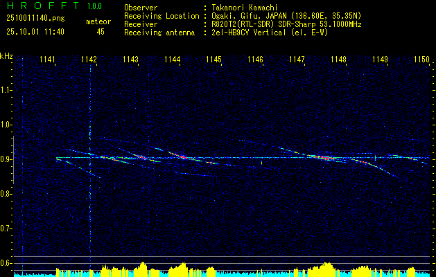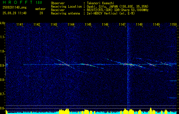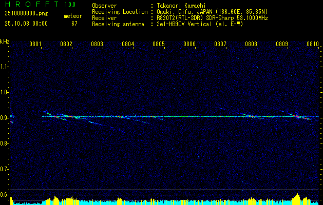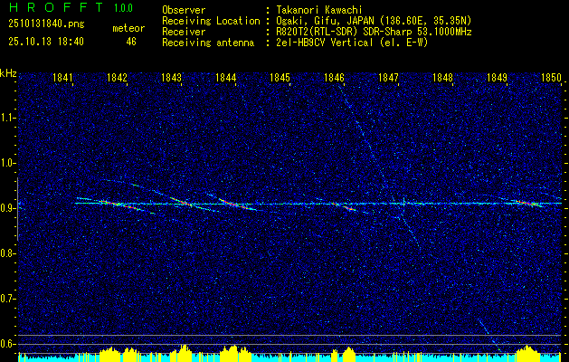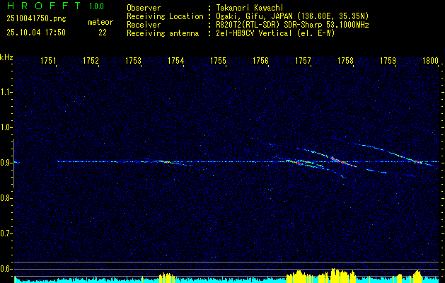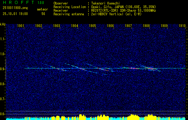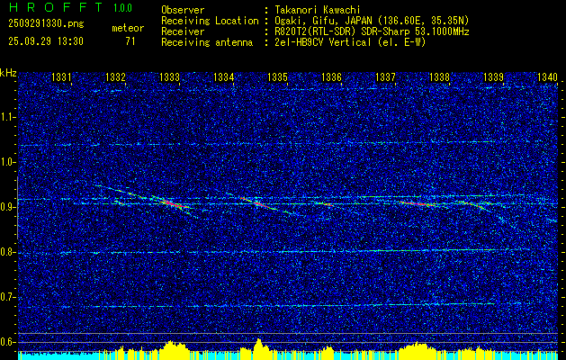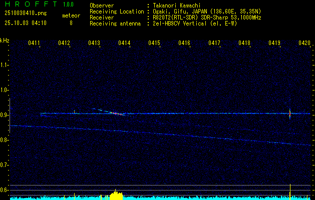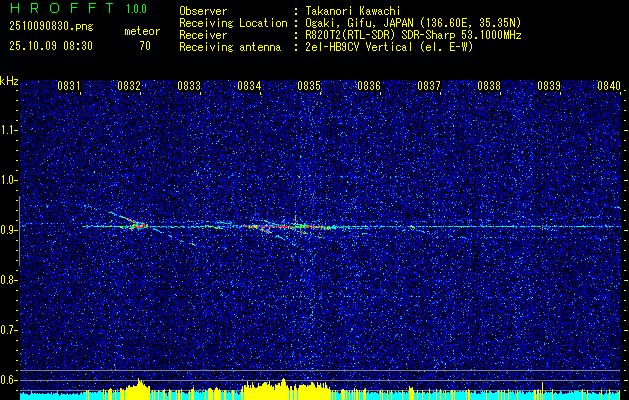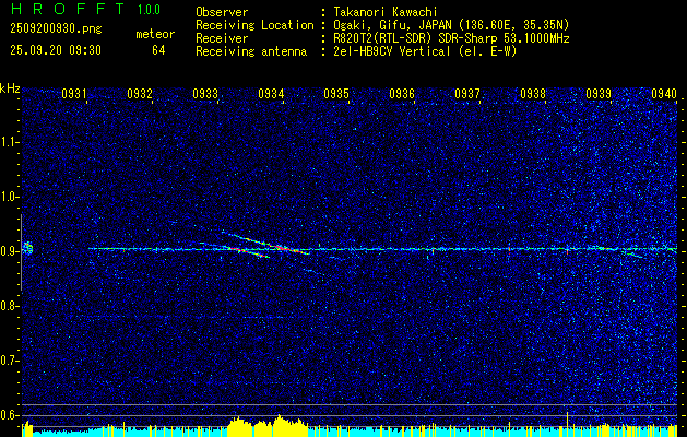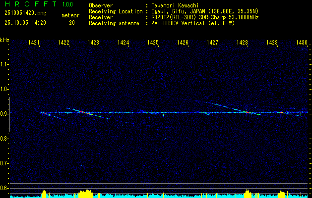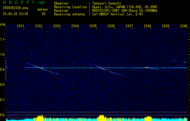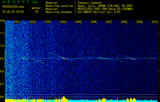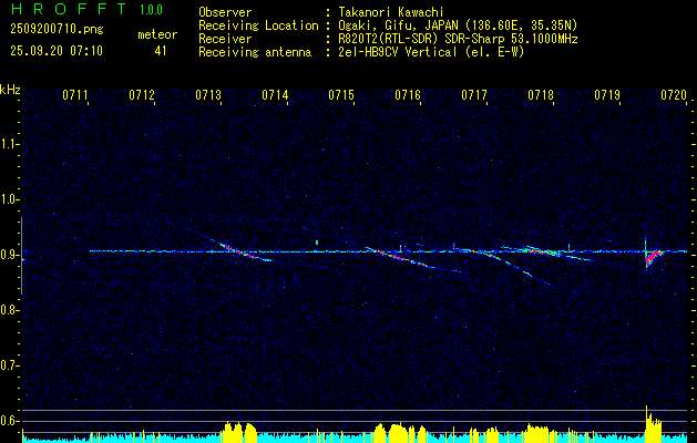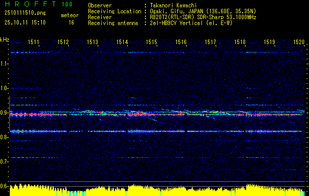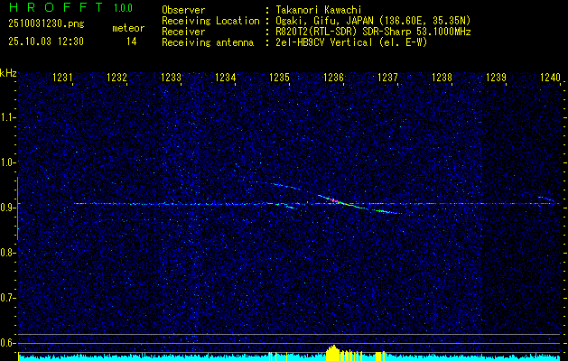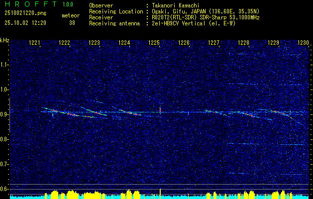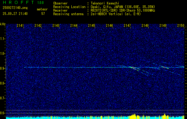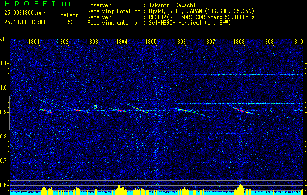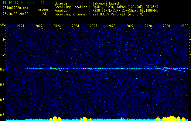 0.9kHz附近に発生している『点』または『塊』が流星によるエコーです.
