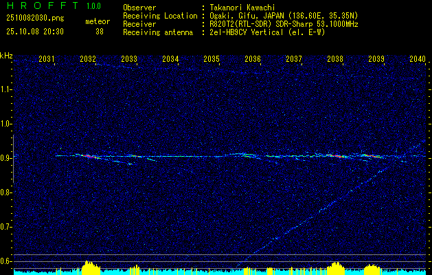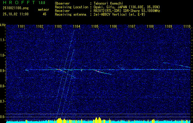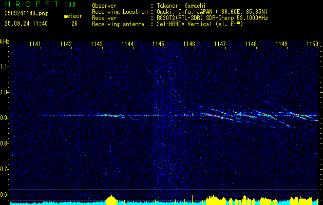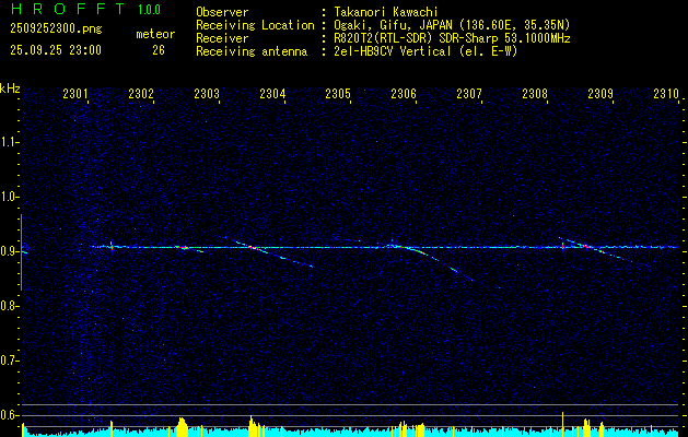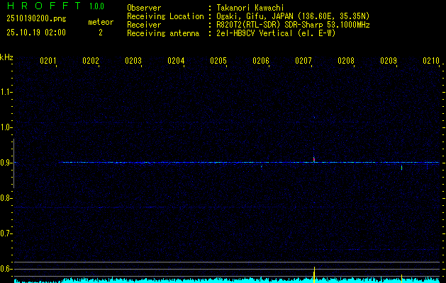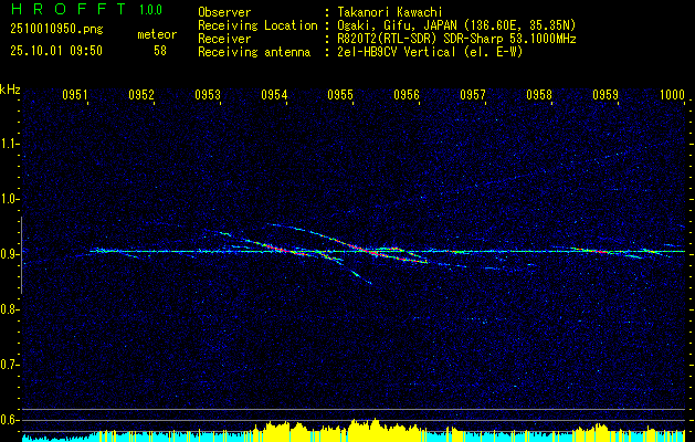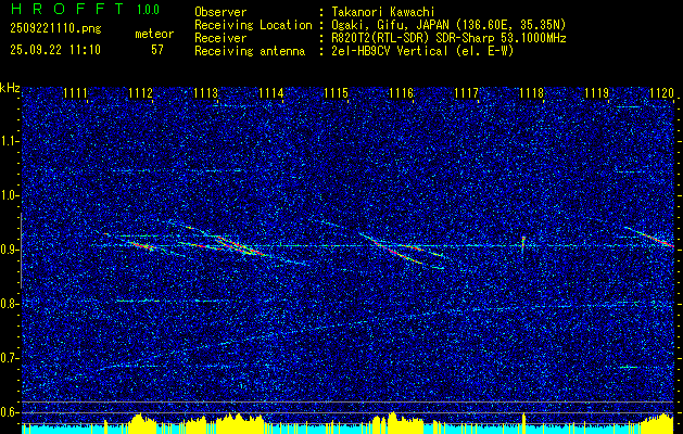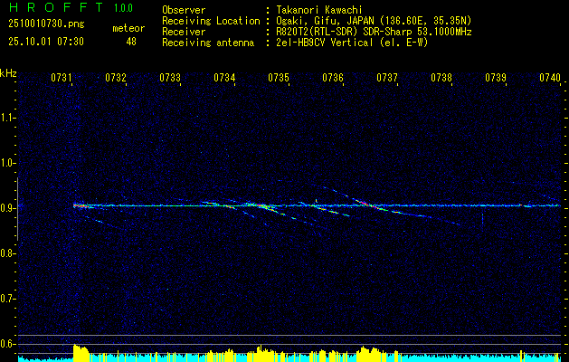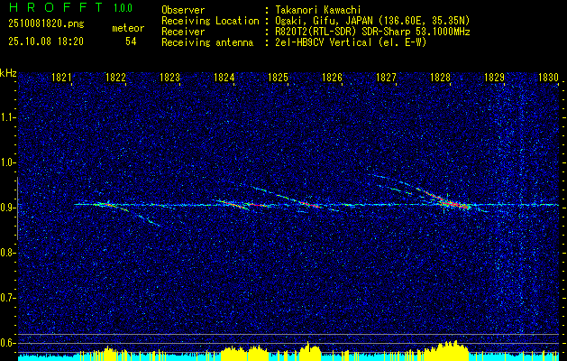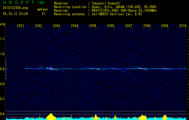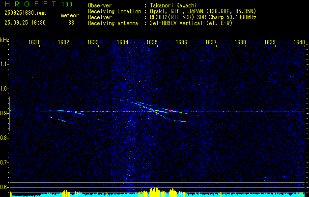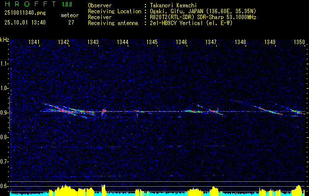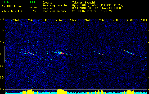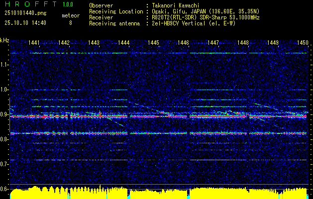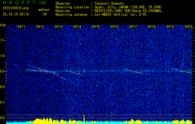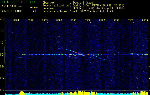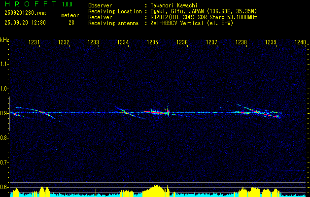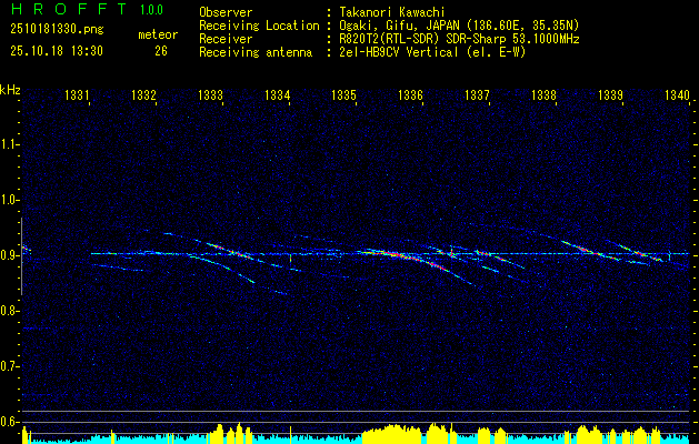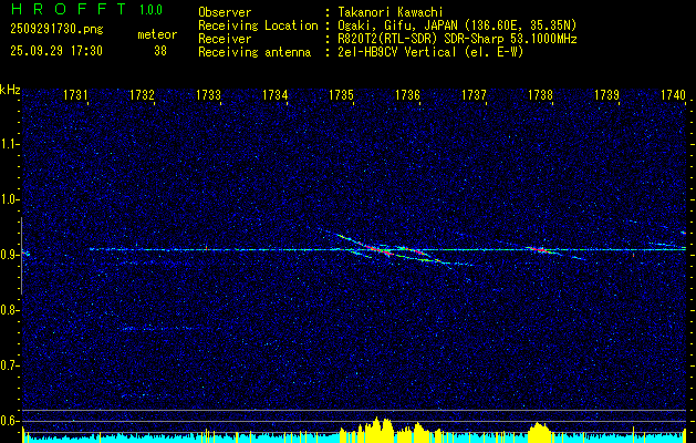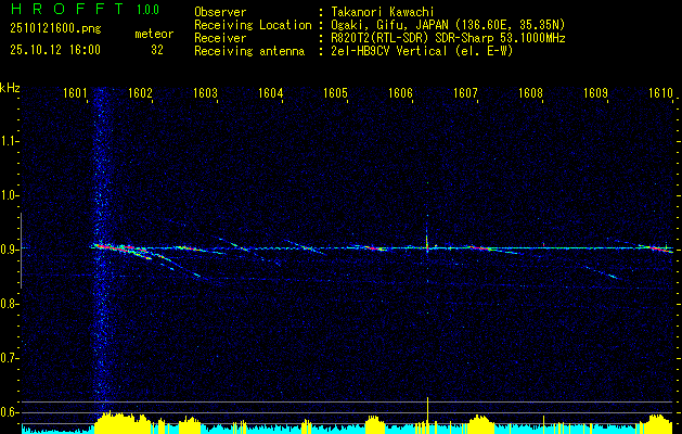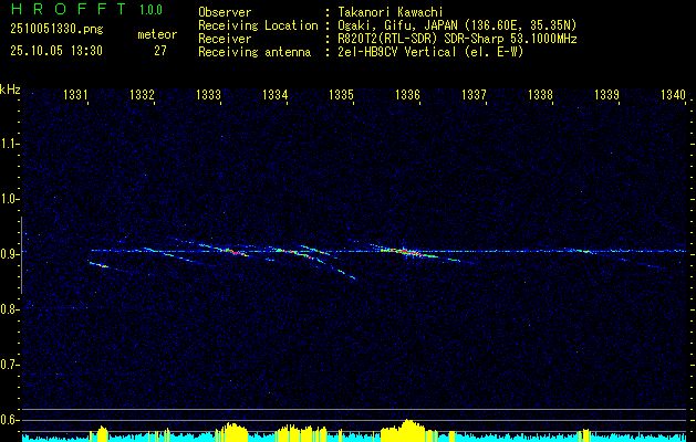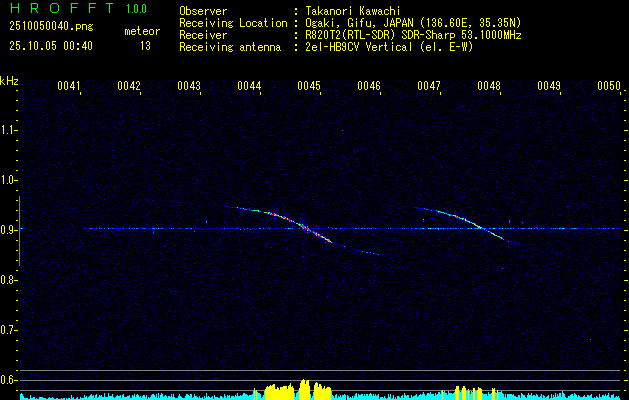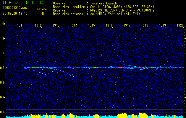 0.9kHz附近に発生している『点』または『塊』が流星によるエコーです.