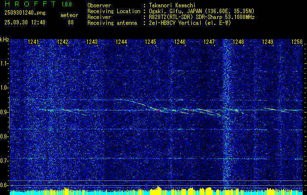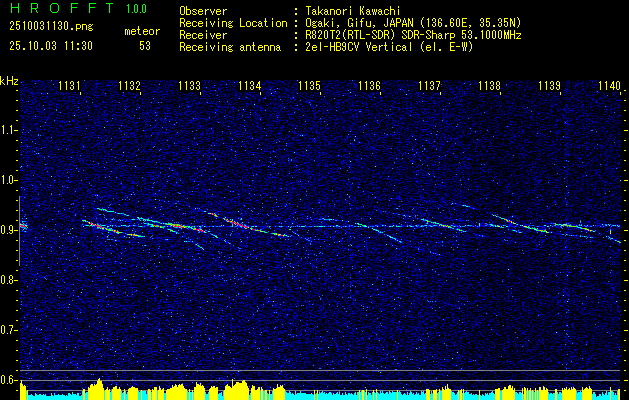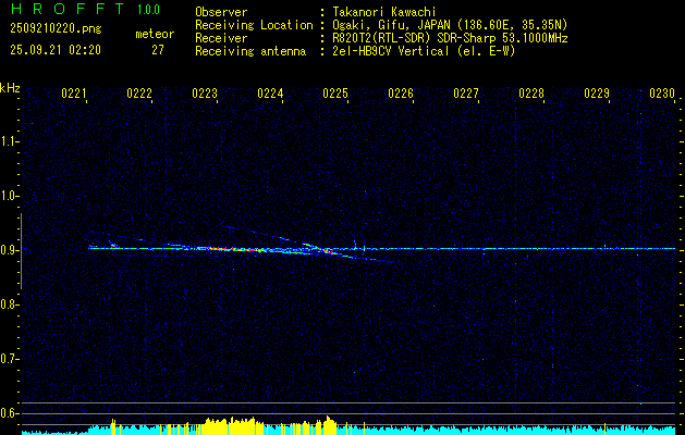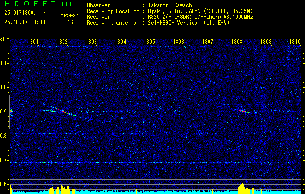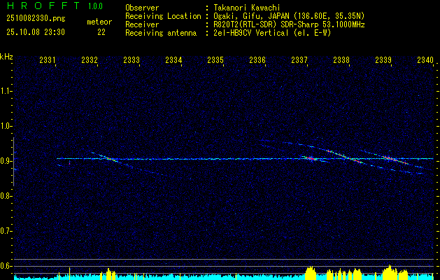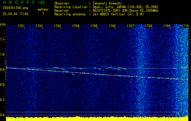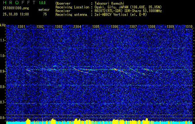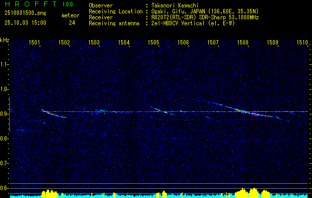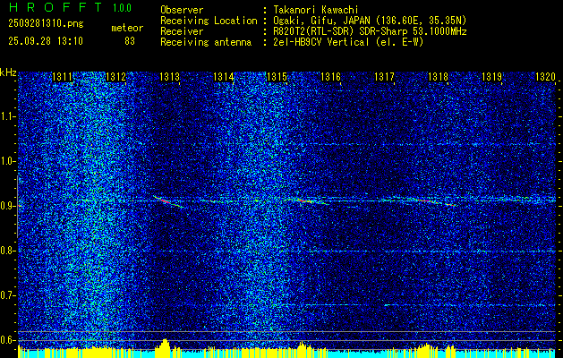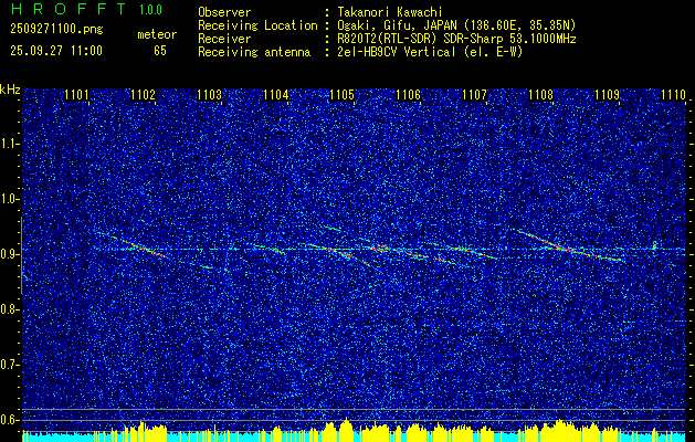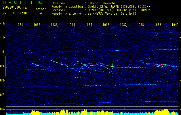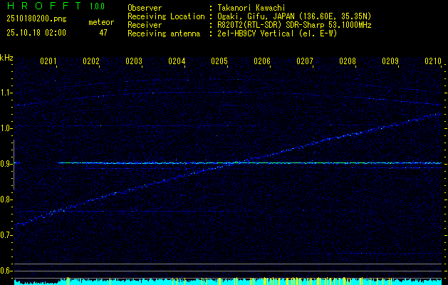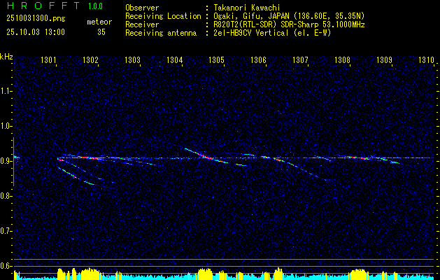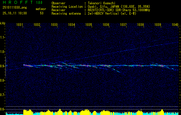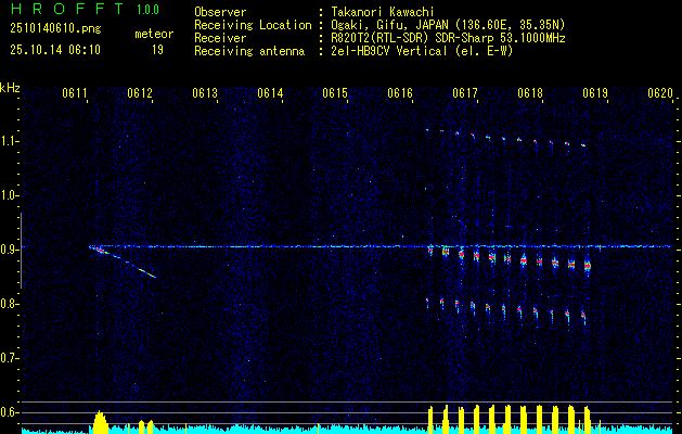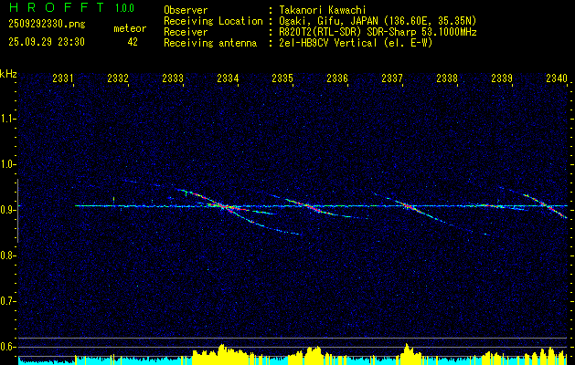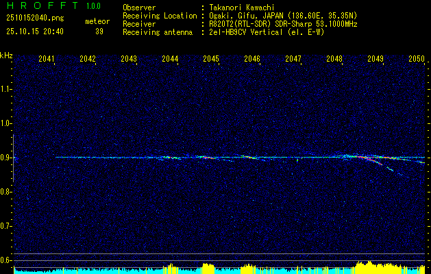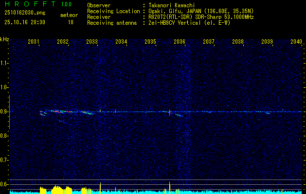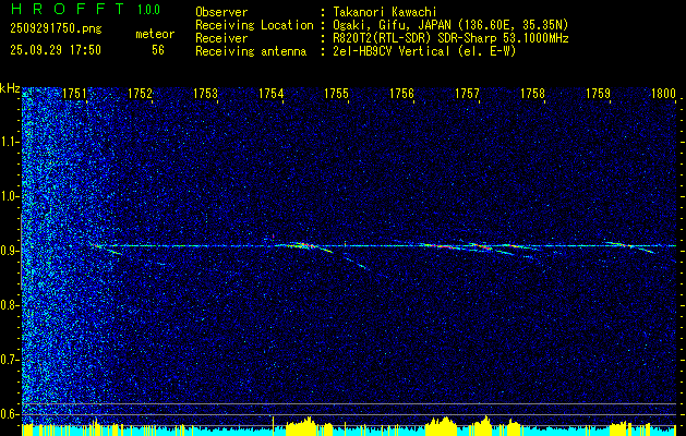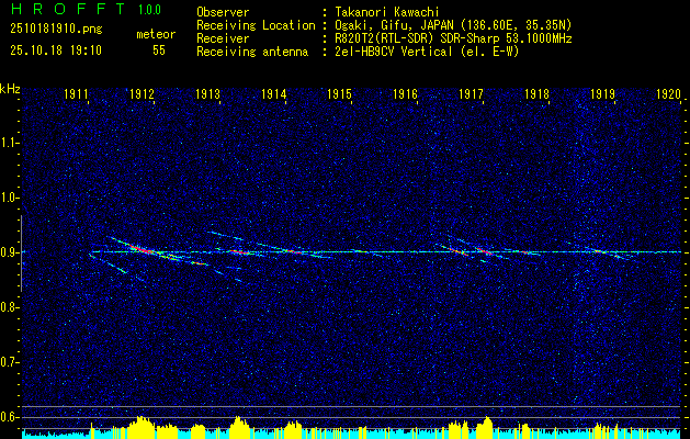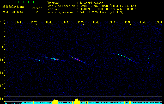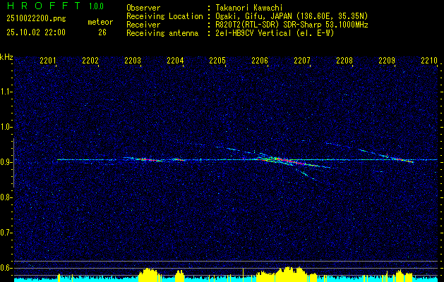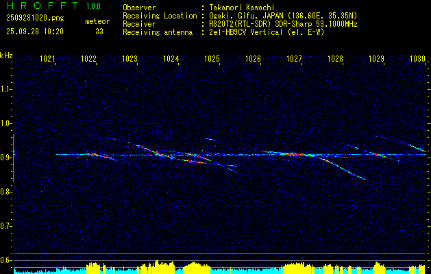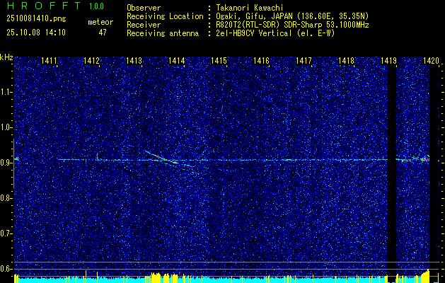 0.9kHz附近に発生している『点』または『塊』が流星によるエコーです.