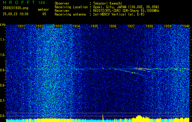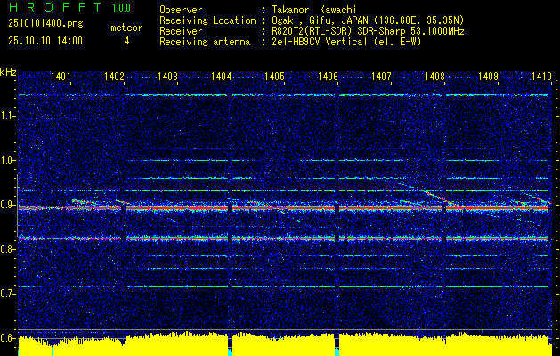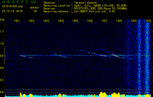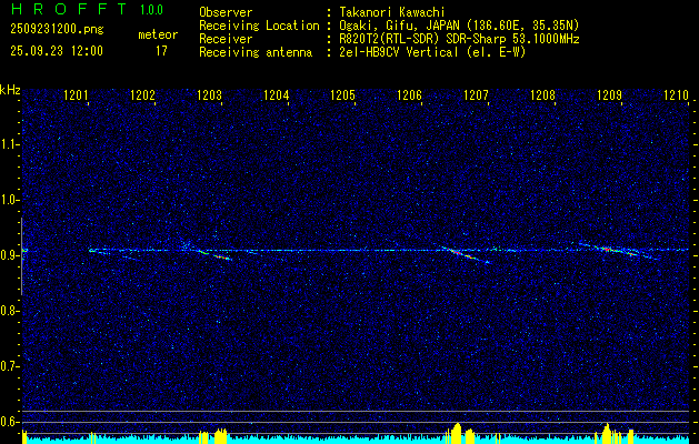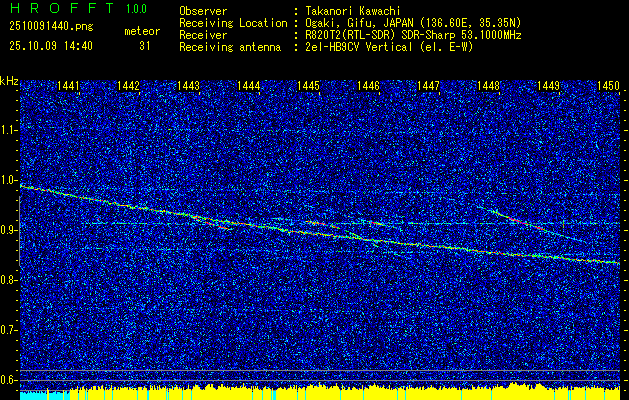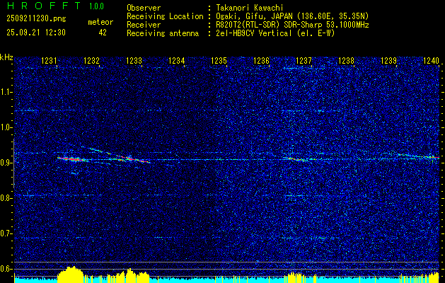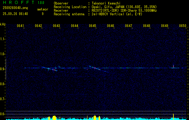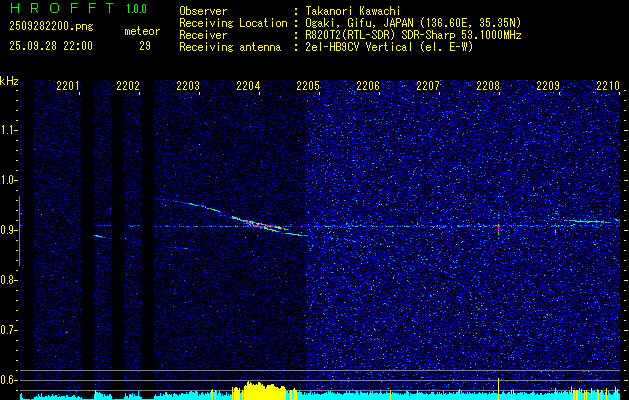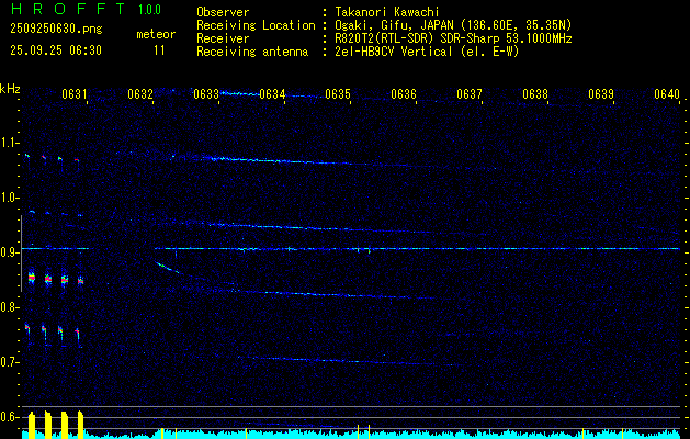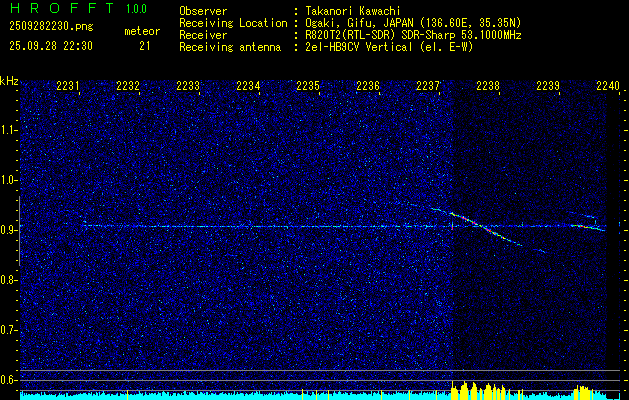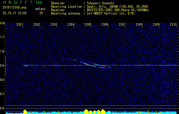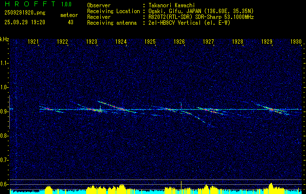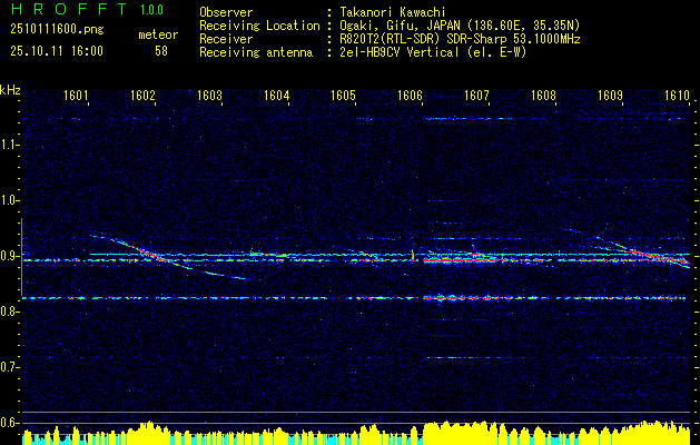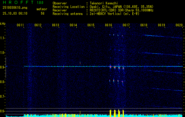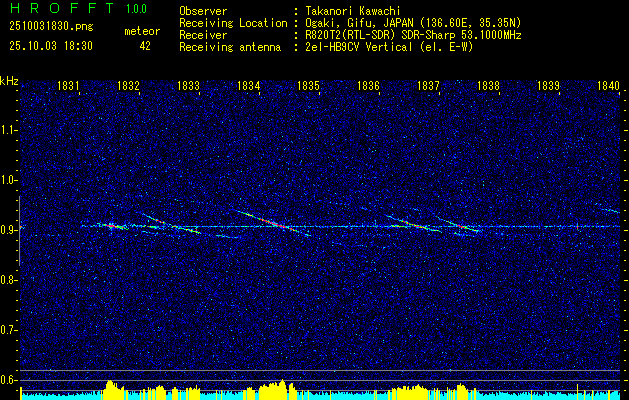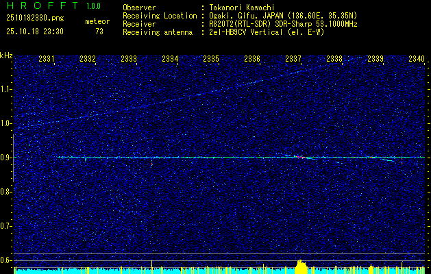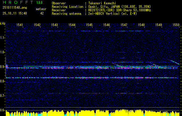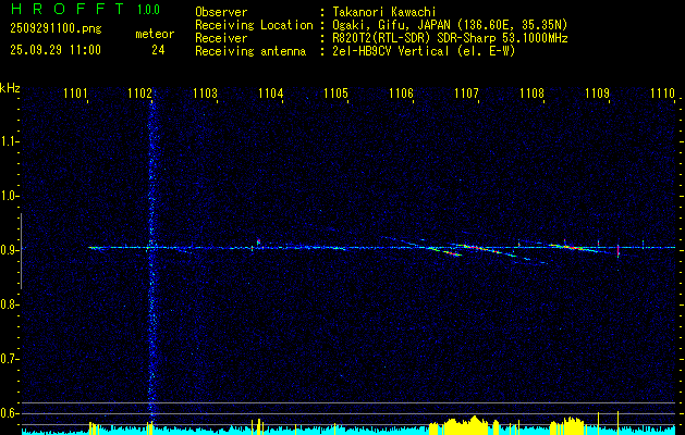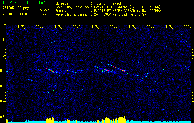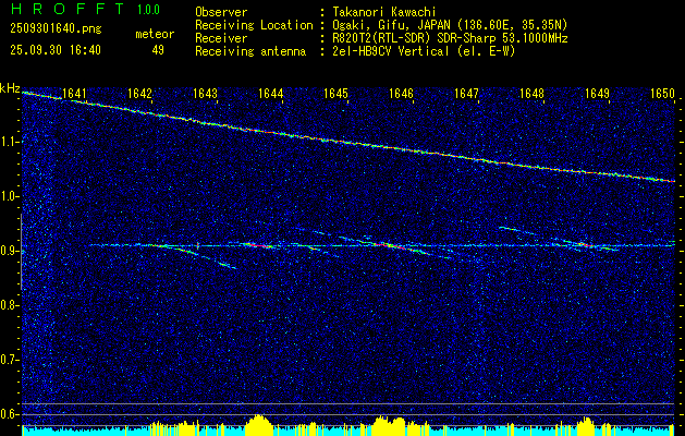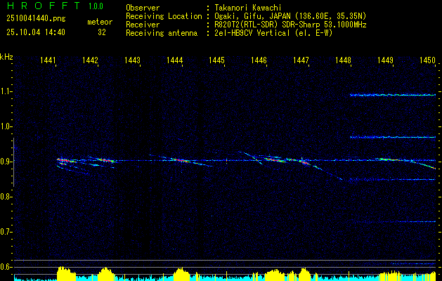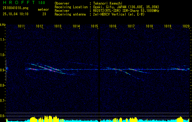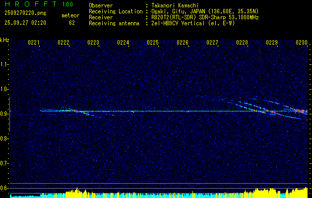 0.9kHz附近に発生している『点』または『塊』が流星によるエコーです.