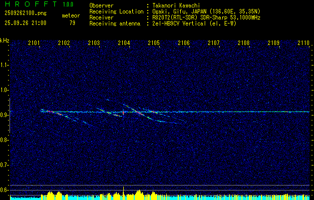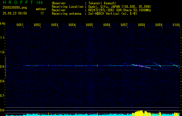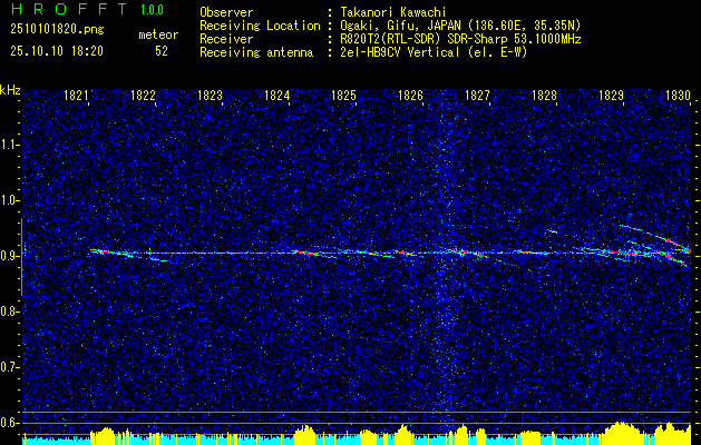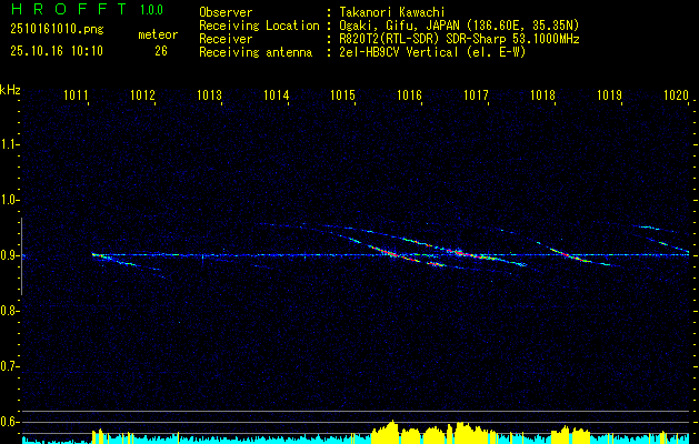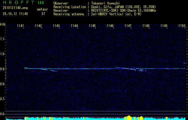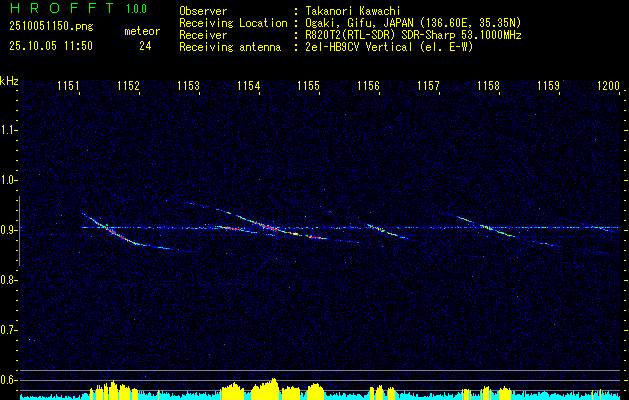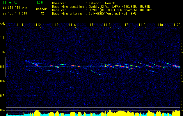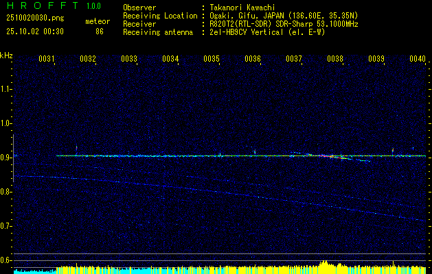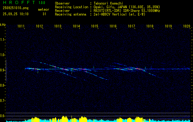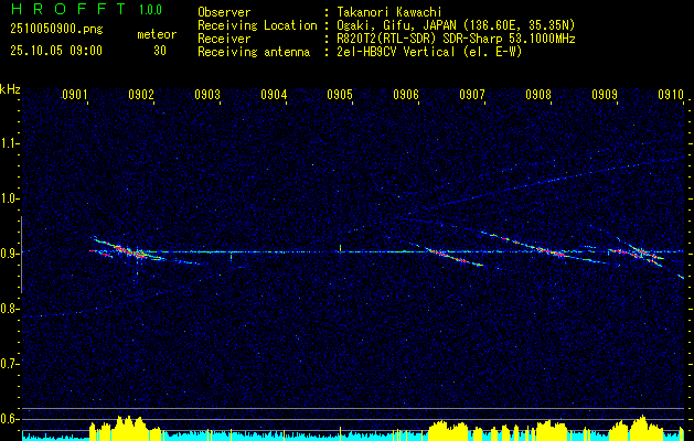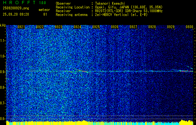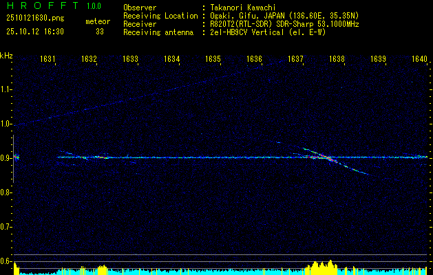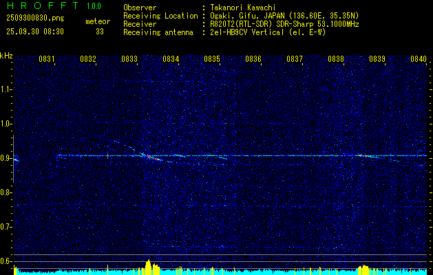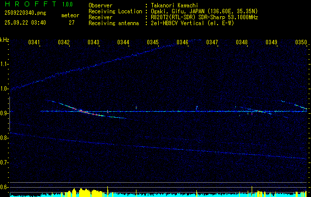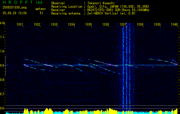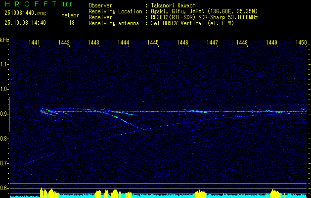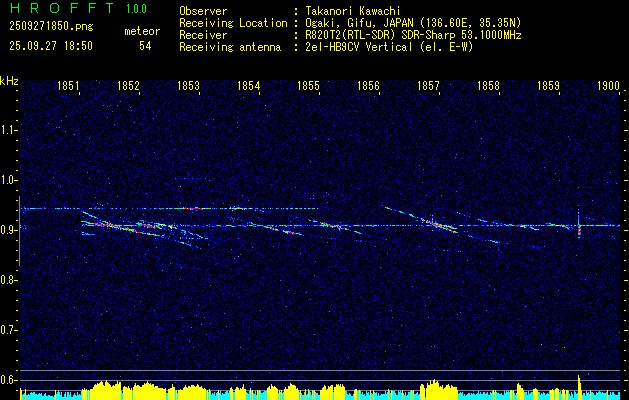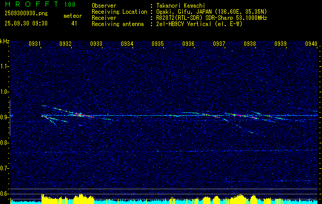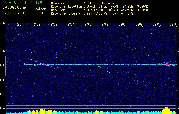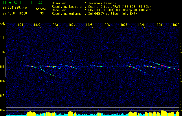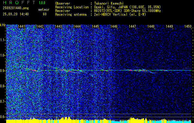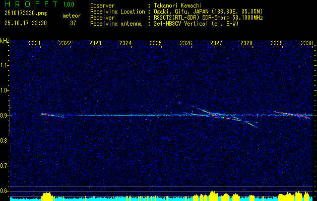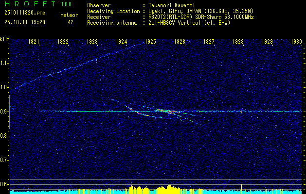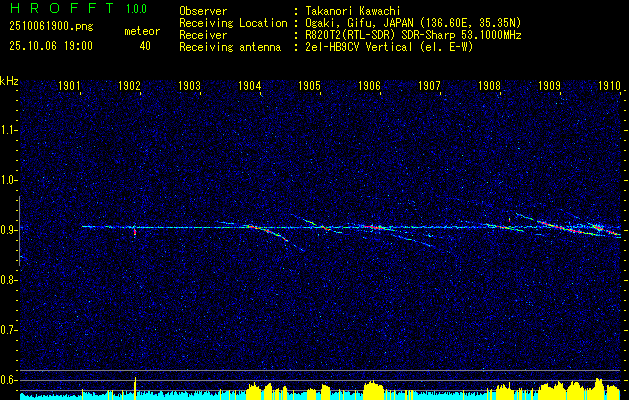 0.9kHz附近に発生している『点』または『塊』が流星によるエコーです.