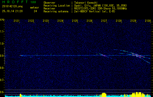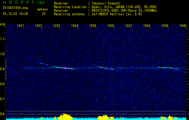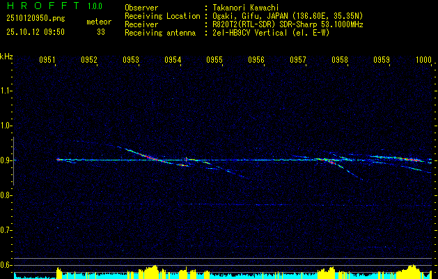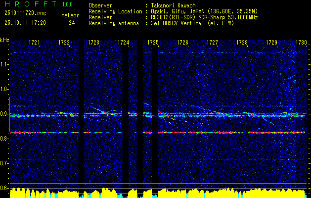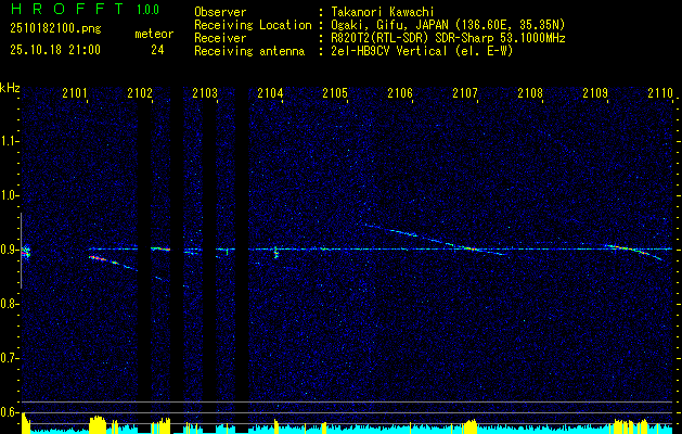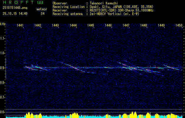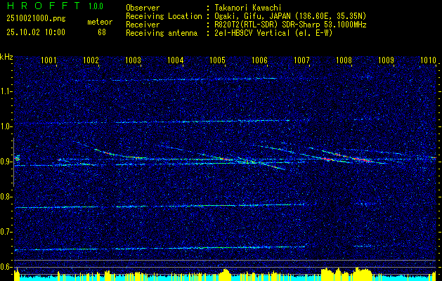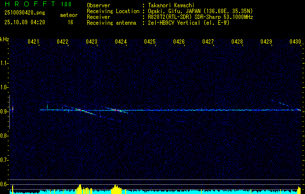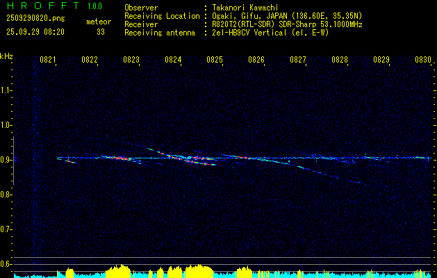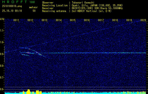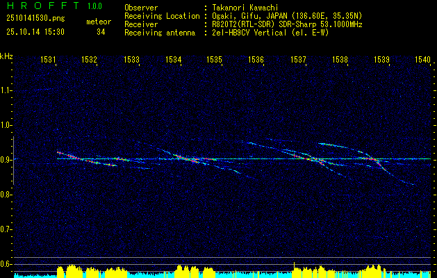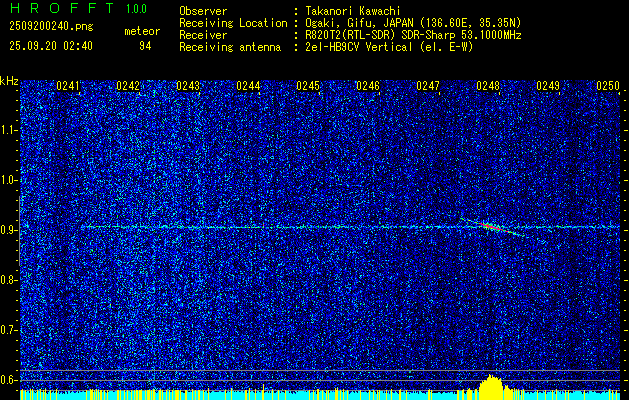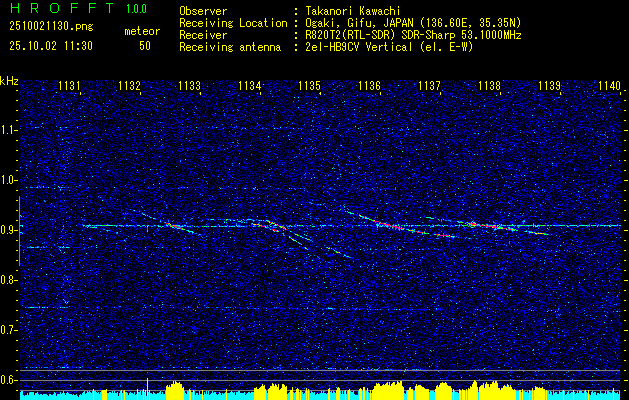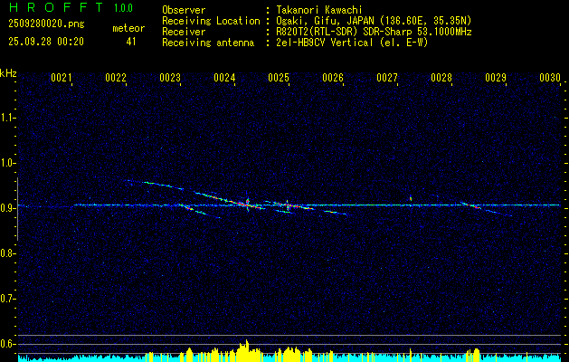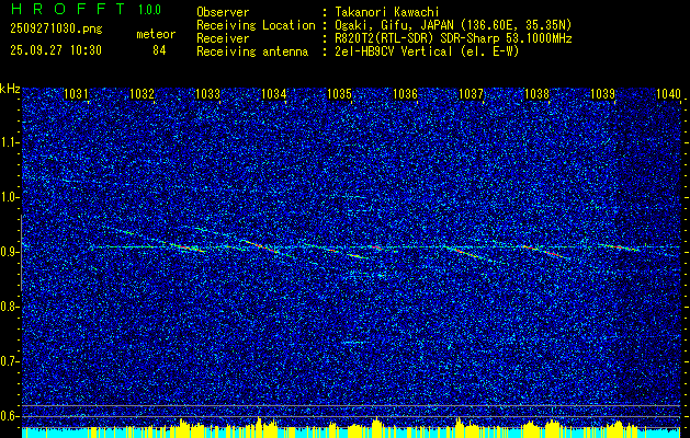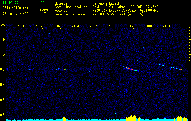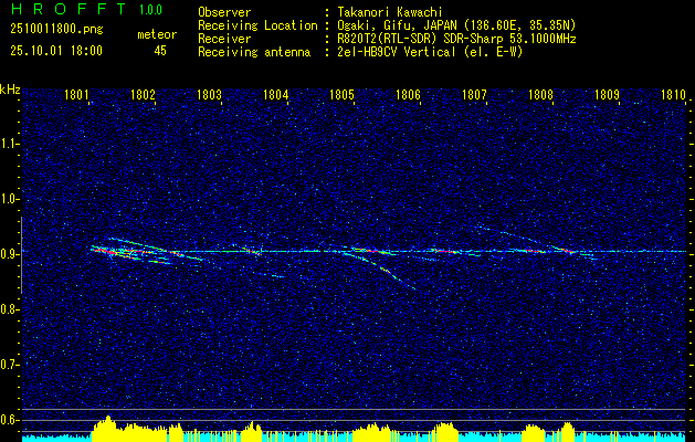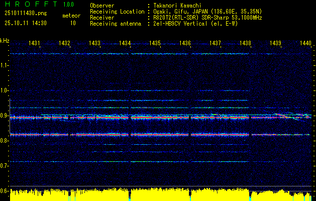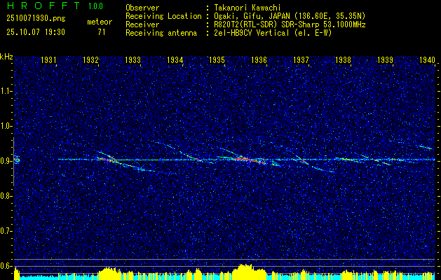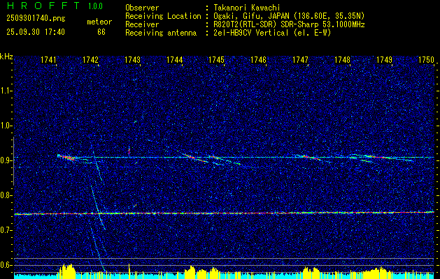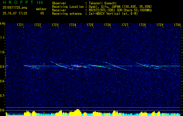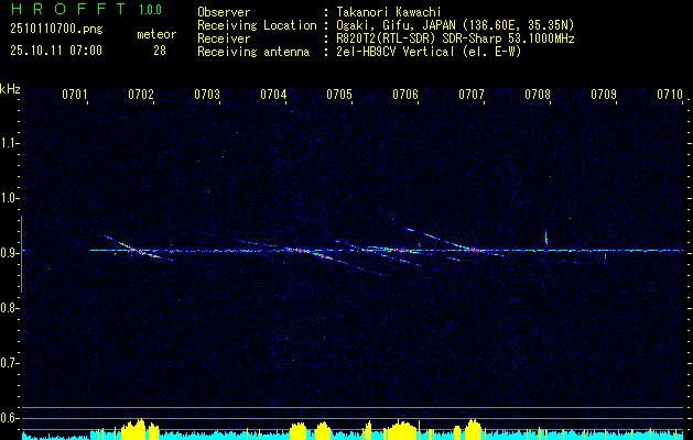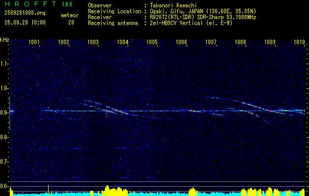 0.9kHz附近に発生している『点』または『塊』が流星によるエコーです.