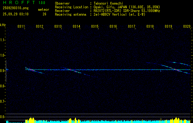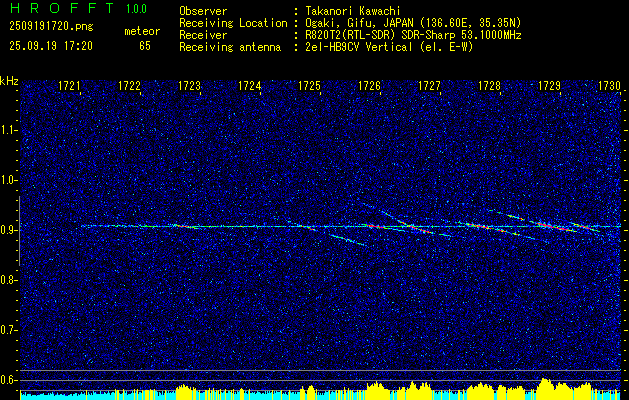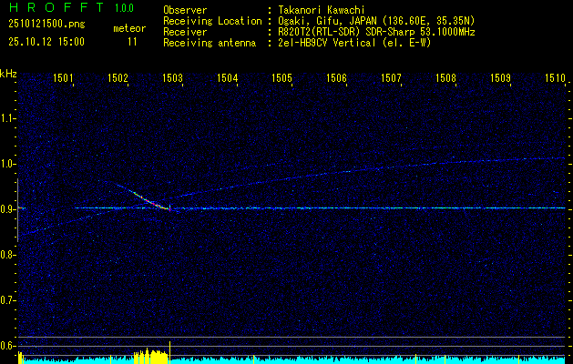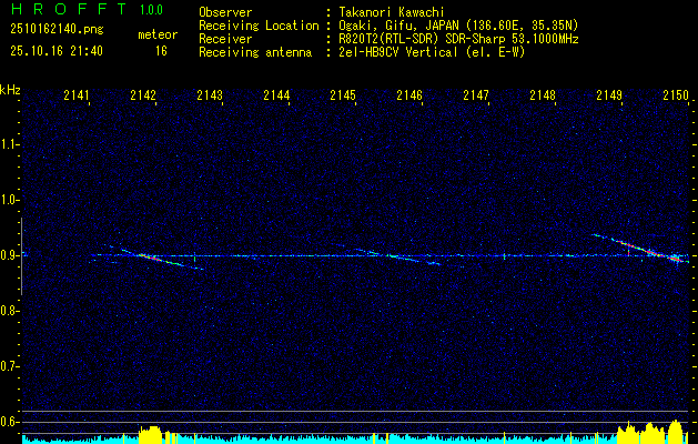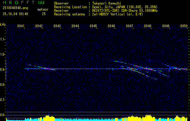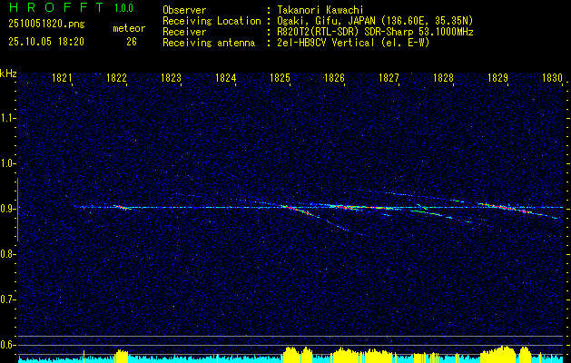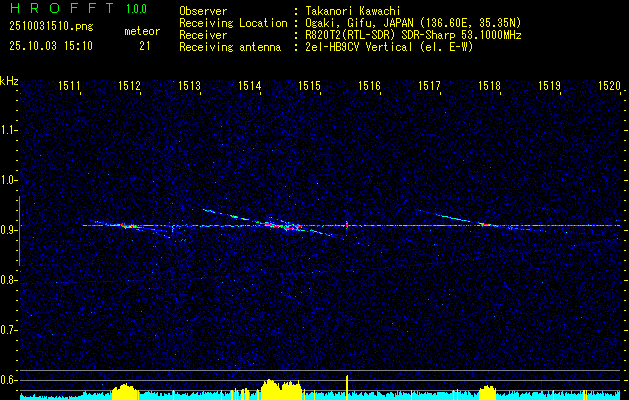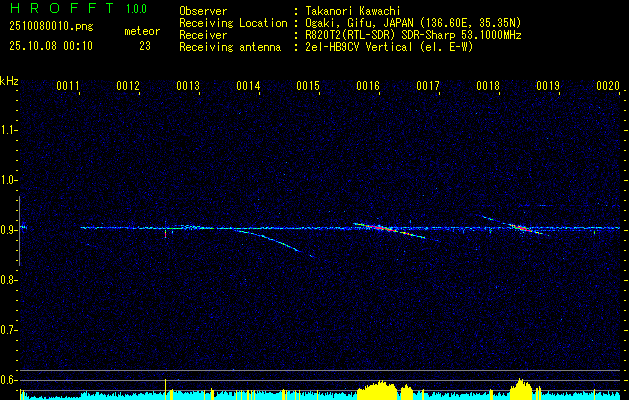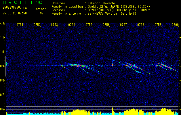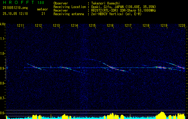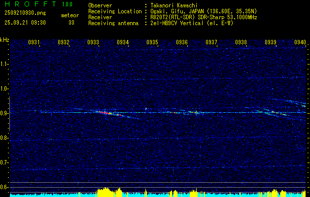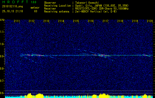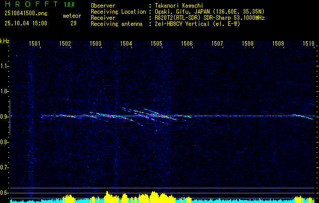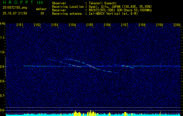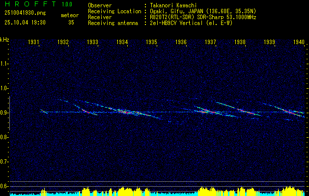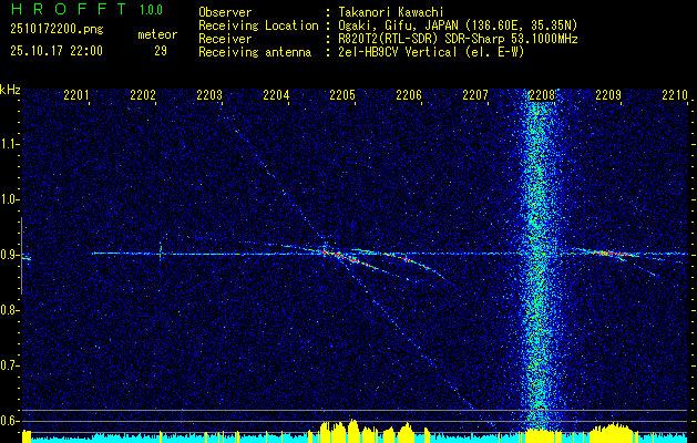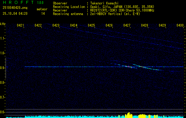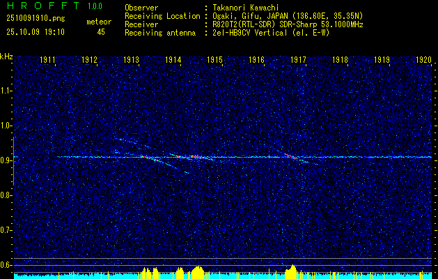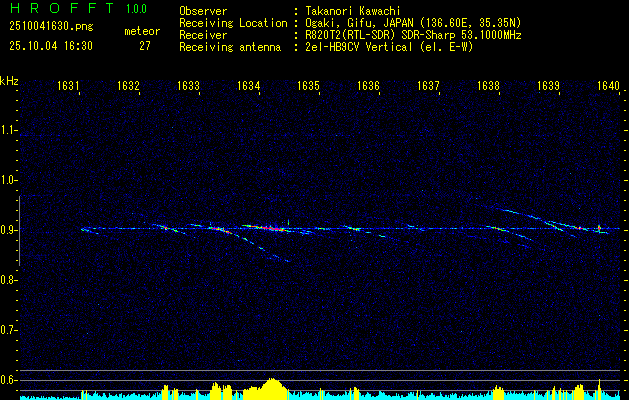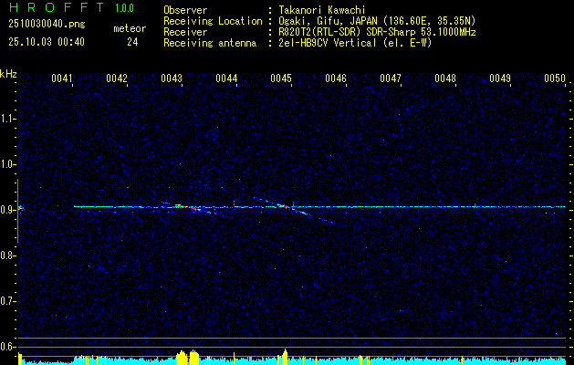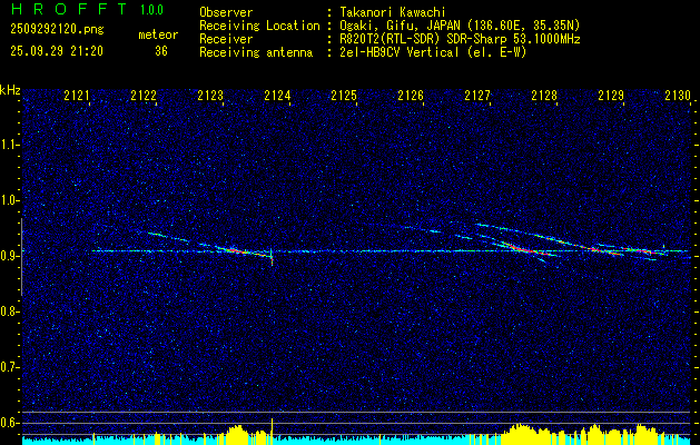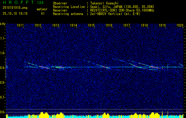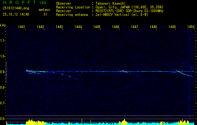 0.9kHz附近に発生している『点』または『塊』が流星によるエコーです.