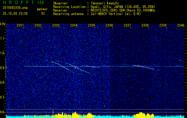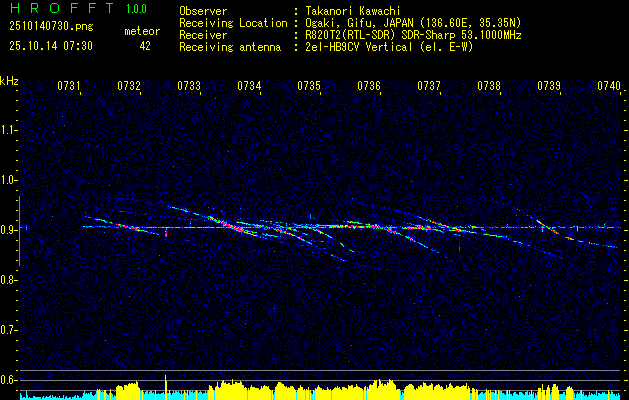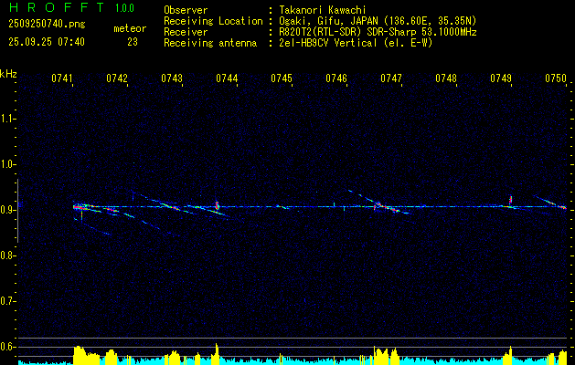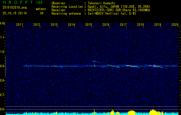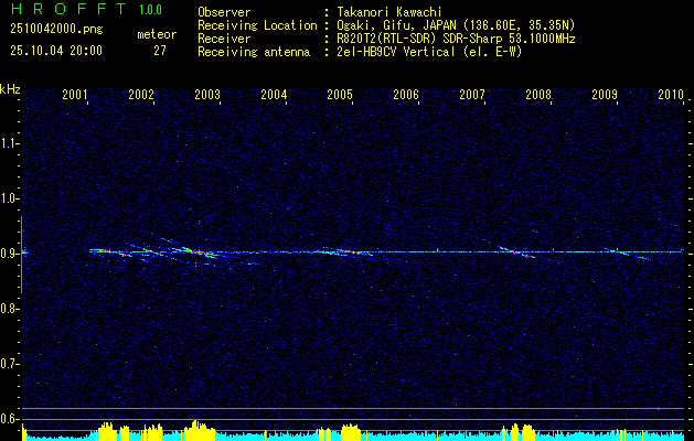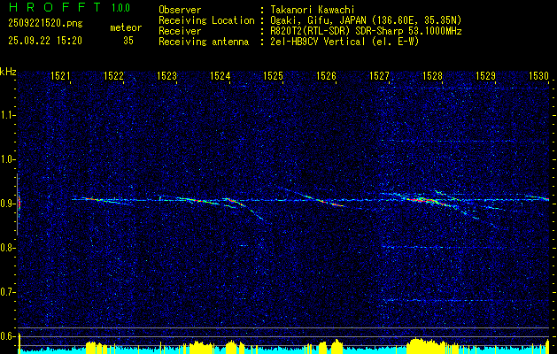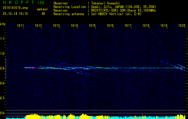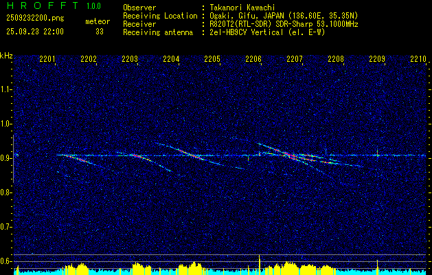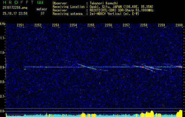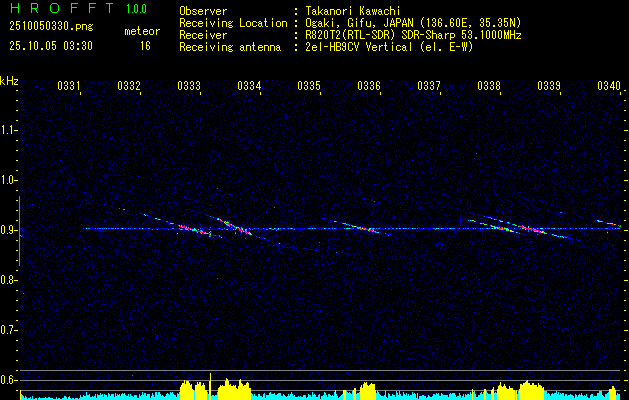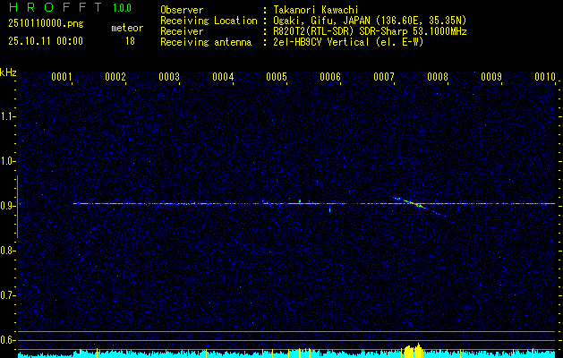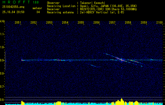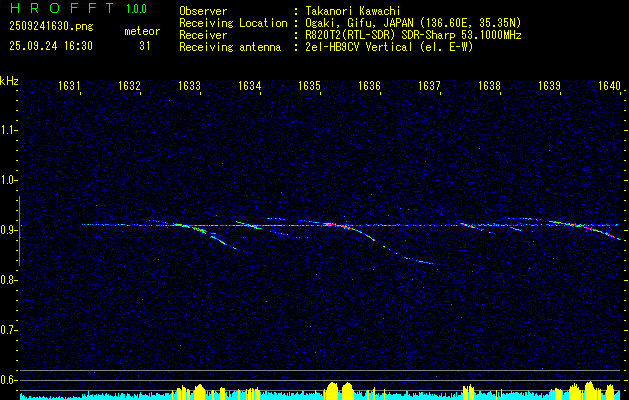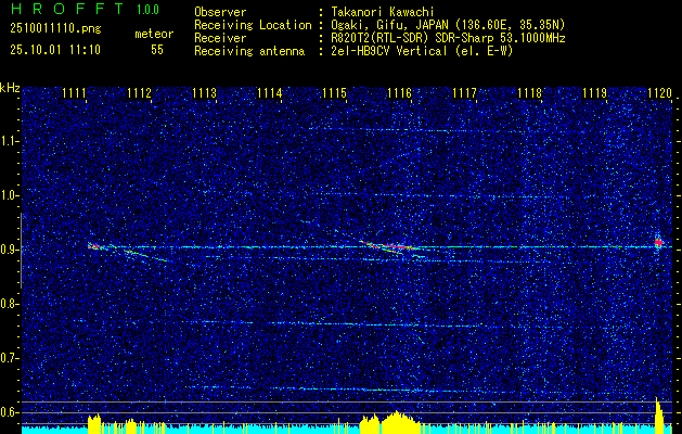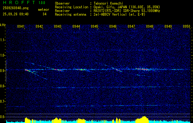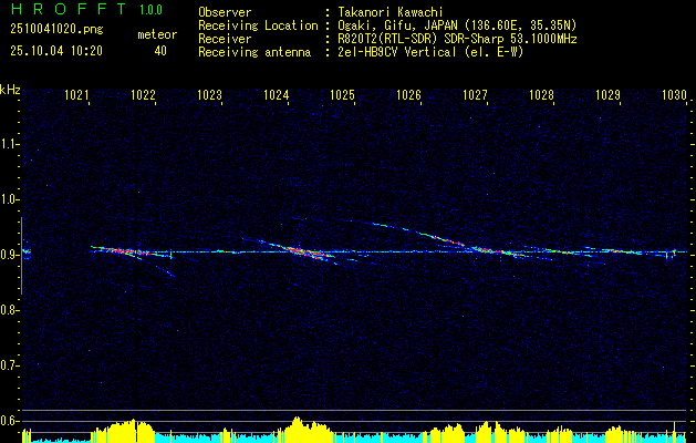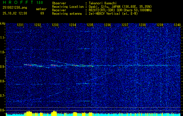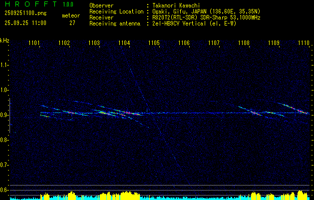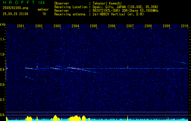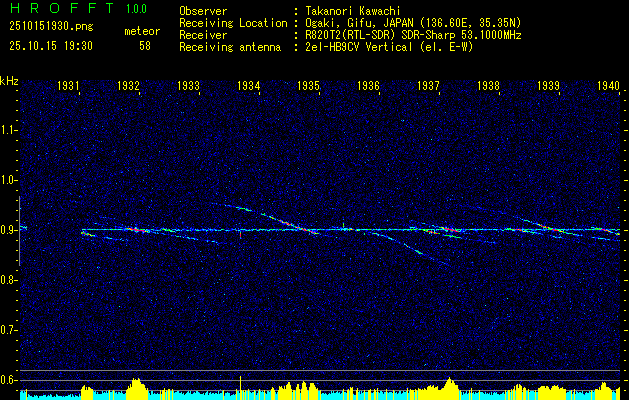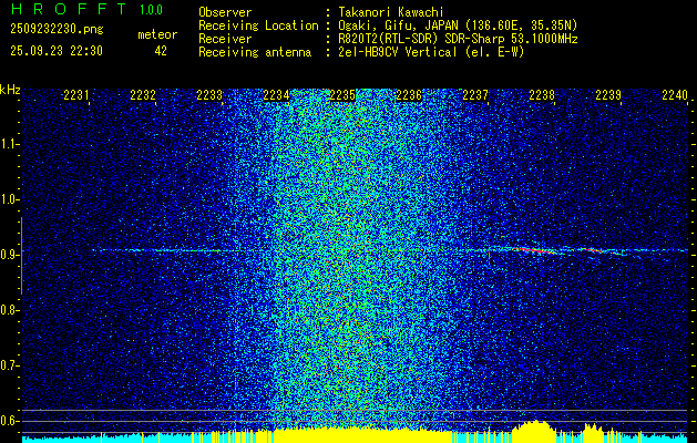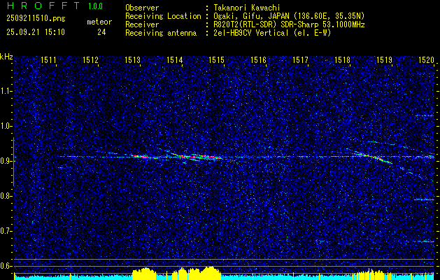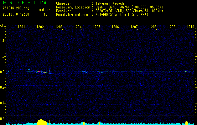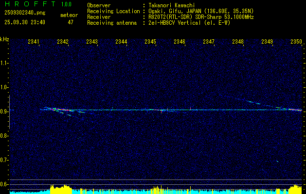 0.9kHz附近に発生している『点』または『塊』が流星によるエコーです.