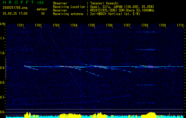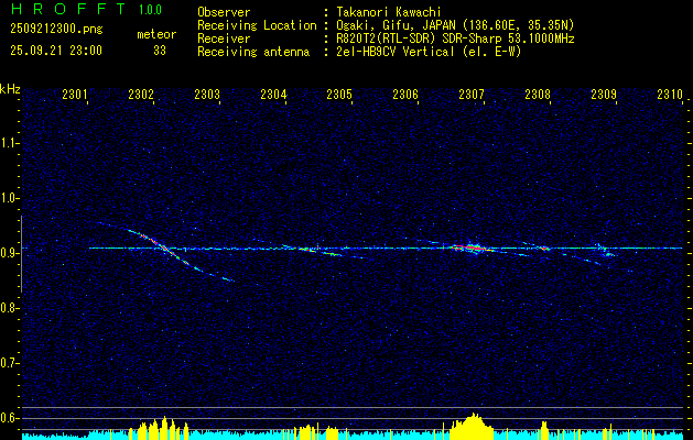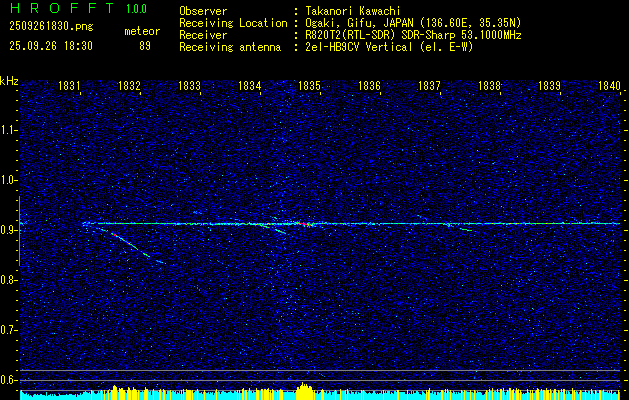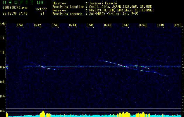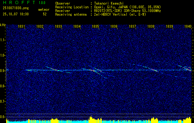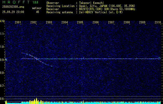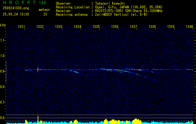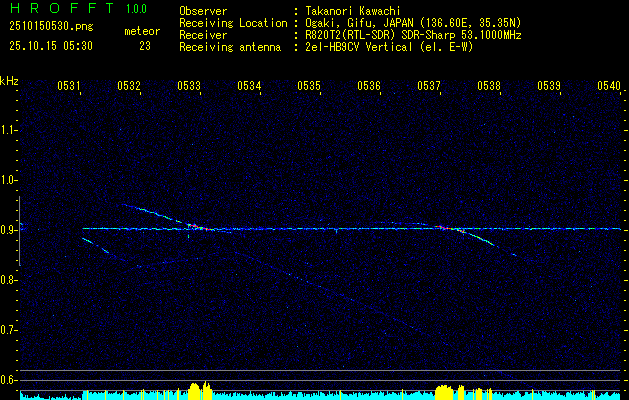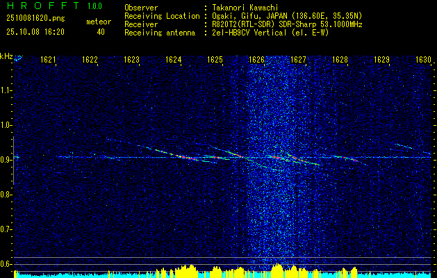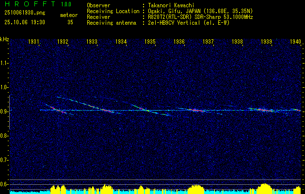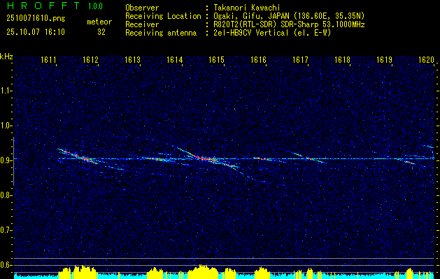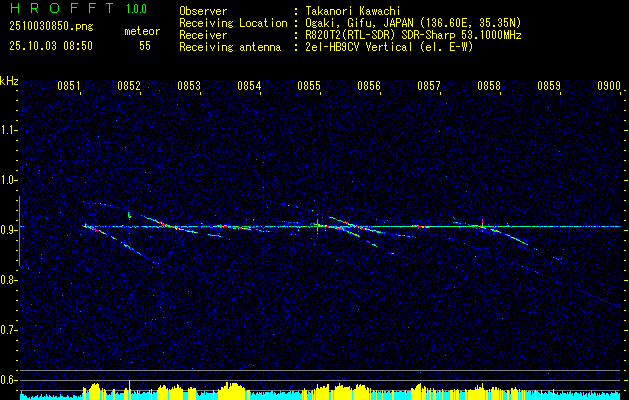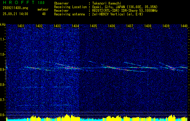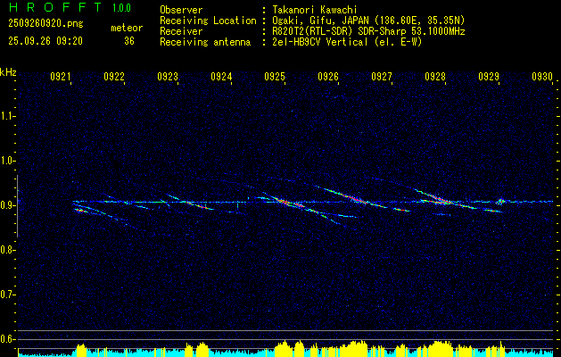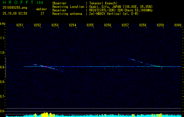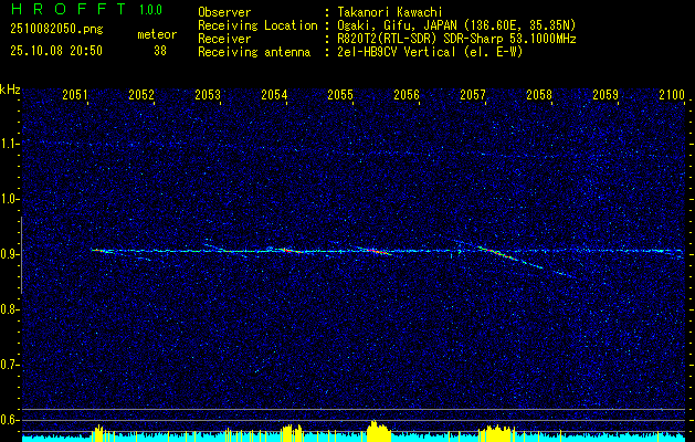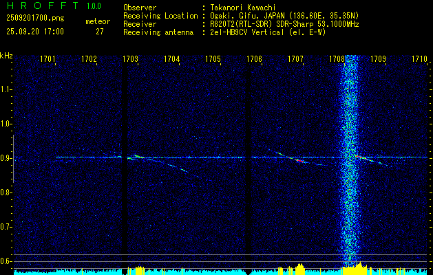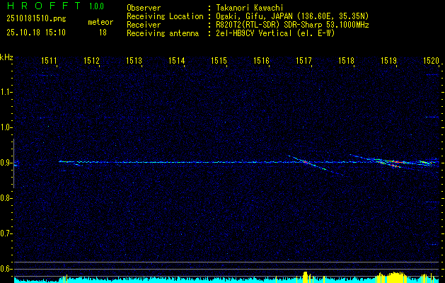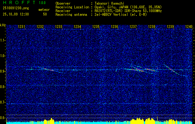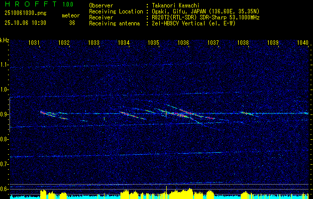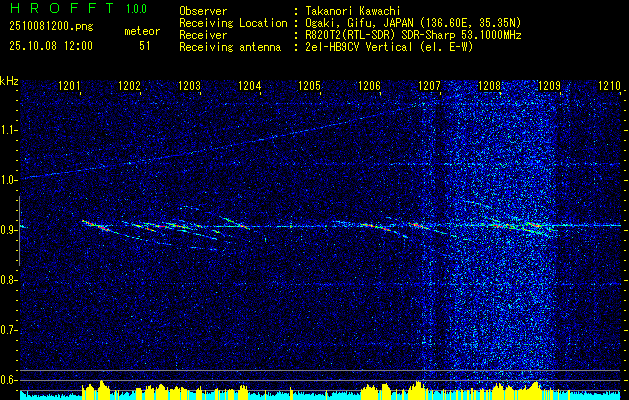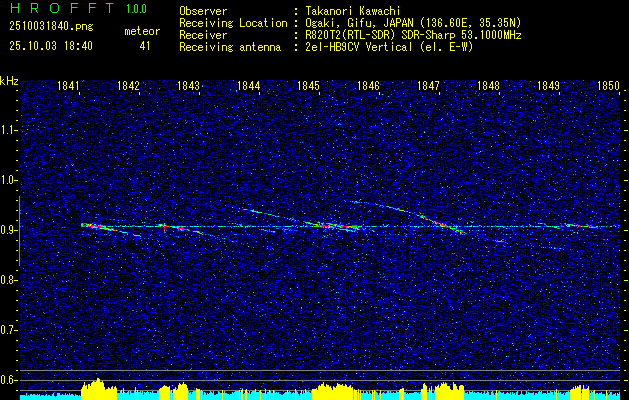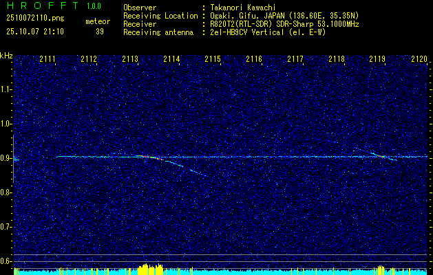 0.9kHz附近に発生している『点』または『塊』が流星によるエコーです.