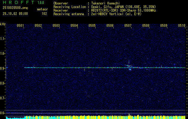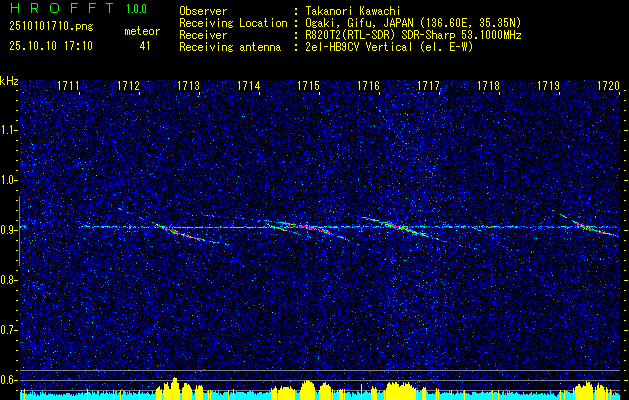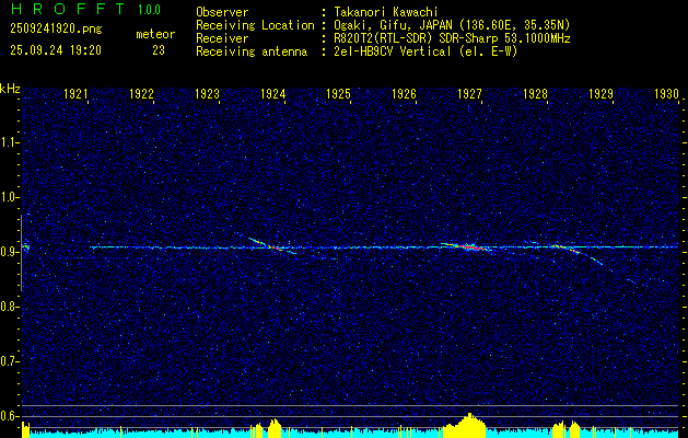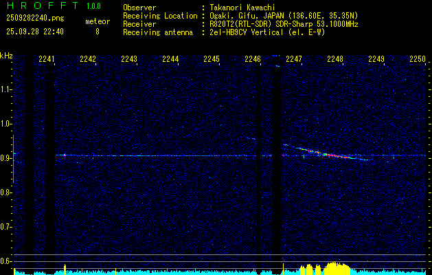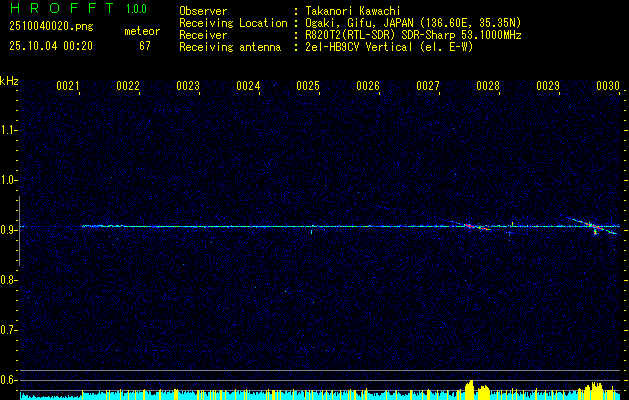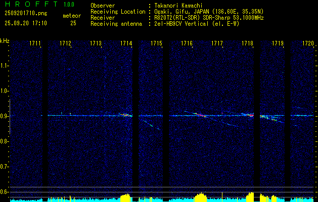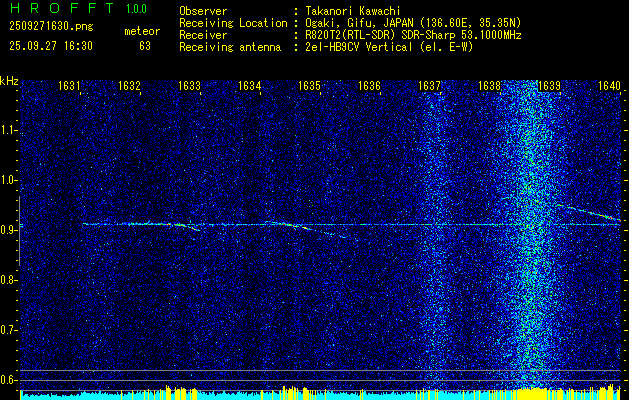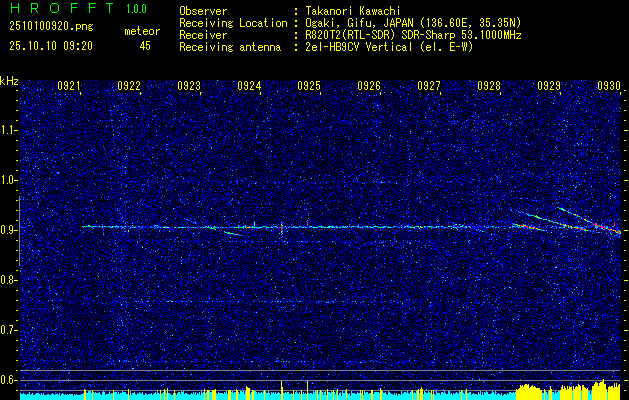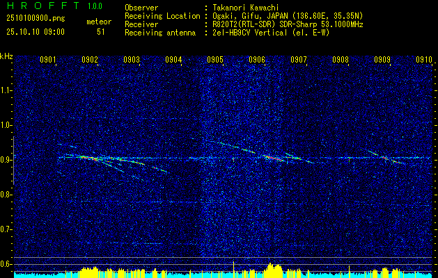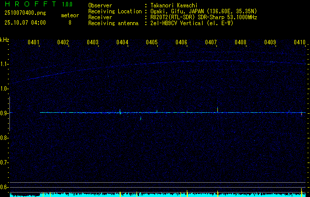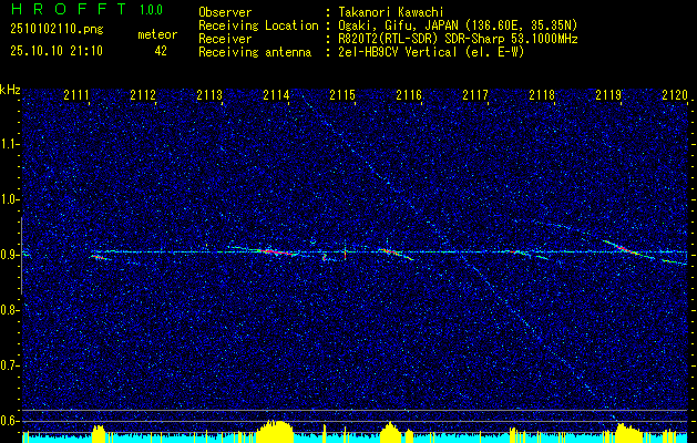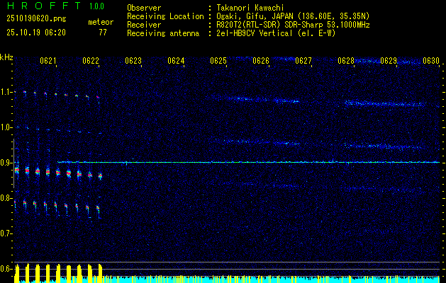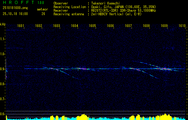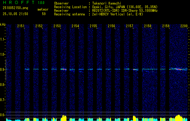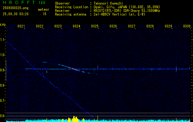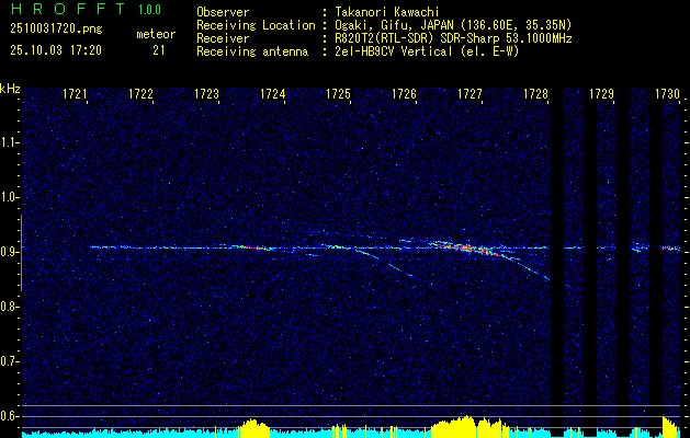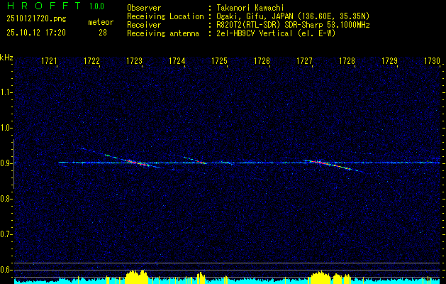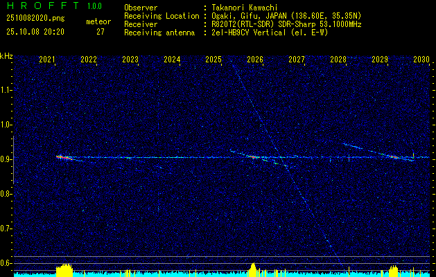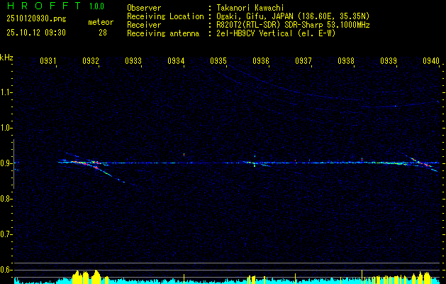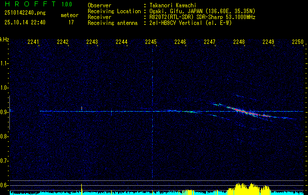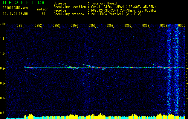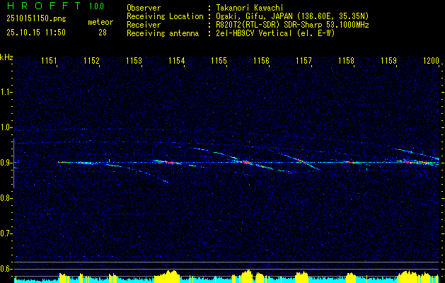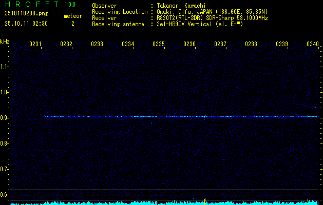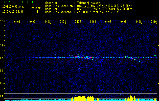 0.9kHz附近に発生している『点』または『塊』が流星によるエコーです.