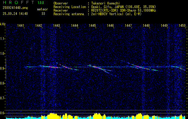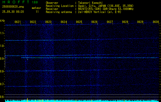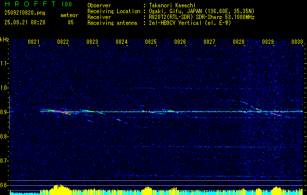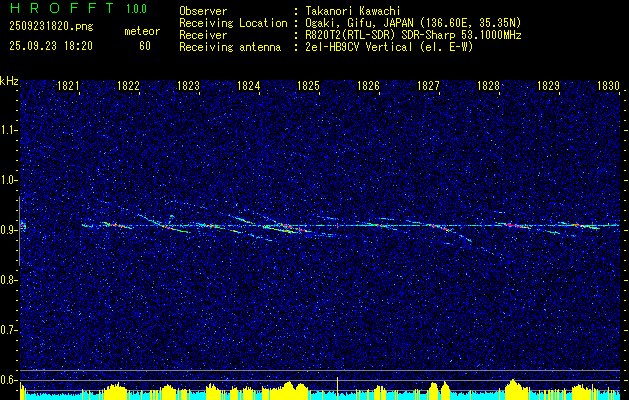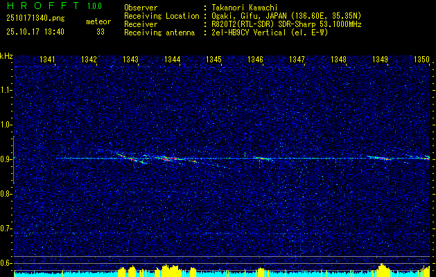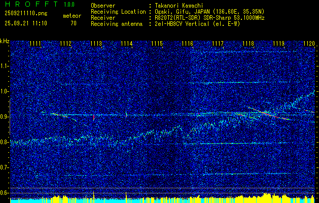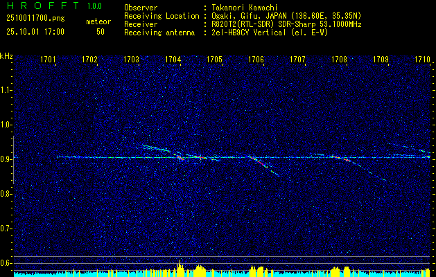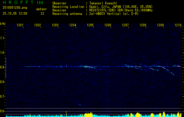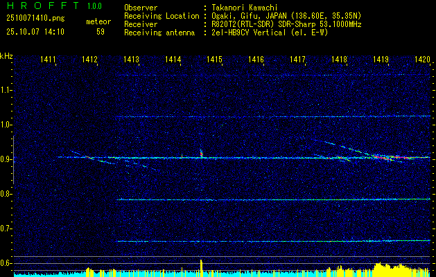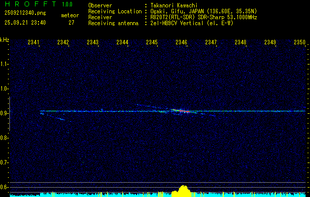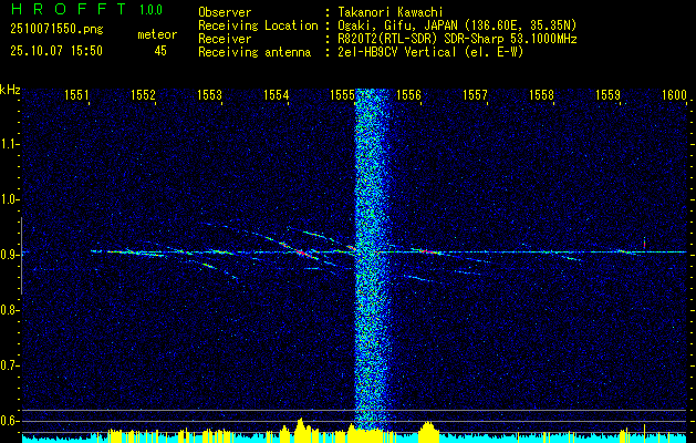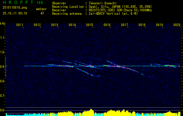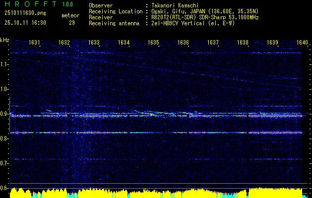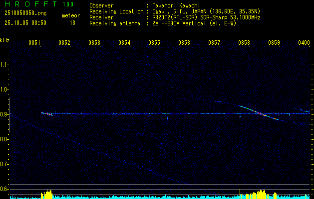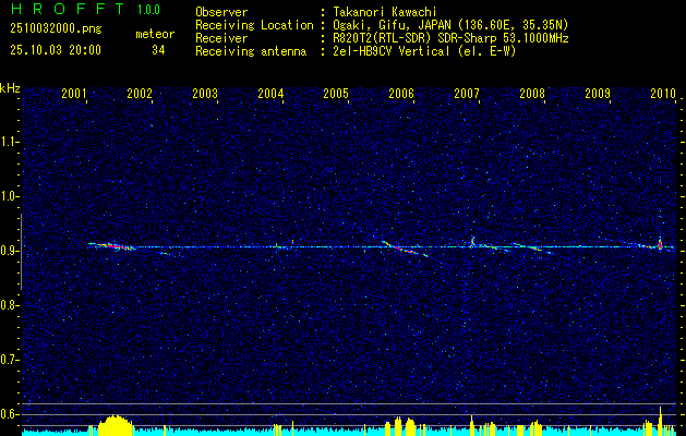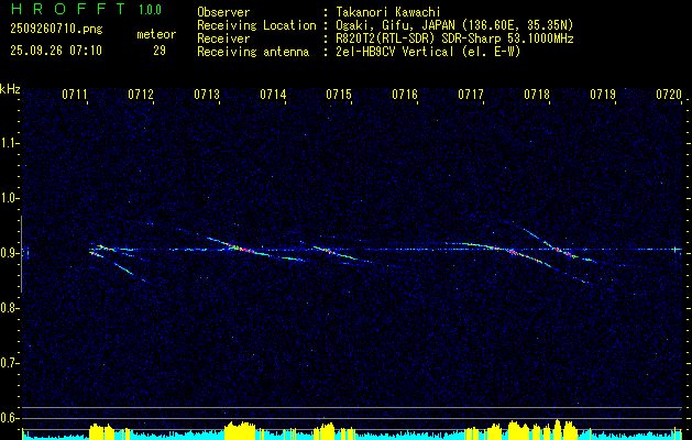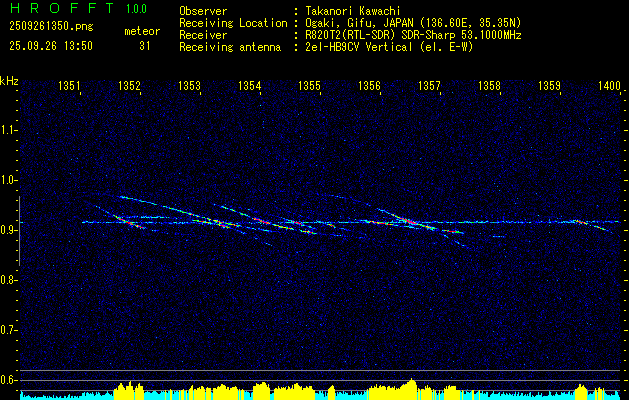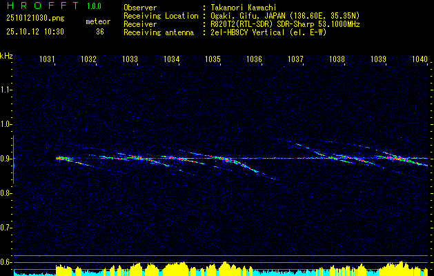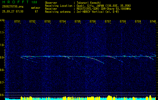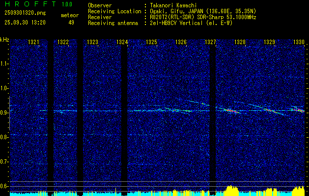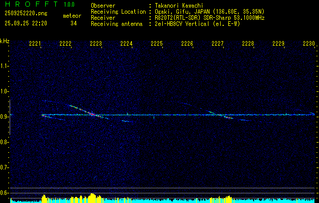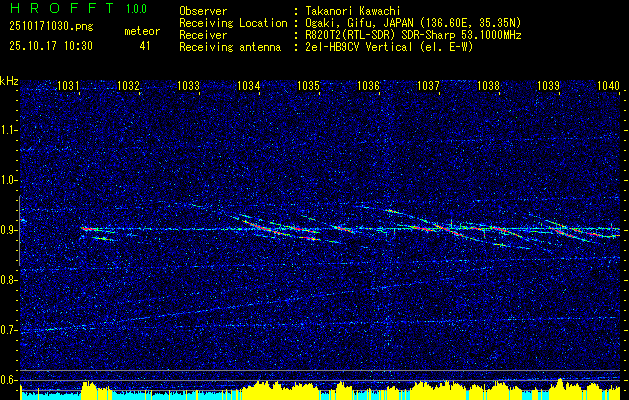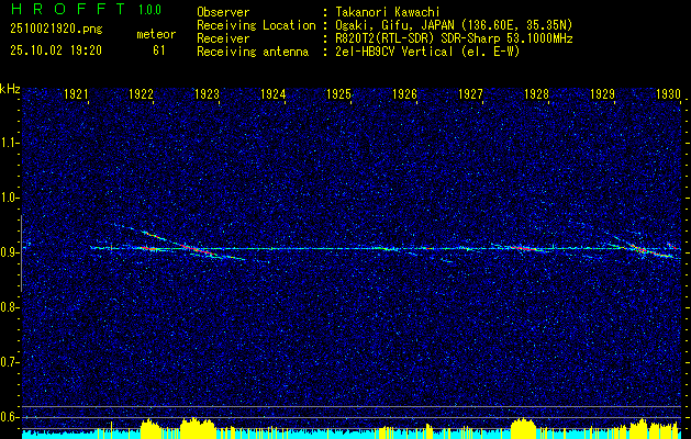0.9kHz附近に発生している『点』または『塊』が流星によるエコーです.