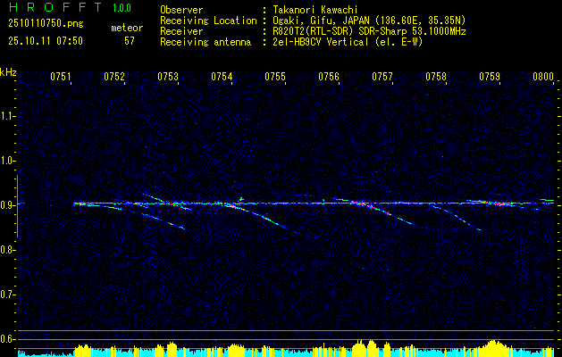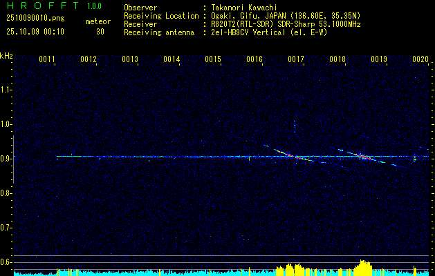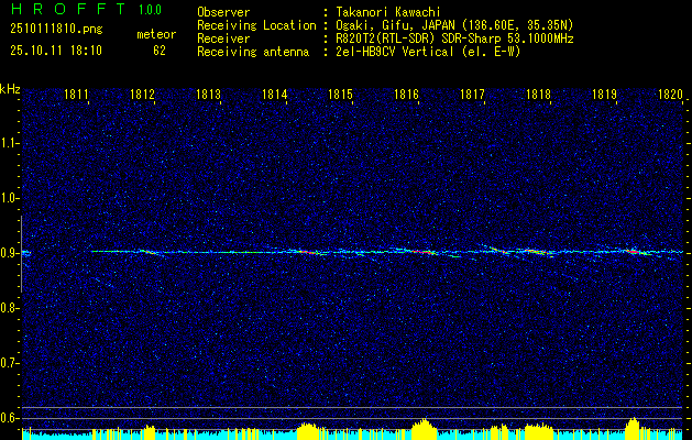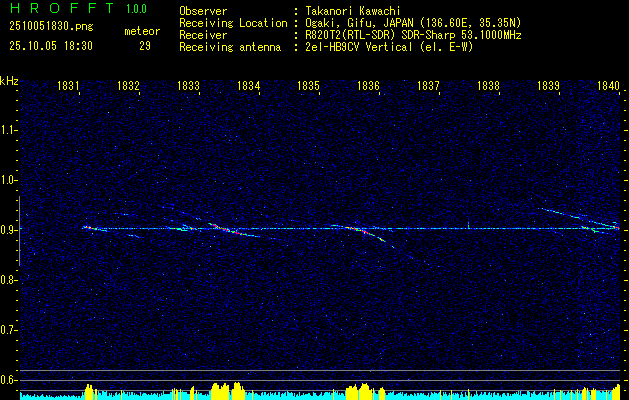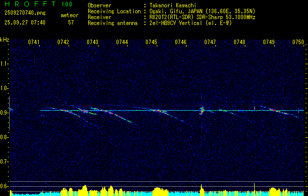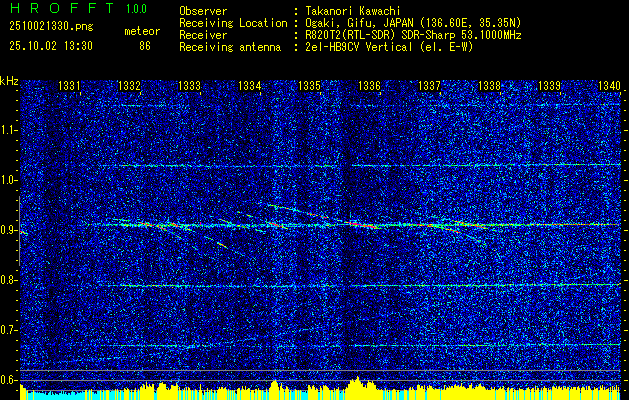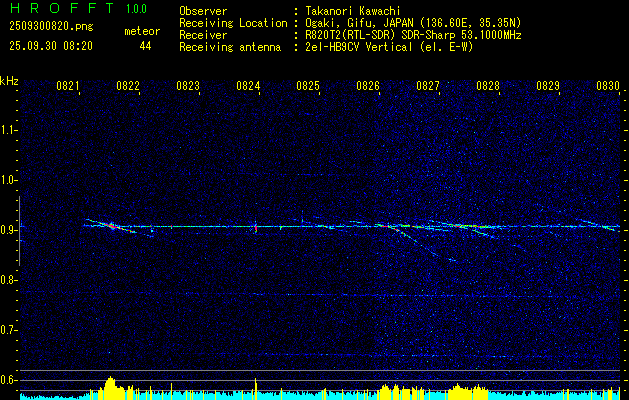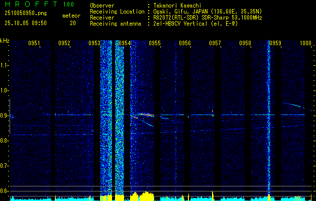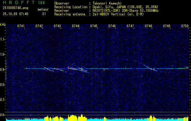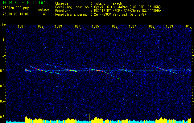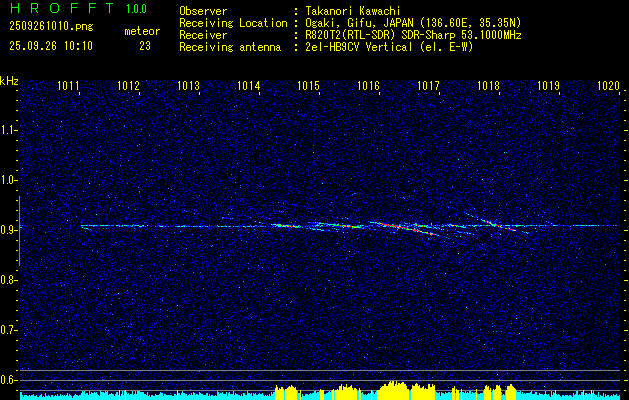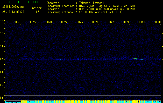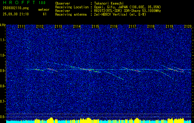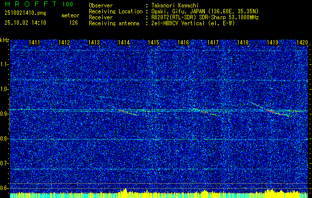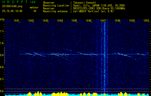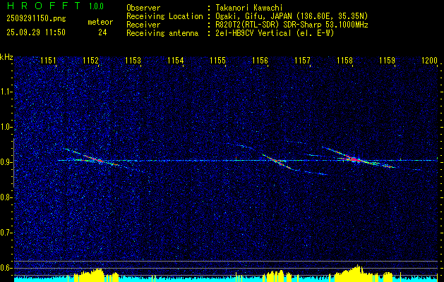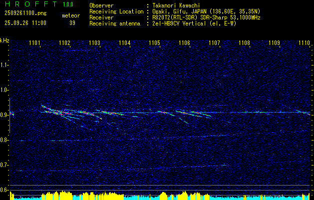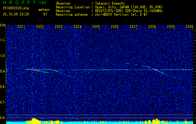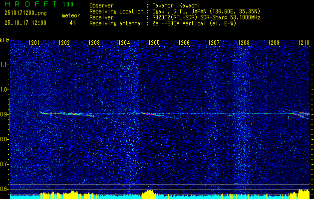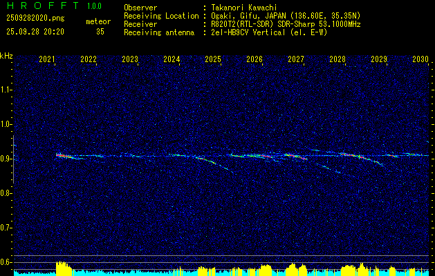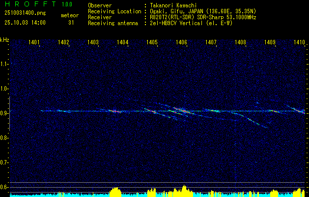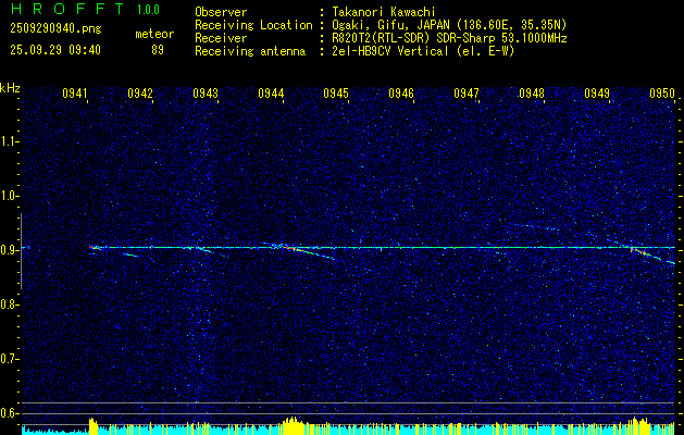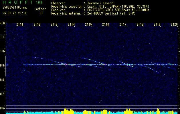 0.9kHz附近に発生している『点』または『塊』が流星によるエコーです.