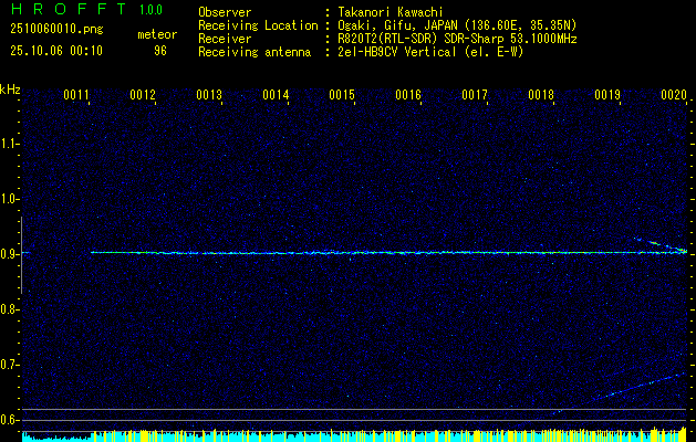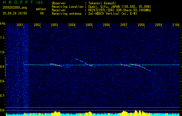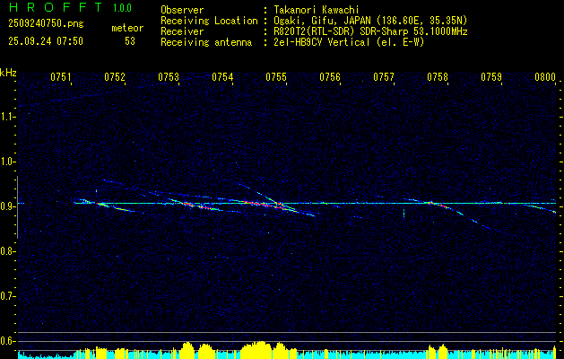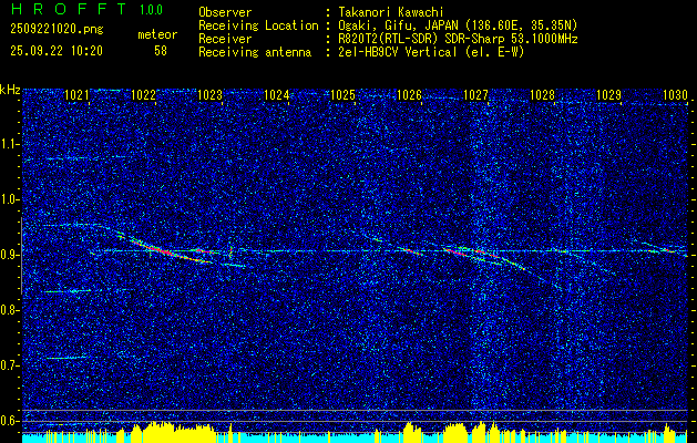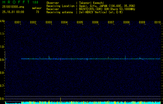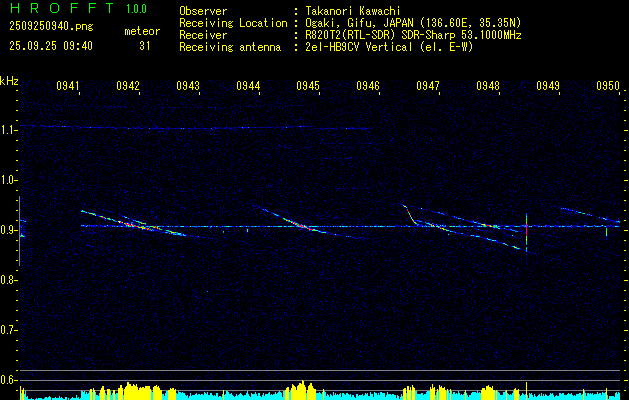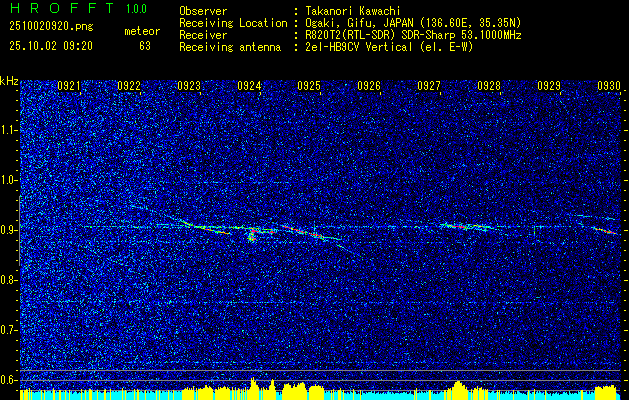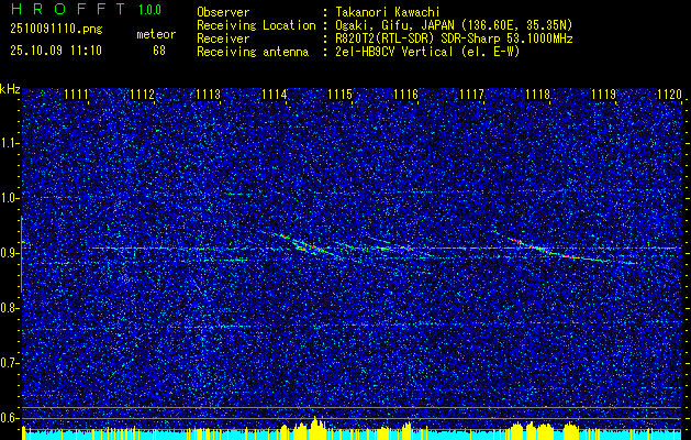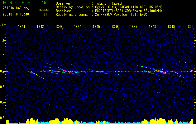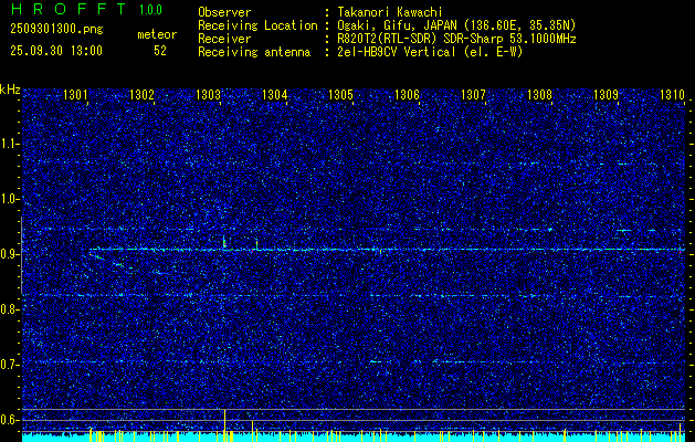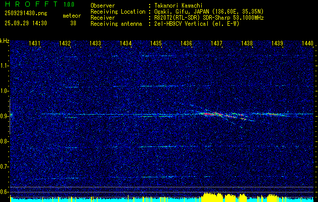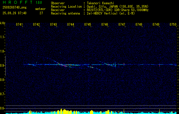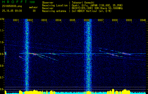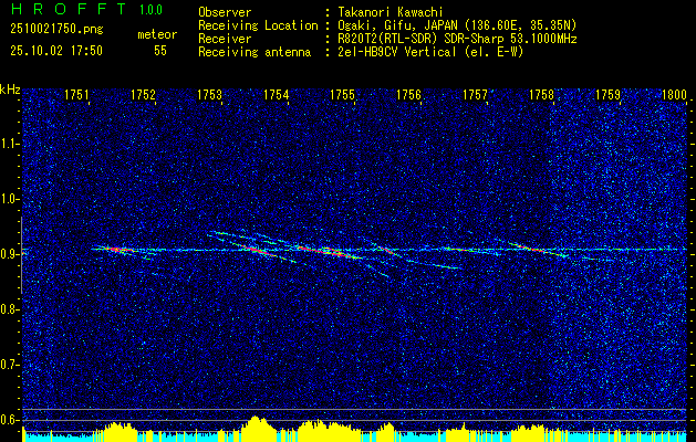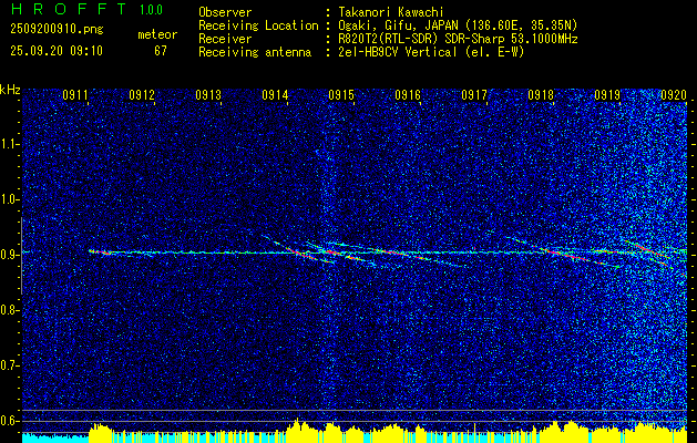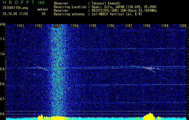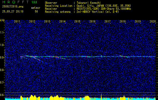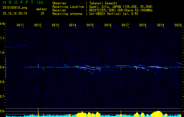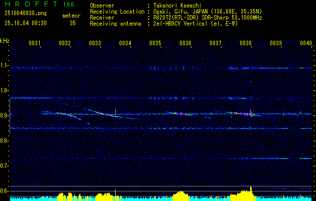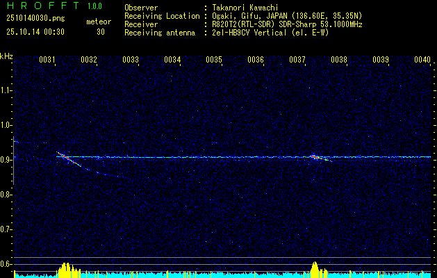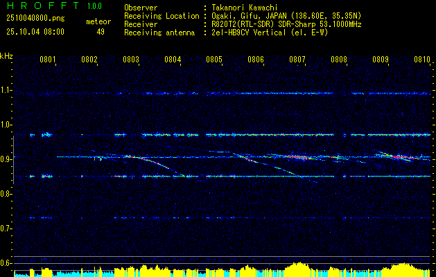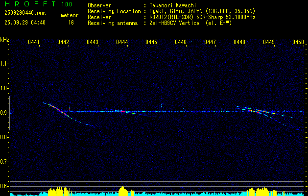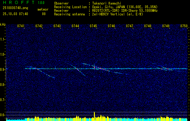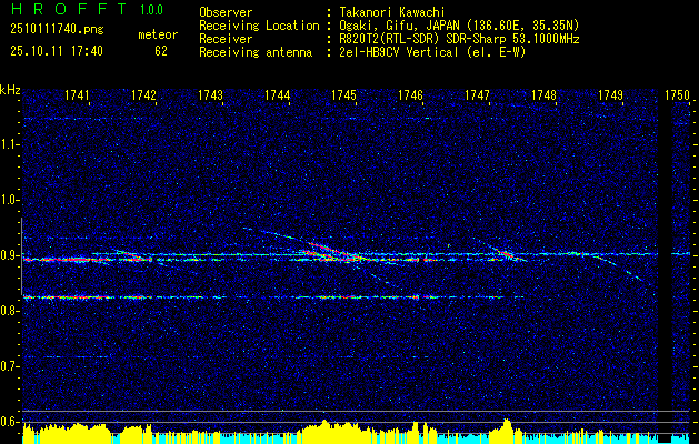 0.9kHz附近に発生している『点』または『塊』が流星によるエコーです.