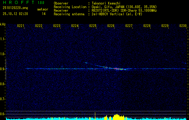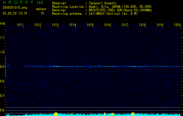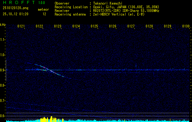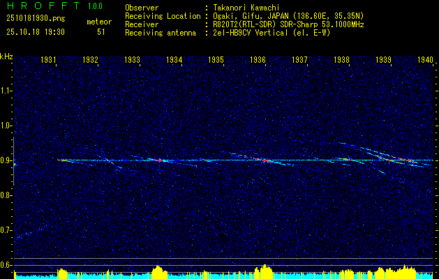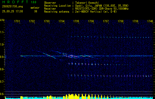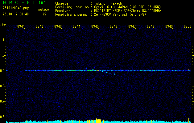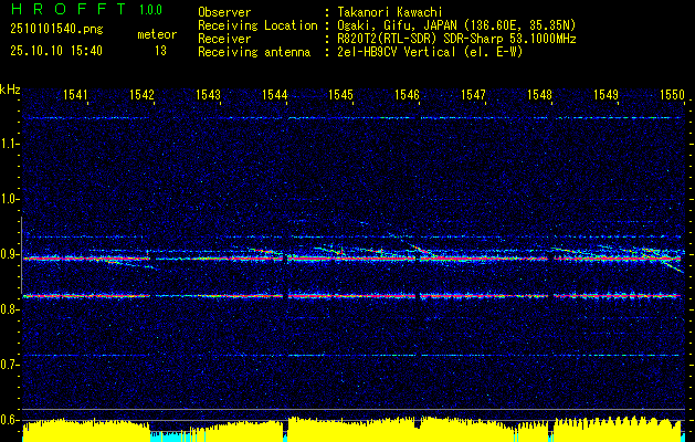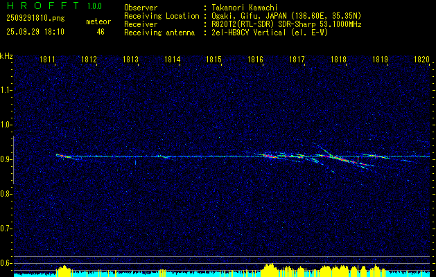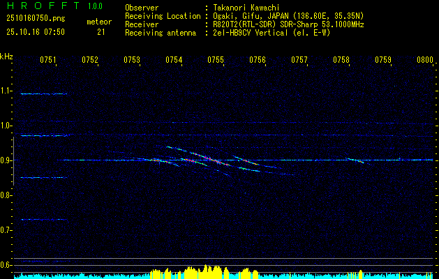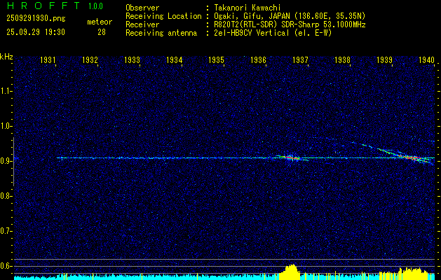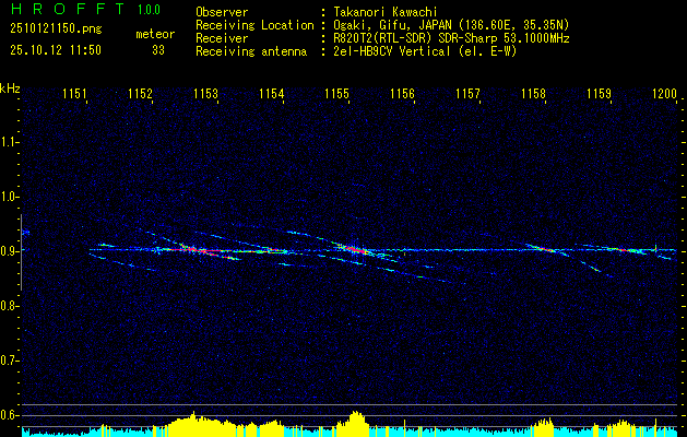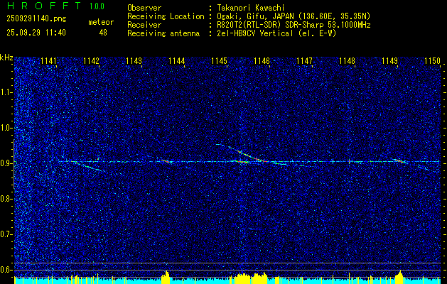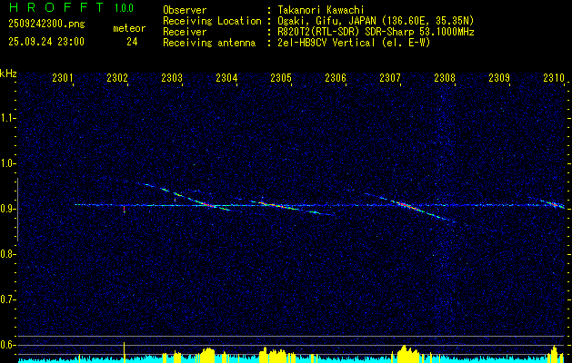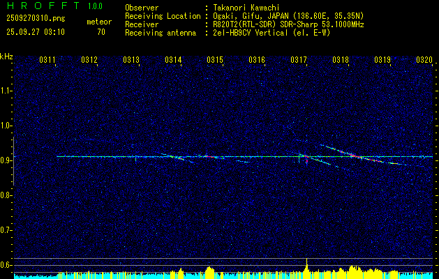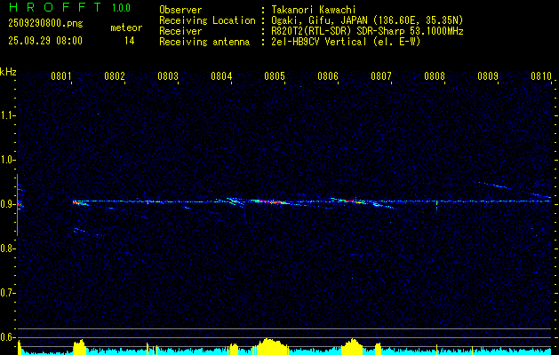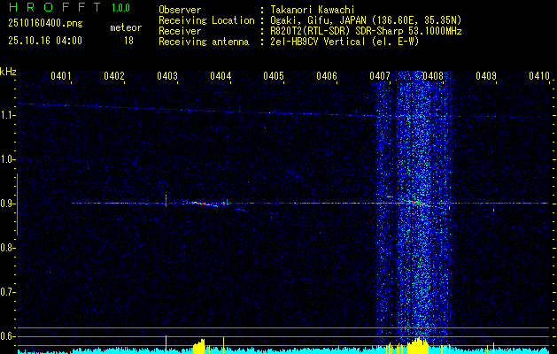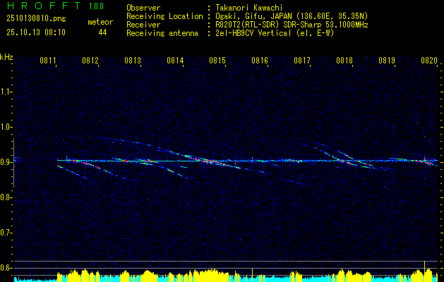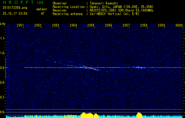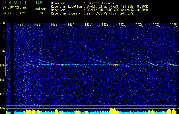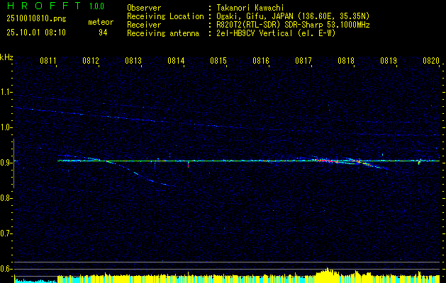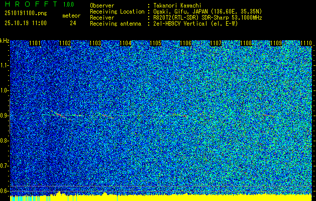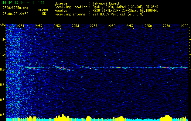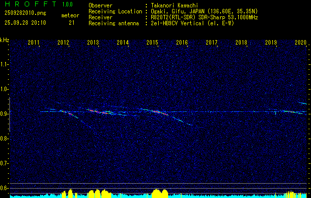 0.9kHz附近に発生している『点』または『塊』が流星によるエコーです.