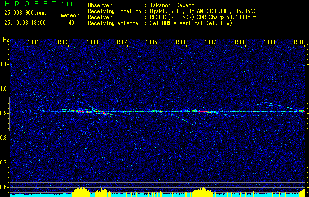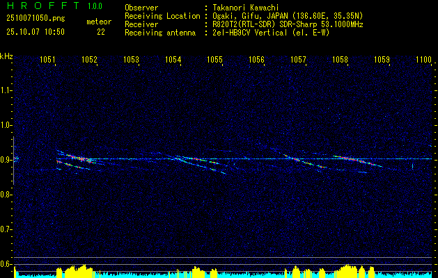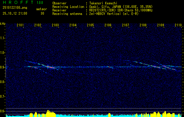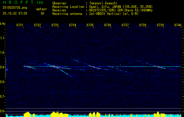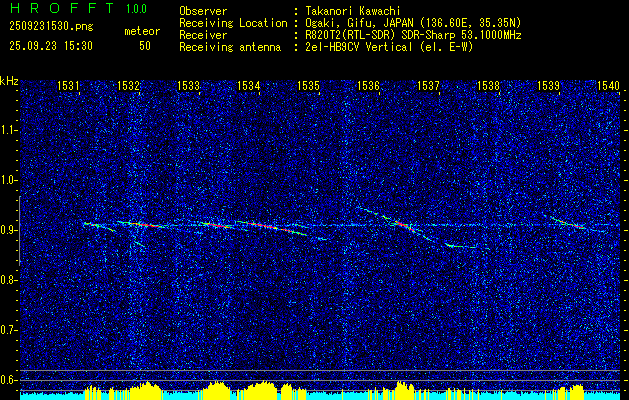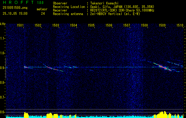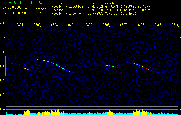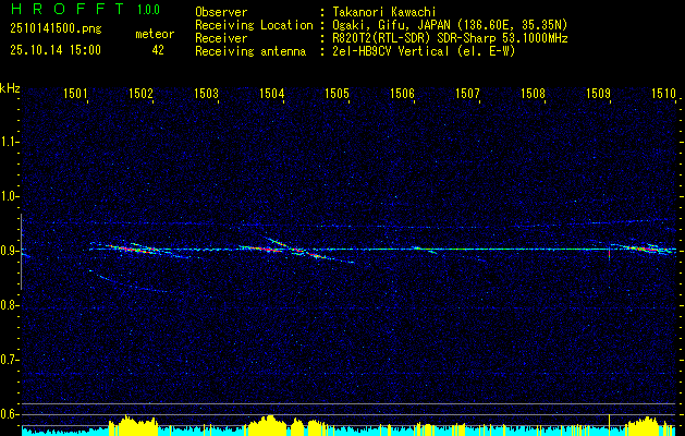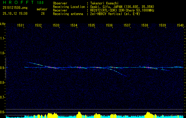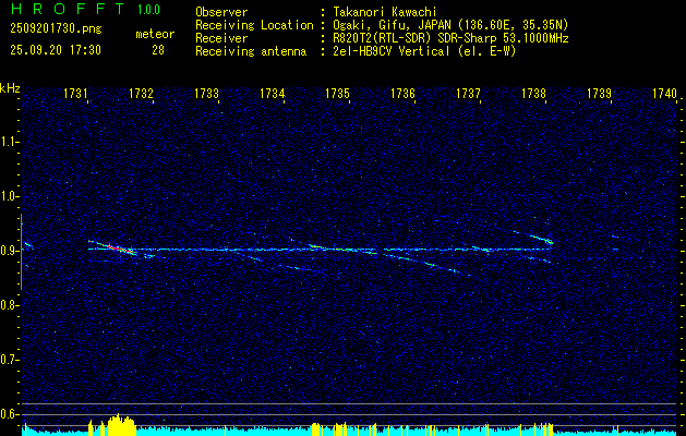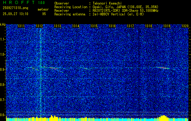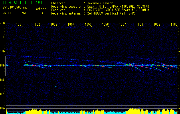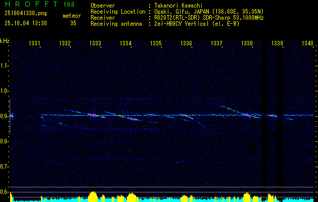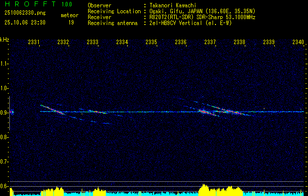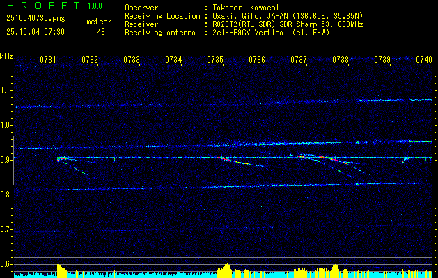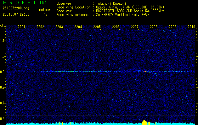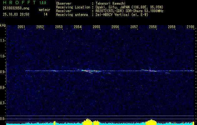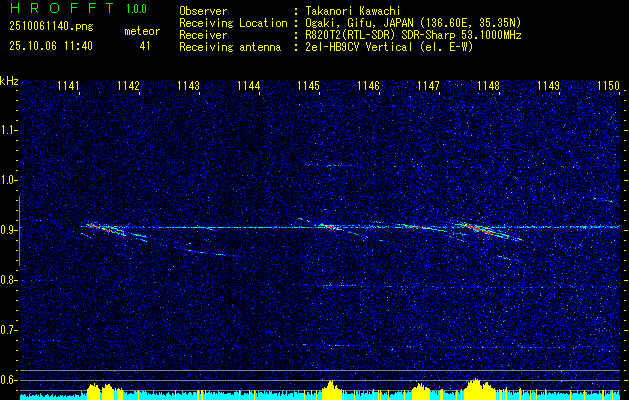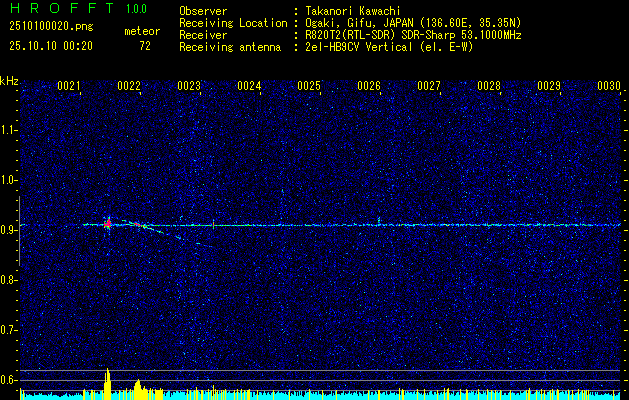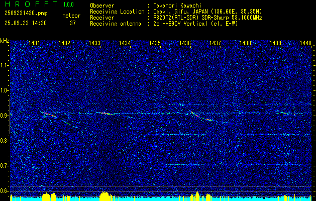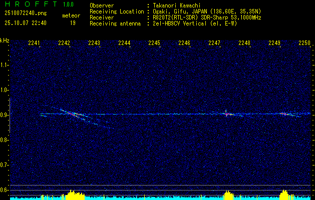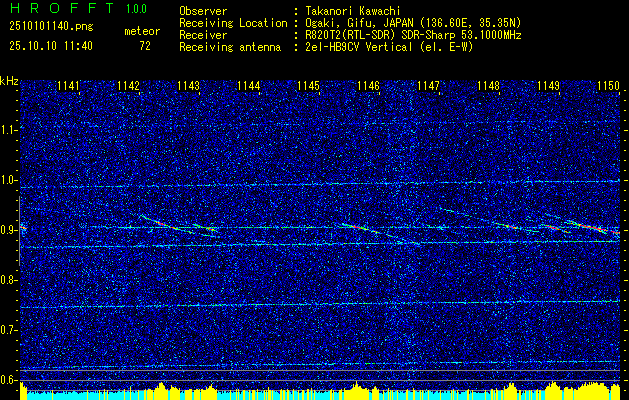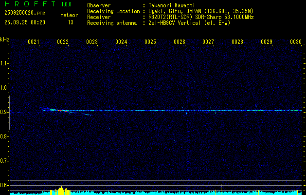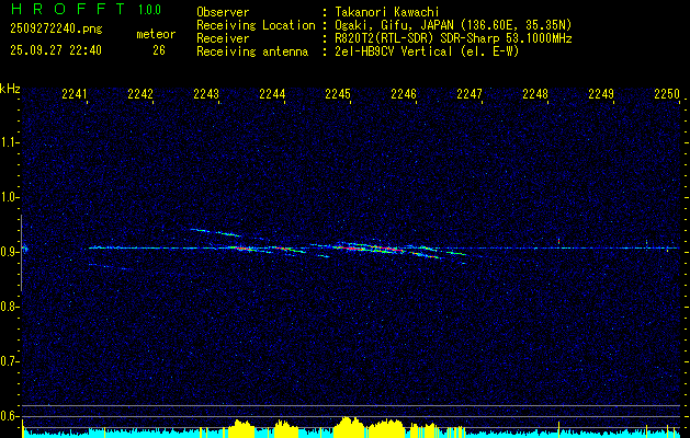 0.9kHz附近に発生している『点』または『塊』が流星によるエコーです.