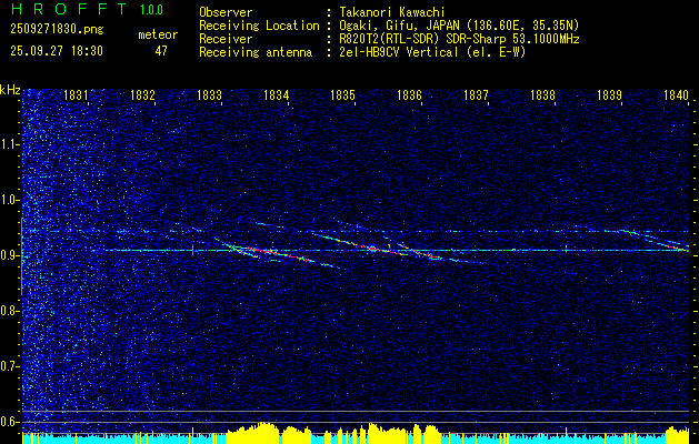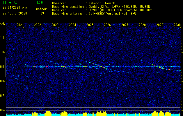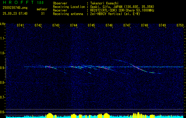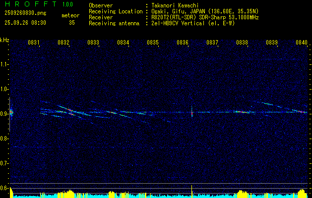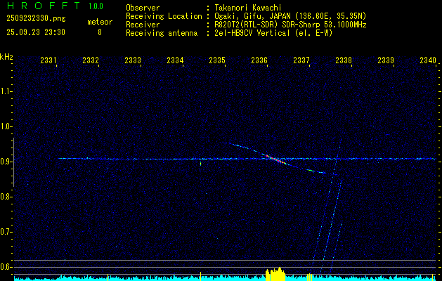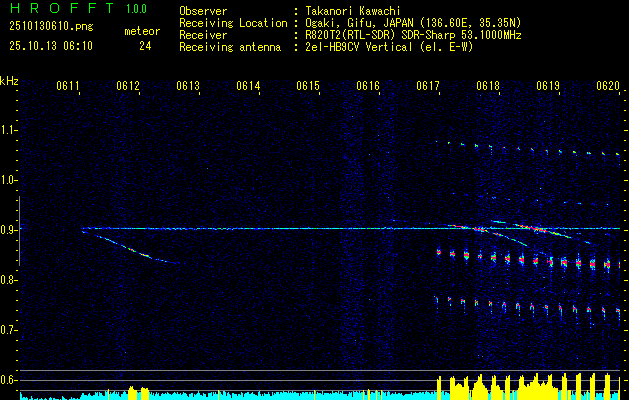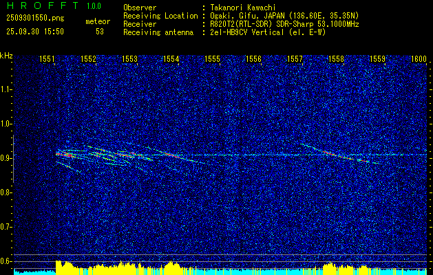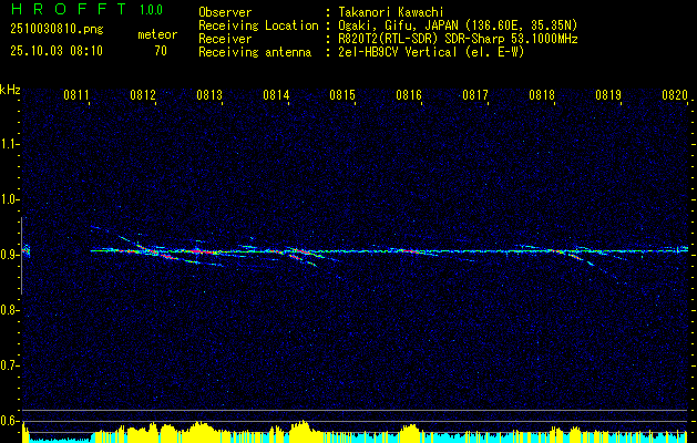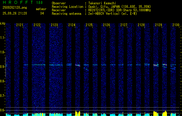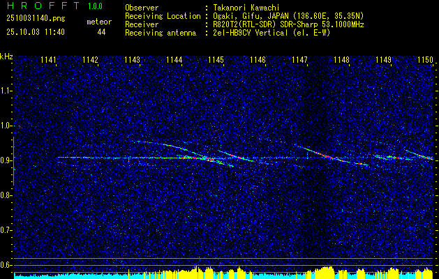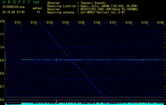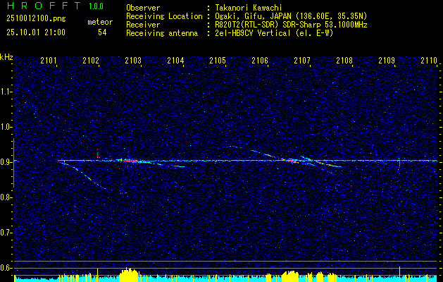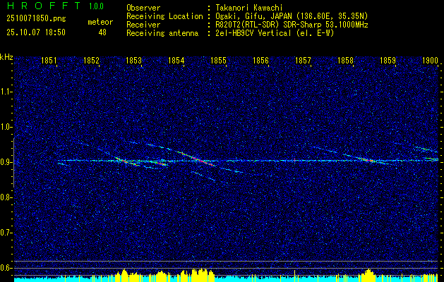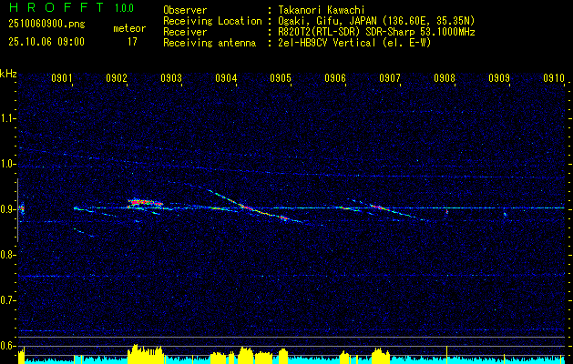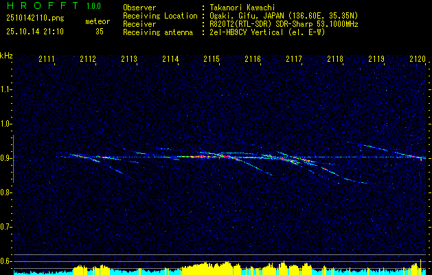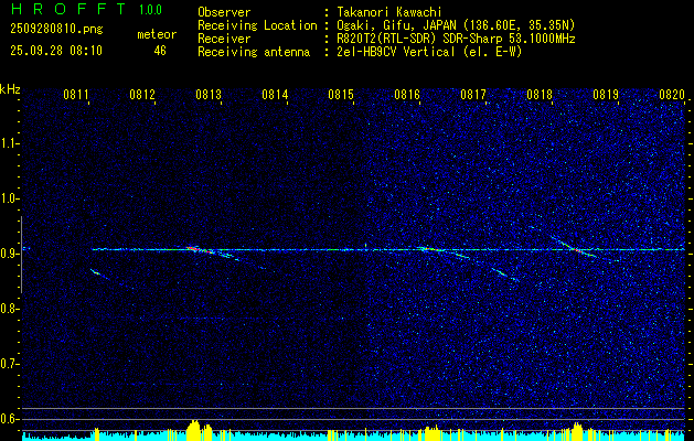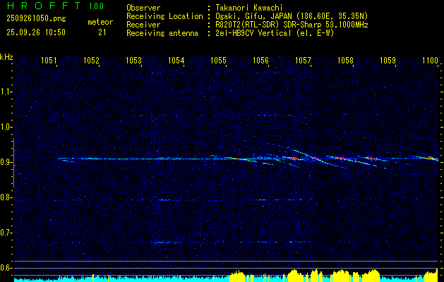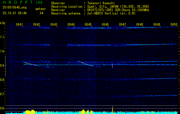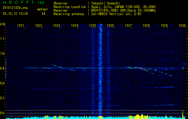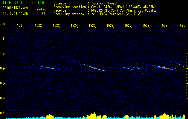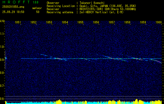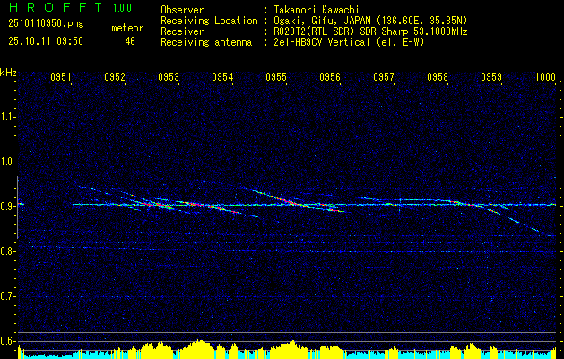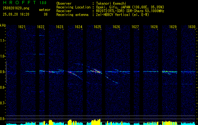 0.9kHz附近に発生している『点』または『塊』が流星によるエコーです.