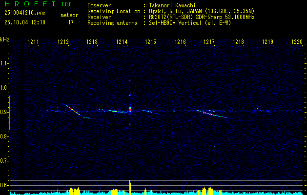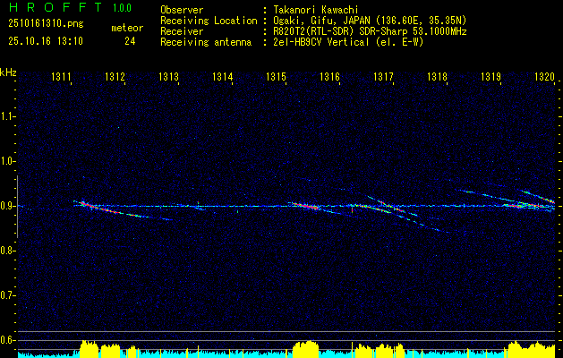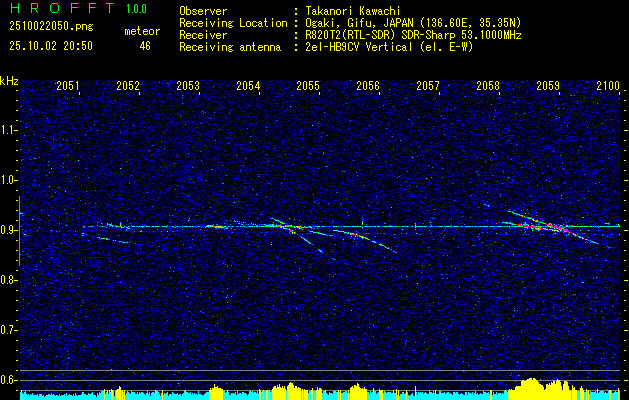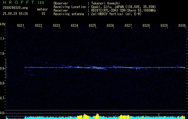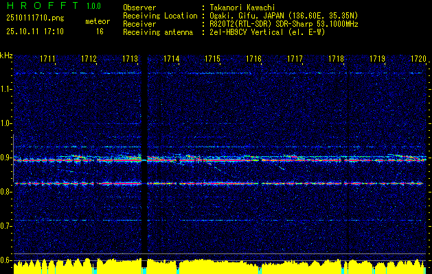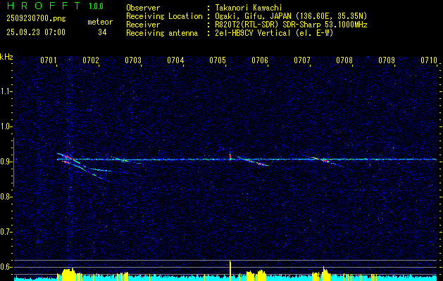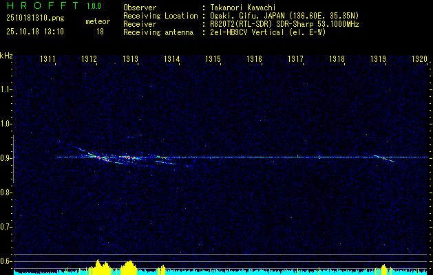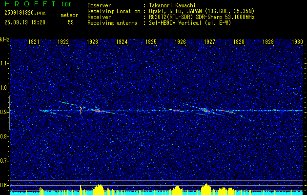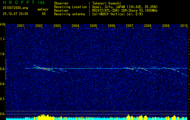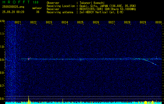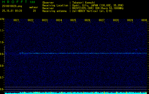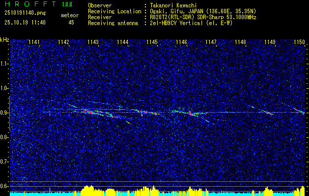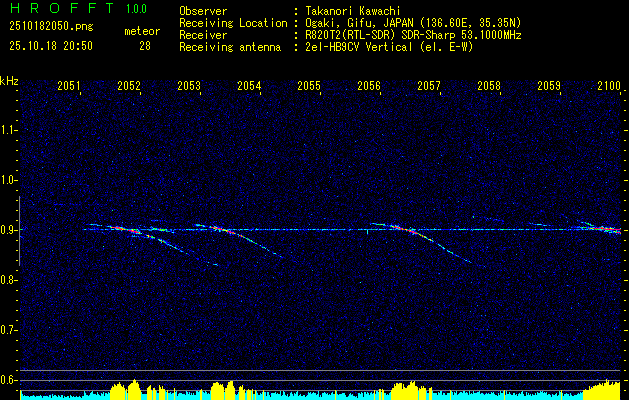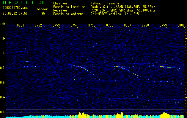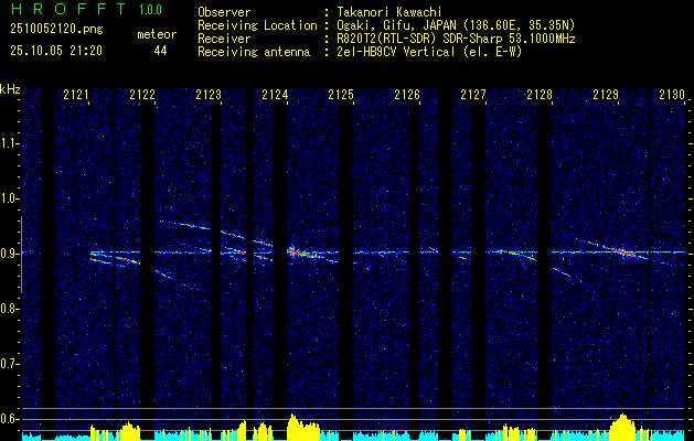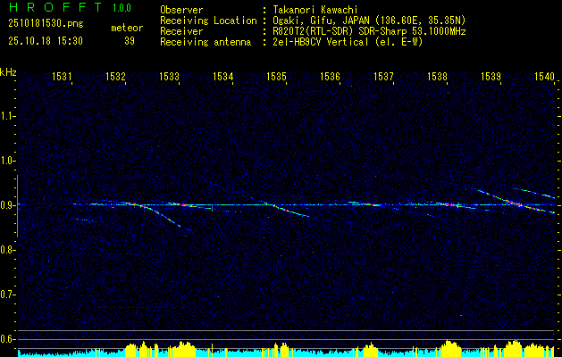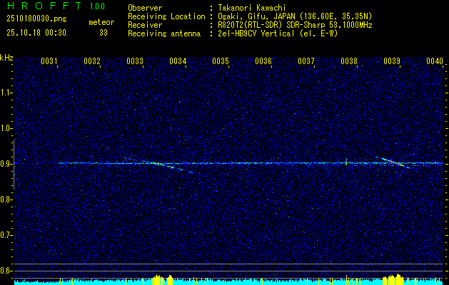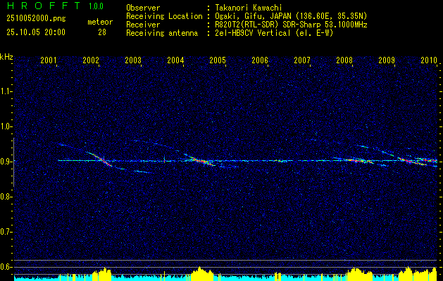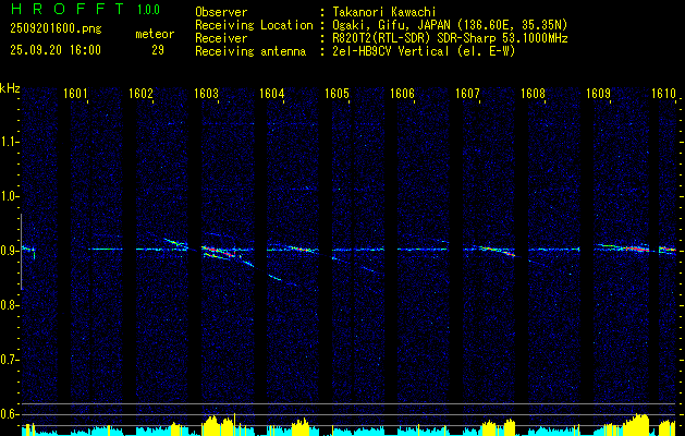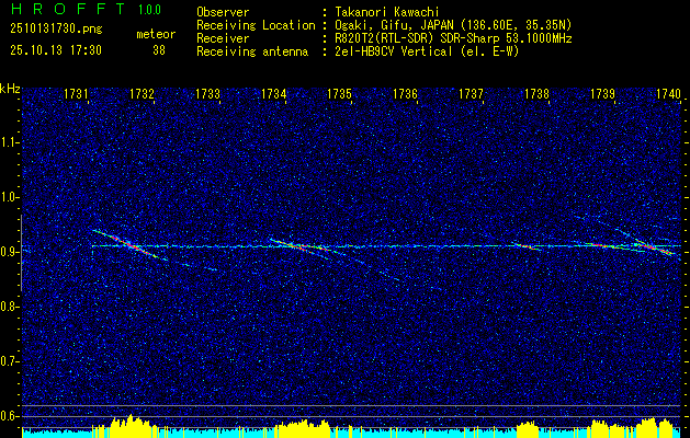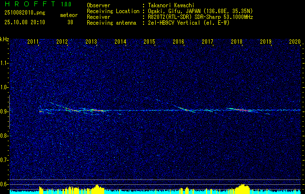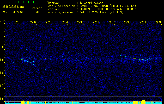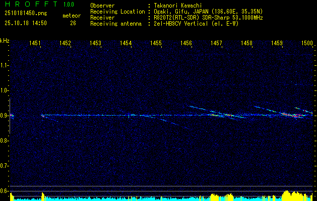0.9kHz附近に発生している『点』または『塊』が流星によるエコーです.