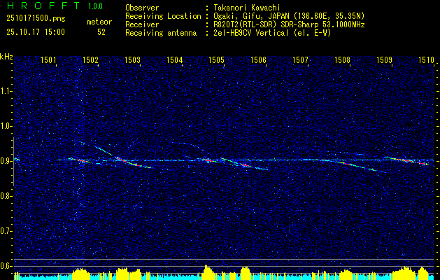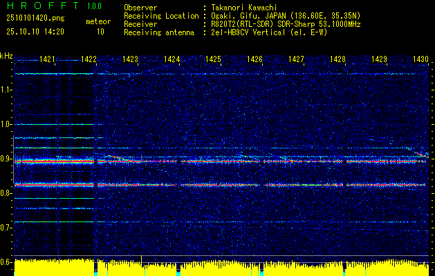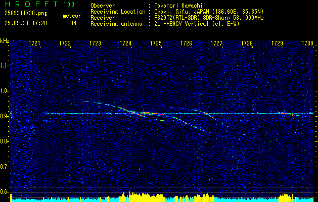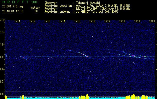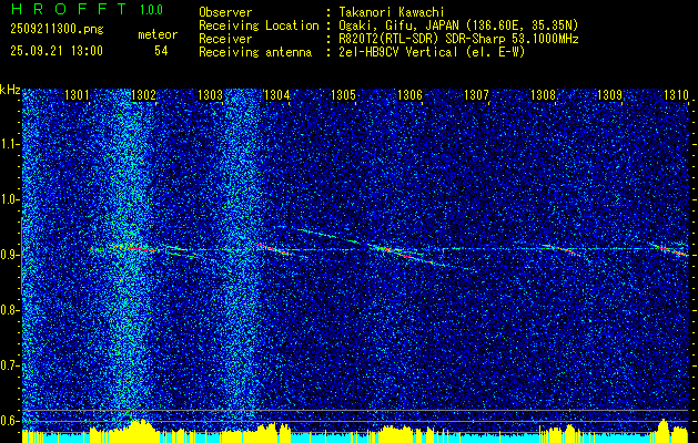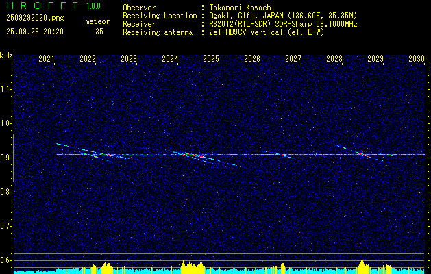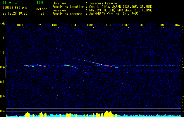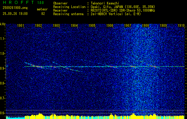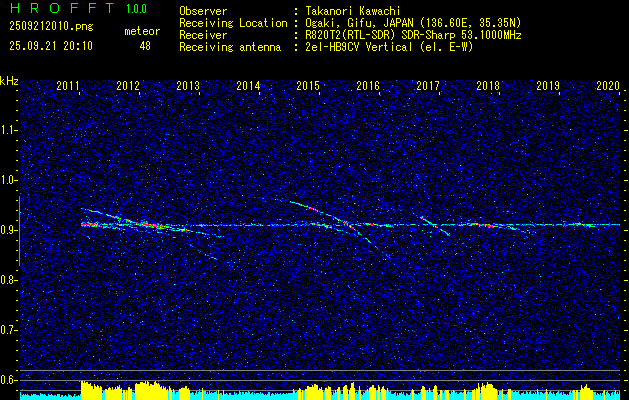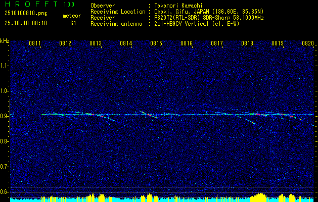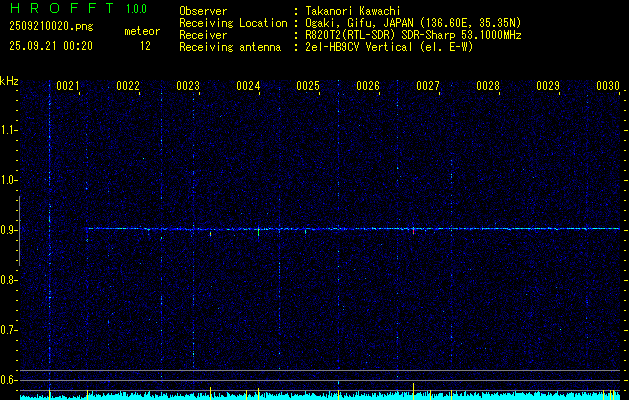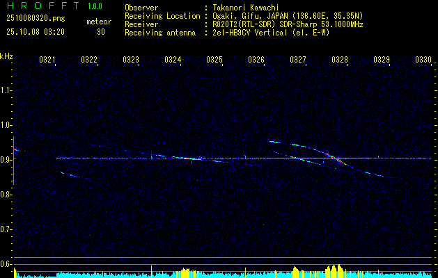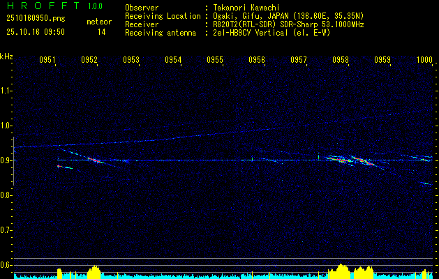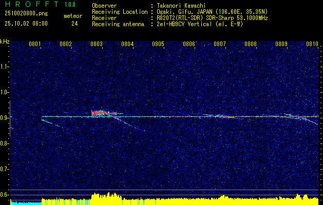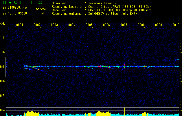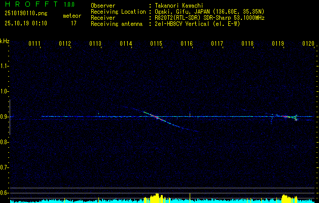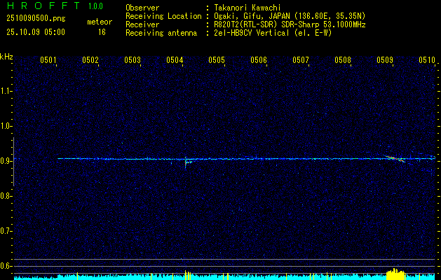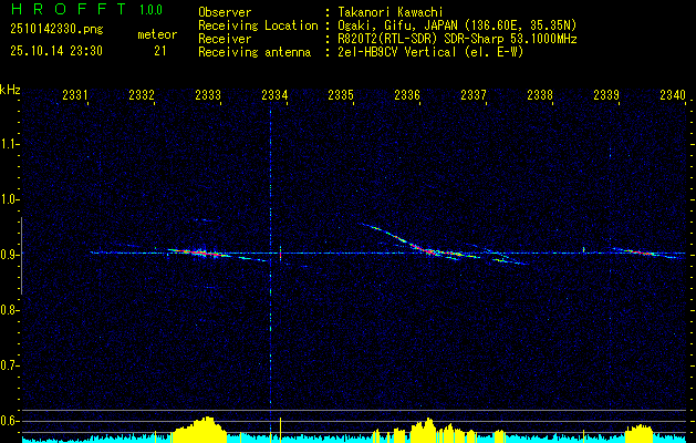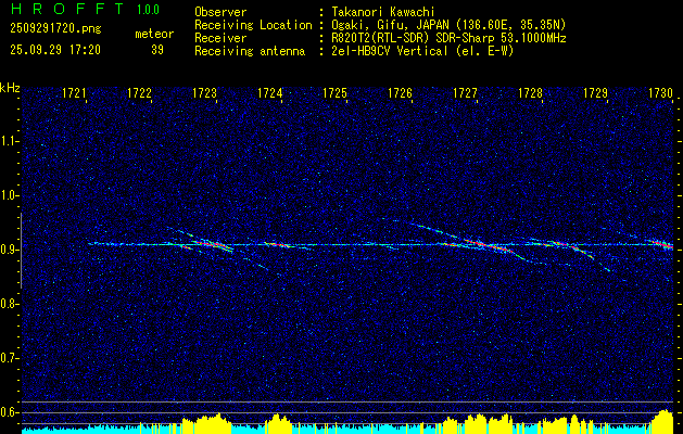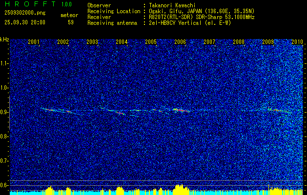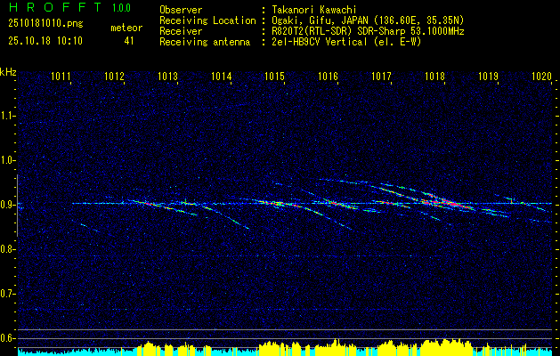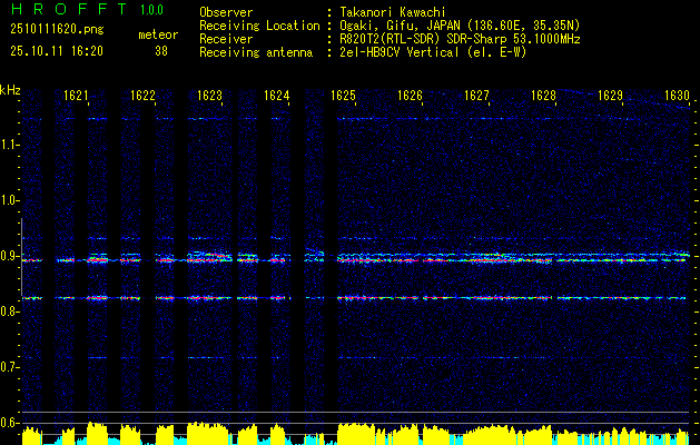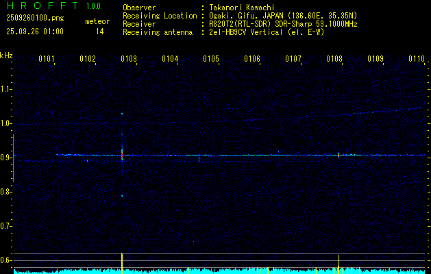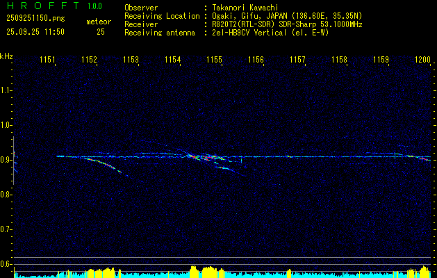 0.9kHz附近に発生している『点』または『塊』が流星によるエコーです.
