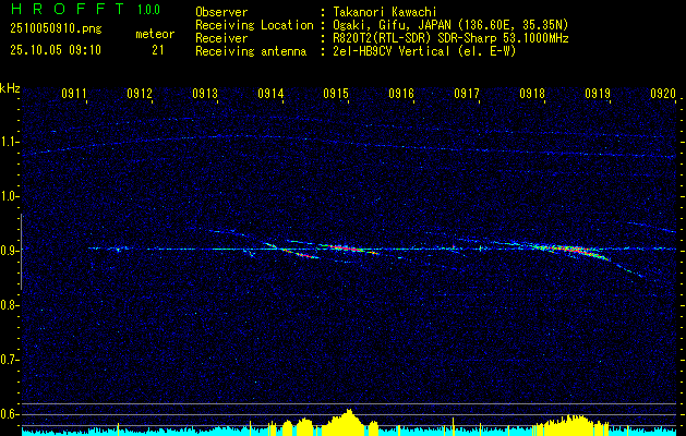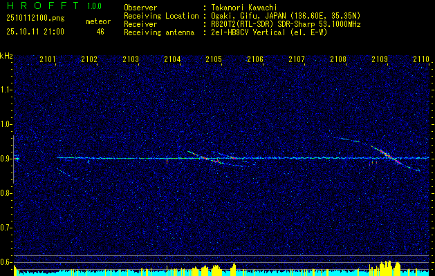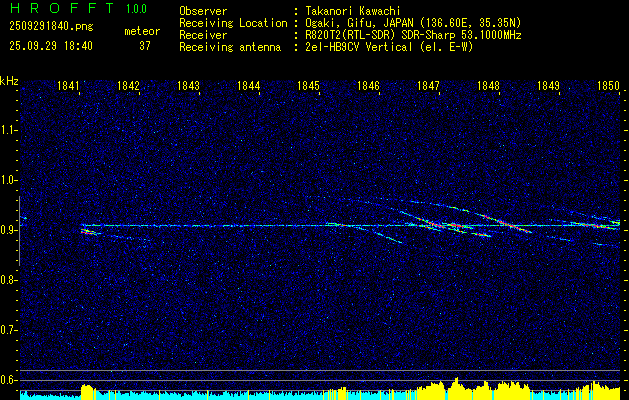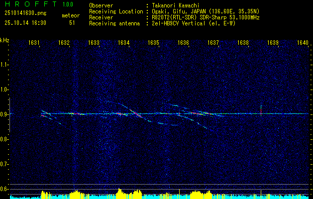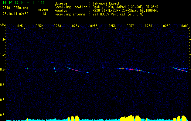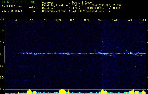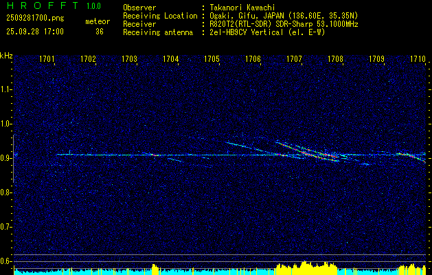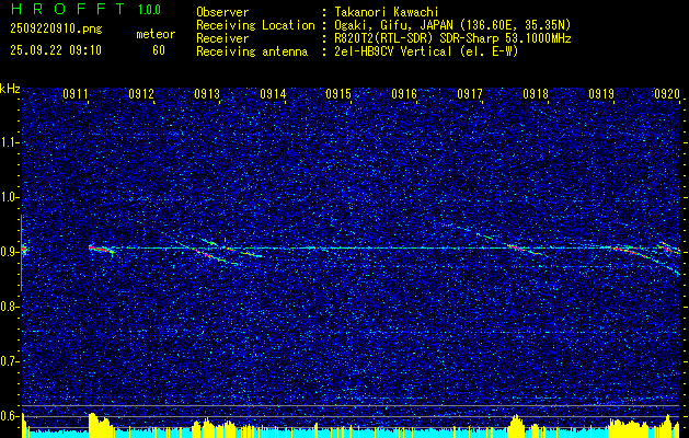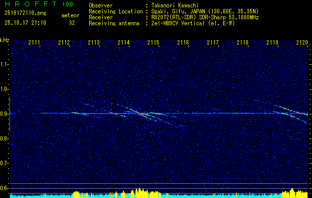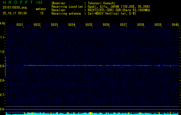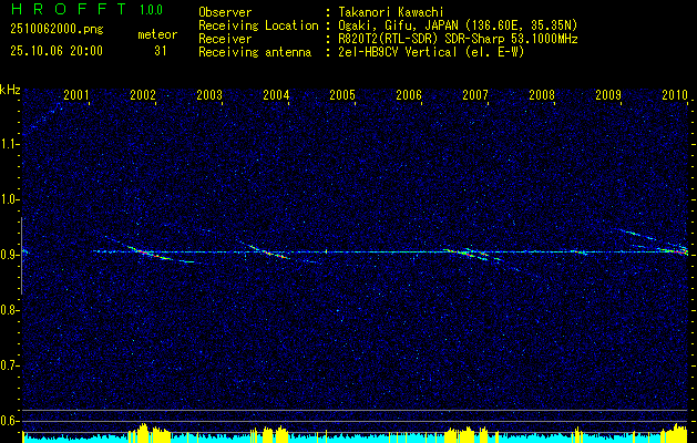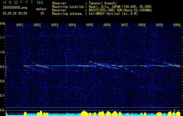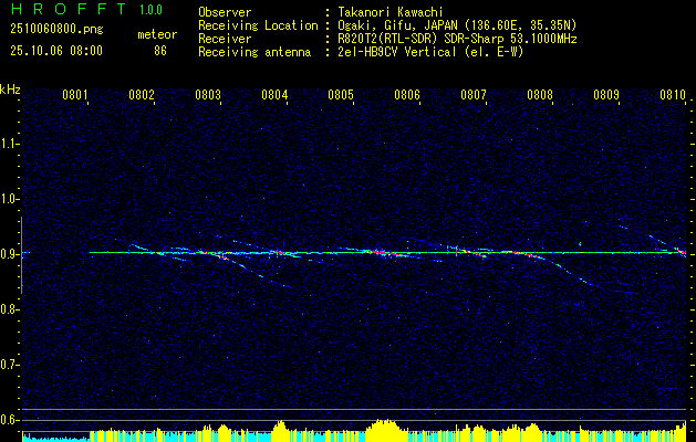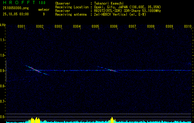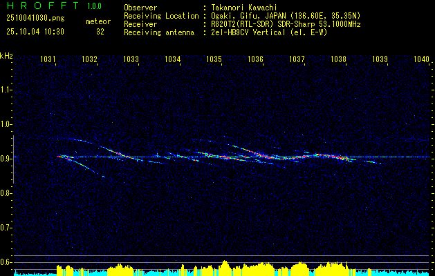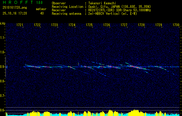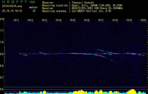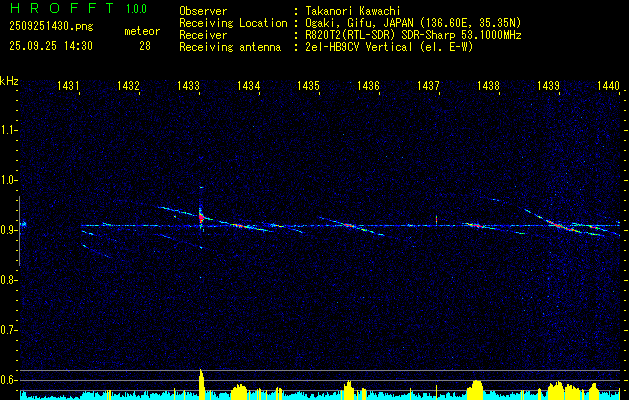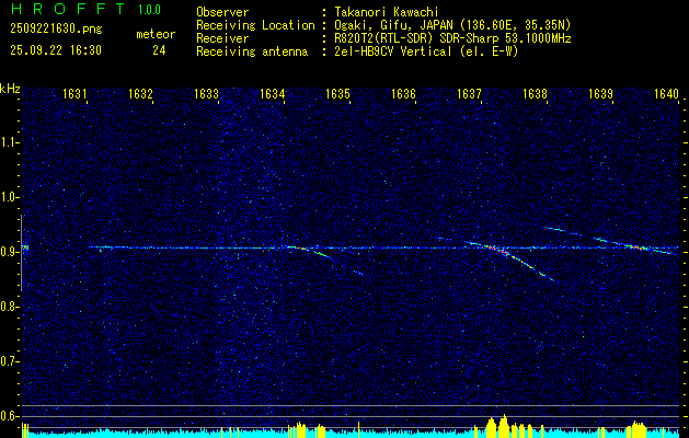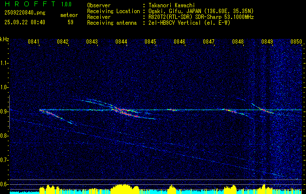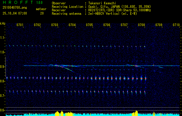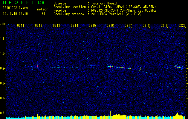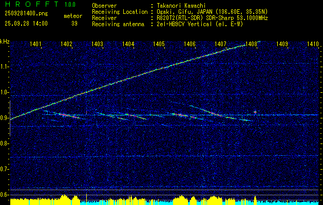 0.9kHz附近に発生している『点』または『塊』が流星によるエコーです.