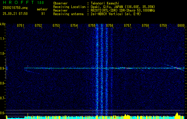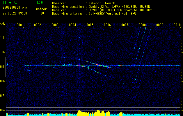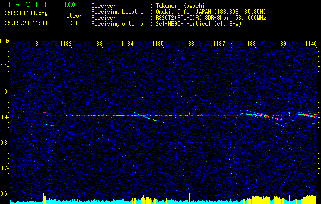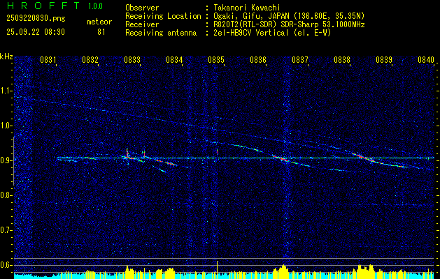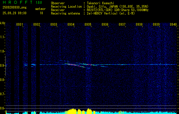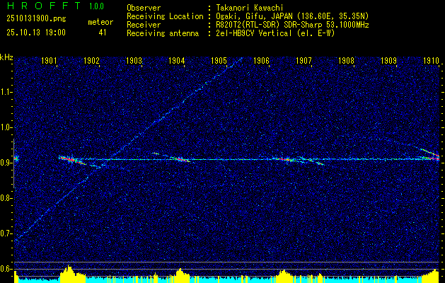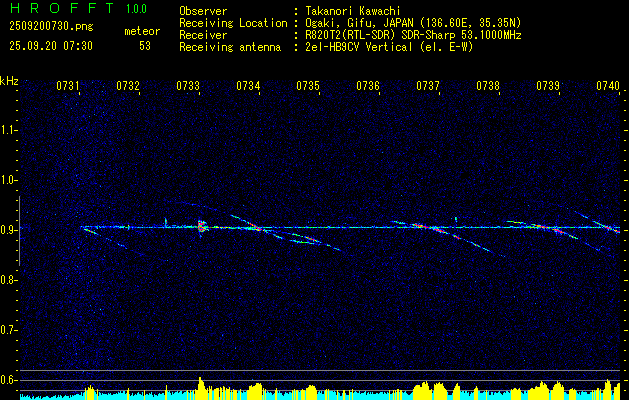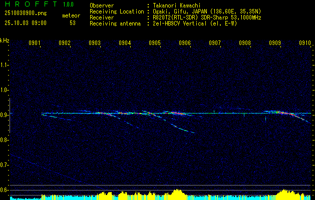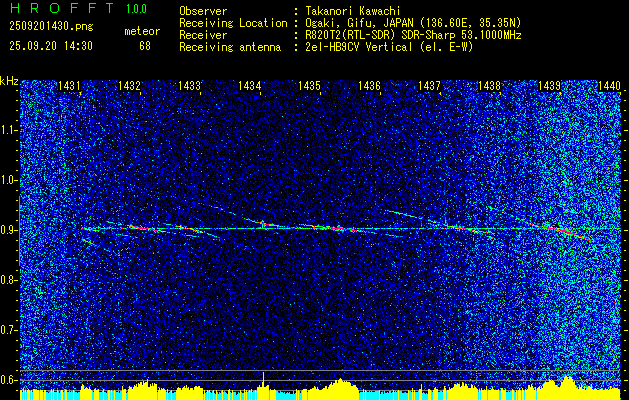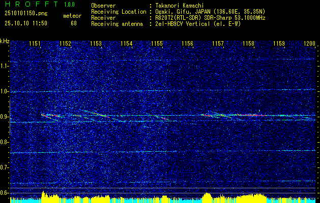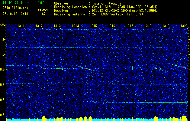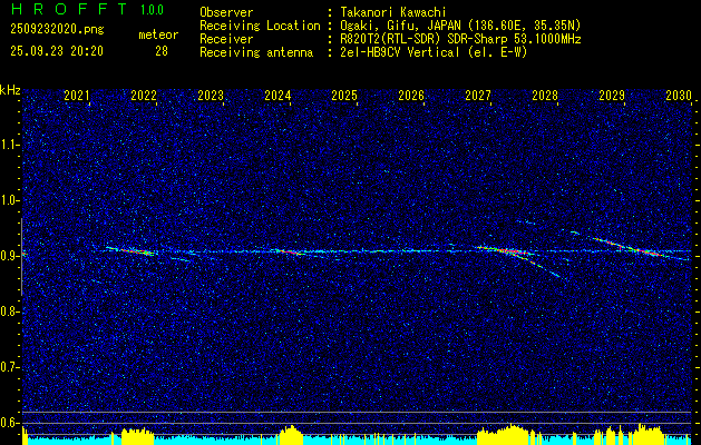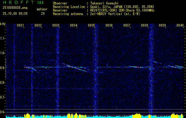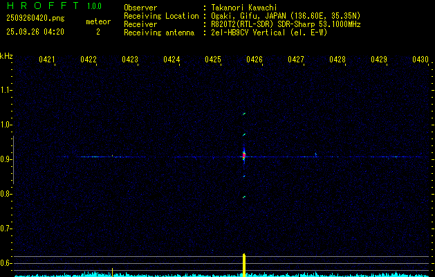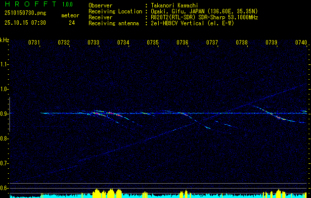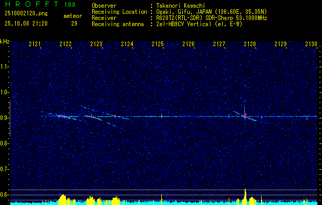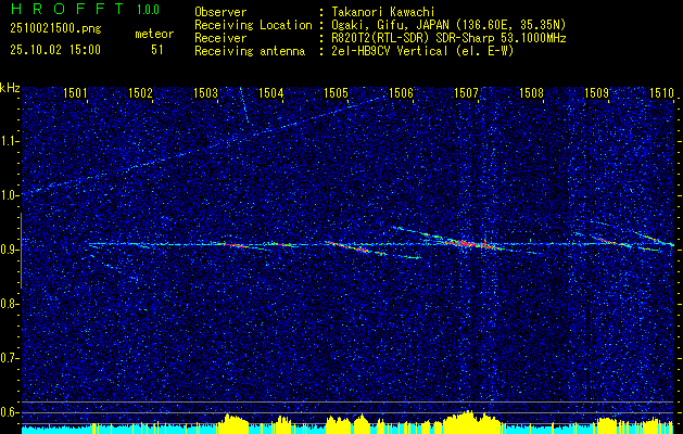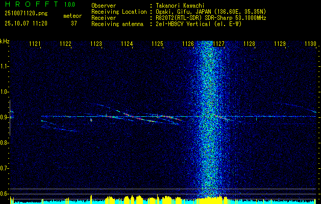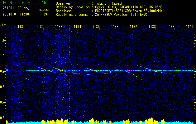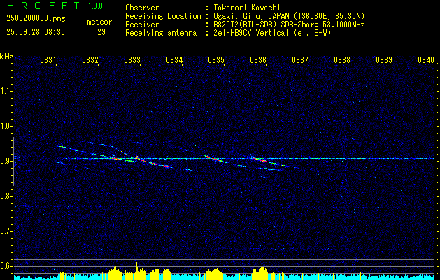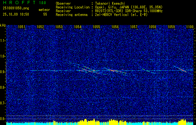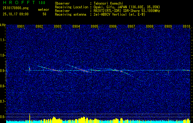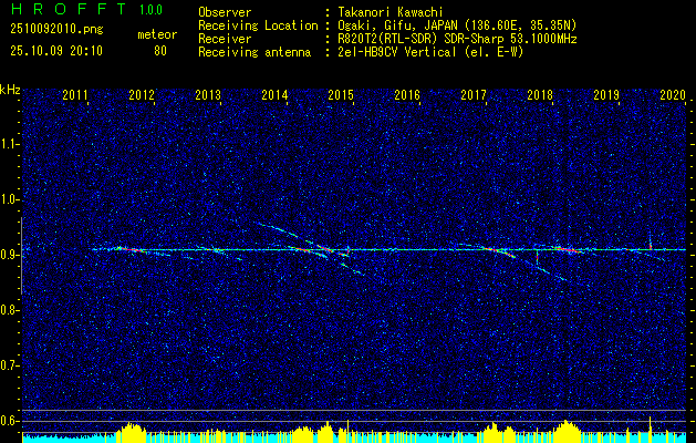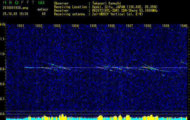 0.9kHz附近に発生している『点』または『塊』が流星によるエコーです.