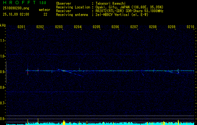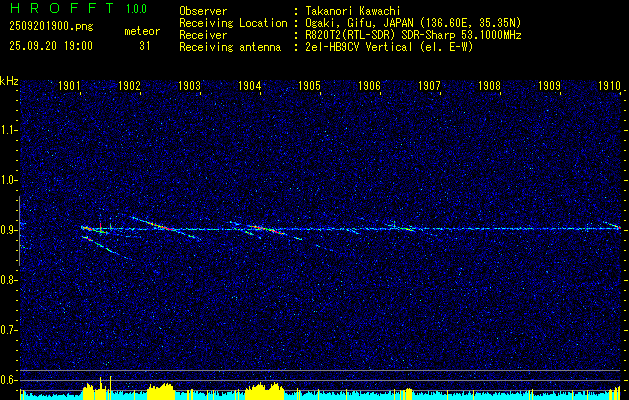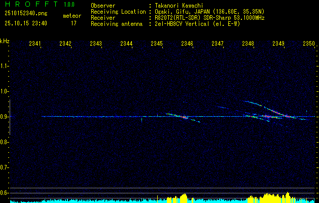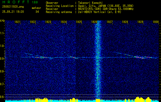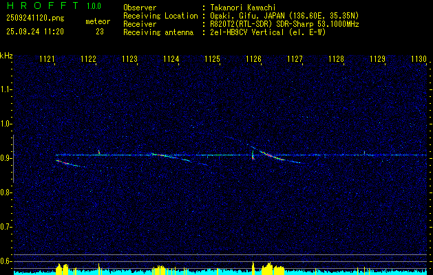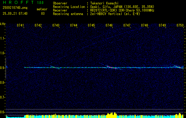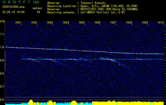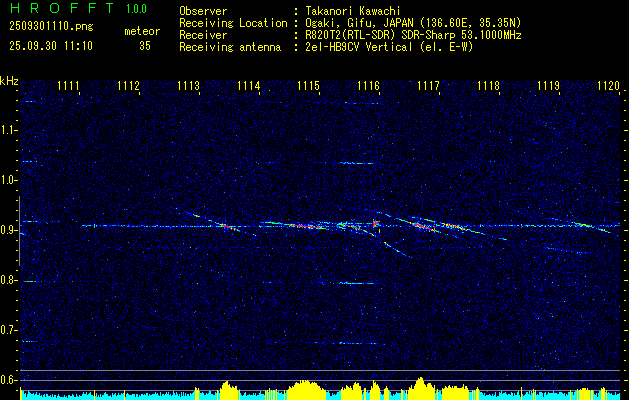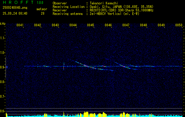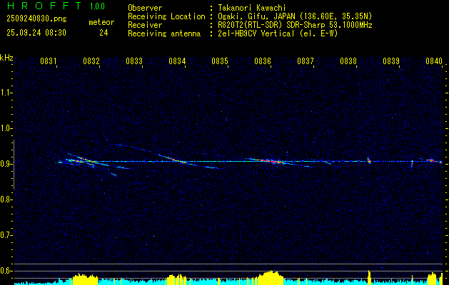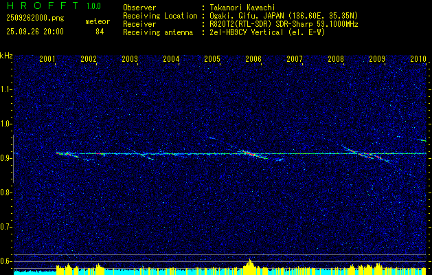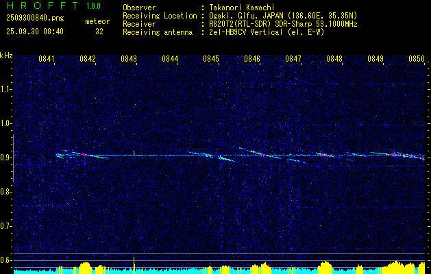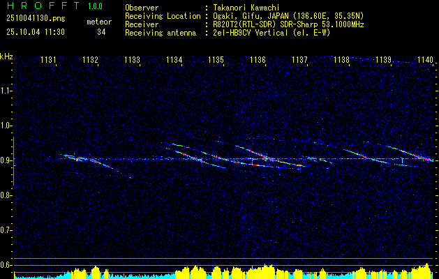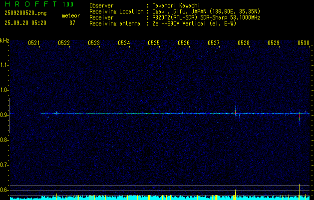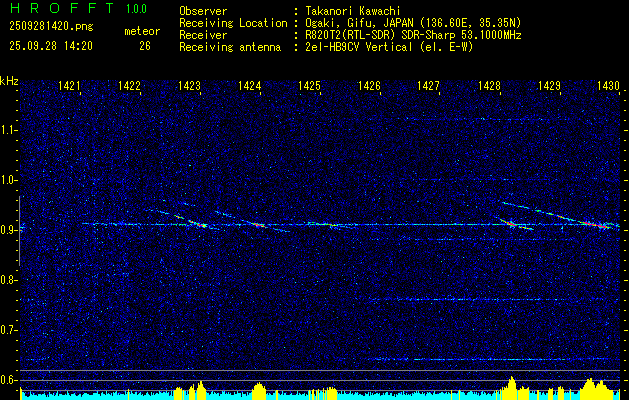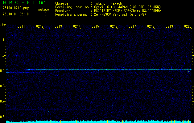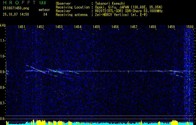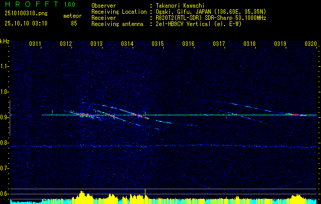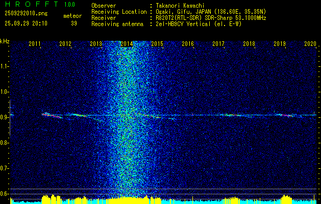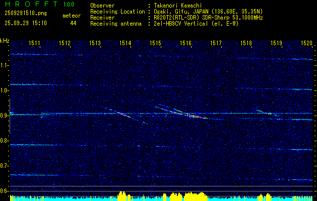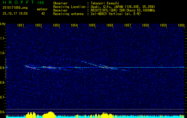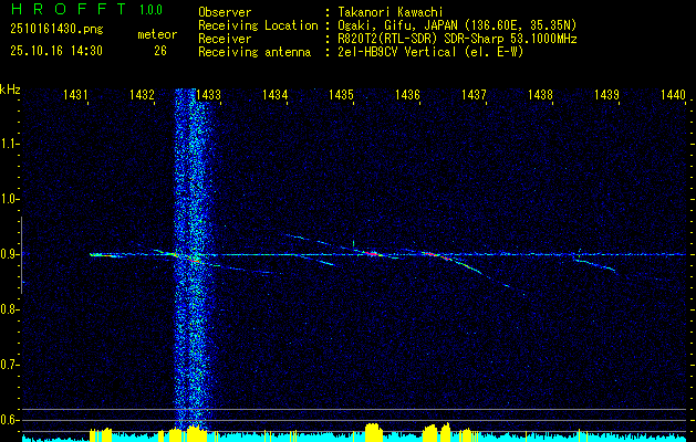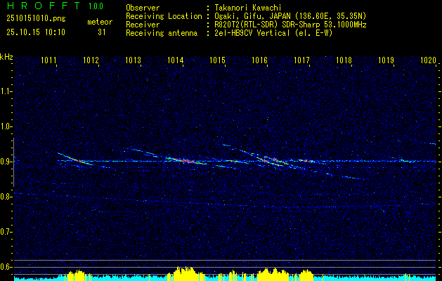 0.9kHz附近に発生している『点』または『塊』が流星によるエコーです.