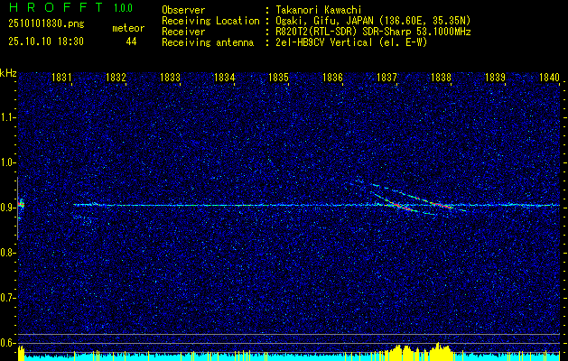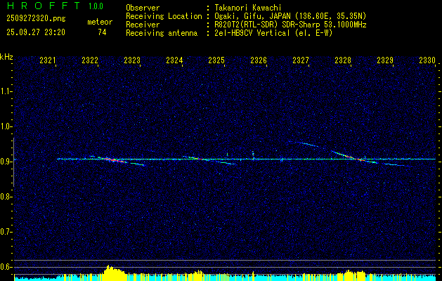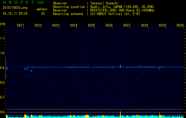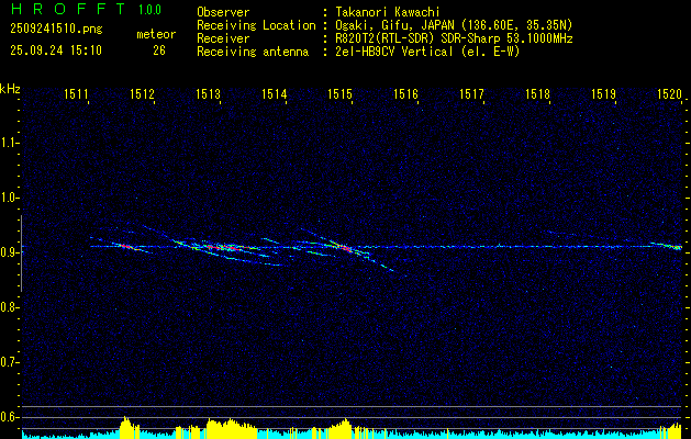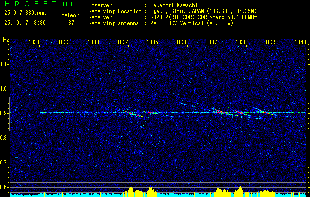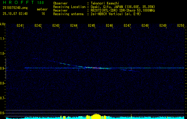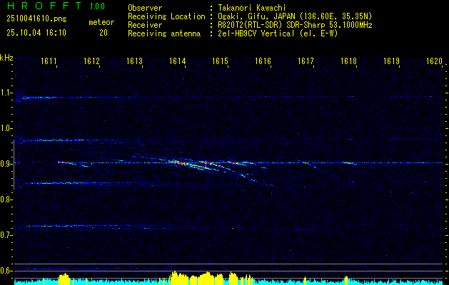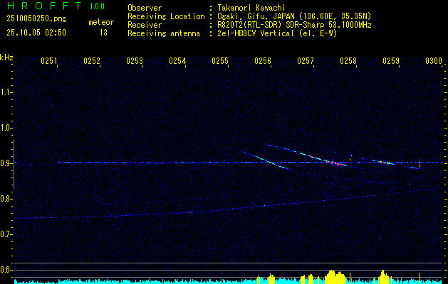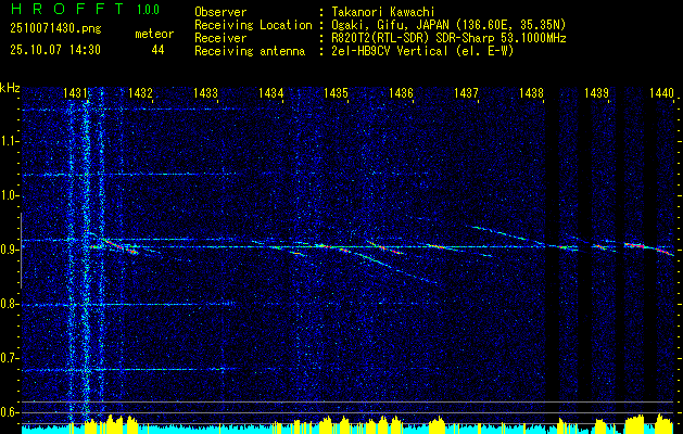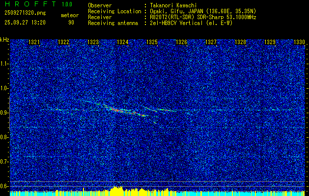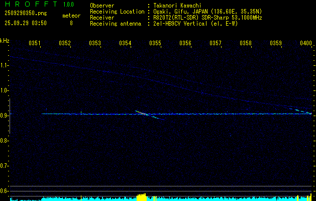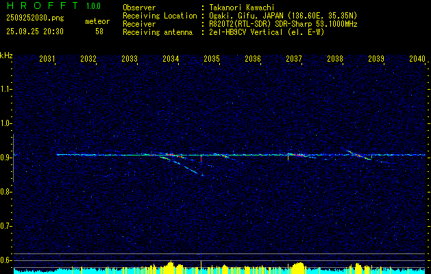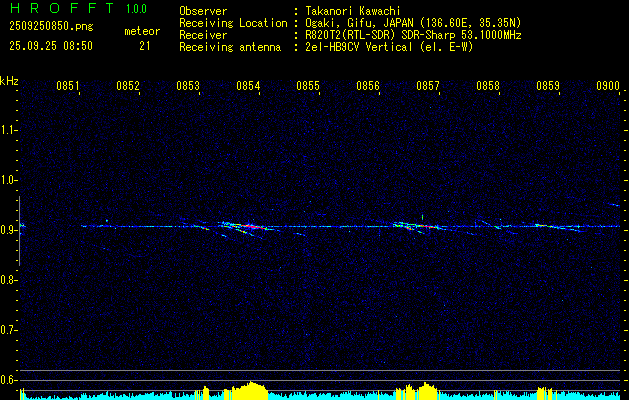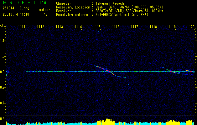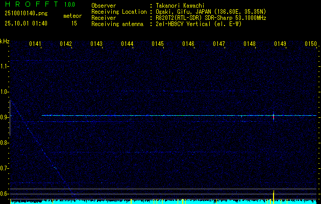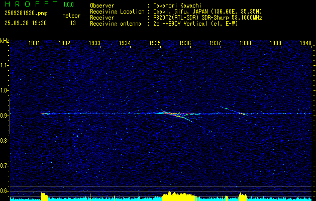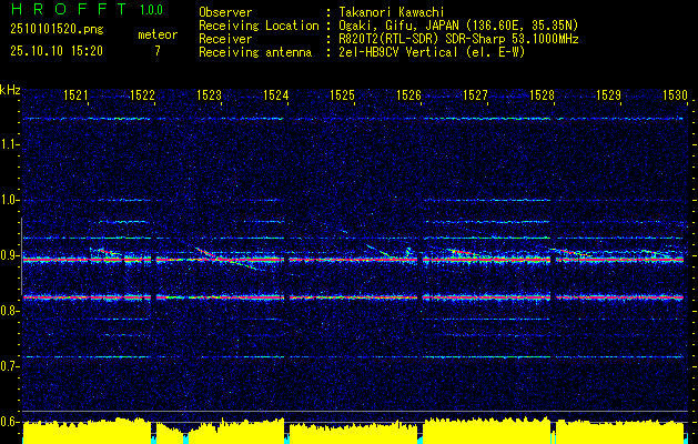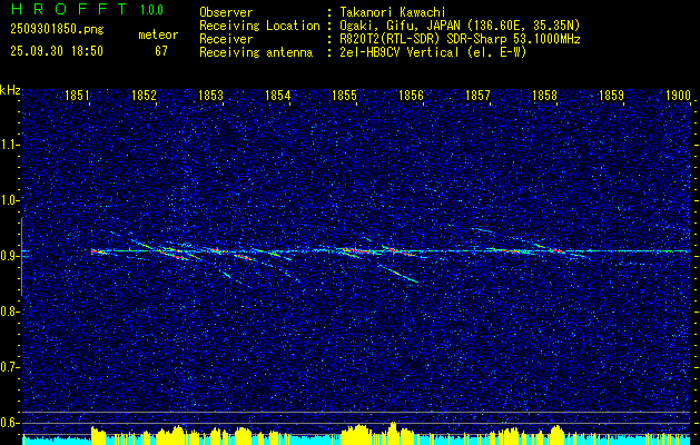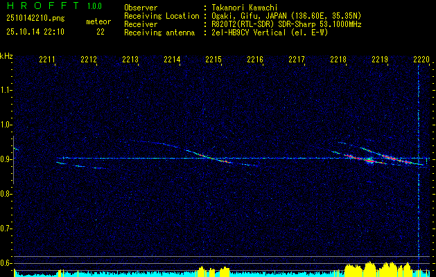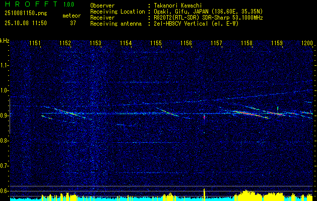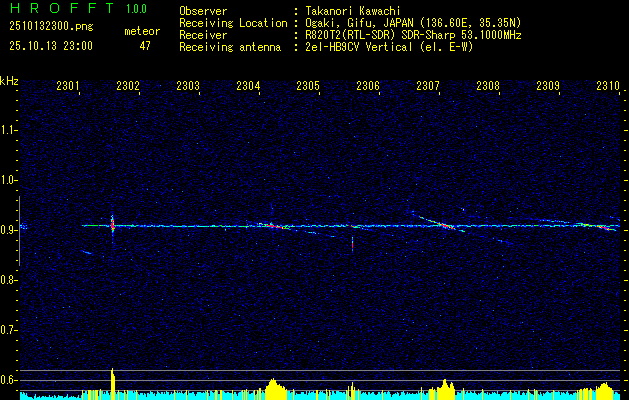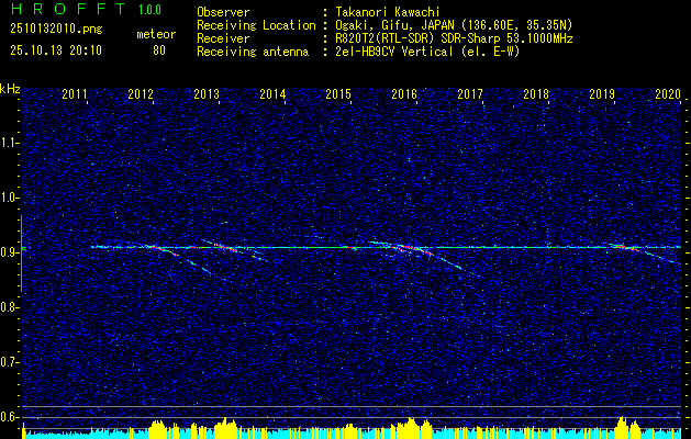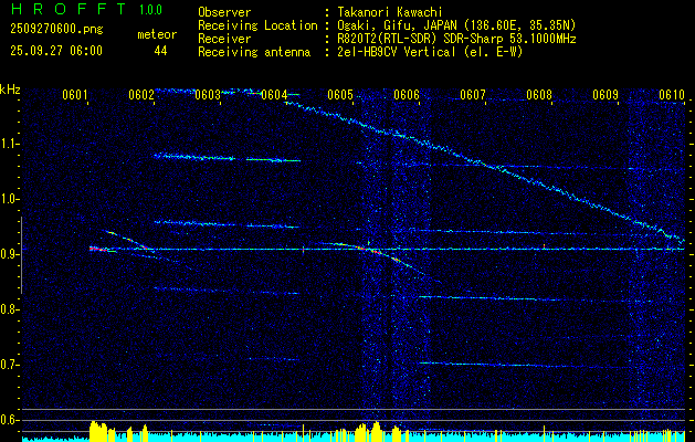 0.9kHz附近に発生している『点』または『塊』が流星によるエコーです.