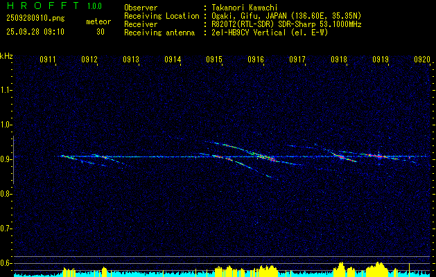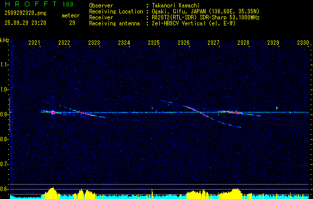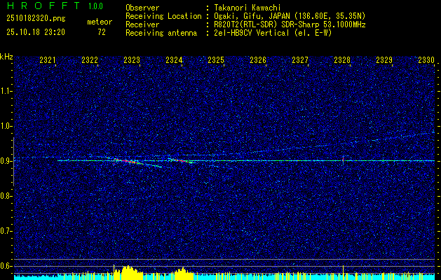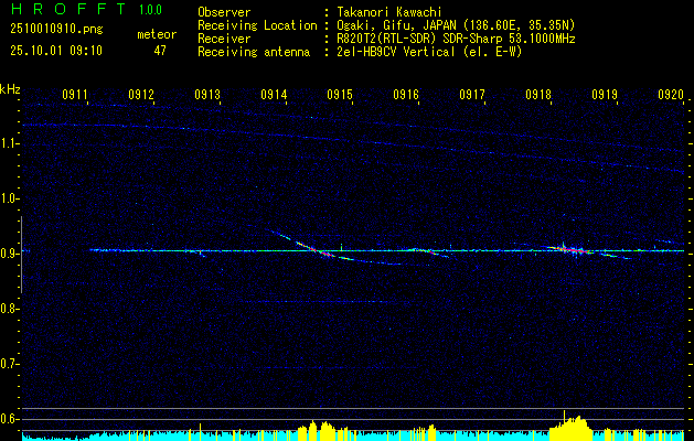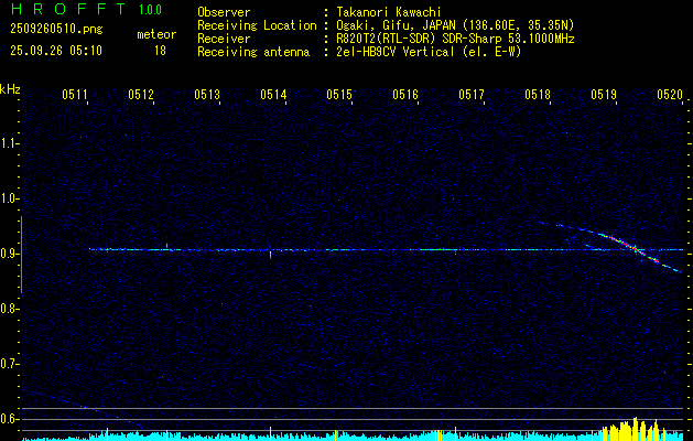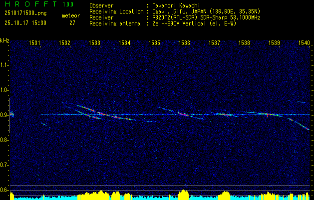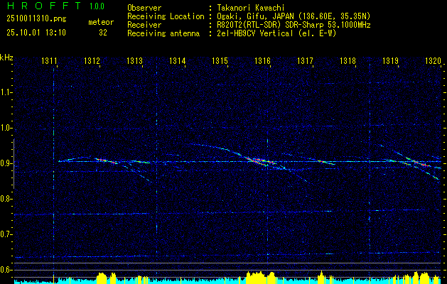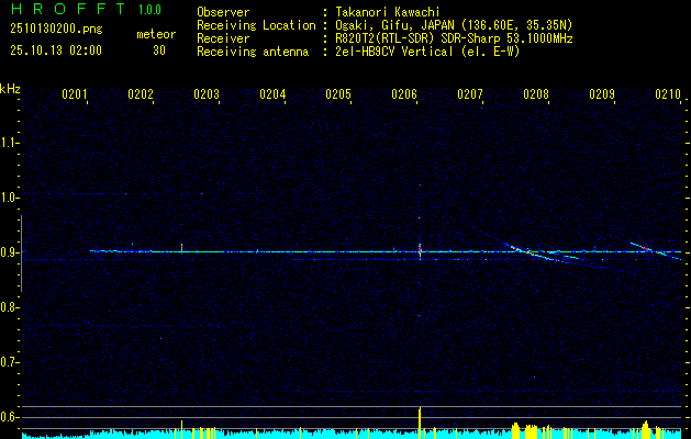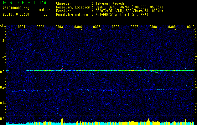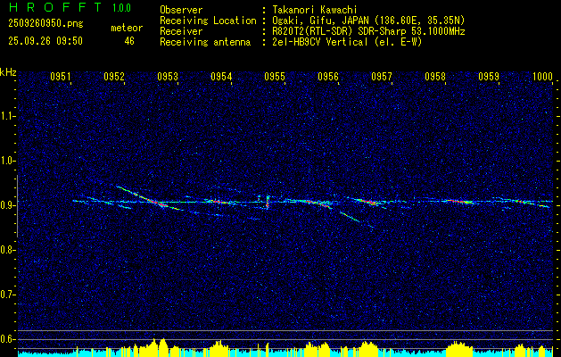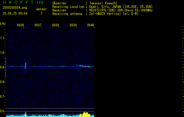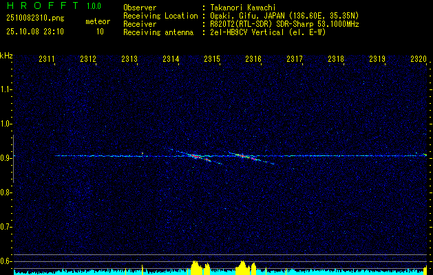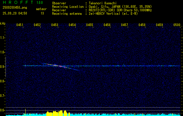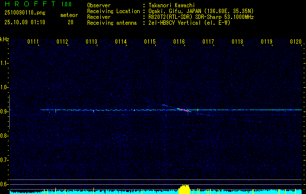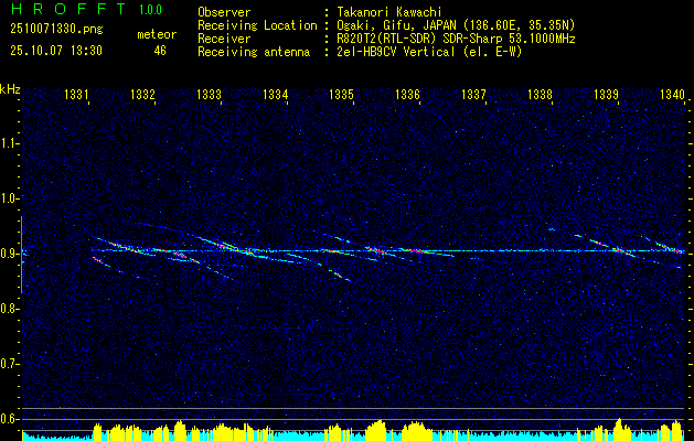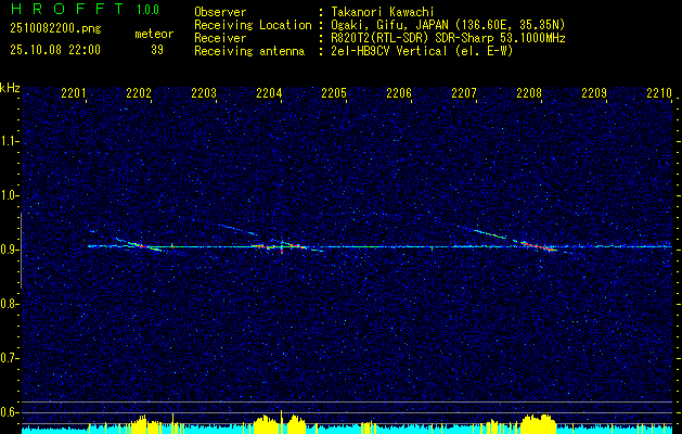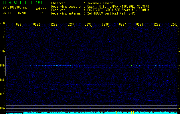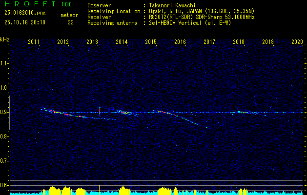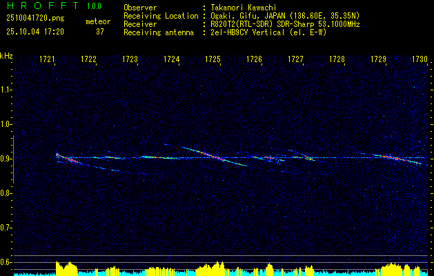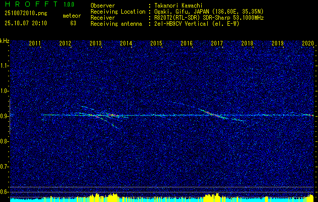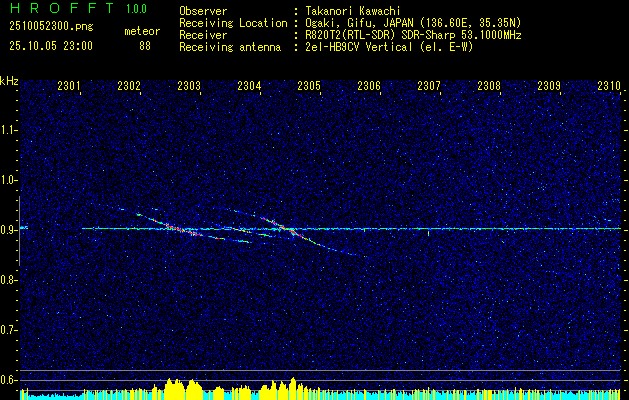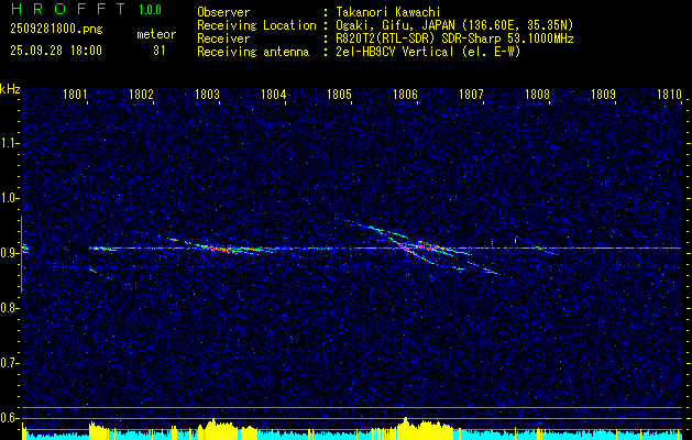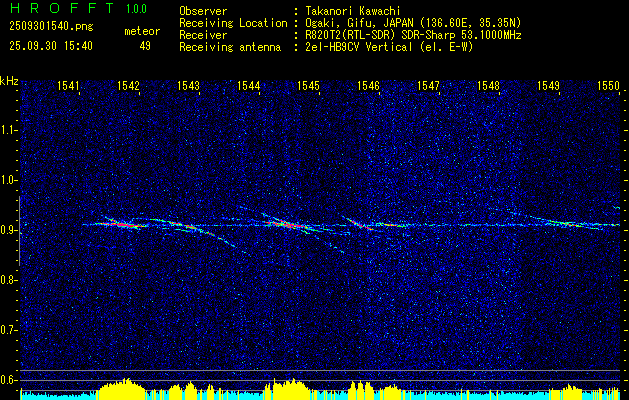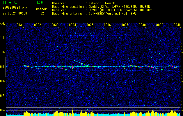 0.9kHz附近に発生している『点』または『塊』が流星によるエコーです.