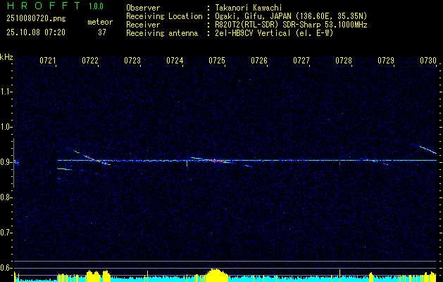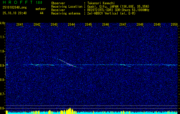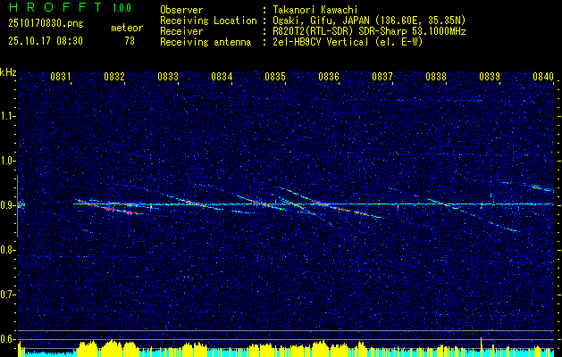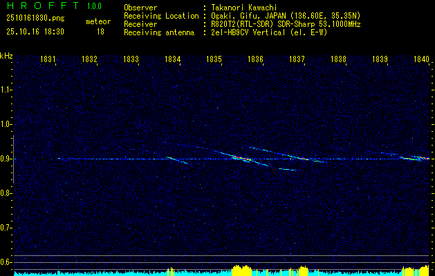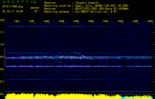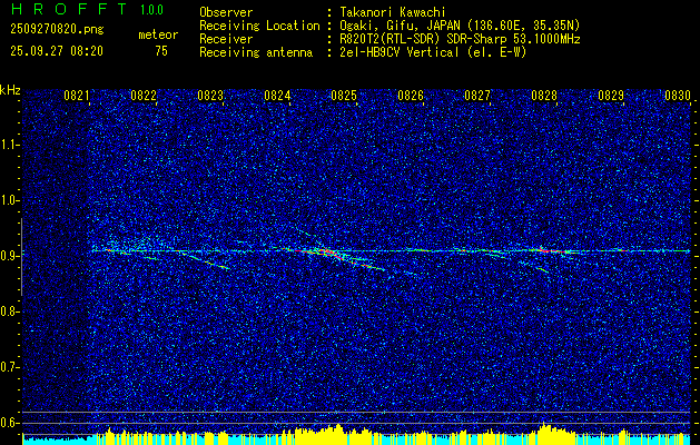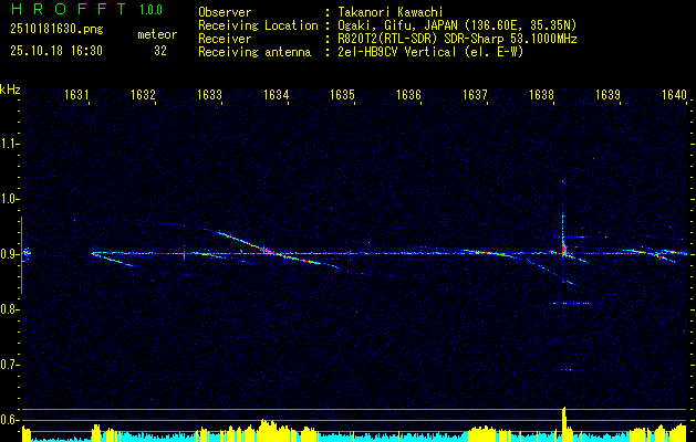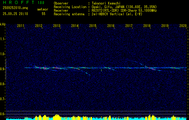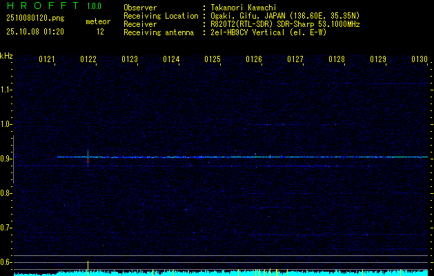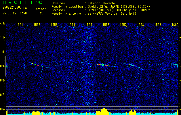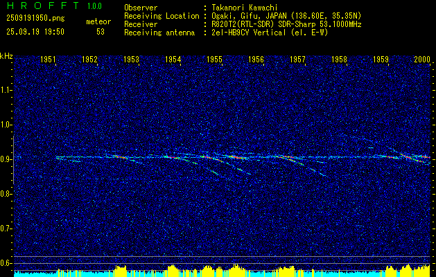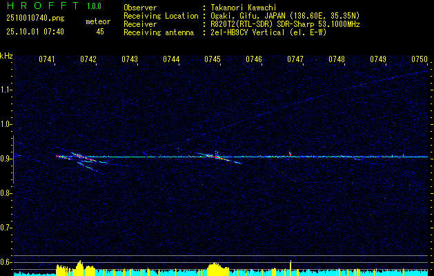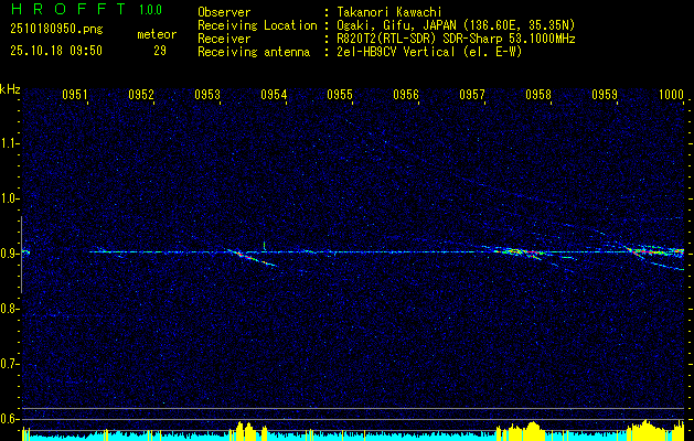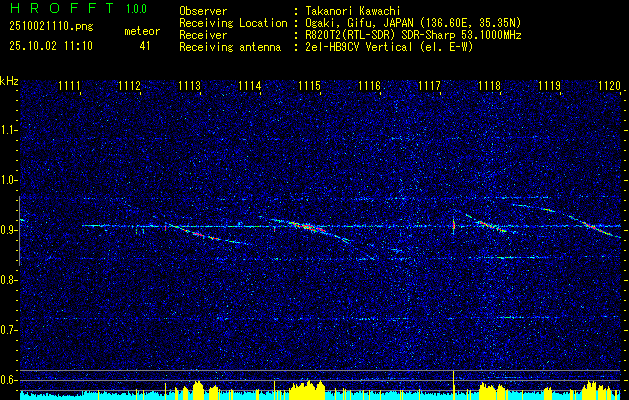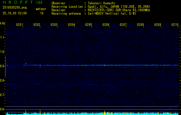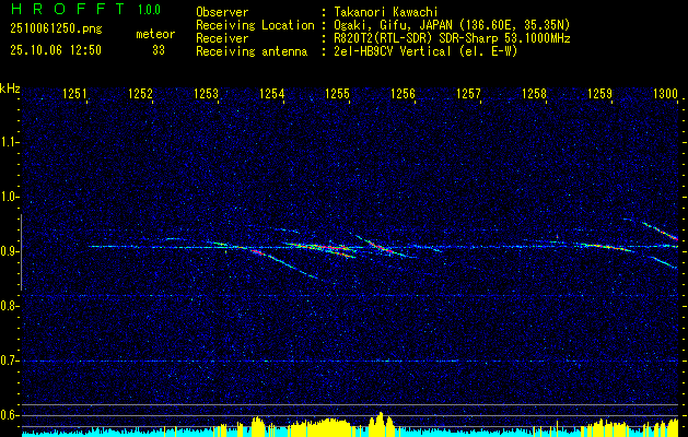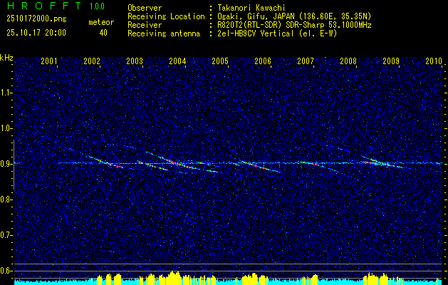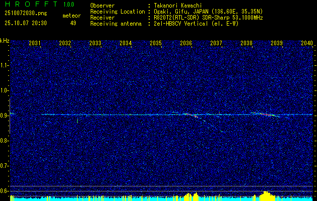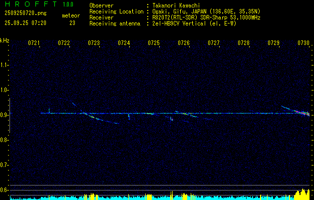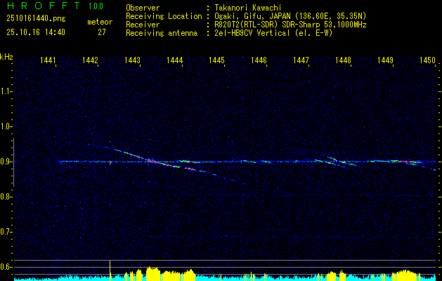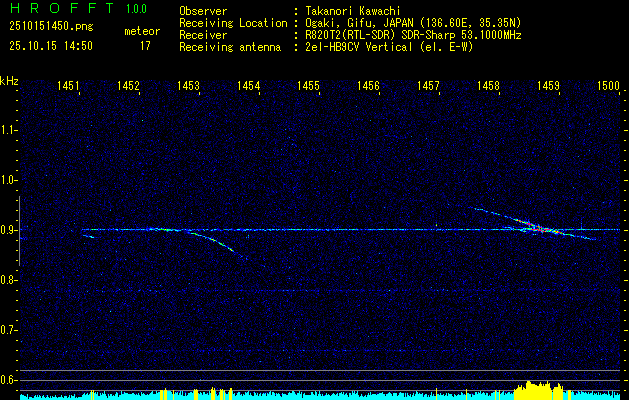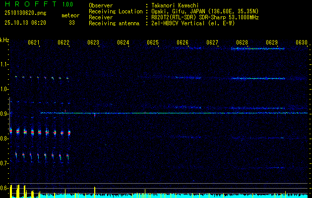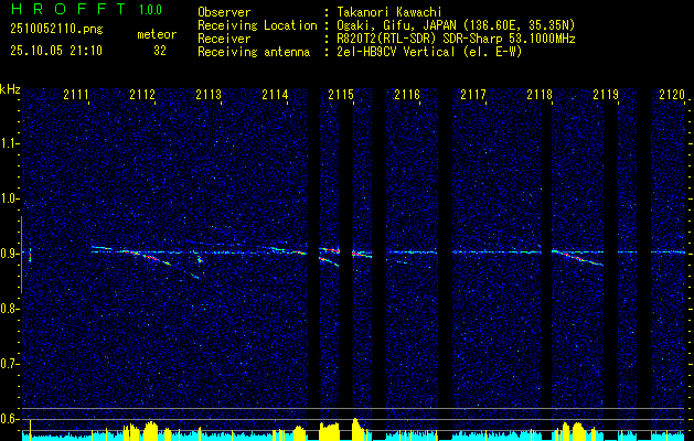 0.9kHz附近に発生している『点』または『塊』が流星によるエコーです.