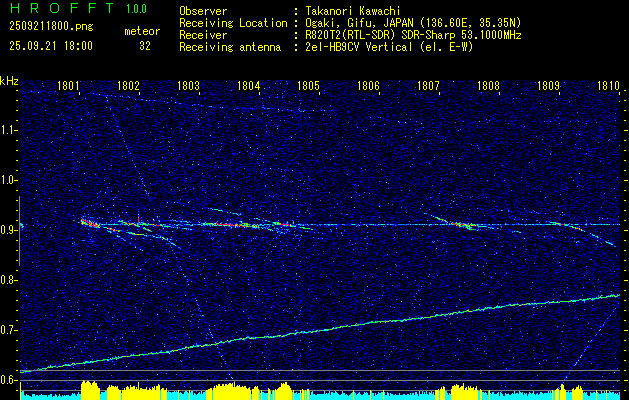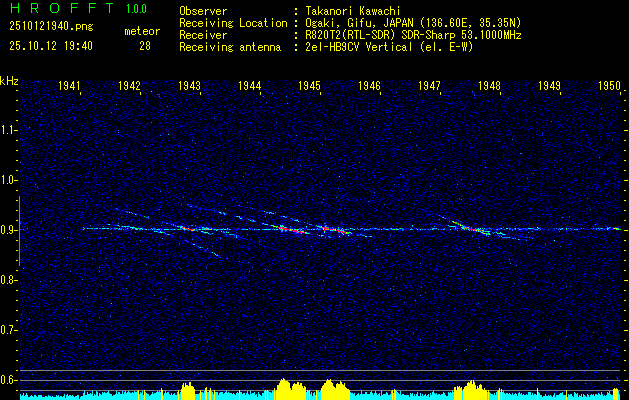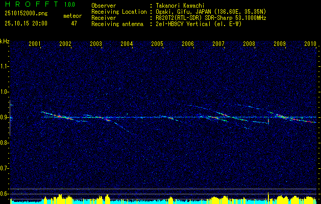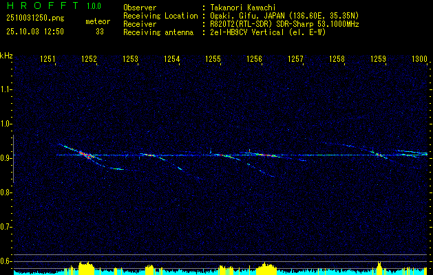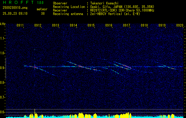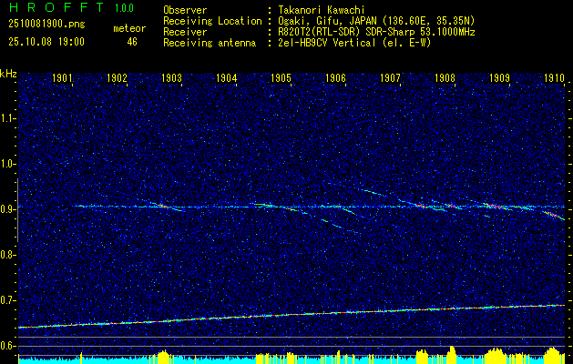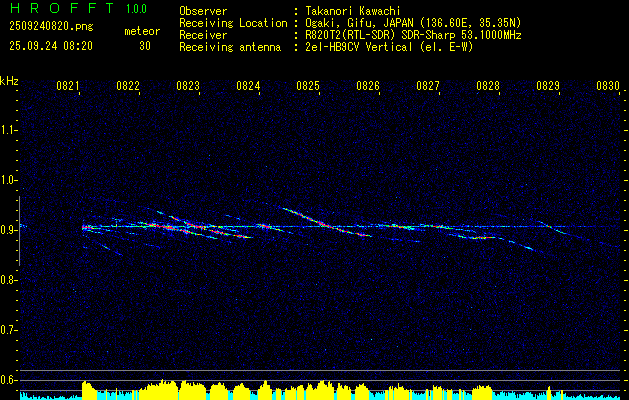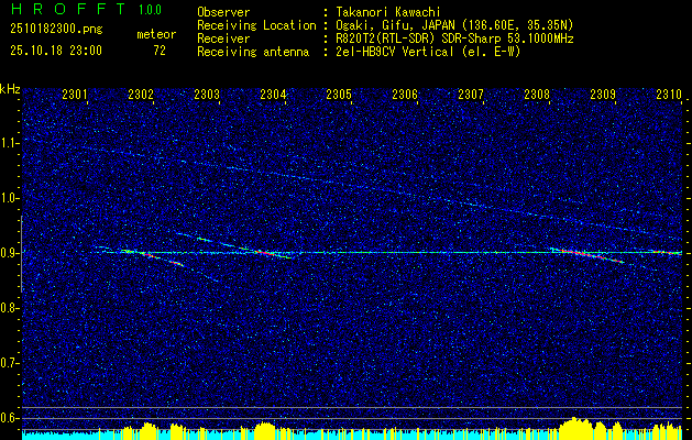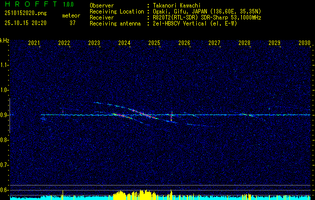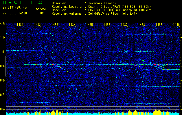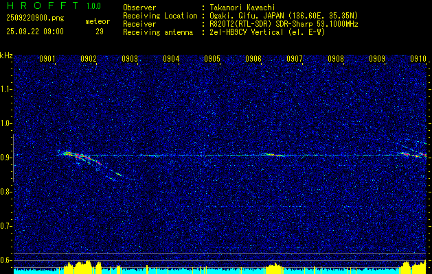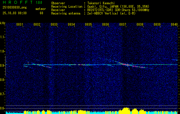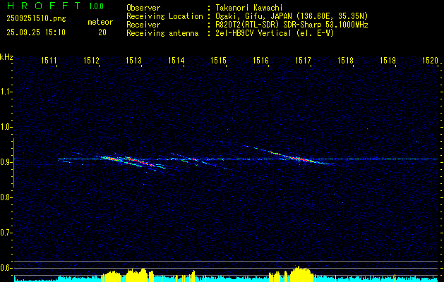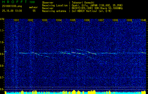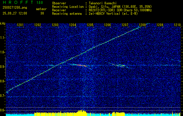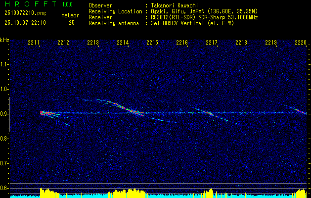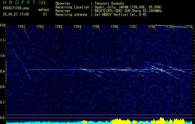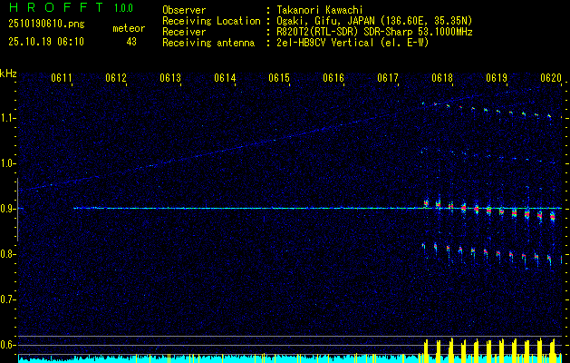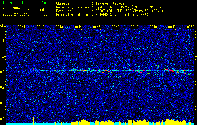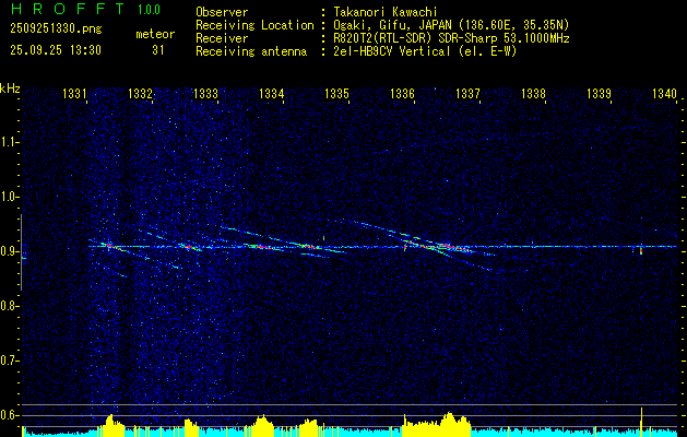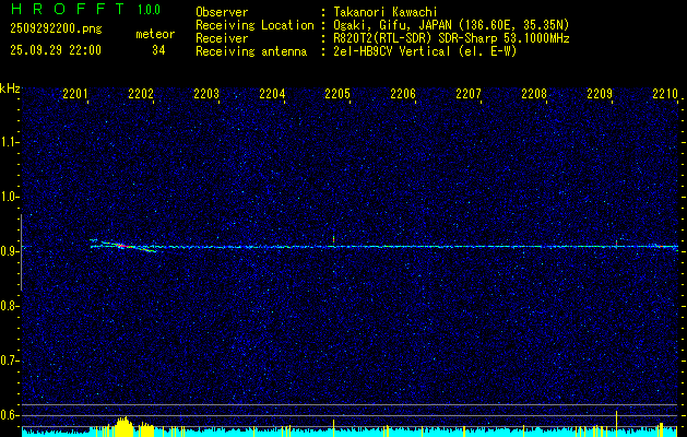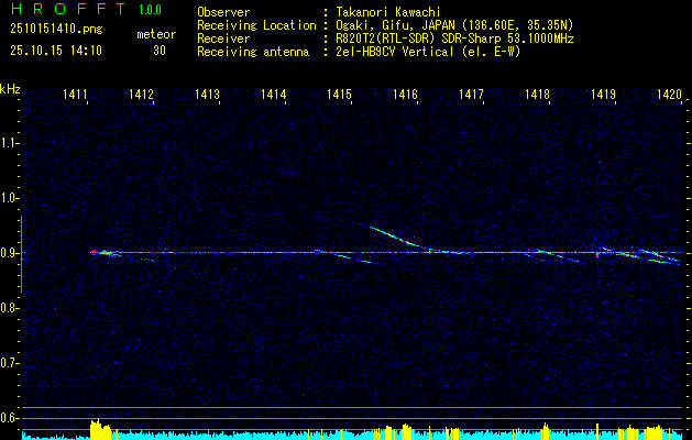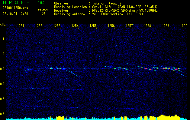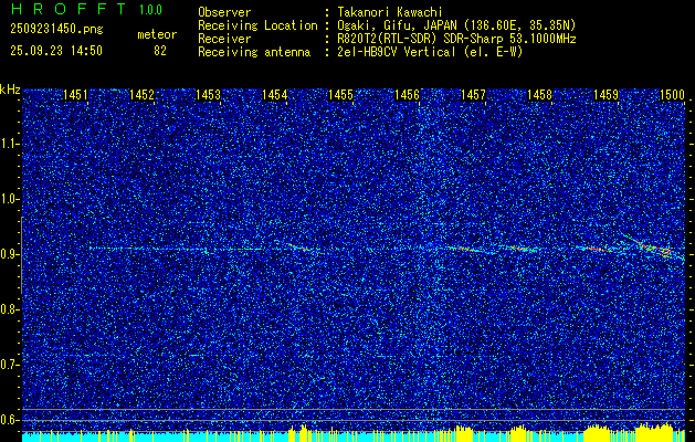0.9kHz附近に発生している『点』または『塊』が流星によるエコーです.