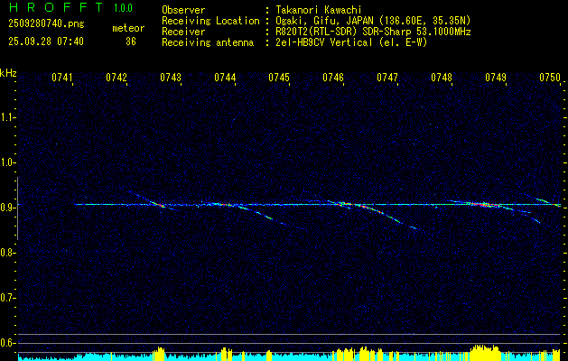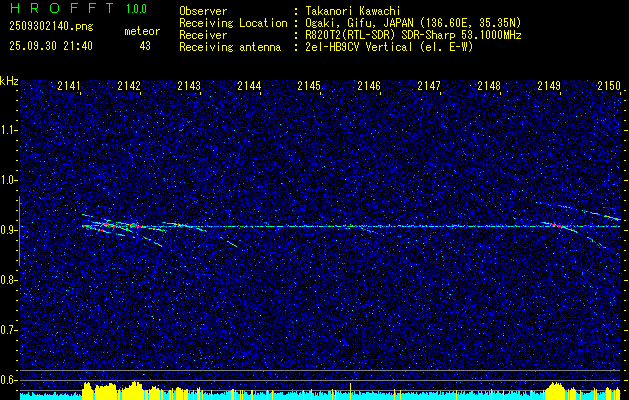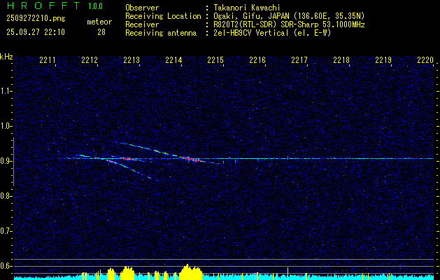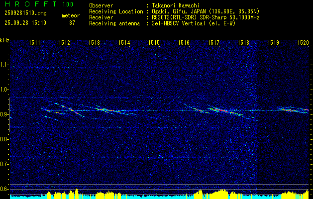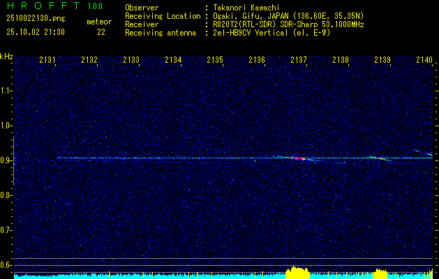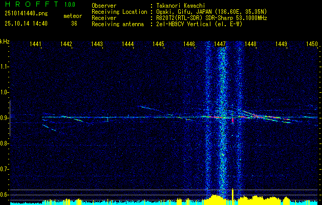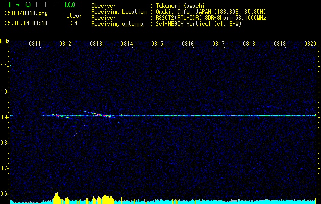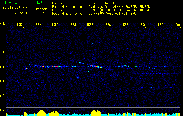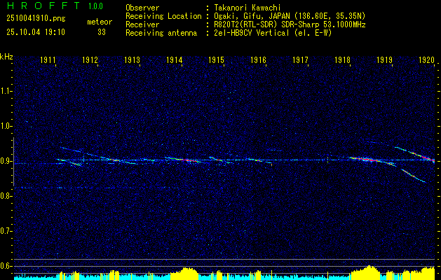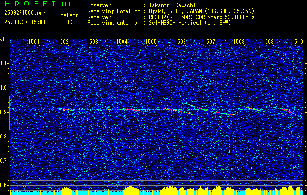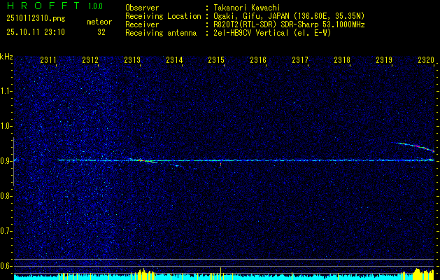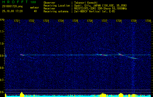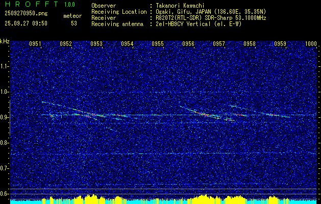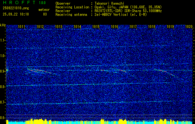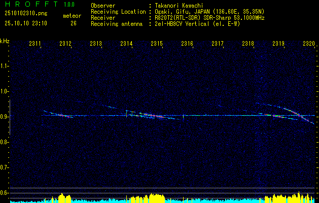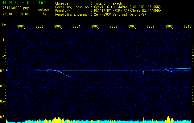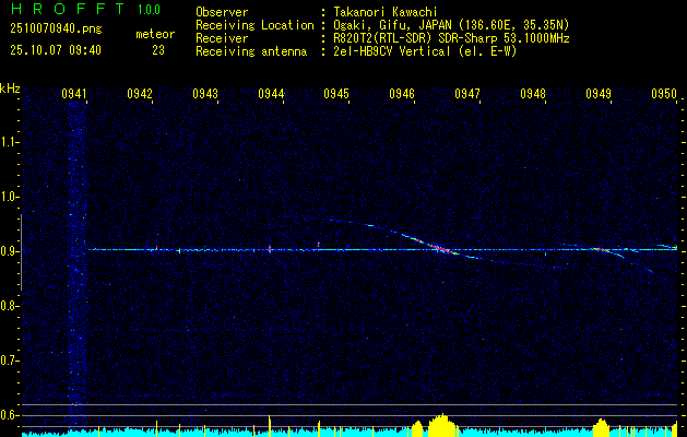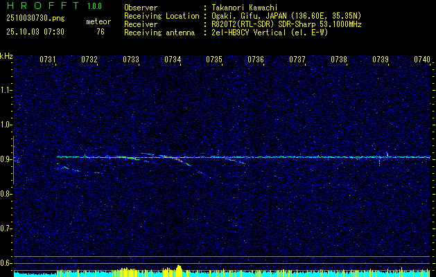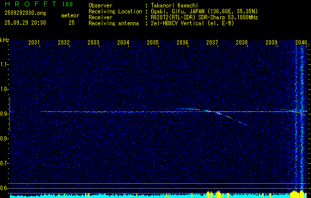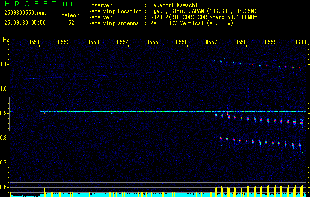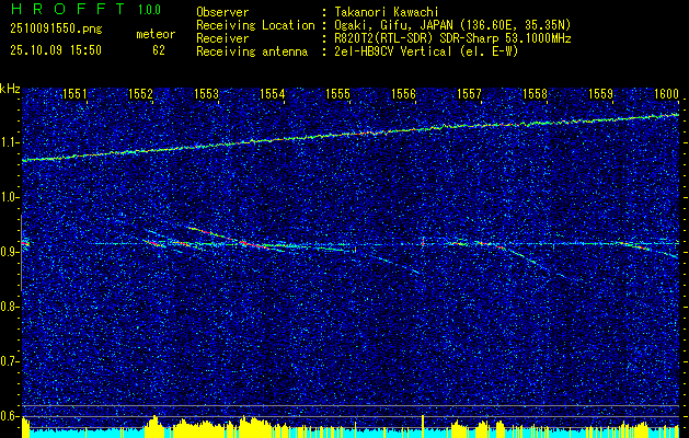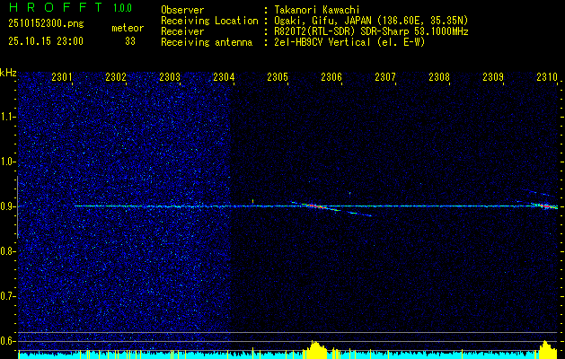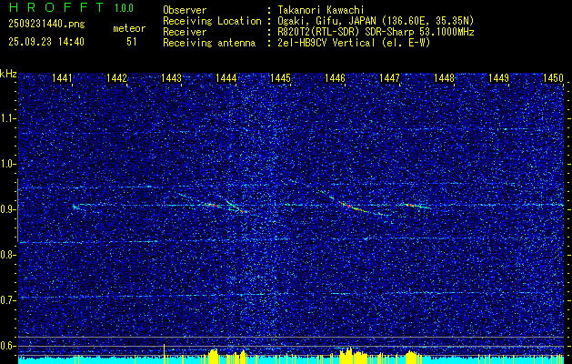 0.9kHz附近に発生している『点』または『塊』が流星によるエコーです.