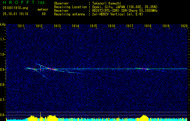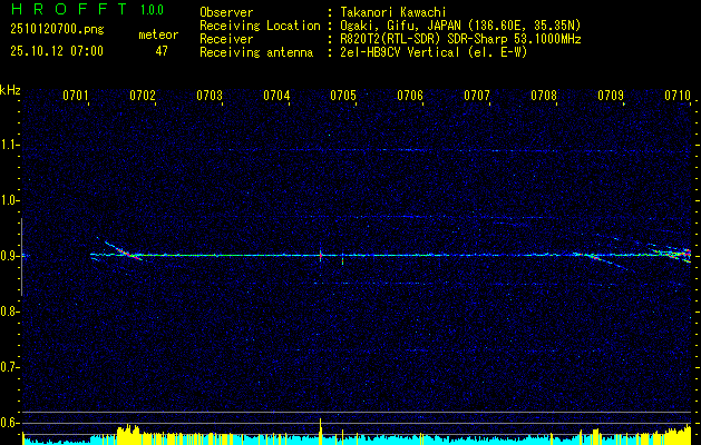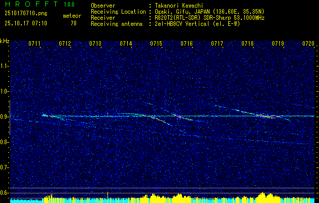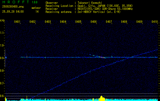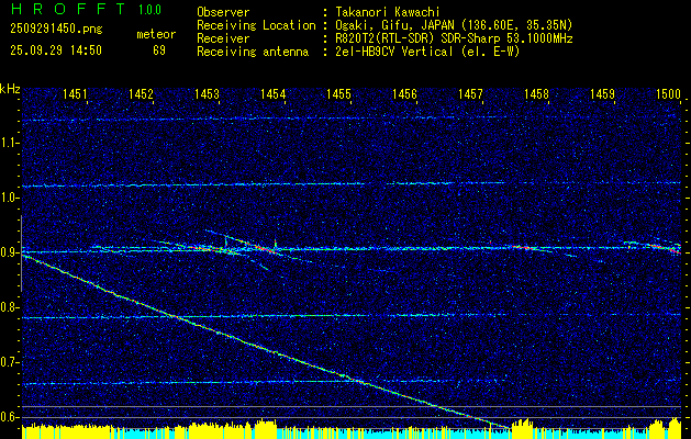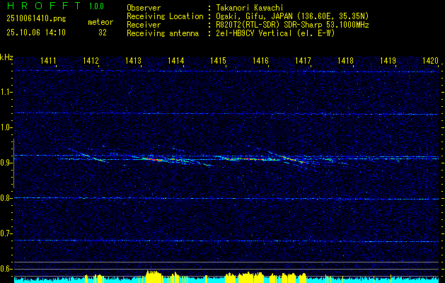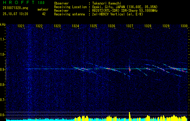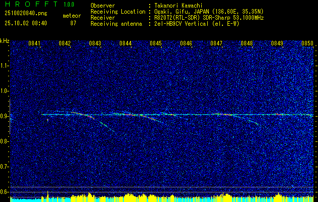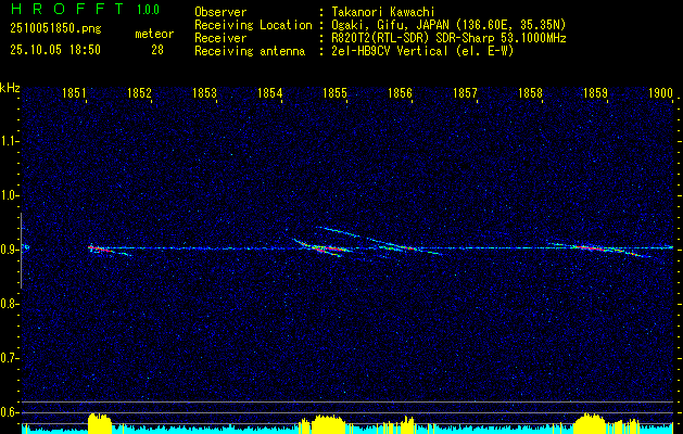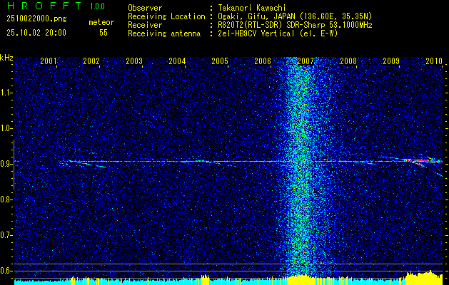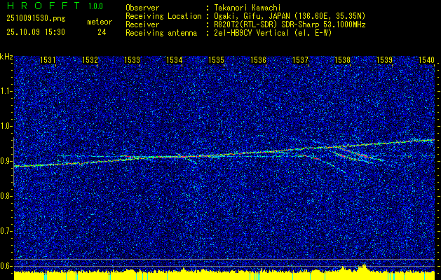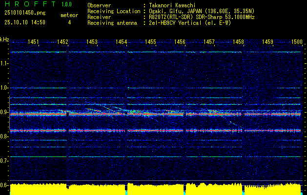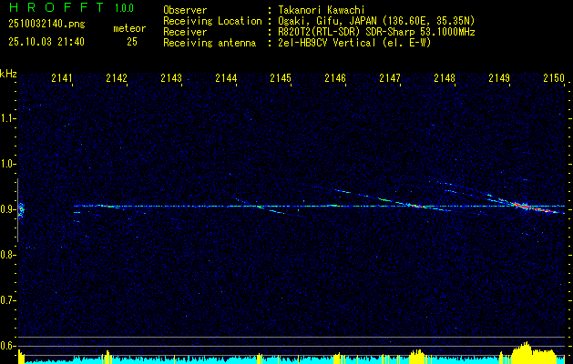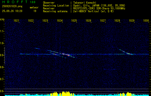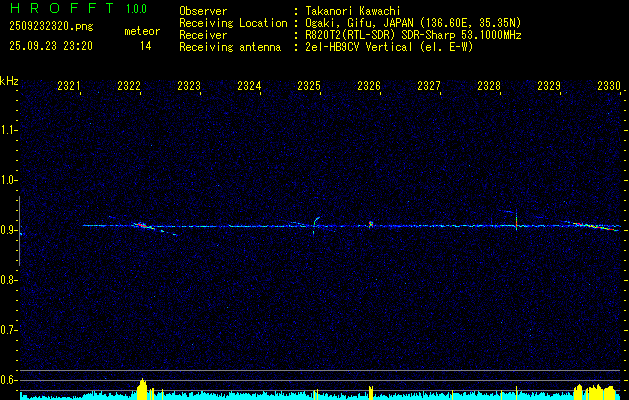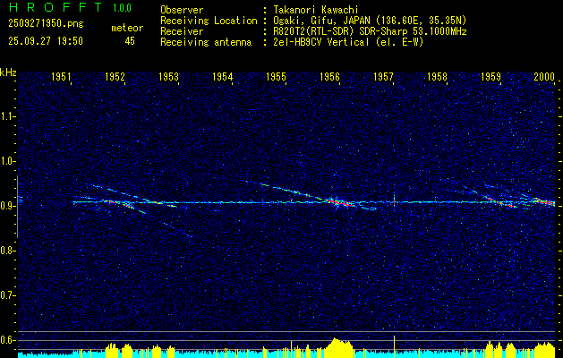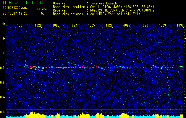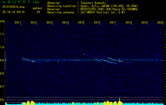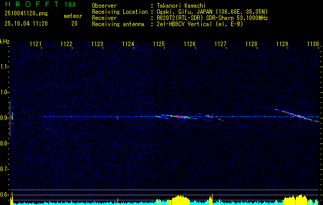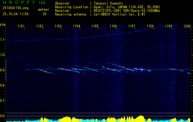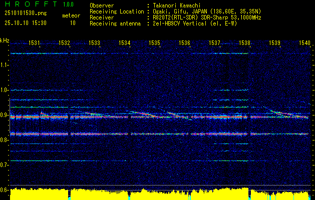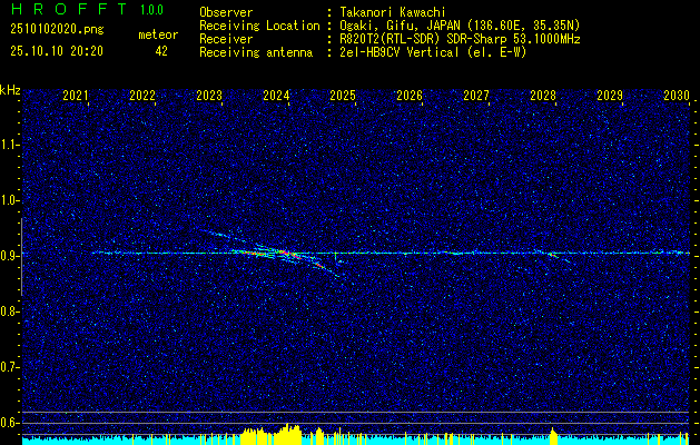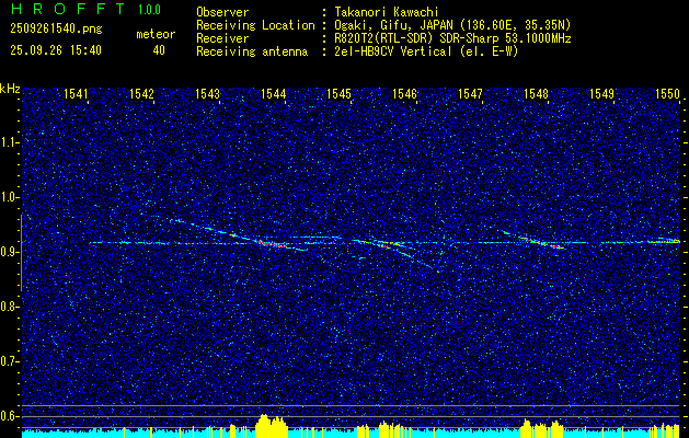 0.9kHz附近に発生している『点』または『塊』が流星によるエコーです.