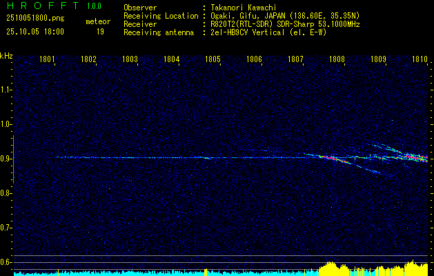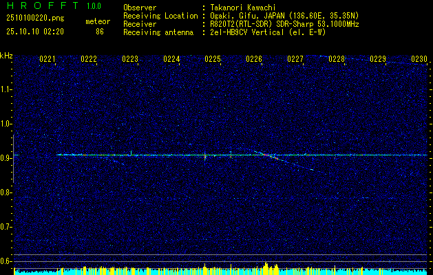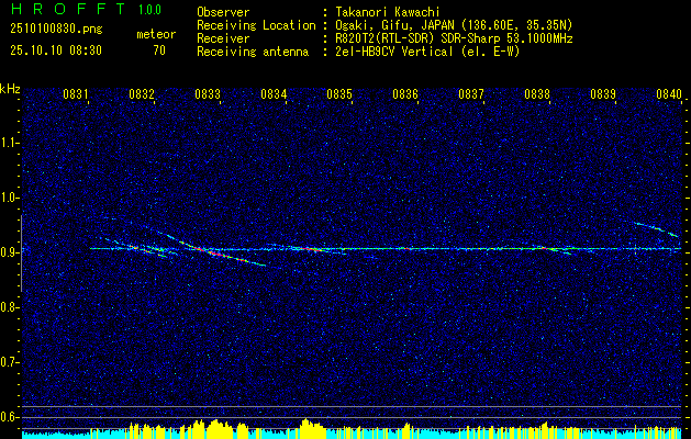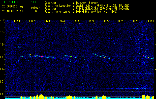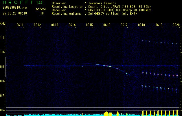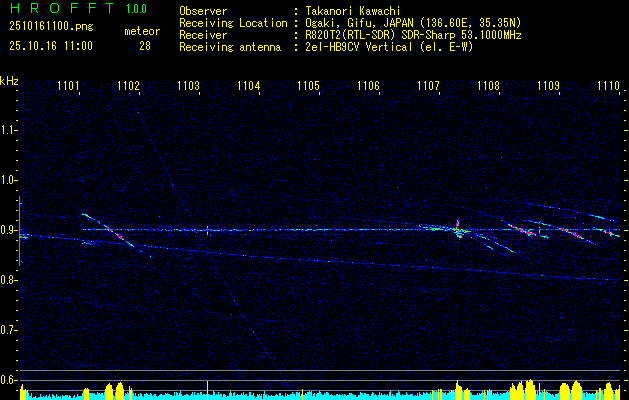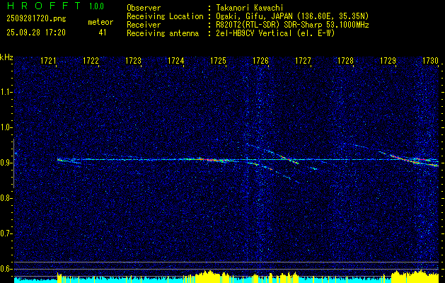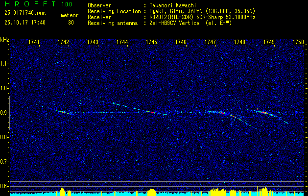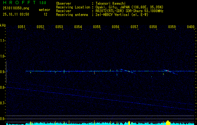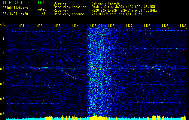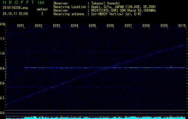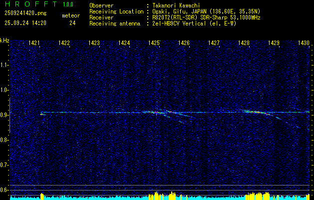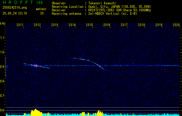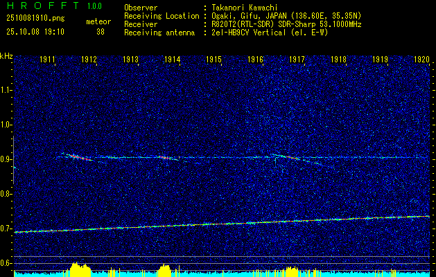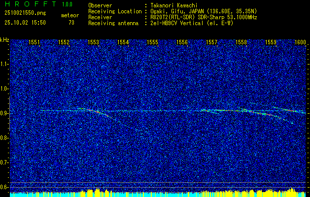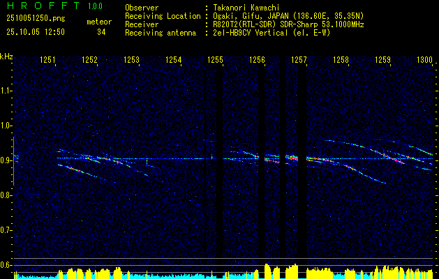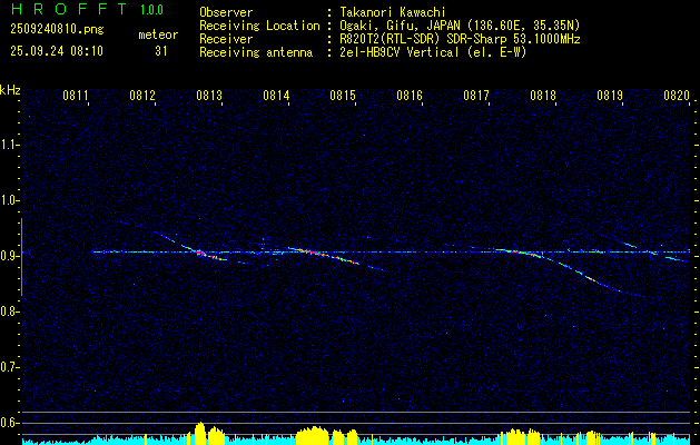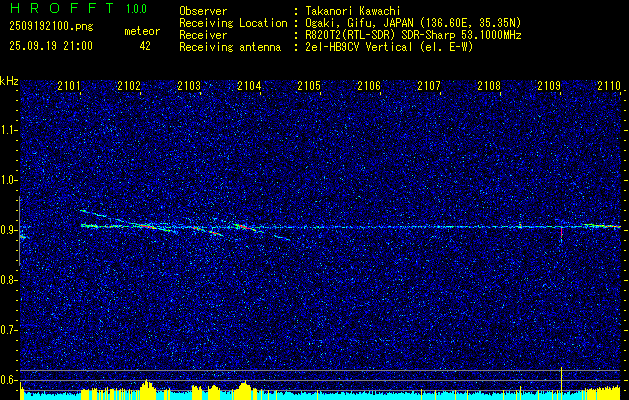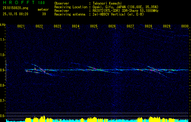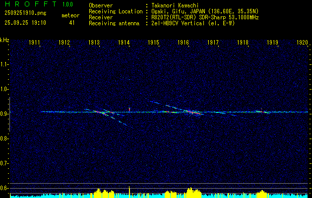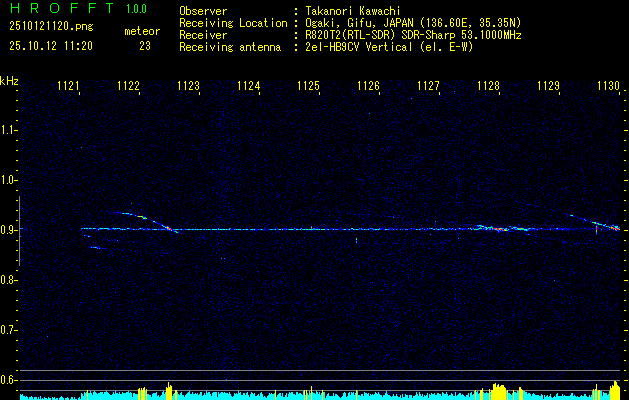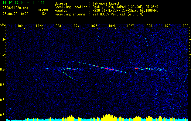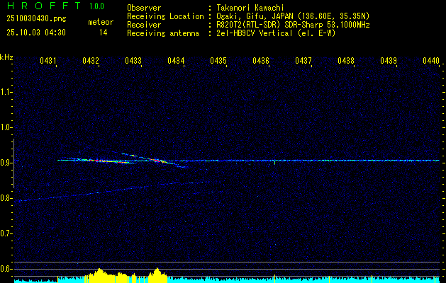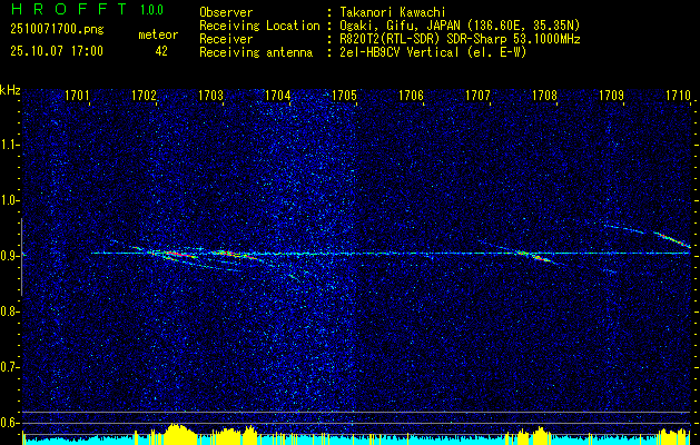 0.9kHz附近に発生している『点』または『塊』が流星によるエコーです.