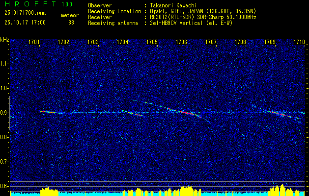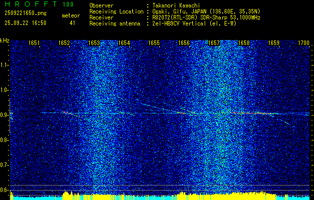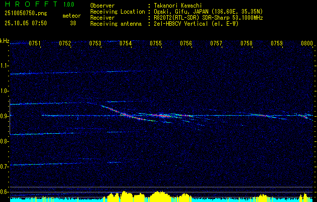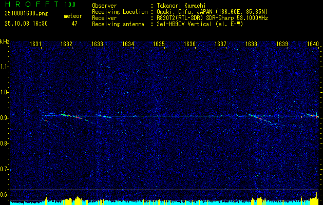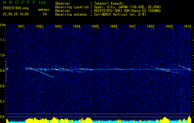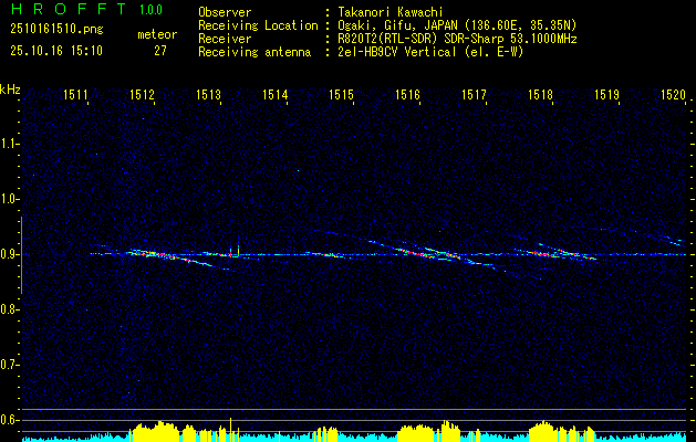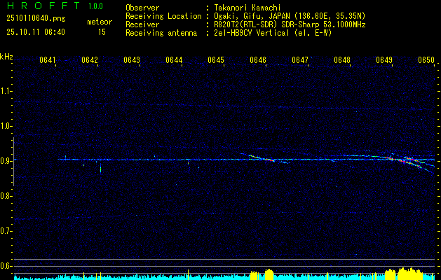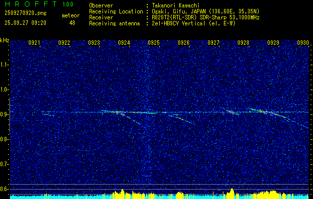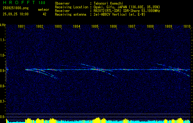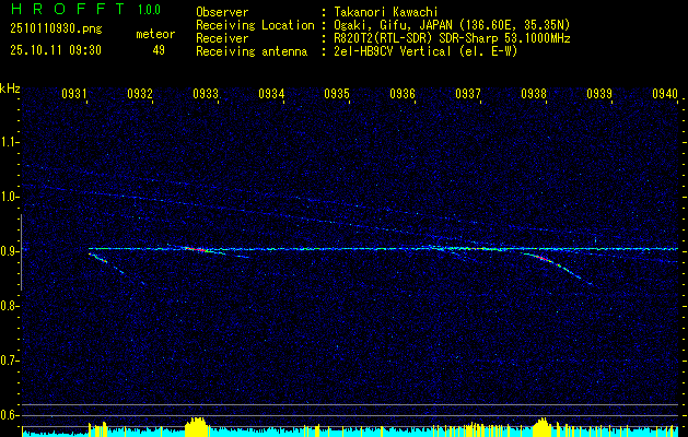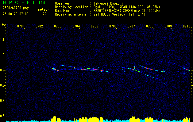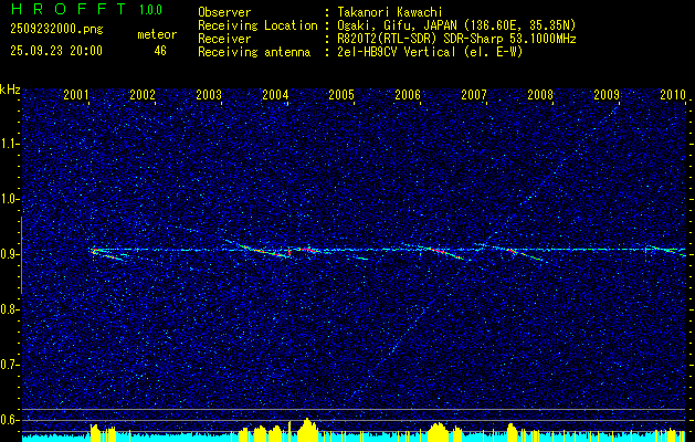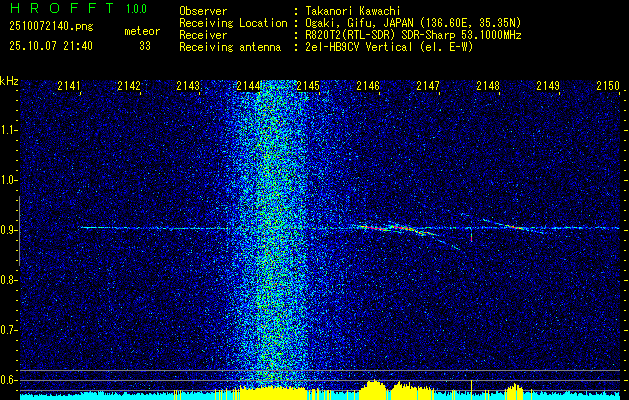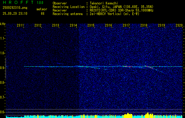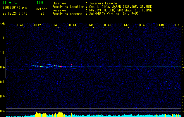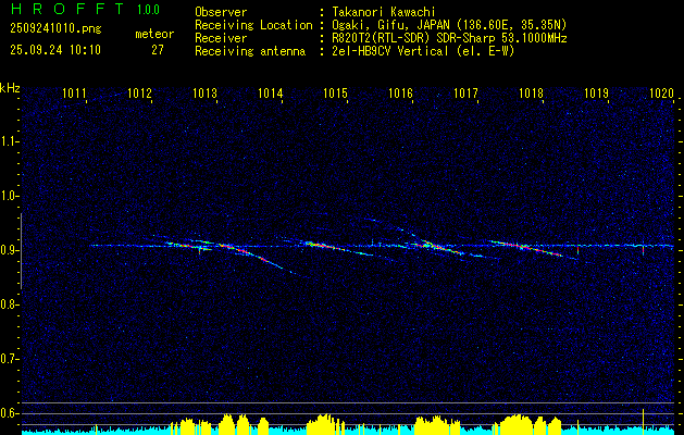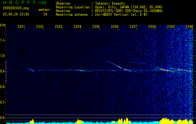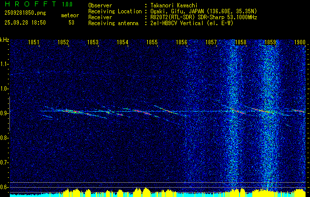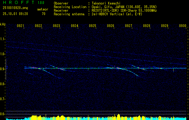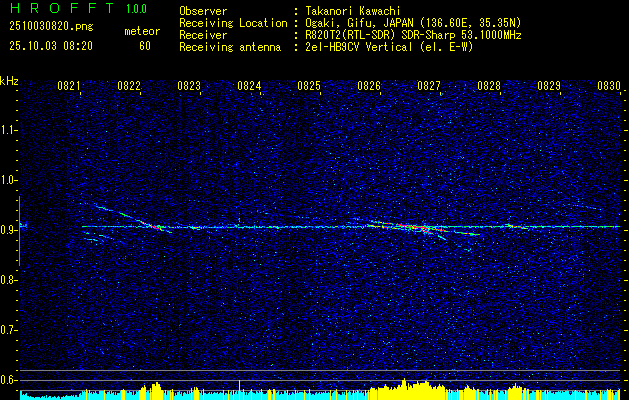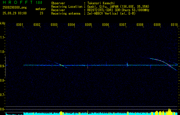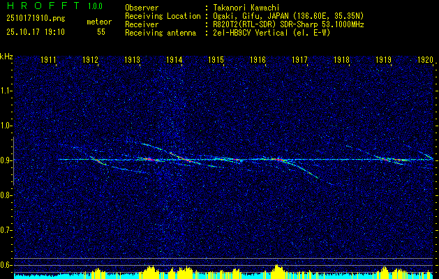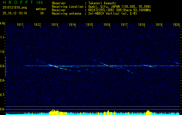 0.9kHz附近に発生している『点』または『塊』が流星によるエコーです.