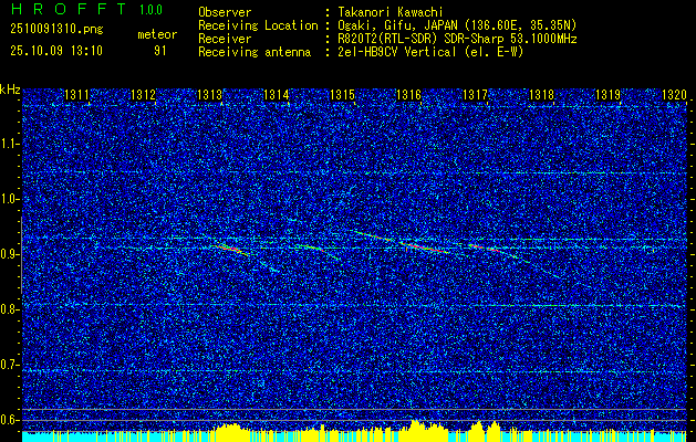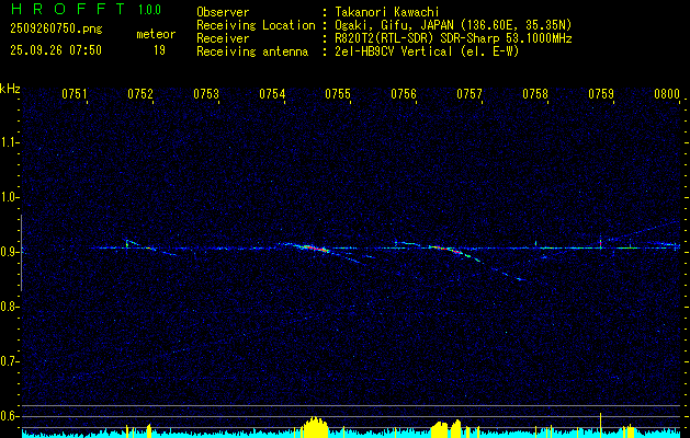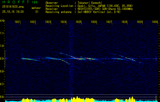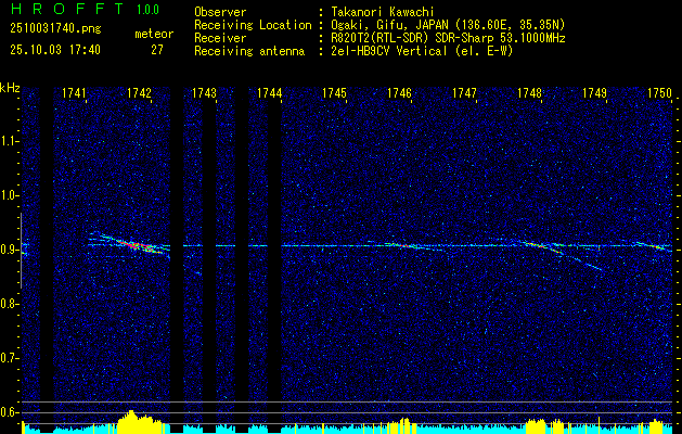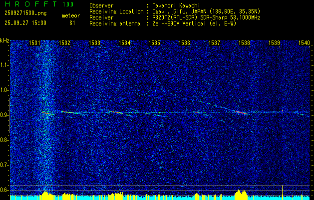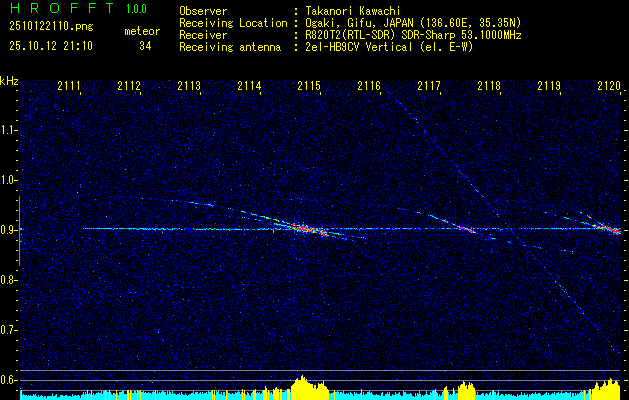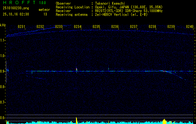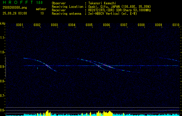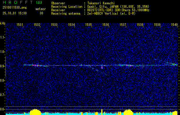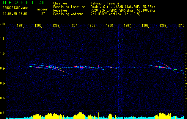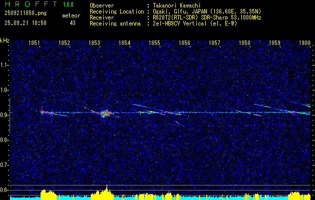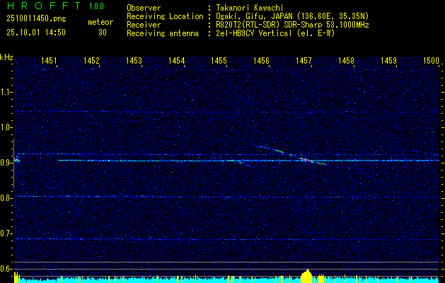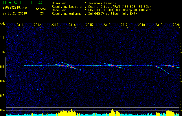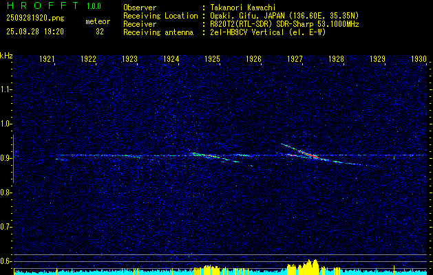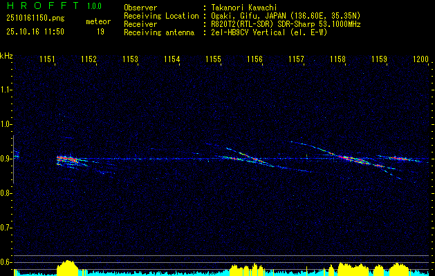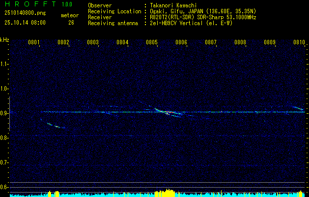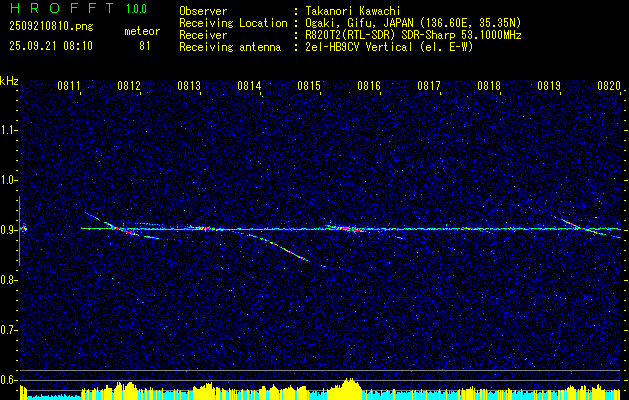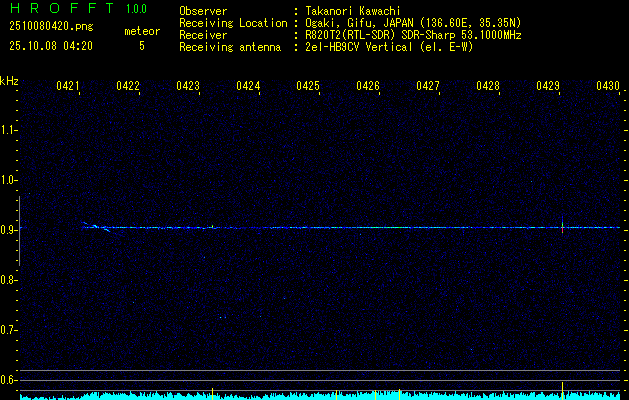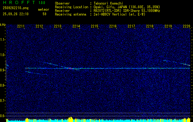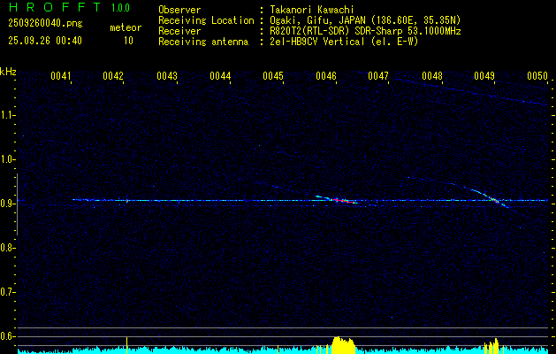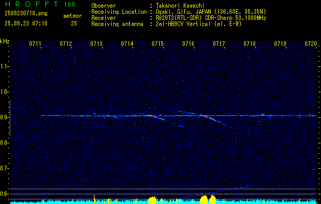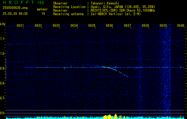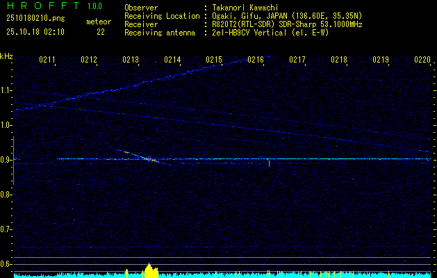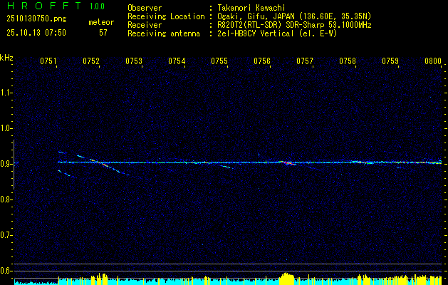 0.9kHz附近に発生している『点』または『塊』が流星によるエコーです.