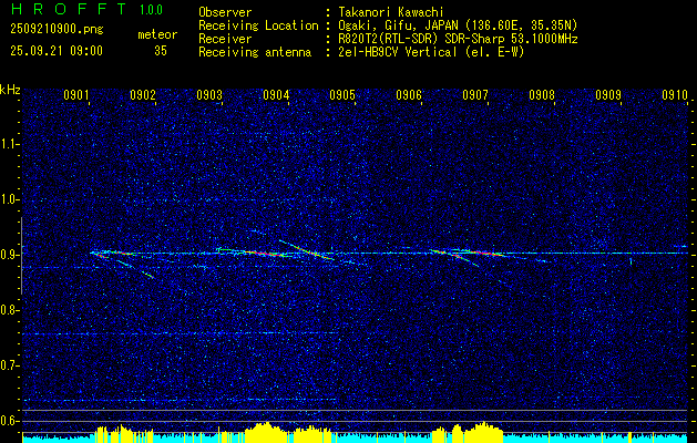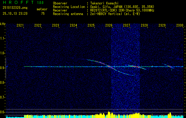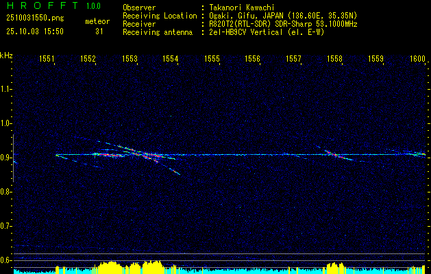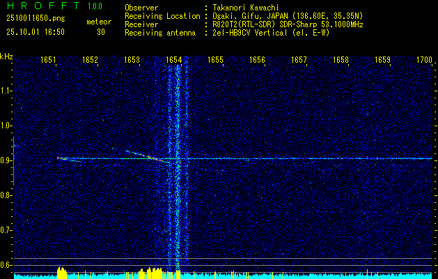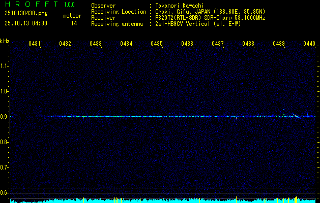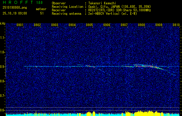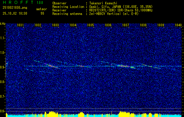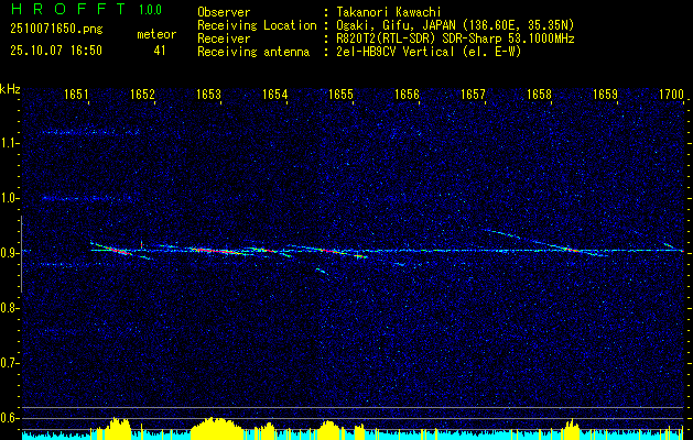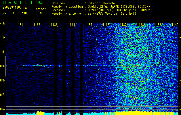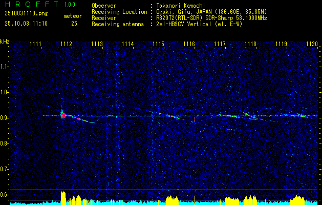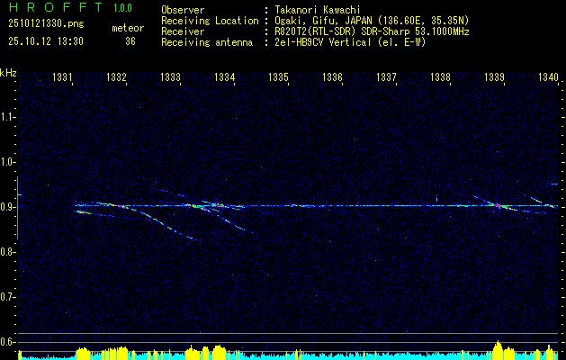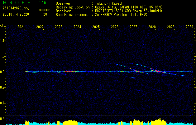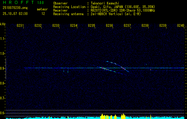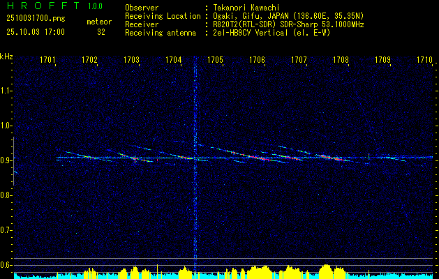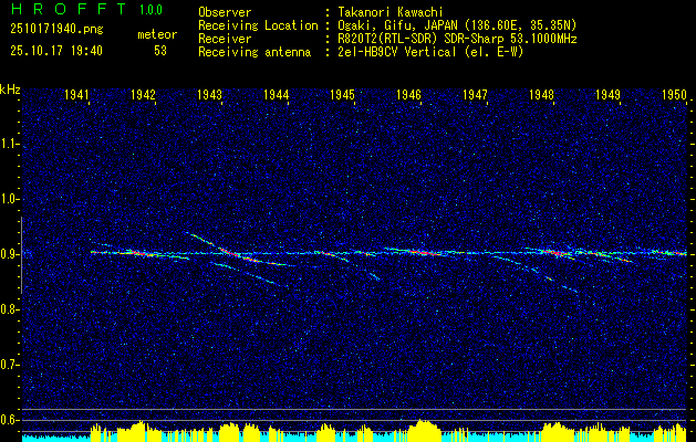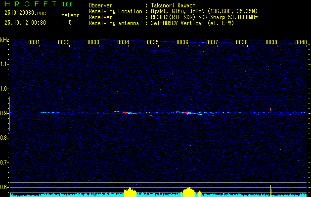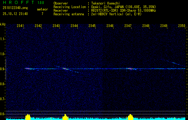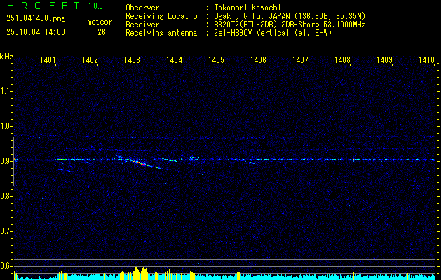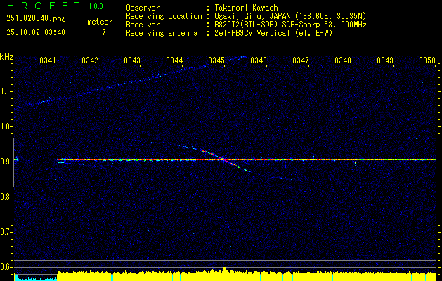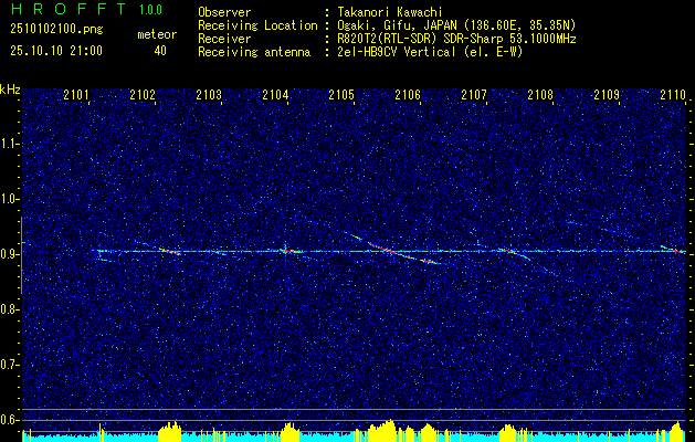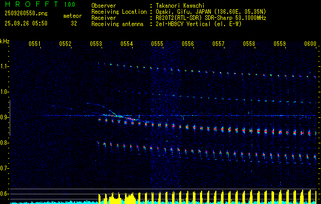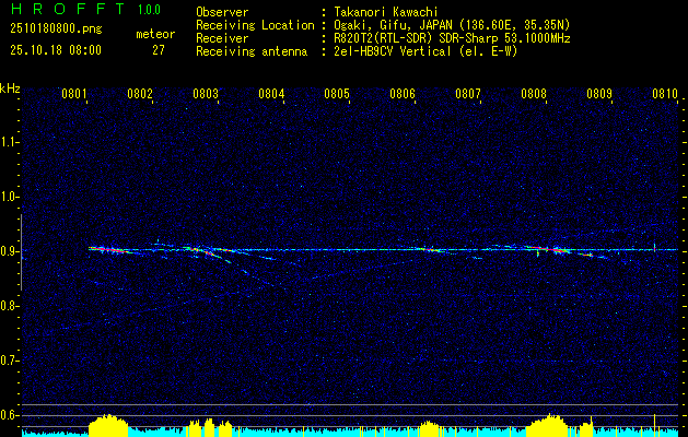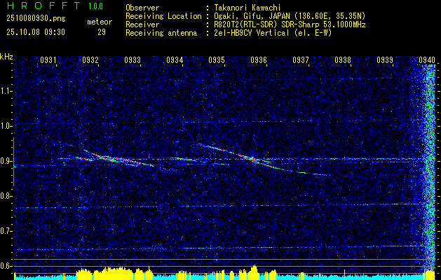 0.9kHz附近に発生している『点』または『塊』が流星によるエコーです.