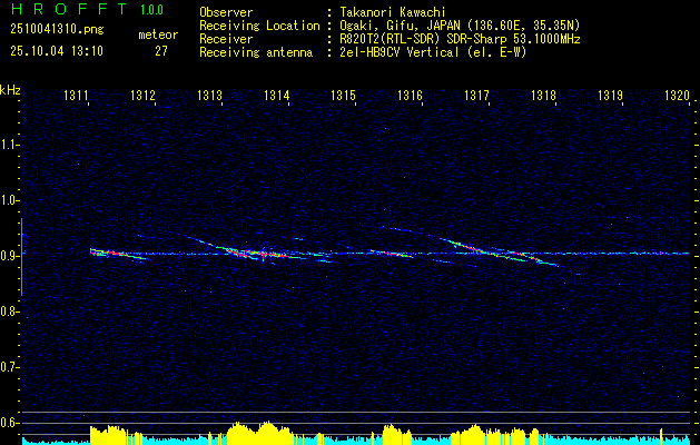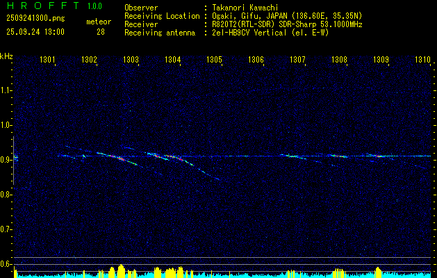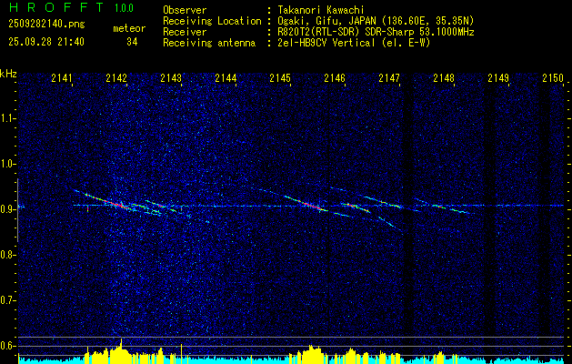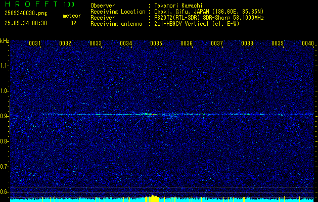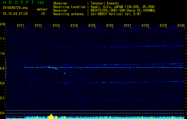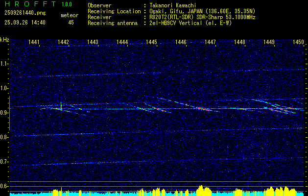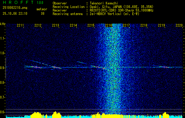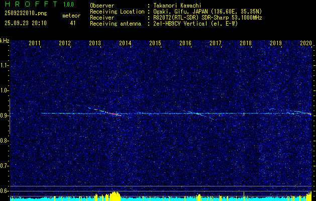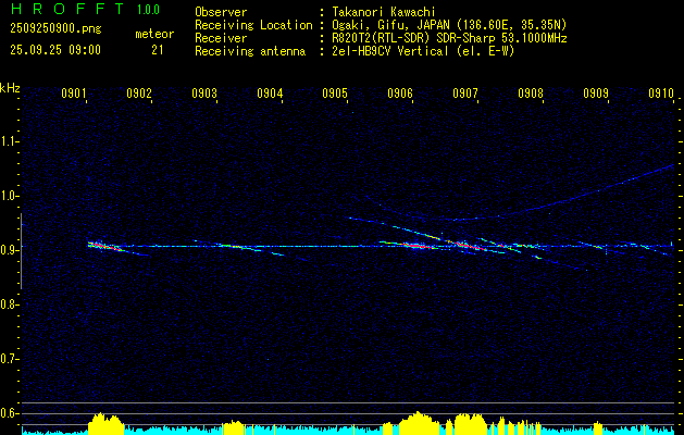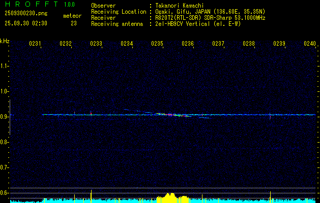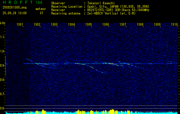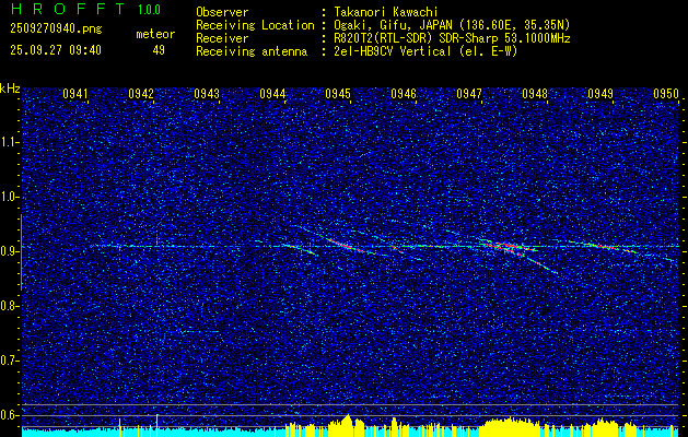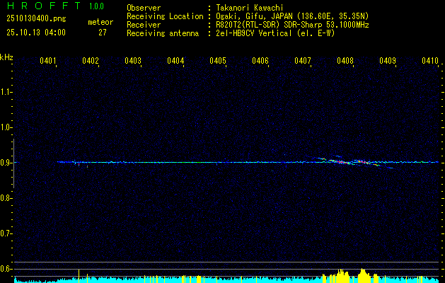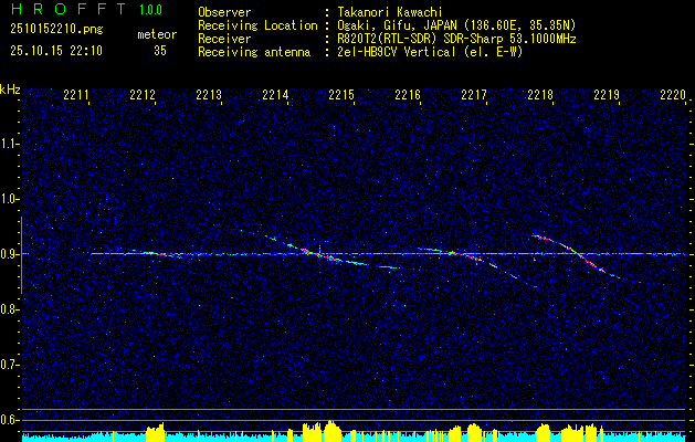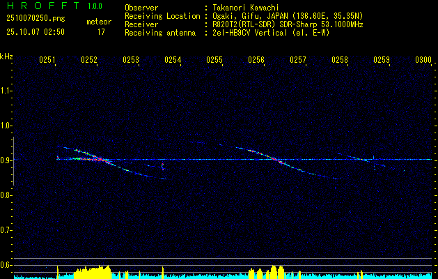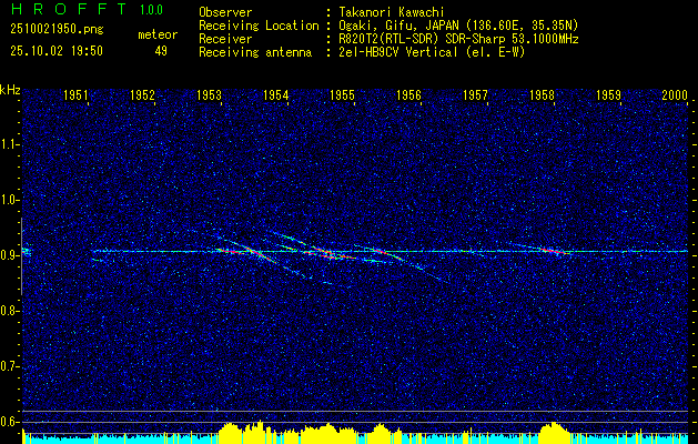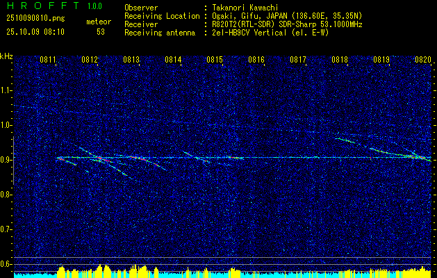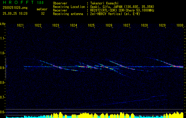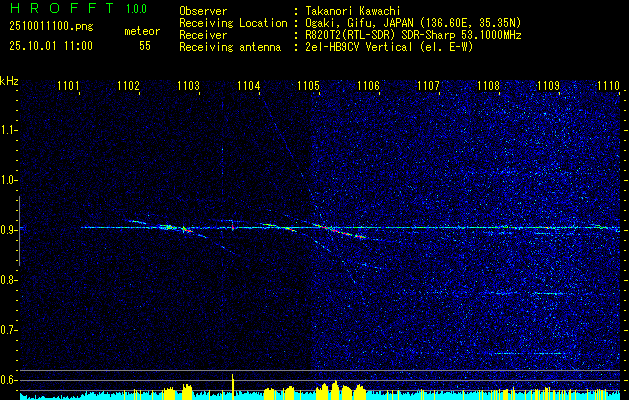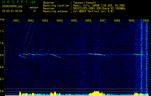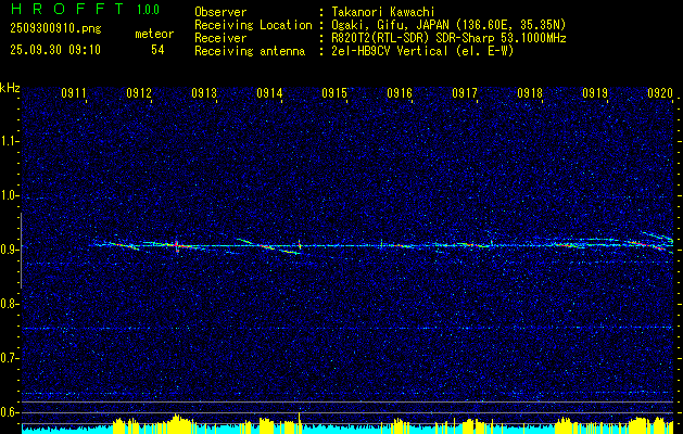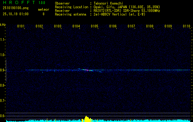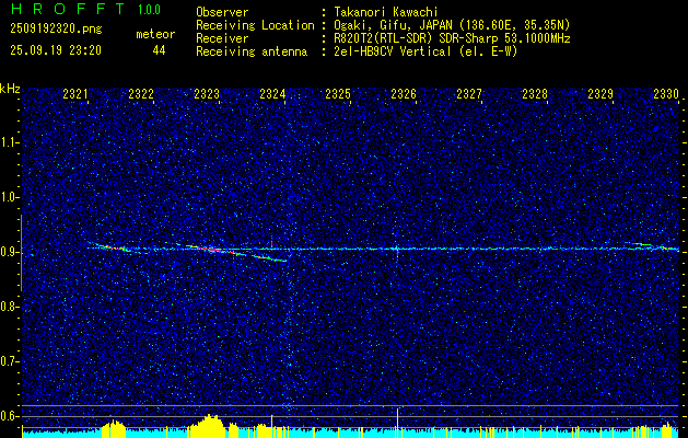 0.9kHz附近に発生している『点』または『塊』が流星によるエコーです.