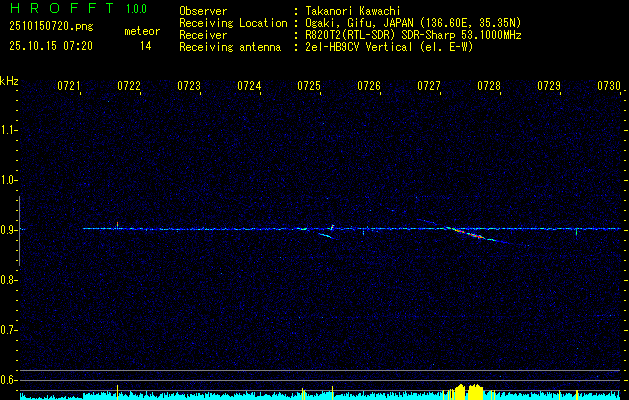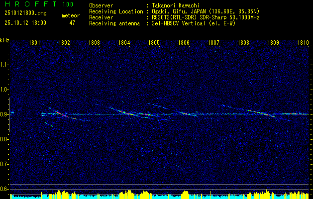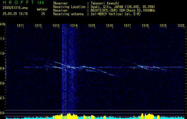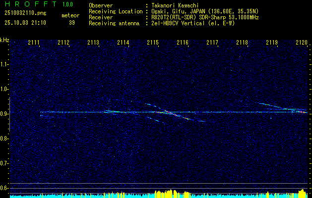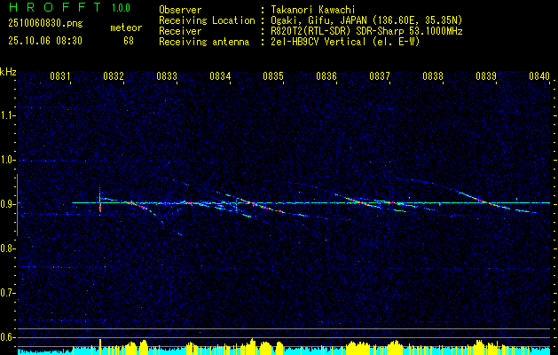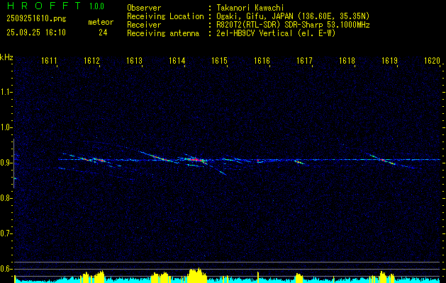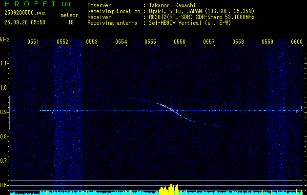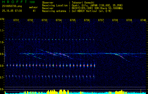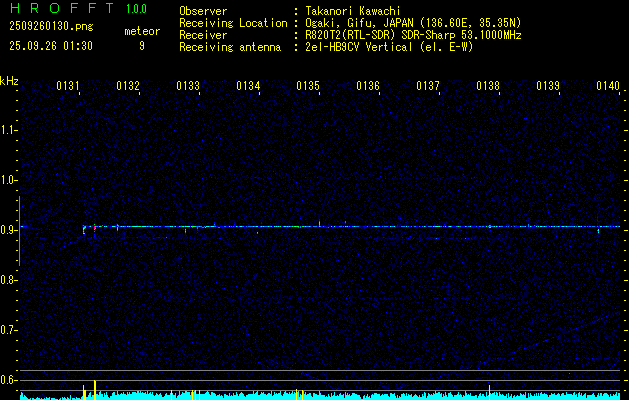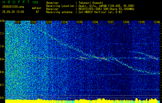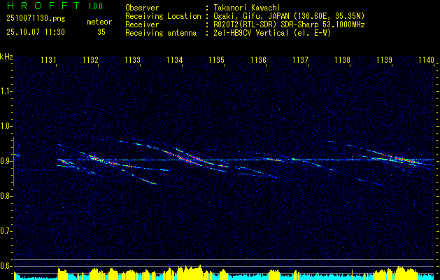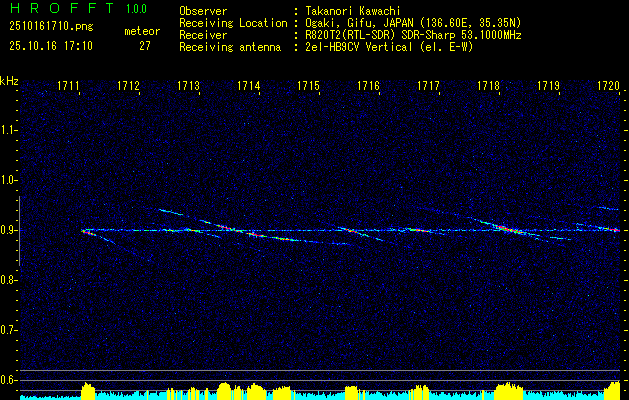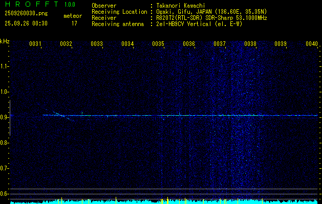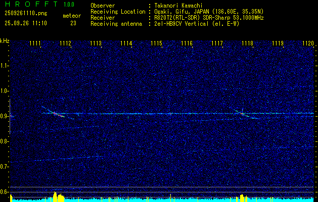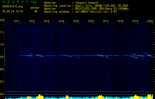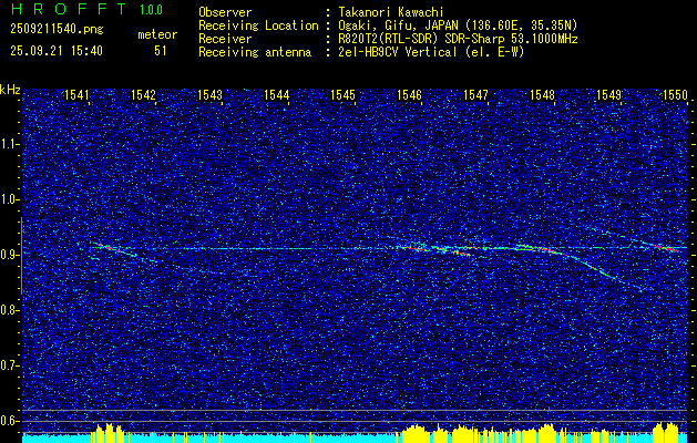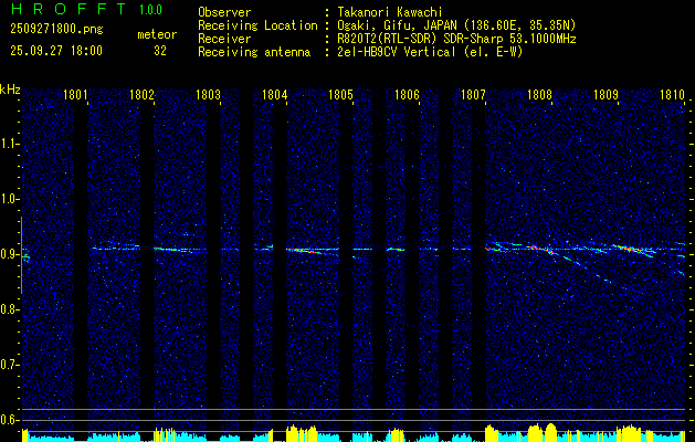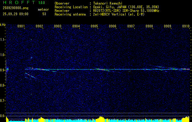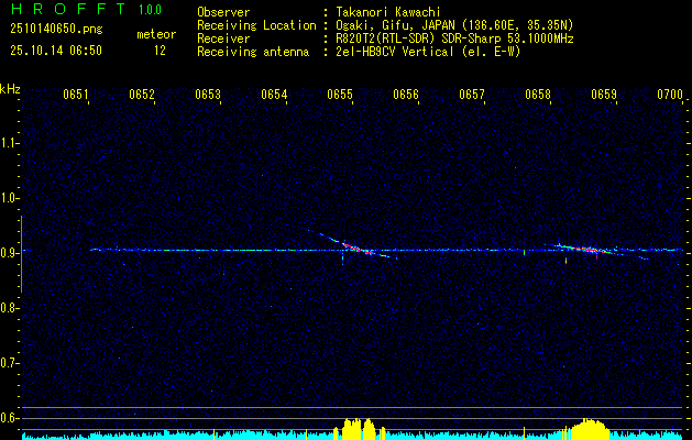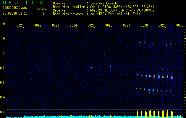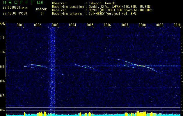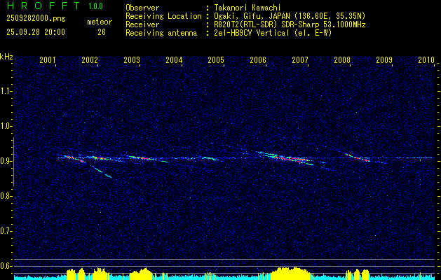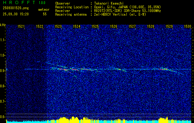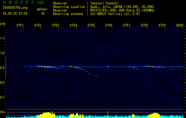 0.9kHz附近に発生している『点』または『塊』が流星によるエコーです.