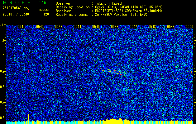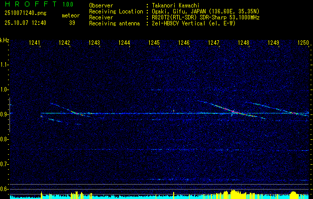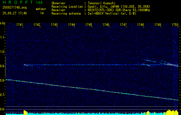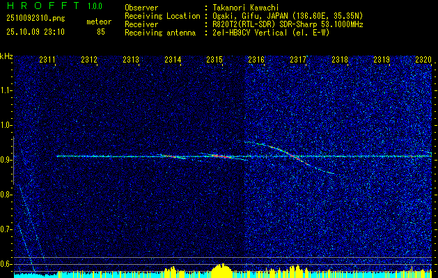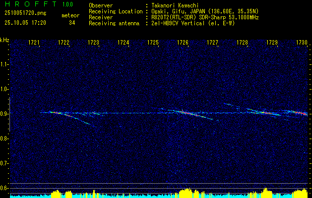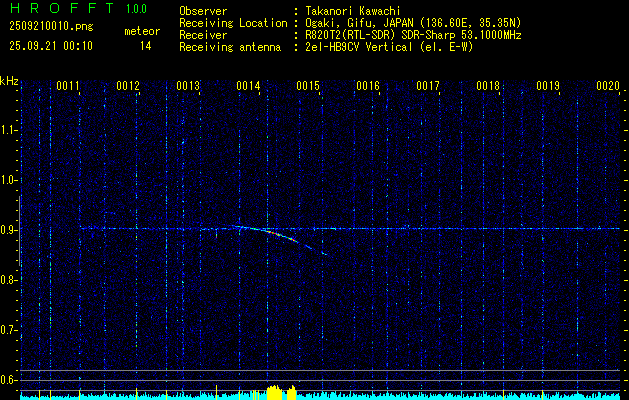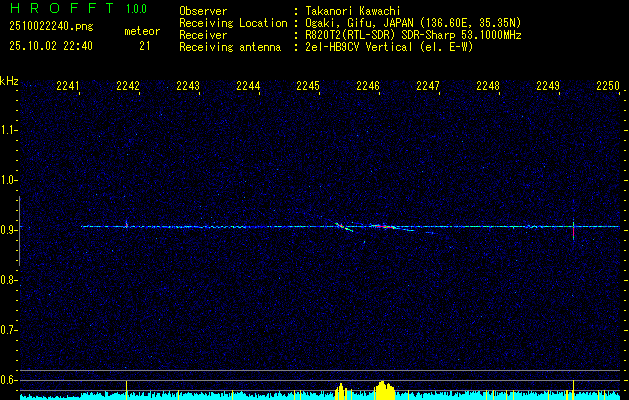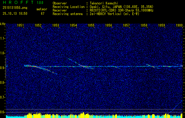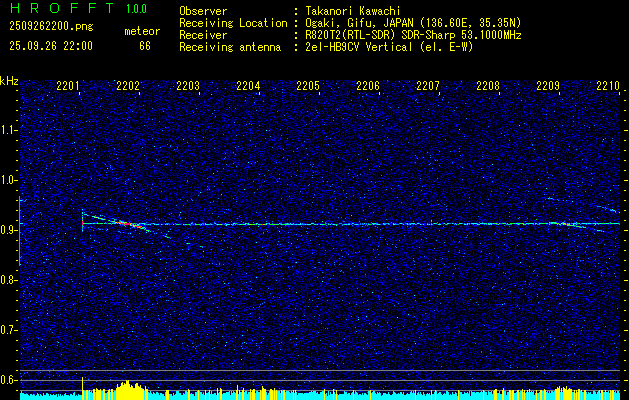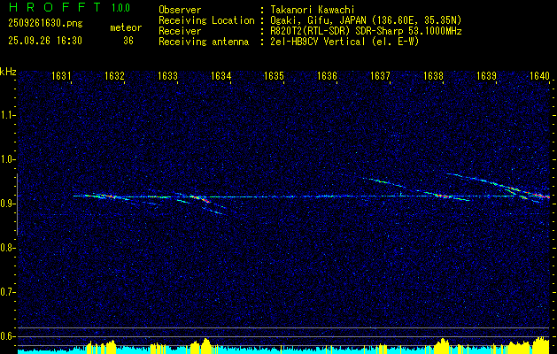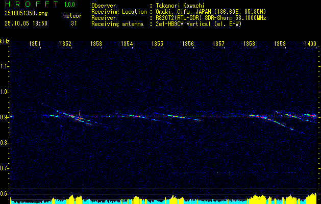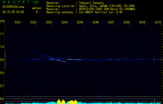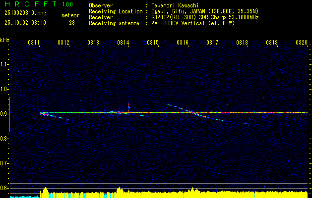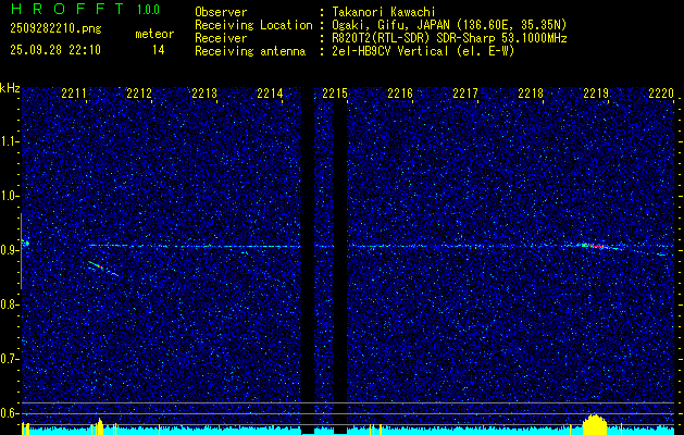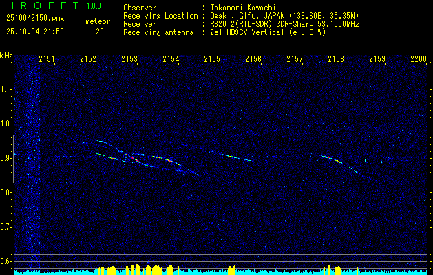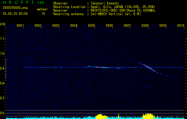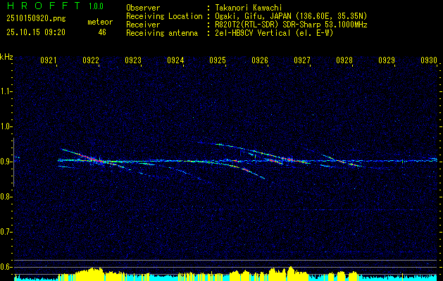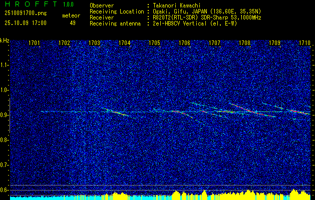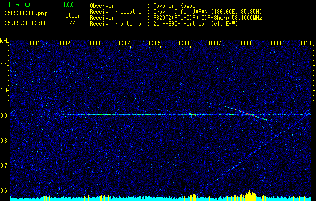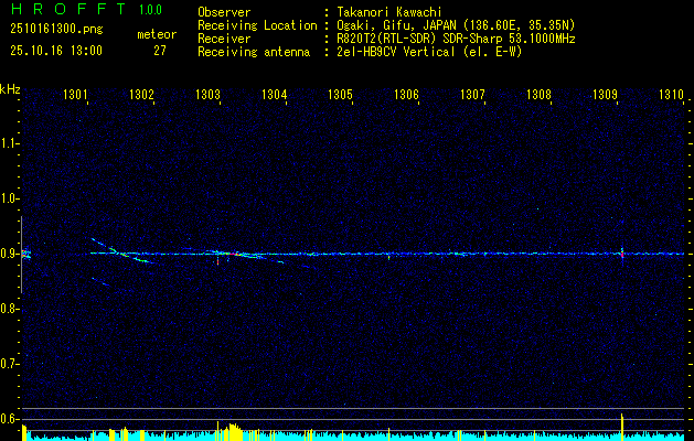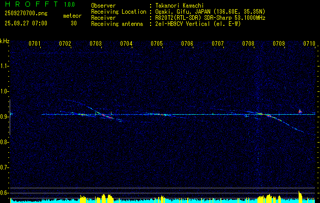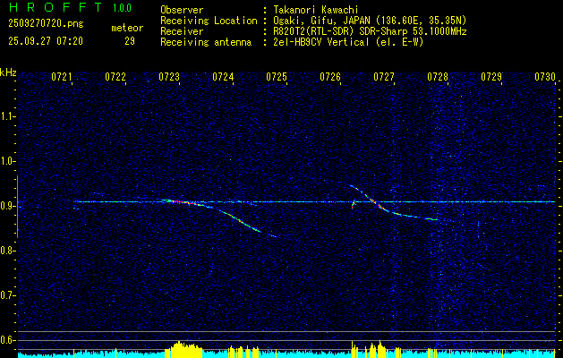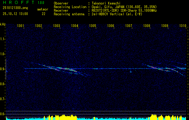 0.9kHz附近に発生している『点』または『塊』が流星によるエコーです.