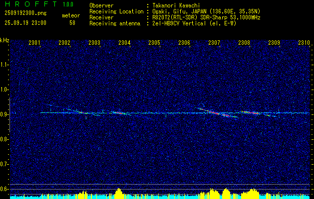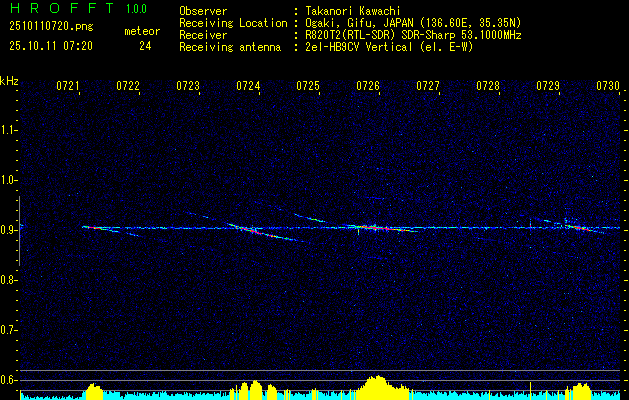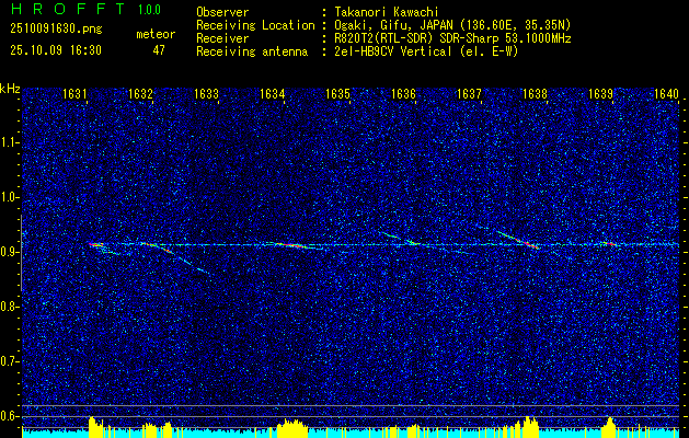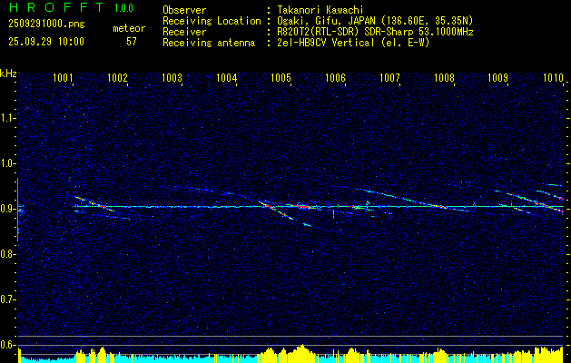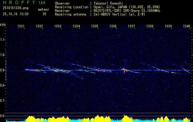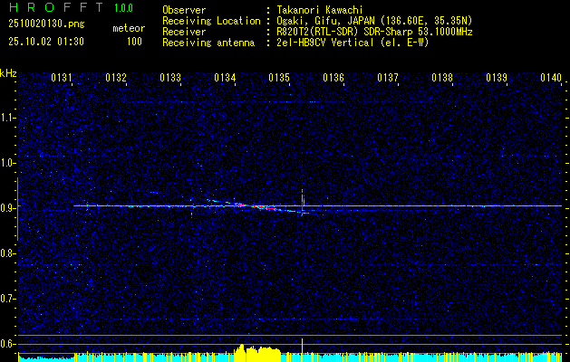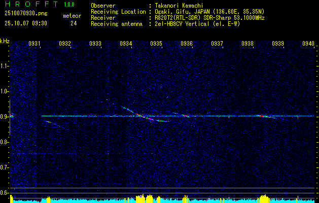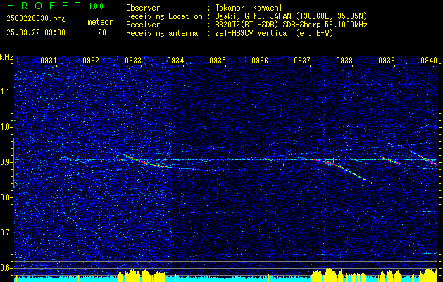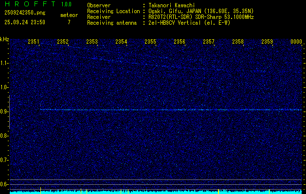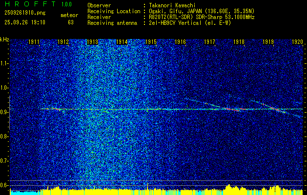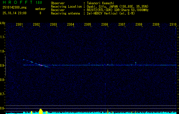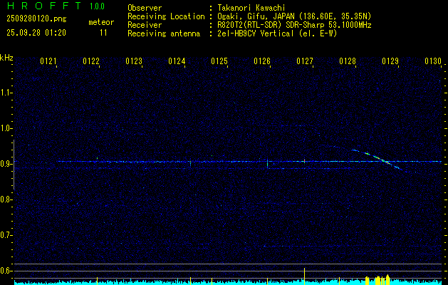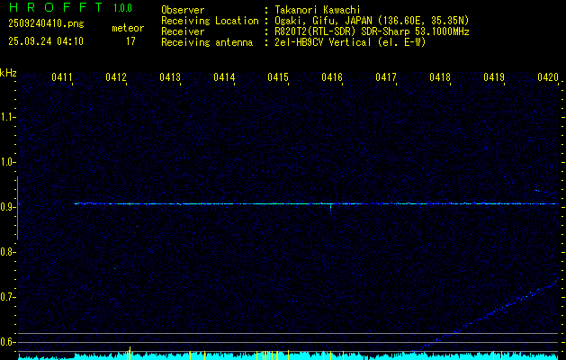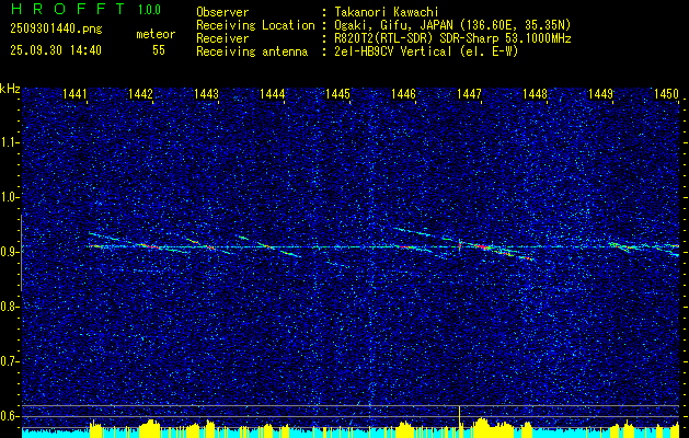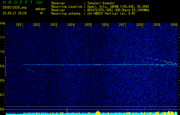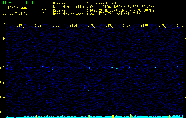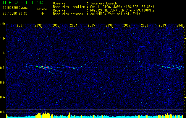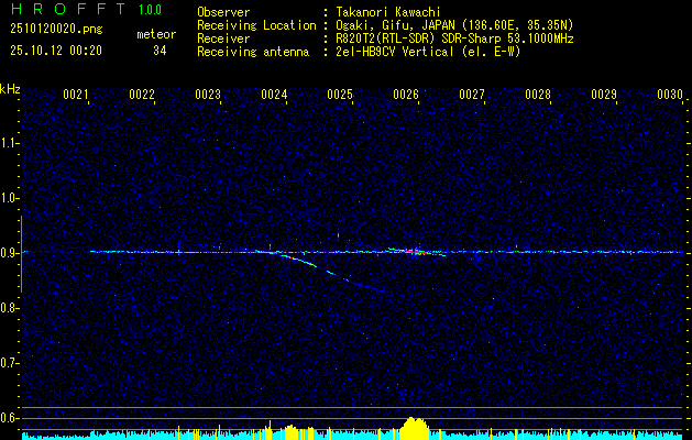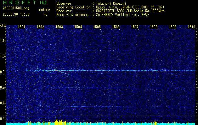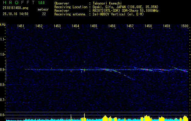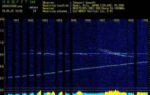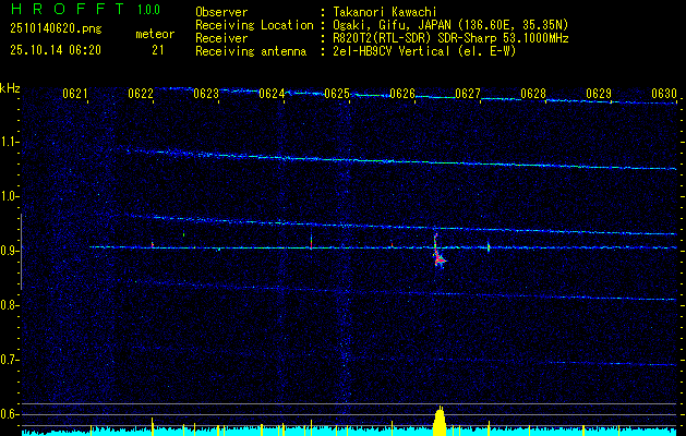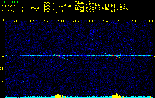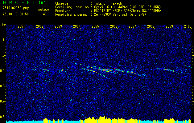 0.9kHz附近に発生している『点』または『塊』が流星によるエコーです.